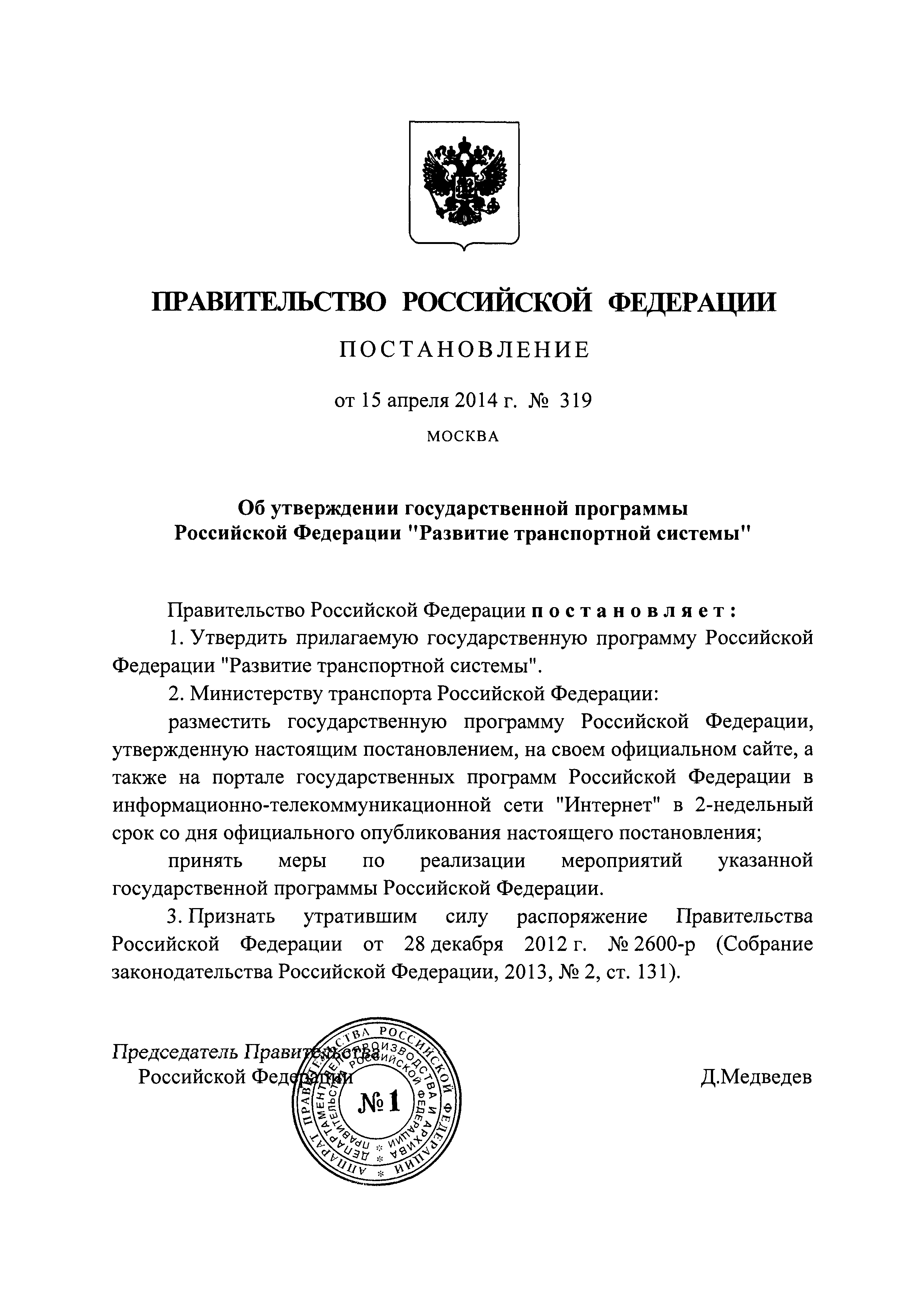 | Название рус.: | Государственная программа Российской Федерации "Развитие транспортной системы" |