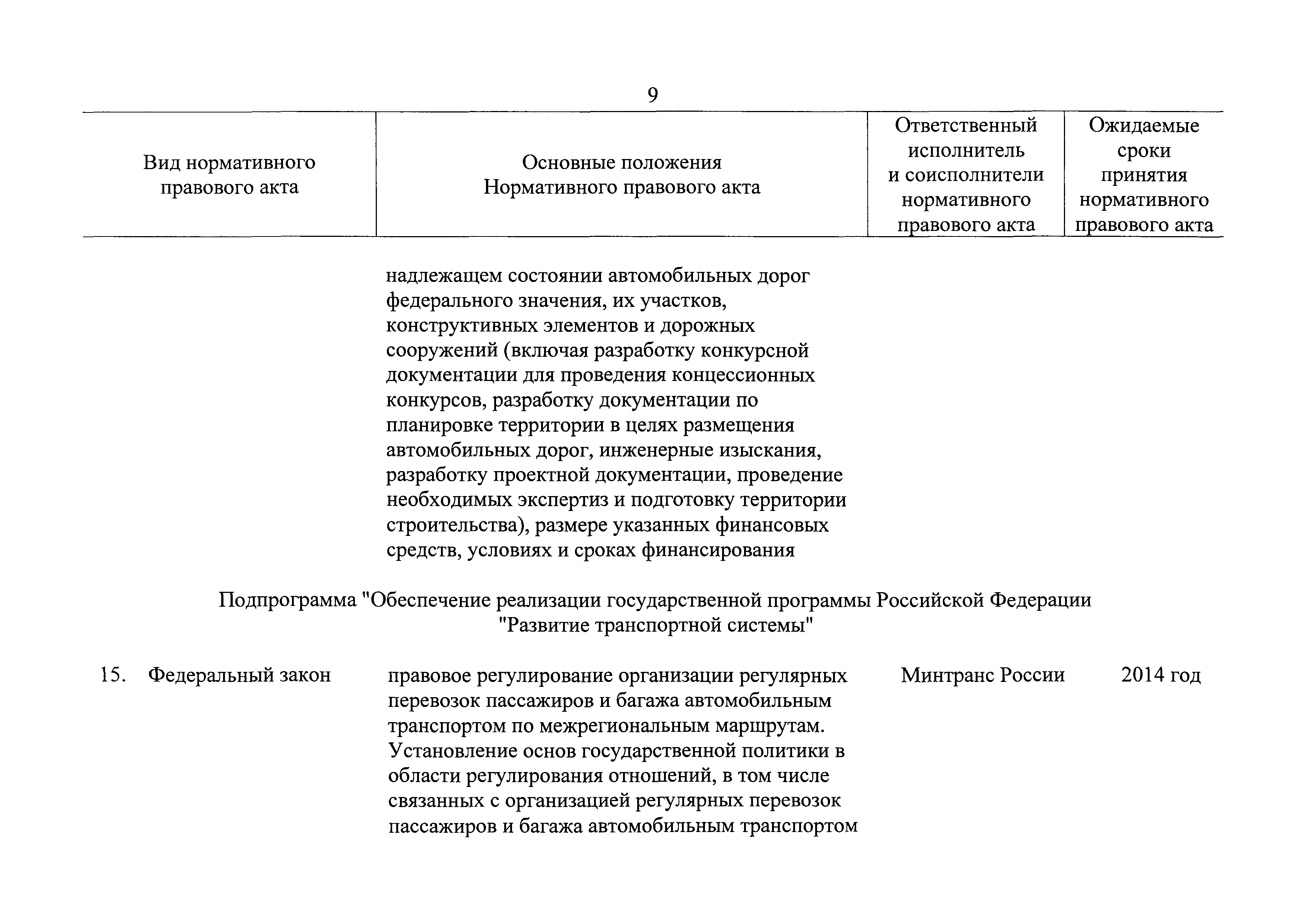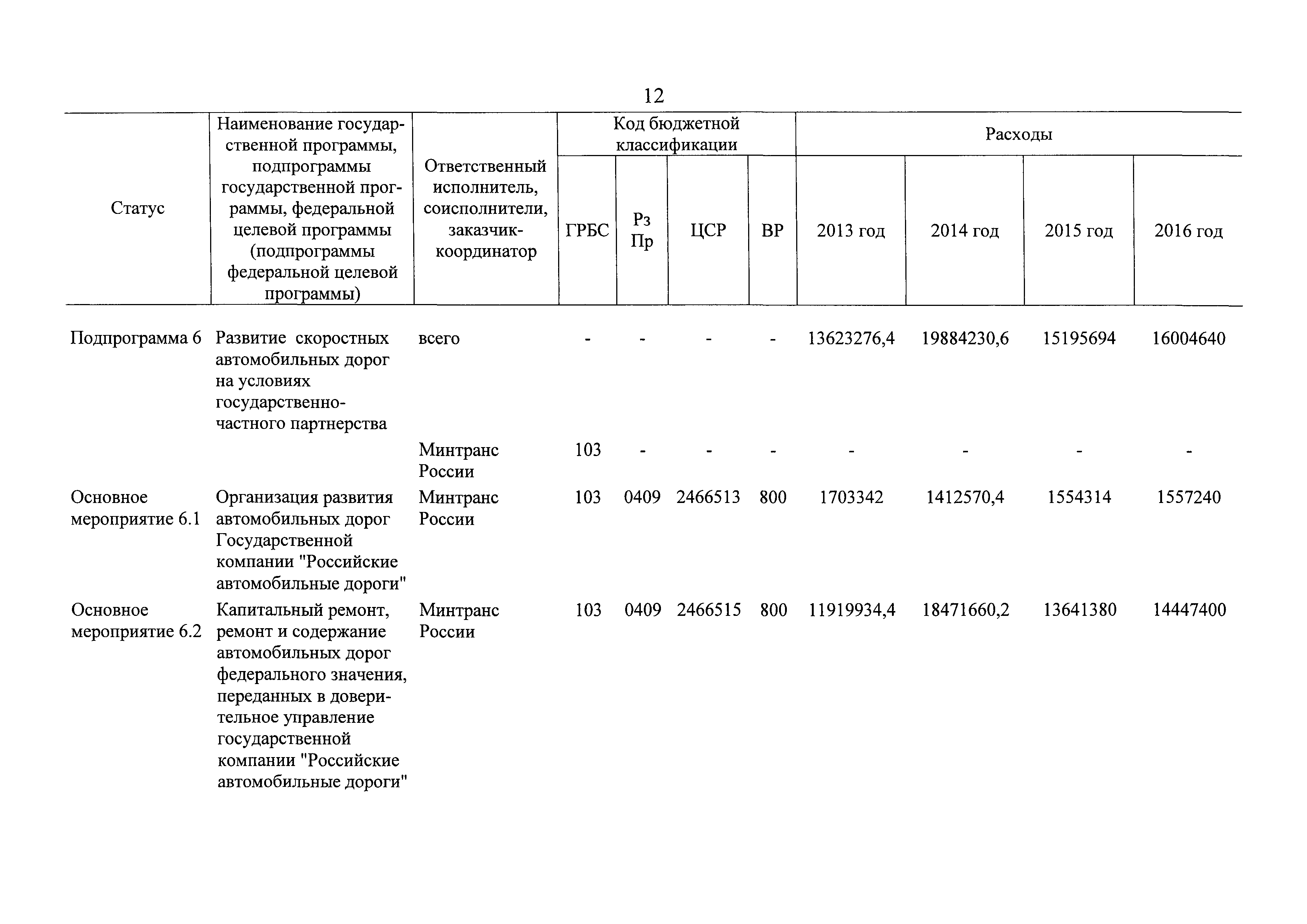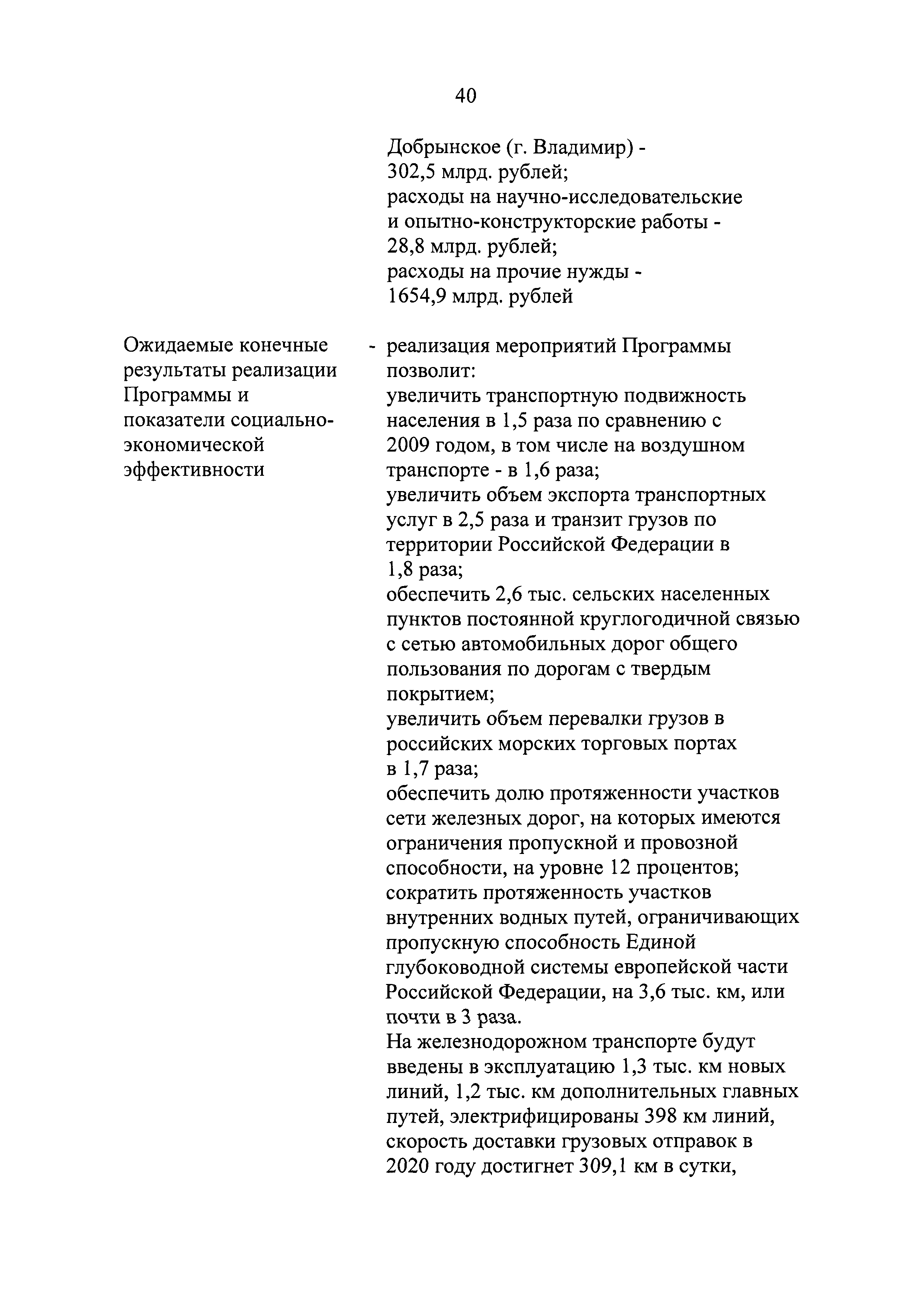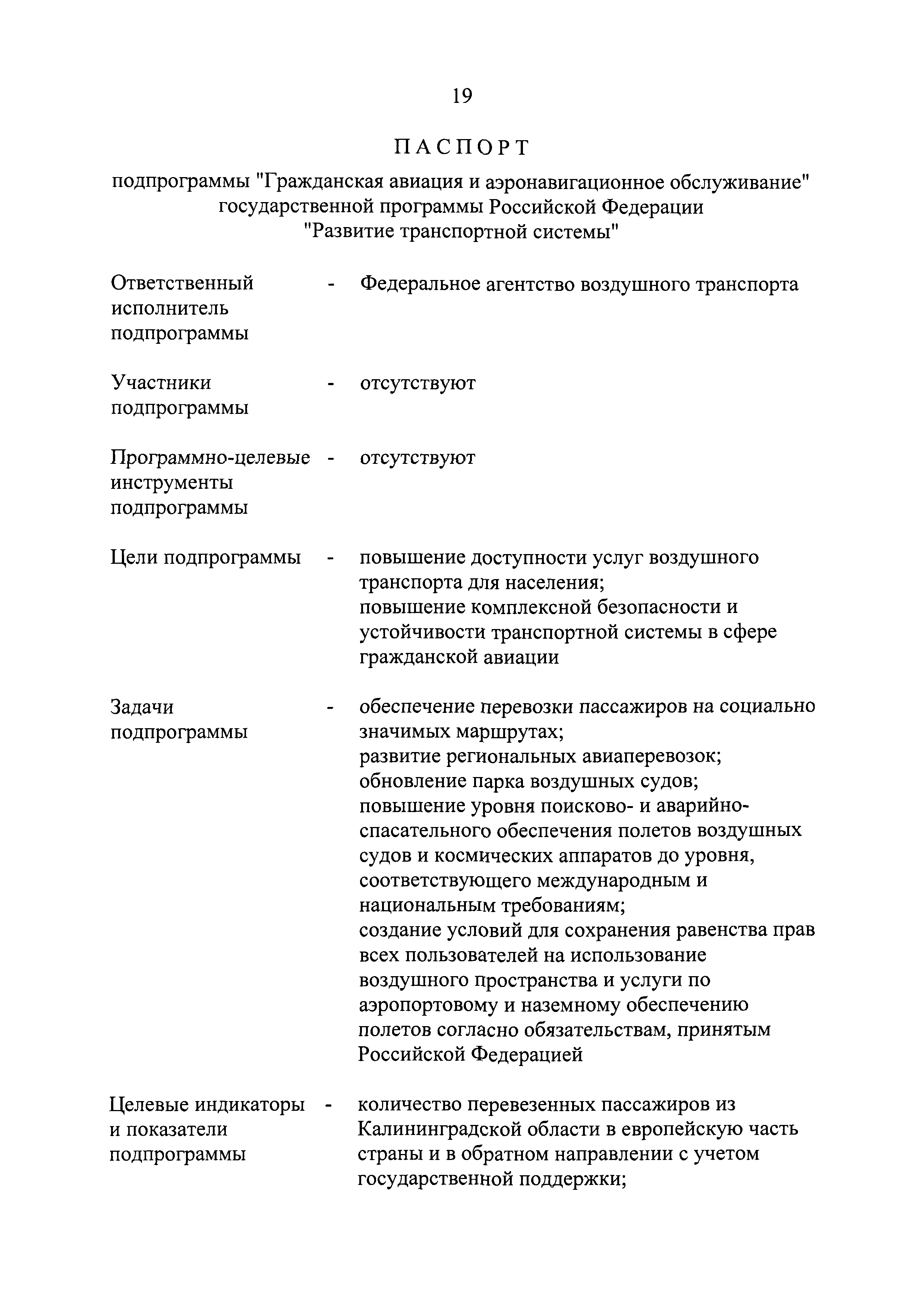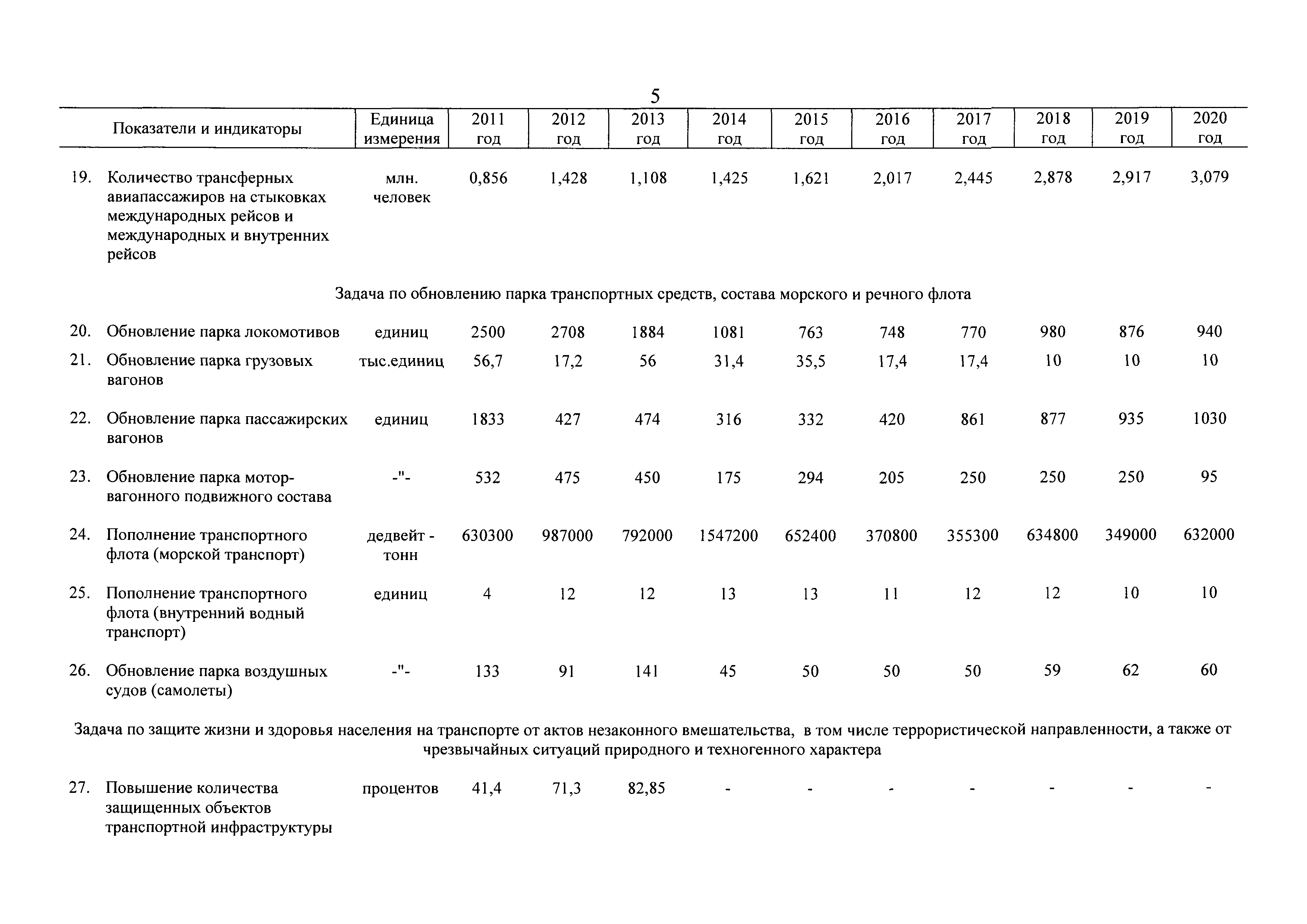 | Оглавление: | Паспорт государственной программы Российской Федерации "Развитие транспортной системы" Паспорт подпрограммы "Магистральный железнодорожный транспорт" государственной программы Российской Федерации "Развитие транспортной системы" Паспорт подпрограммы "Дорожное хозяйство" государственной программы Российской Федерации "Развитие транспортной системы" Паспорт подпрограммы "Гражданская авиация и аэронавигационное обслуживание" государственной программы Российской Федерации "Развитие транспортной системы" Паспорт подпрограммы "Морской и речной транспорт" государственной программы Российской Федерации "Развитие транспортной системы" Паспорт подпрограммы "Надзор в сфере транспорта" государственной программы Российской Федерации "Развитие транспортной системы" Паспорт подпрограммы "Развитие скоростных автомобильных дорог на условиях государственно-частного партнерства" государственной программы Российской Федерации "Развитие транспортной системы" Паспорт подпрограммы "Транспортное обеспечение XXII Олимпийских зимних игр 2014 года в г. Сочи и XXVII Всемирной летней универсиады 2013 года в г. Казани" государственной программы Российской Федерации "Развитие транспортной системы" Паспорт подпрограммы "Обеспечение реализации государственной программы Российской Федерации "Развитие транспортной системы" государственной программы Российской Федерации "Развитие транспортной системы" Паспорт подпрограммы "Развитие гражданского использования системы ГЛОНАСС на транспорте" государственной программы Российской Федерации "Развитие транспортной системы" Паспорт федеральной целевой программы "Развитие транспортной системы России (2010 - 2020 годы)" Паспорт федеральной целевой программы "Модернизация Единой системы организации воздушного движения Российской Федерации (2009 - 2020 годы)" Паспорт комплексной программы обеспечения безопасности населения на транспорте Приоритеты и цели государственной политики, а также общие требования к государственной политике субъектов Российской Федерации в сфере транспортного комплекса Приложение № 1. Сведения о целевых индикаторах и показателях государственной программы Российской Федерации "Развитие транспортной системы" Приложение № 2. Сведения о целевых индикаторах и показателях государственной программы Российской Федерации "Развитие транспортной системы" по субъектам Российской Федерации Приложение № 3. Перечень основных мероприятий государственной программы Российской Федерации "Развитие транспортной системы" Приложение № 4. Основные меры правового регулирования в сфере реализации государственной программы Российской Федерации "Развитие транспортной системы" Приложение № 5. Информация по финансовому обеспечению государственной программы Российской Федерации "Развитие транспортной системы" за счет средств федерального бюджета |