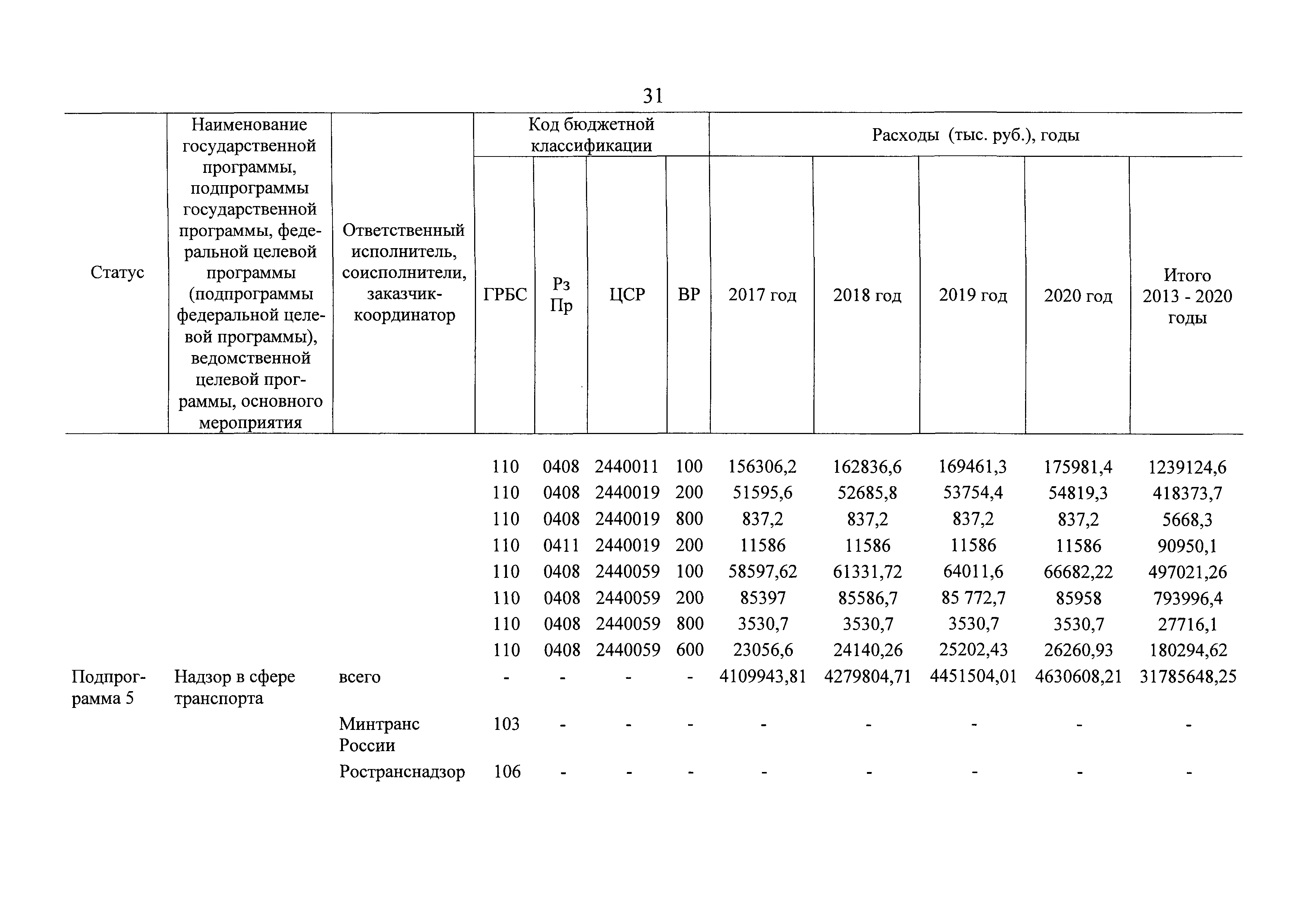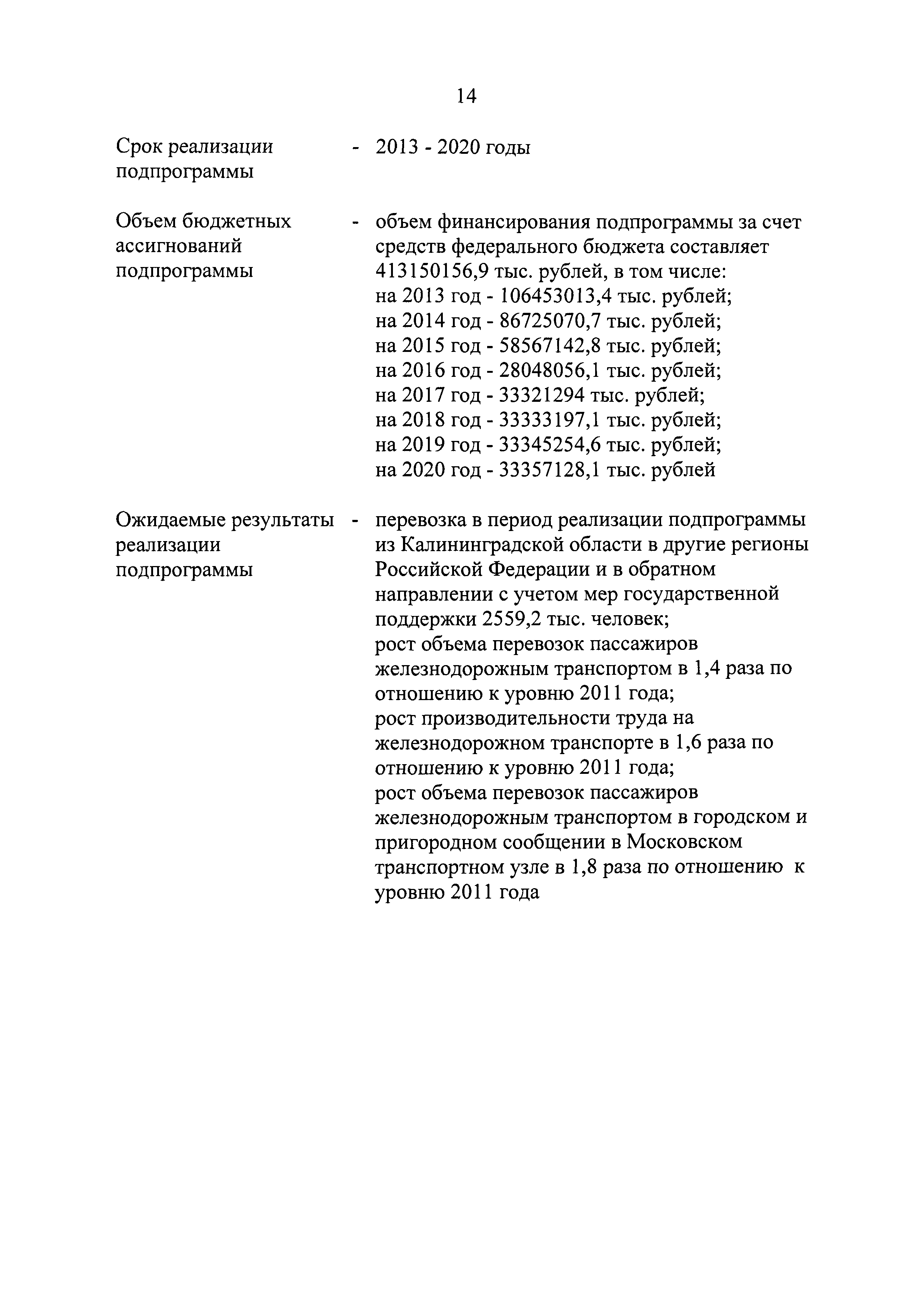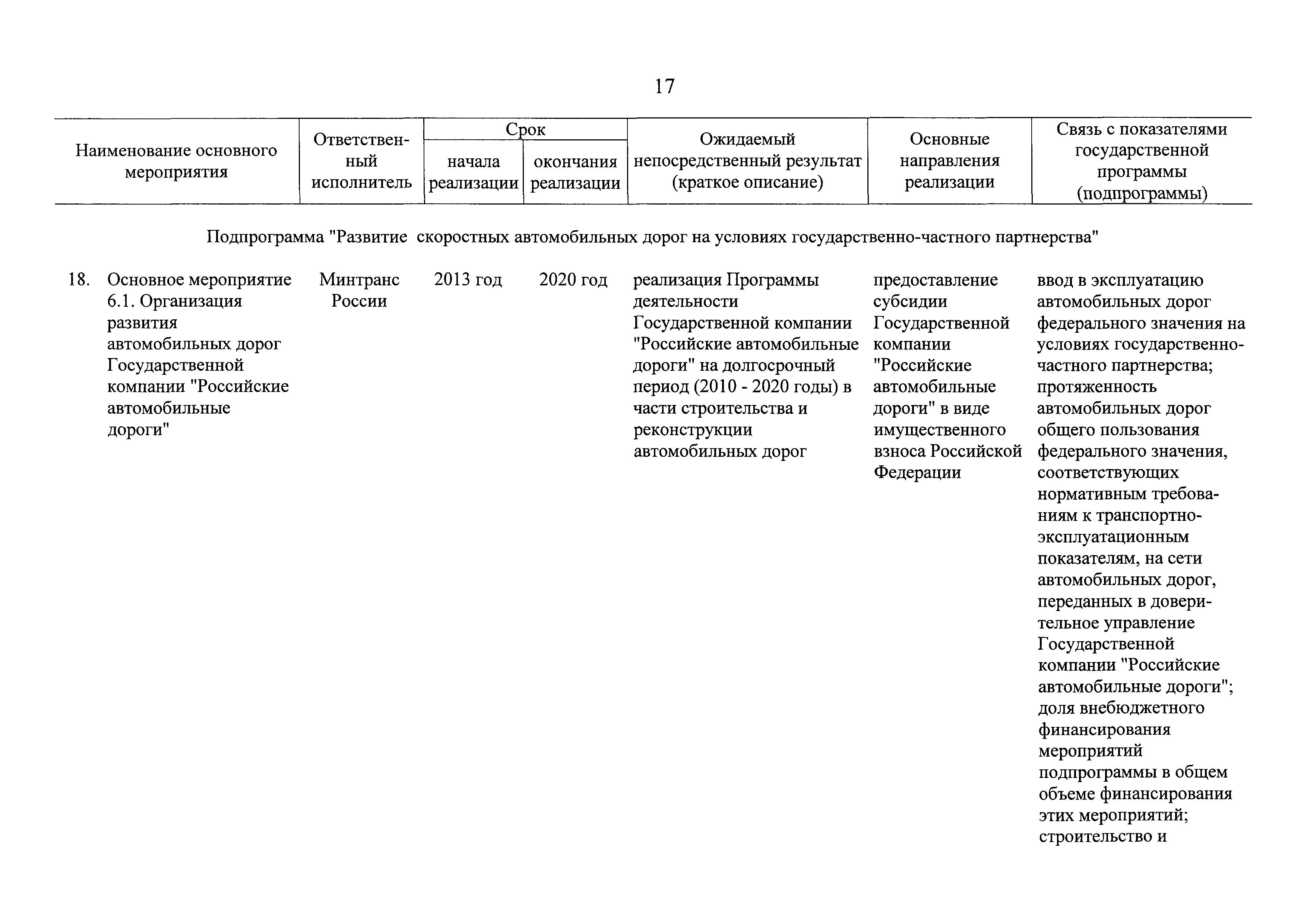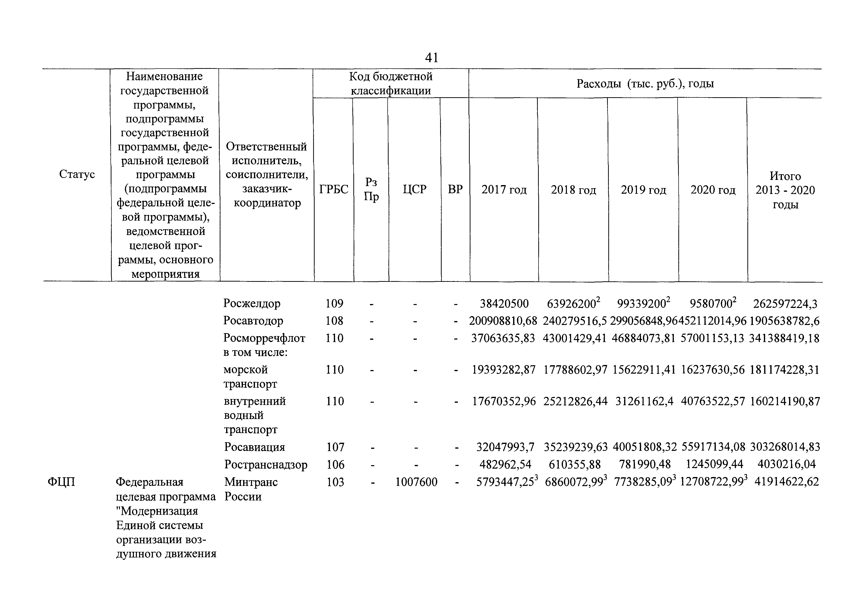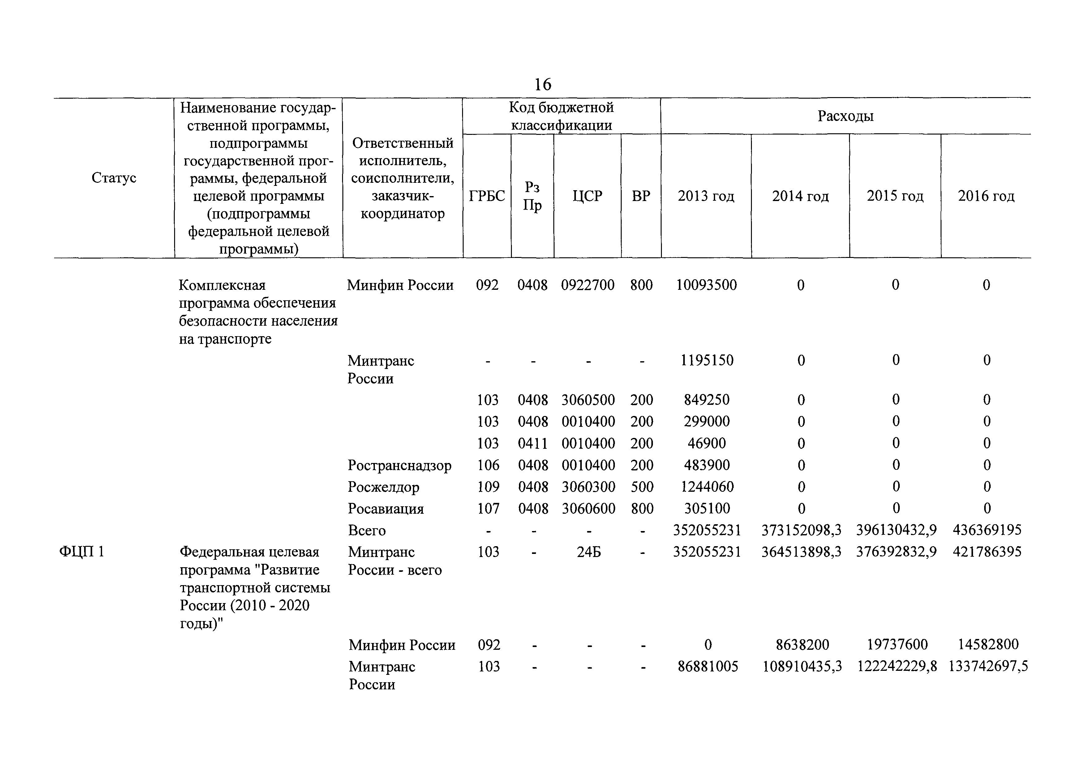 | Оглавление: | Паспорт государственной программы Российской Федерации "Развитие транспортной системы" Паспорт подпрограммы "Магистральный железнодорожный транспорт" государственной программы Российской Федерации "Развитие транспортной системы" Паспорт подпрограммы "Дорожное хозяйство" государственной программы Российской Федерации "Развитие транспортной системы" Паспорт подпрограммы "Гражданская авиация и аэронавигационное обслуживание" государственной программы Российской Федерации "Развитие транспортной системы" Паспорт подпрограммы "Морской и речной транспорт" государственной программы Российской Федерации "Развитие транспортной системы" Паспорт подпрограммы "Надзор в сфере транспорта" государственной программы Российской Федерации "Развитие транспортной системы" Паспорт подпрограммы "Развитие скоростных автомобильных дорог на условиях государственно-частного партнерства" государственной программы Российской Федерации "Развитие транспортной системы" Паспорт подпрограммы "Транспортное обеспечение XXII Олимпийских зимних игр 2014 года в г. Сочи и XXVII Всемирной летней универсиады 2013 года в г. Казани" государственной программы Российской Федерации "Развитие транспортной системы" Паспорт подпрограммы "Обеспечение реализации государственной программы Российской Федерации "Развитие транспортной системы" государственной программы Российской Федерации "Развитие транспортной системы" Паспорт подпрограммы "Развитие гражданского использования системы ГЛОНАСС на транспорте" государственной программы Российской Федерации "Развитие транспортной системы" Паспорт федеральной целевой программы "Развитие транспортной системы России (2010 - 2020 годы)" Паспорт федеральной целевой программы "Модернизация Единой системы организации воздушного движения Российской Федерации (2009 - 2020 годы)" Паспорт комплексной программы обеспечения безопасности населения на транспорте Приоритеты и цели государственной политики, а также общие требования к государственной политике субъектов Российской Федерации в сфере транспортного комплекса Приложение № 1. Сведения о целевых индикаторах и показателях государственной программы Российской Федерации "Развитие транспортной системы" Приложение № 2. Сведения о целевых индикаторах и показателях государственной программы Российской Федерации "Развитие транспортной системы" по субъектам Российской Федерации Приложение № 3. Перечень основных мероприятий государственной программы Российской Федерации "Развитие транспортной системы" Приложение № 4. Основные меры правового регулирования в сфере реализации государственной программы Российской Федерации "Развитие транспортной системы" Приложение № 5. Информация по финансовому обеспечению государственной программы Российской Федерации "Развитие транспортной системы" за счет средств федерального бюджета |