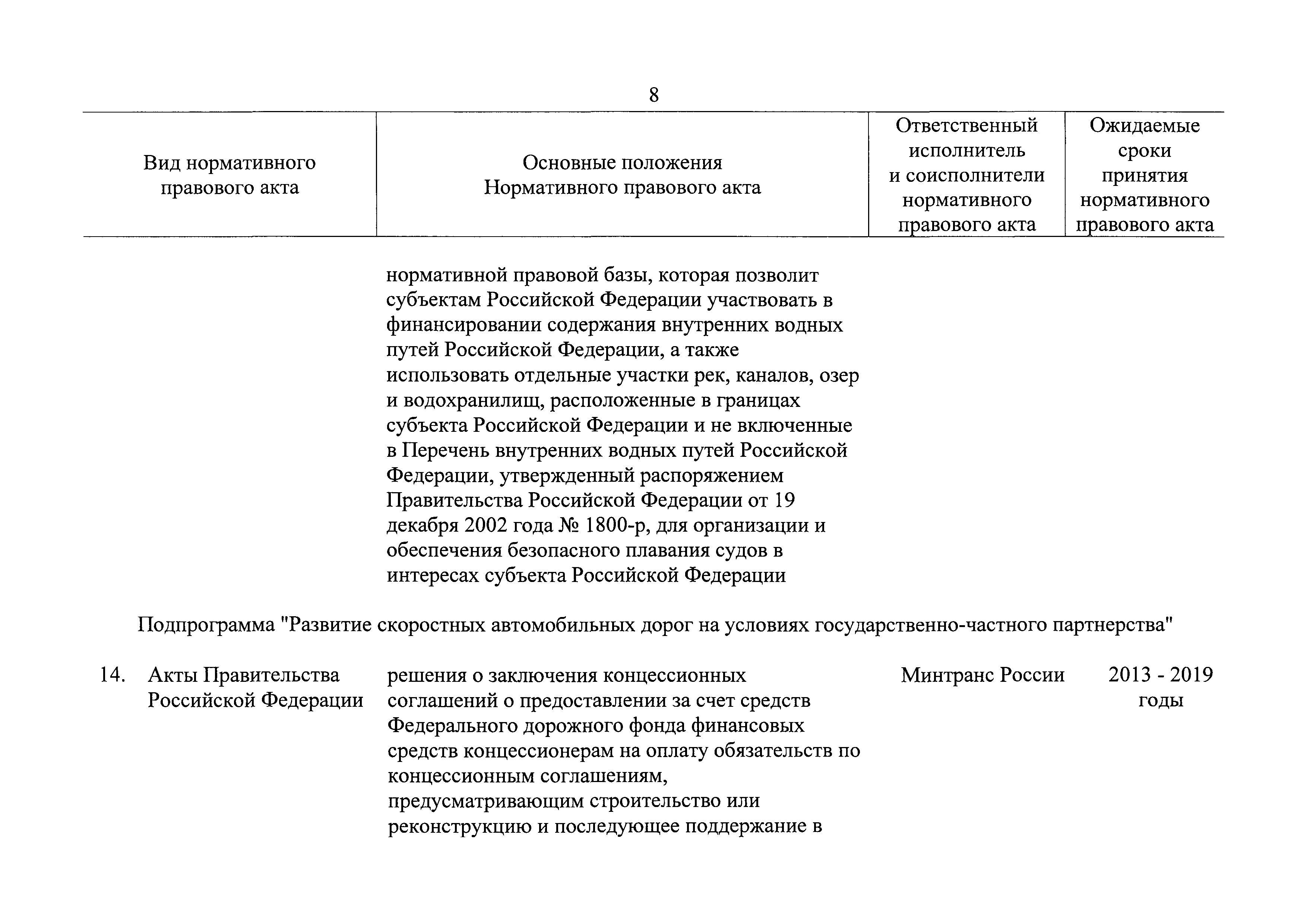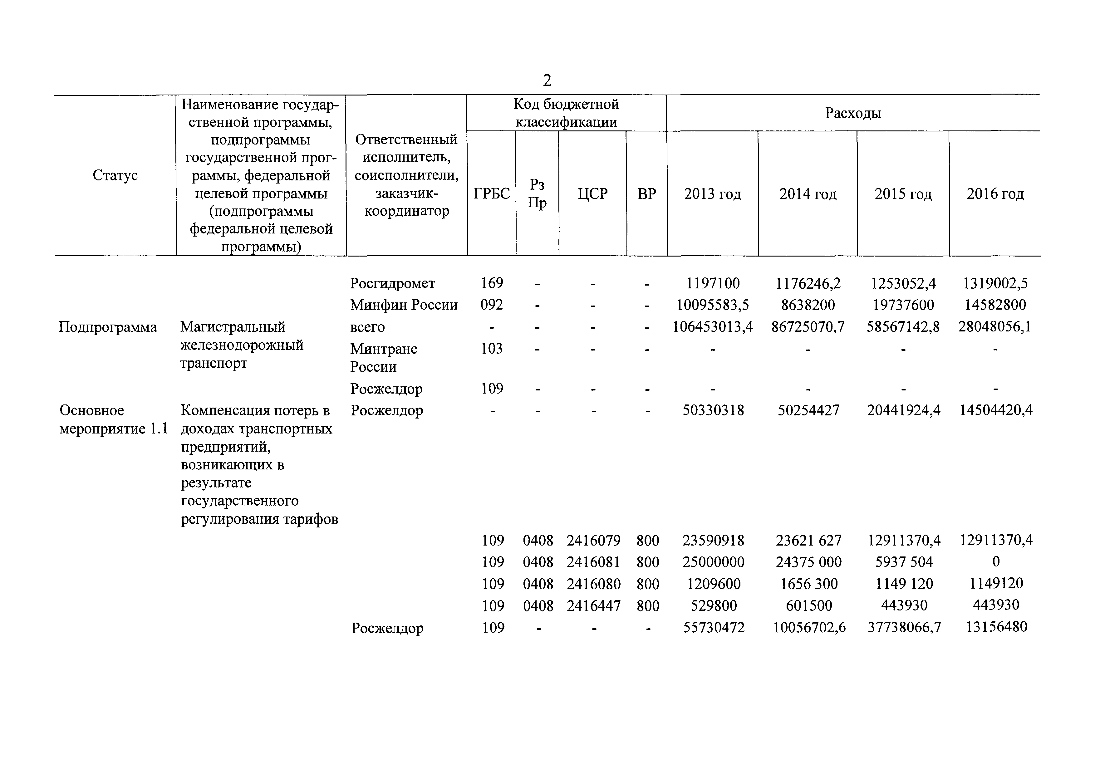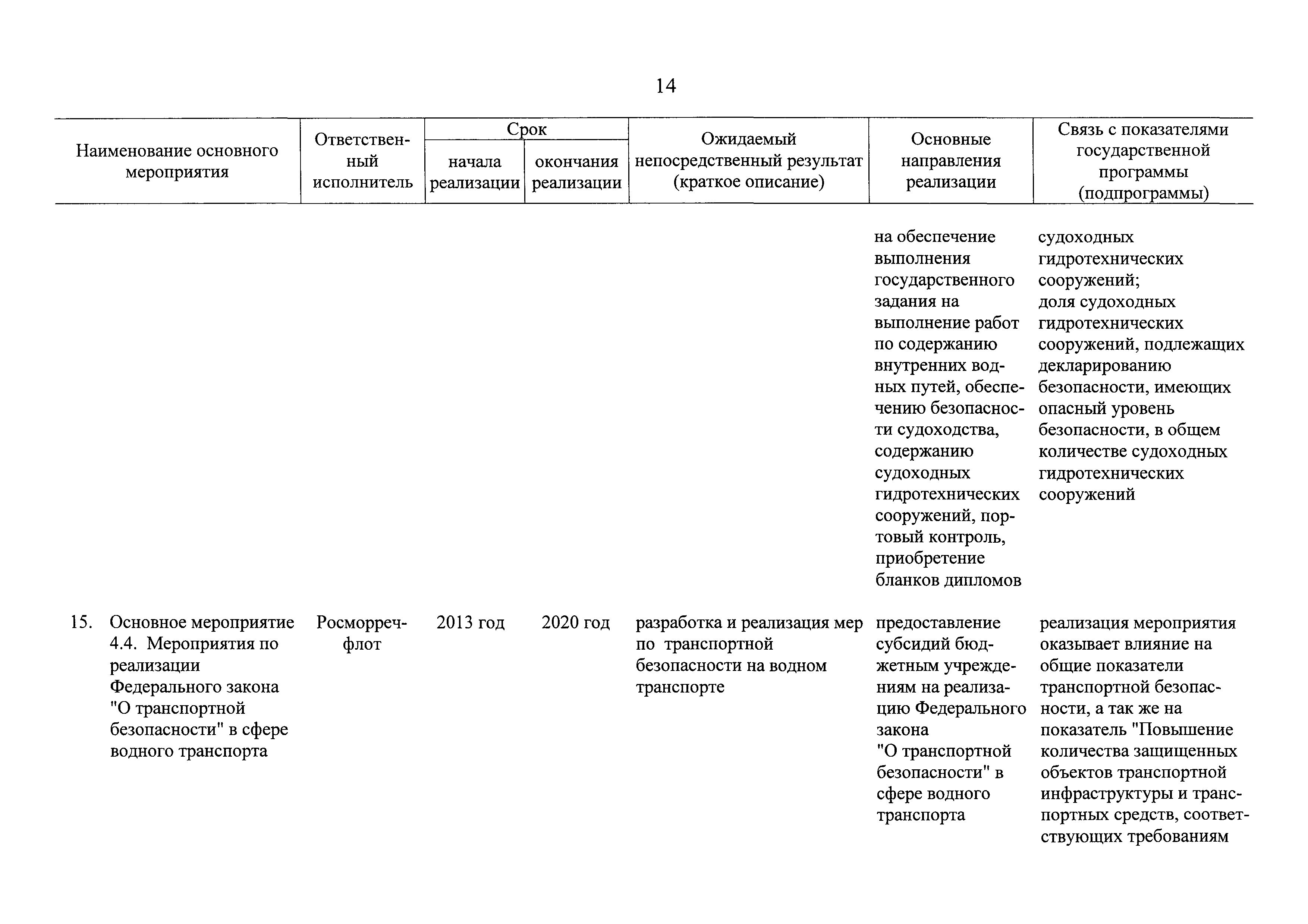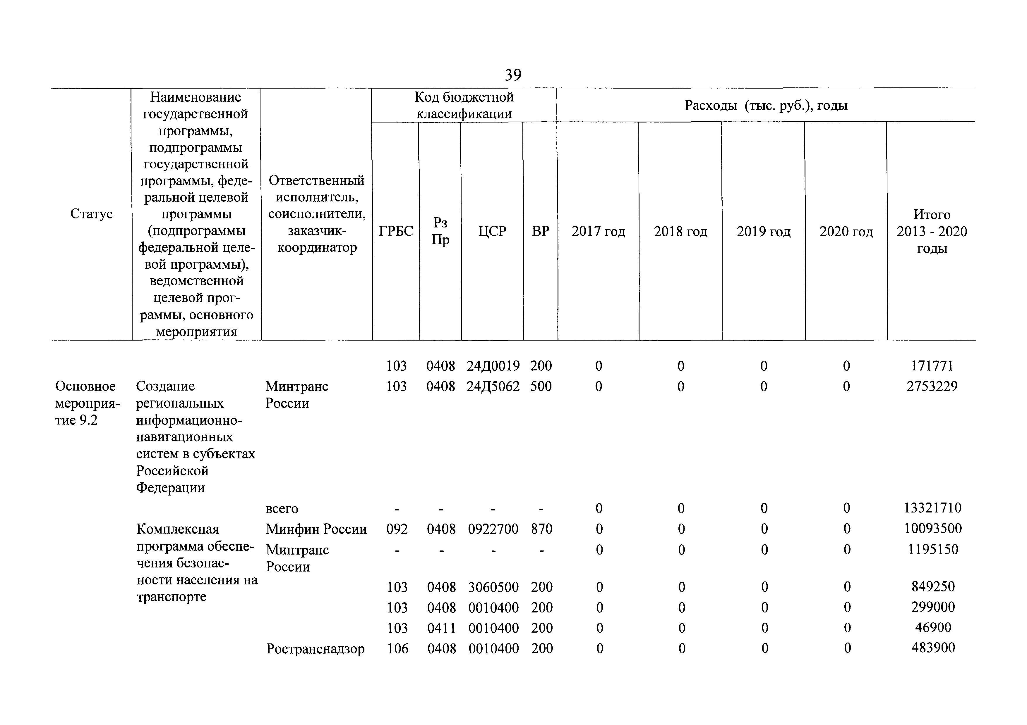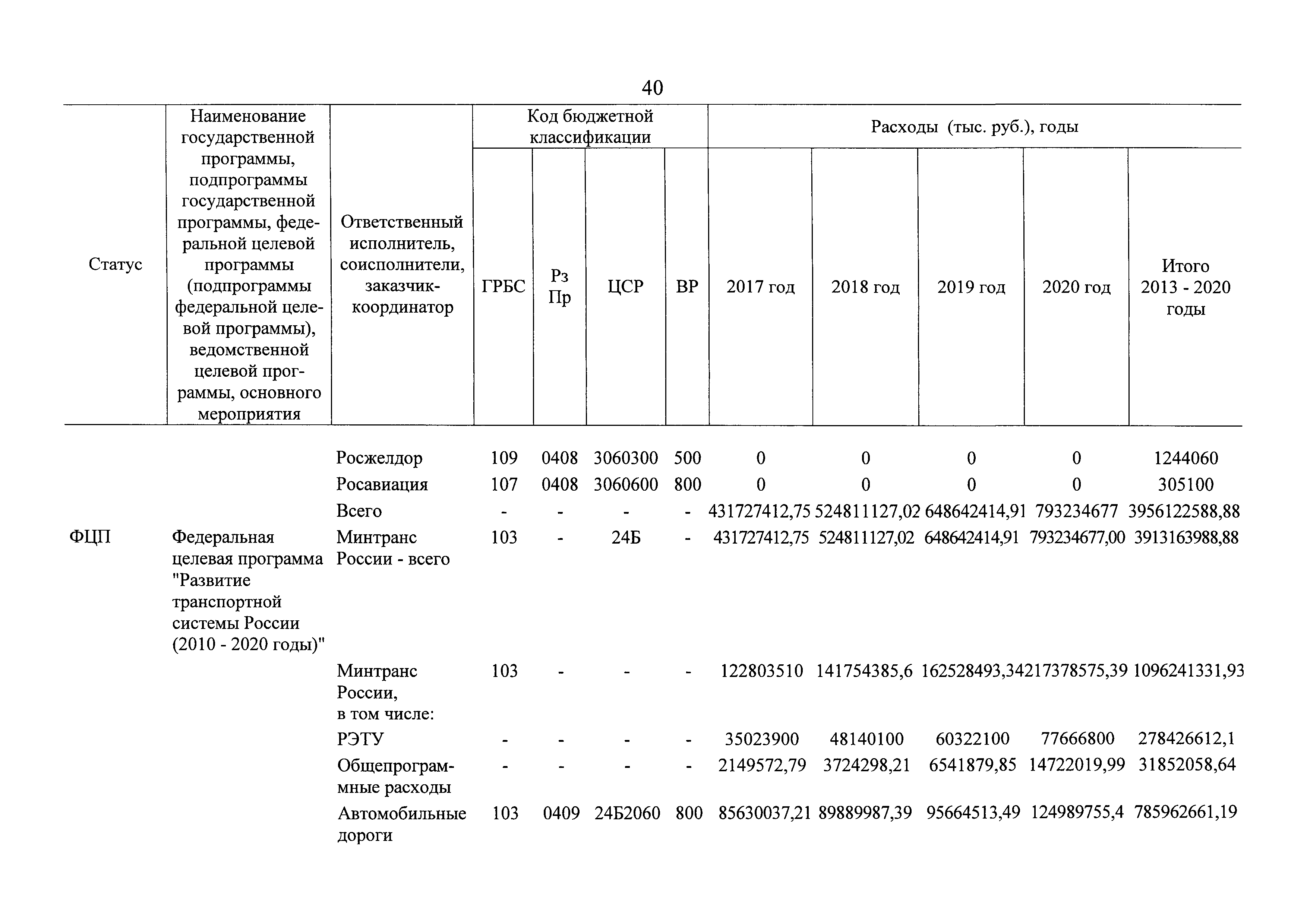 | Оглавление: | Паспорт государственной программы Российской Федерации "Развитие транспортной системы" Паспорт подпрограммы "Магистральный железнодорожный транспорт" государственной программы Российской Федерации "Развитие транспортной системы" Паспорт подпрограммы "Дорожное хозяйство" государственной программы Российской Федерации "Развитие транспортной системы" Паспорт подпрограммы "Гражданская авиация и аэронавигационное обслуживание" государственной программы Российской Федерации "Развитие транспортной системы" Паспорт подпрограммы "Морской и речной транспорт" государственной программы Российской Федерации "Развитие транспортной системы" Паспорт подпрограммы "Надзор в сфере транспорта" государственной программы Российской Федерации "Развитие транспортной системы" Паспорт подпрограммы "Развитие скоростных автомобильных дорог на условиях государственно-частного партнерства" государственной программы Российской Федерации "Развитие транспортной системы" Паспорт подпрограммы "Транспортное обеспечение XXII Олимпийских зимних игр 2014 года в г. Сочи и XXVII Всемирной летней универсиады 2013 года в г. Казани" государственной программы Российской Федерации "Развитие транспортной системы" Паспорт подпрограммы "Обеспечение реализации государственной программы Российской Федерации "Развитие транспортной системы" государственной программы Российской Федерации "Развитие транспортной системы" Паспорт подпрограммы "Развитие гражданского использования системы ГЛОНАСС на транспорте" государственной программы Российской Федерации "Развитие транспортной системы" Паспорт федеральной целевой программы "Развитие транспортной системы России (2010 - 2020 годы)" Паспорт федеральной целевой программы "Модернизация Единой системы организации воздушного движения Российской Федерации (2009 - 2020 годы)" Паспорт комплексной программы обеспечения безопасности населения на транспорте Приоритеты и цели государственной политики, а также общие требования к государственной политике субъектов Российской Федерации в сфере транспортного комплекса Приложение № 1. Сведения о целевых индикаторах и показателях государственной программы Российской Федерации "Развитие транспортной системы" Приложение № 2. Сведения о целевых индикаторах и показателях государственной программы Российской Федерации "Развитие транспортной системы" по субъектам Российской Федерации Приложение № 3. Перечень основных мероприятий государственной программы Российской Федерации "Развитие транспортной системы" Приложение № 4. Основные меры правового регулирования в сфере реализации государственной программы Российской Федерации "Развитие транспортной системы" Приложение № 5. Информация по финансовому обеспечению государственной программы Российской Федерации "Развитие транспортной системы" за счет средств федерального бюджета |