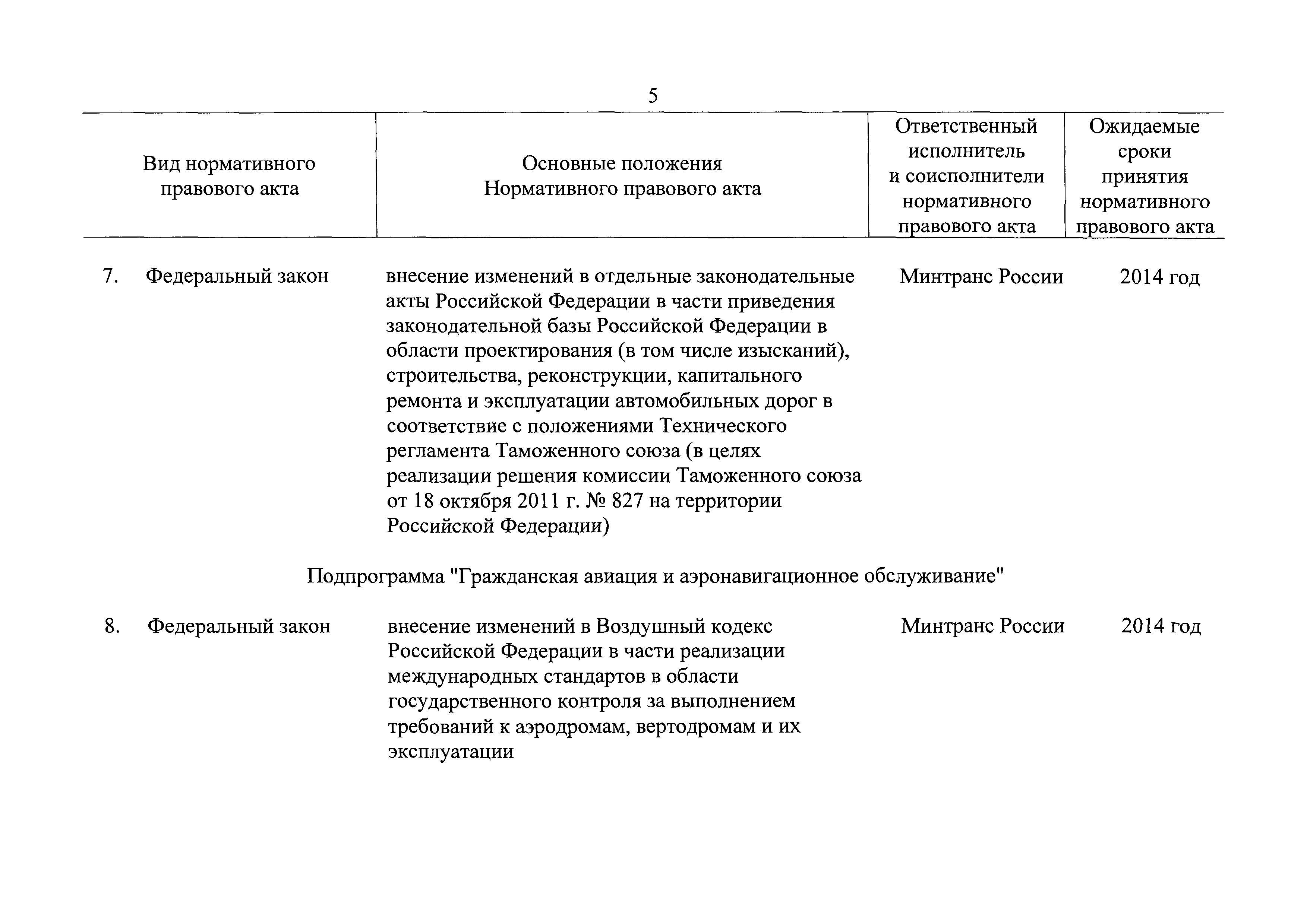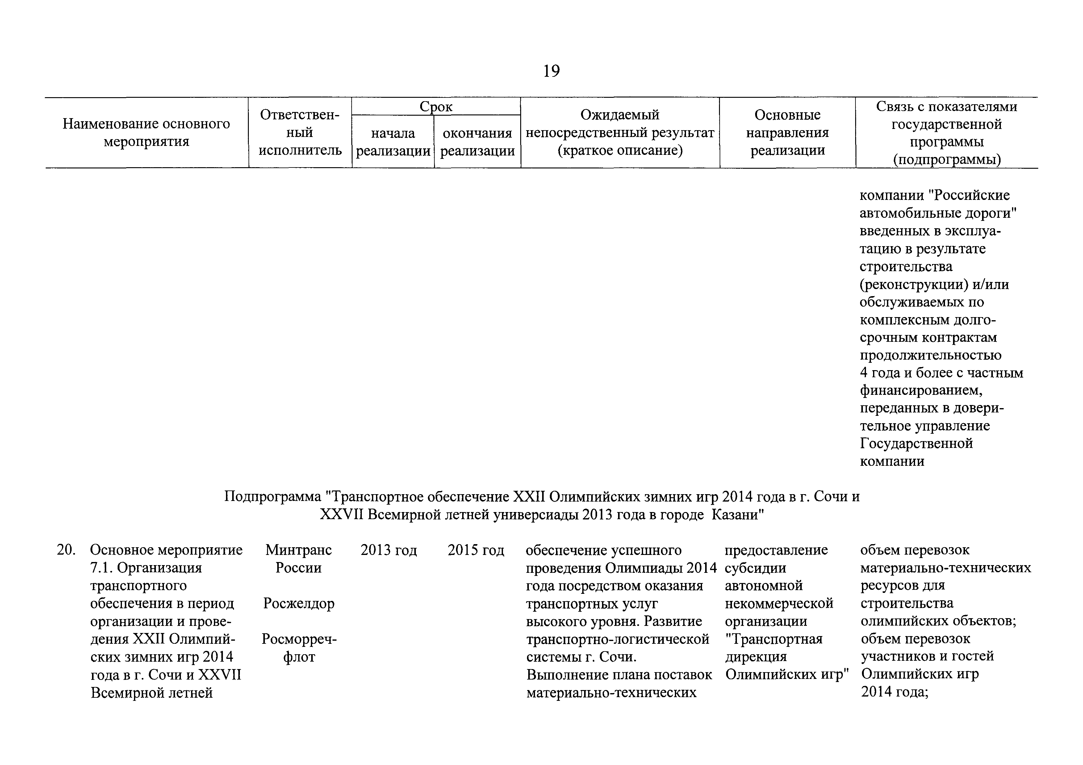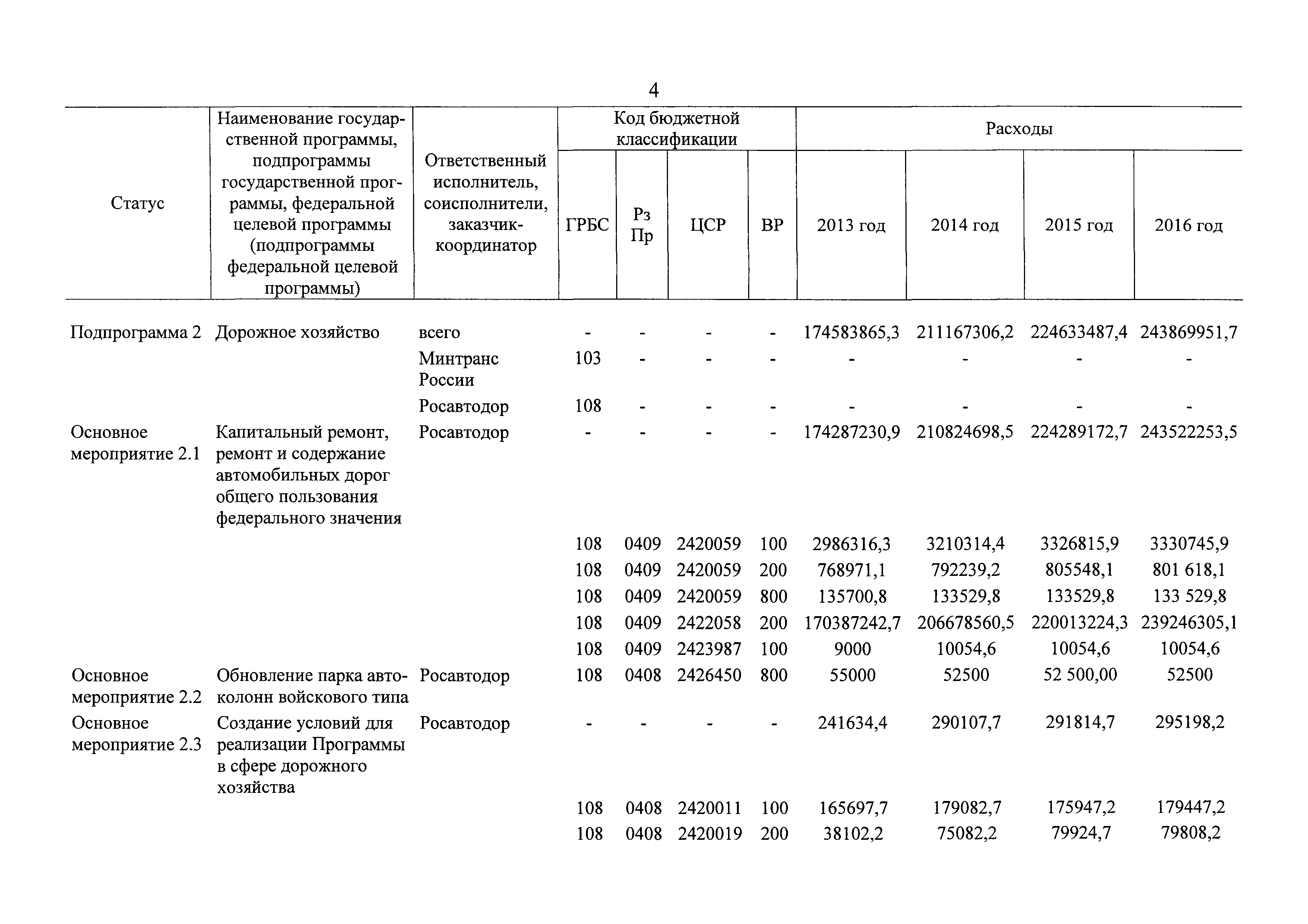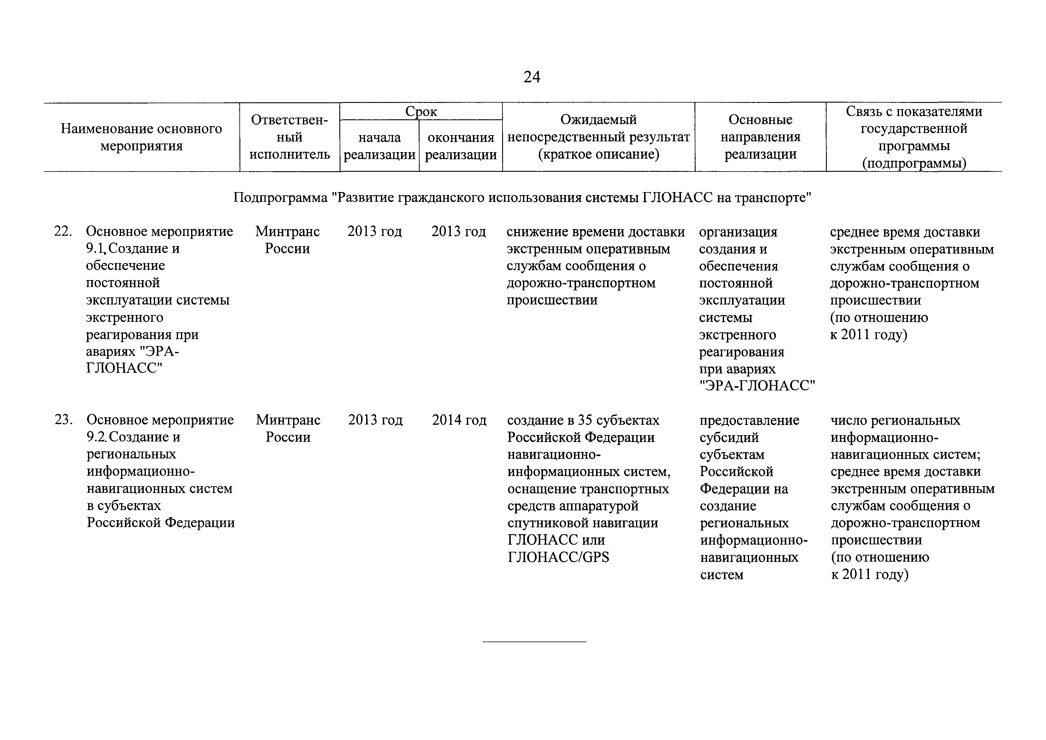 | Оглавление: | Паспорт государственной программы Российской Федерации "Развитие транспортной системы" Паспорт подпрограммы "Магистральный железнодорожный транспорт" государственной программы Российской Федерации "Развитие транспортной системы" Паспорт подпрограммы "Дорожное хозяйство" государственной программы Российской Федерации "Развитие транспортной системы" Паспорт подпрограммы "Гражданская авиация и аэронавигационное обслуживание" государственной программы Российской Федерации "Развитие транспортной системы" Паспорт подпрограммы "Морской и речной транспорт" государственной программы Российской Федерации "Развитие транспортной системы" Паспорт подпрограммы "Надзор в сфере транспорта" государственной программы Российской Федерации "Развитие транспортной системы" Паспорт подпрограммы "Развитие скоростных автомобильных дорог на условиях государственно-частного партнерства" государственной программы Российской Федерации "Развитие транспортной системы" Паспорт подпрограммы "Транспортное обеспечение XXII Олимпийских зимних игр 2014 года в г. Сочи и XXVII Всемирной летней универсиады 2013 года в г. Казани" государственной программы Российской Федерации "Развитие транспортной системы" Паспорт подпрограммы "Обеспечение реализации государственной программы Российской Федерации "Развитие транспортной системы" государственной программы Российской Федерации "Развитие транспортной системы" Паспорт подпрограммы "Развитие гражданского использования системы ГЛОНАСС на транспорте" государственной программы Российской Федерации "Развитие транспортной системы" Паспорт федеральной целевой программы "Развитие транспортной системы России (2010 - 2020 годы)" Паспорт федеральной целевой программы "Модернизация Единой системы организации воздушного движения Российской Федерации (2009 - 2020 годы)" Паспорт комплексной программы обеспечения безопасности населения на транспорте Приоритеты и цели государственной политики, а также общие требования к государственной политике субъектов Российской Федерации в сфере транспортного комплекса Приложение № 1. Сведения о целевых индикаторах и показателях государственной программы Российской Федерации "Развитие транспортной системы" Приложение № 2. Сведения о целевых индикаторах и показателях государственной программы Российской Федерации "Развитие транспортной системы" по субъектам Российской Федерации Приложение № 3. Перечень основных мероприятий государственной программы Российской Федерации "Развитие транспортной системы" Приложение № 4. Основные меры правового регулирования в сфере реализации государственной программы Российской Федерации "Развитие транспортной системы" Приложение № 5. Информация по финансовому обеспечению государственной программы Российской Федерации "Развитие транспортной системы" за счет средств федерального бюджета |
