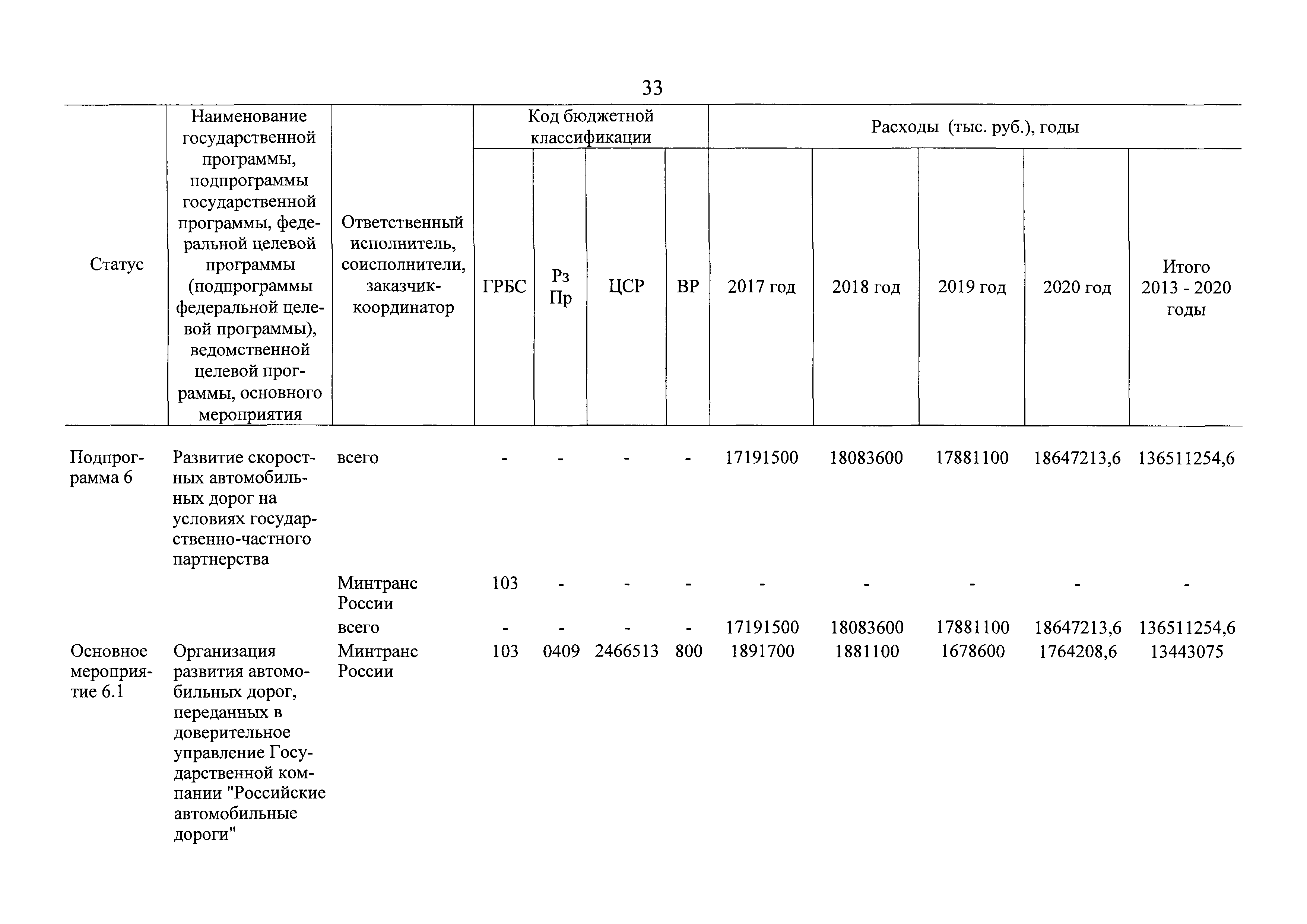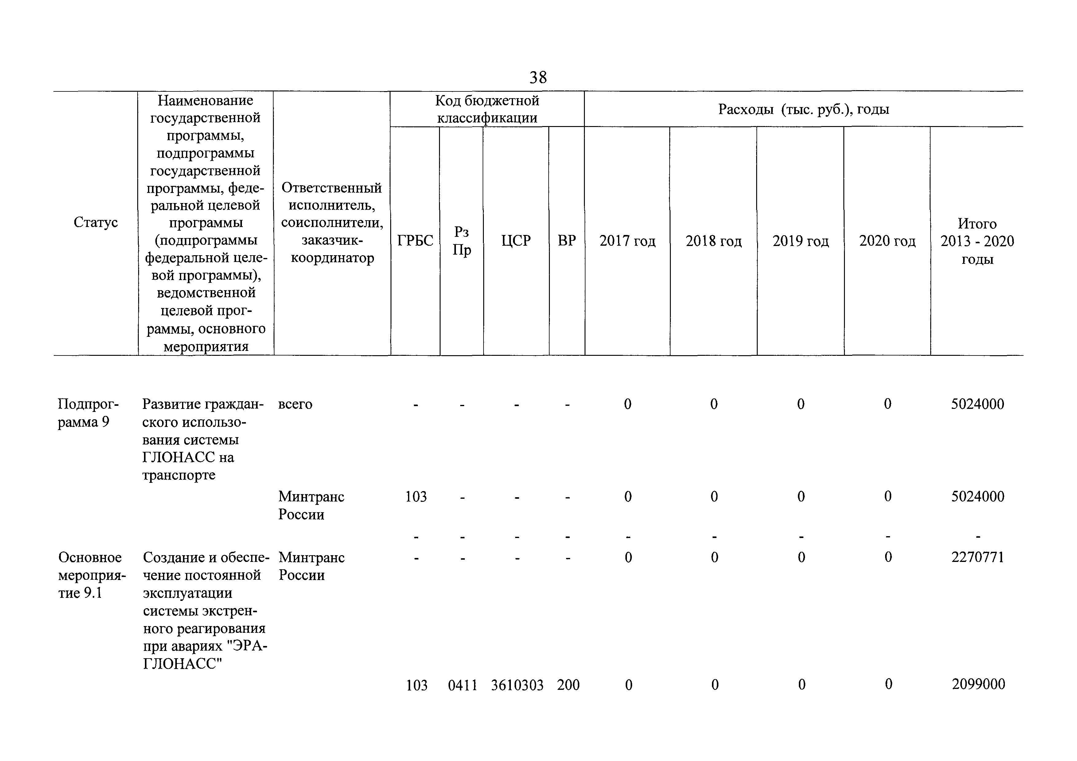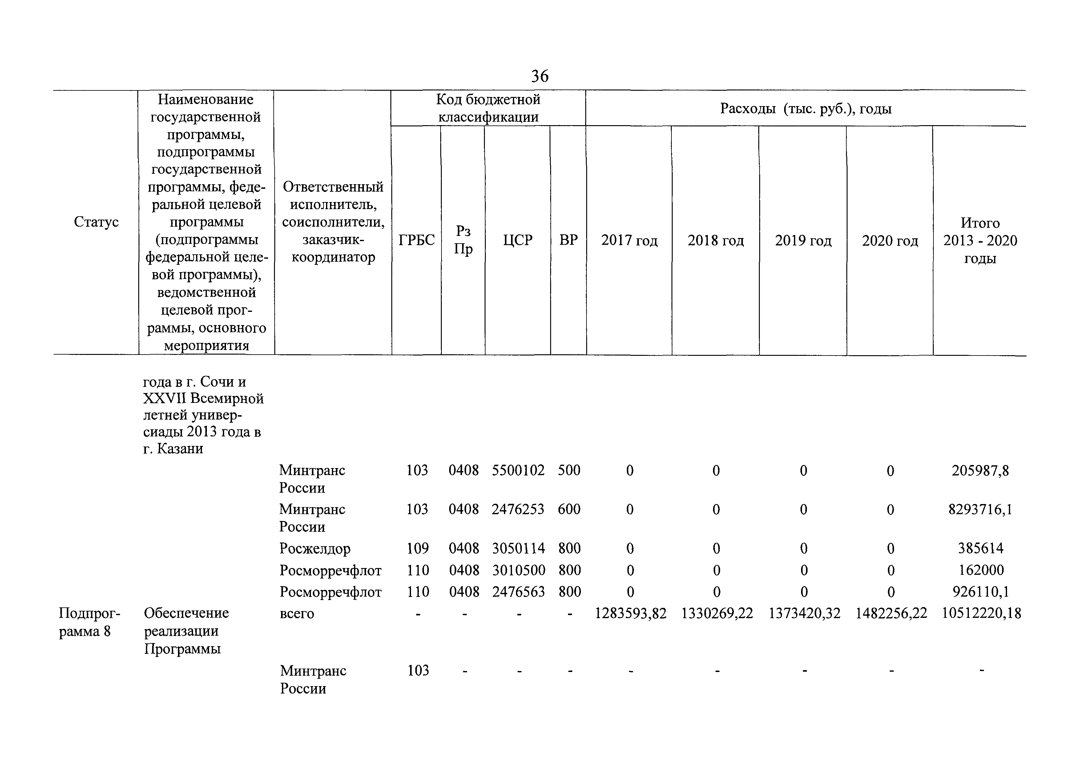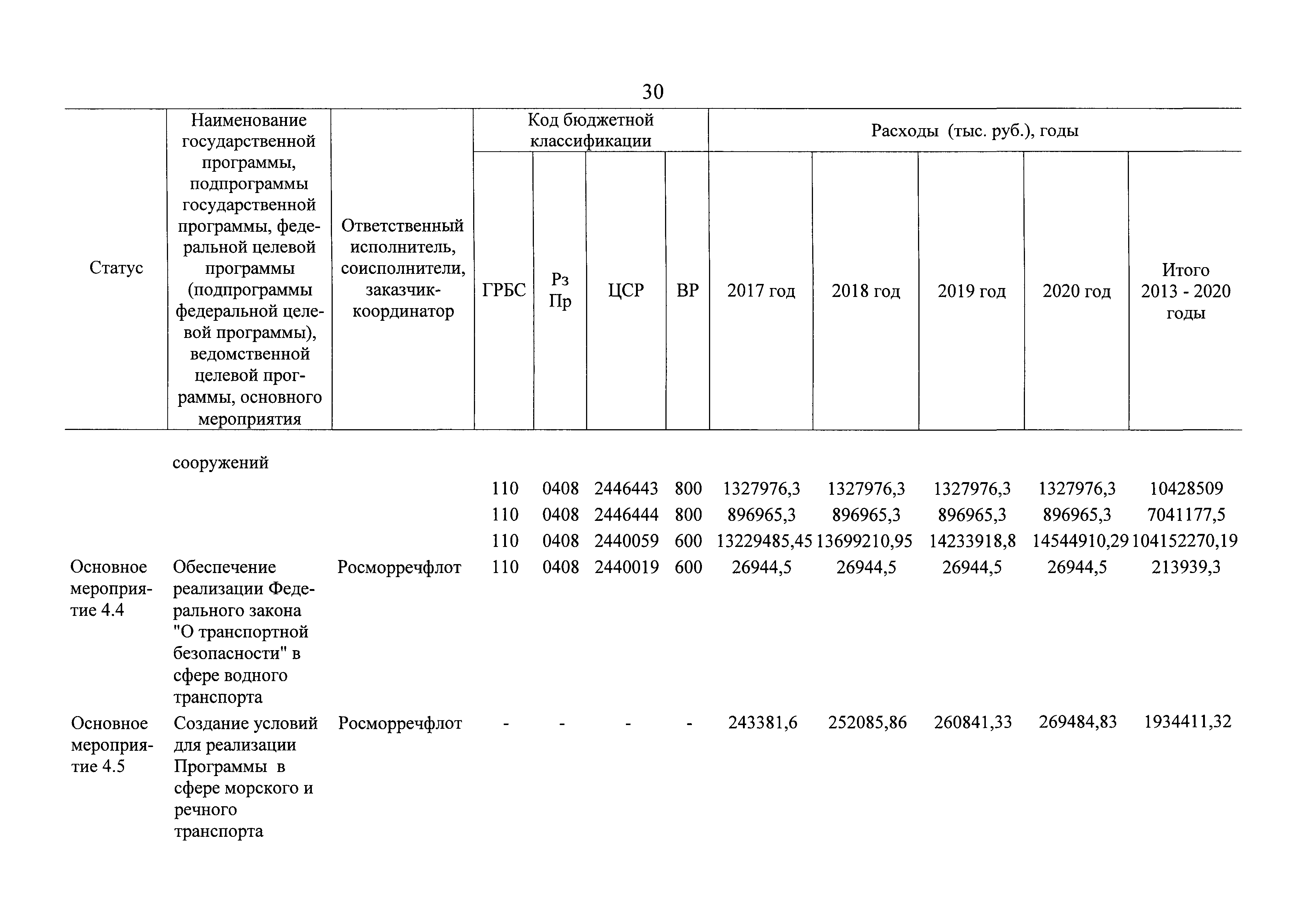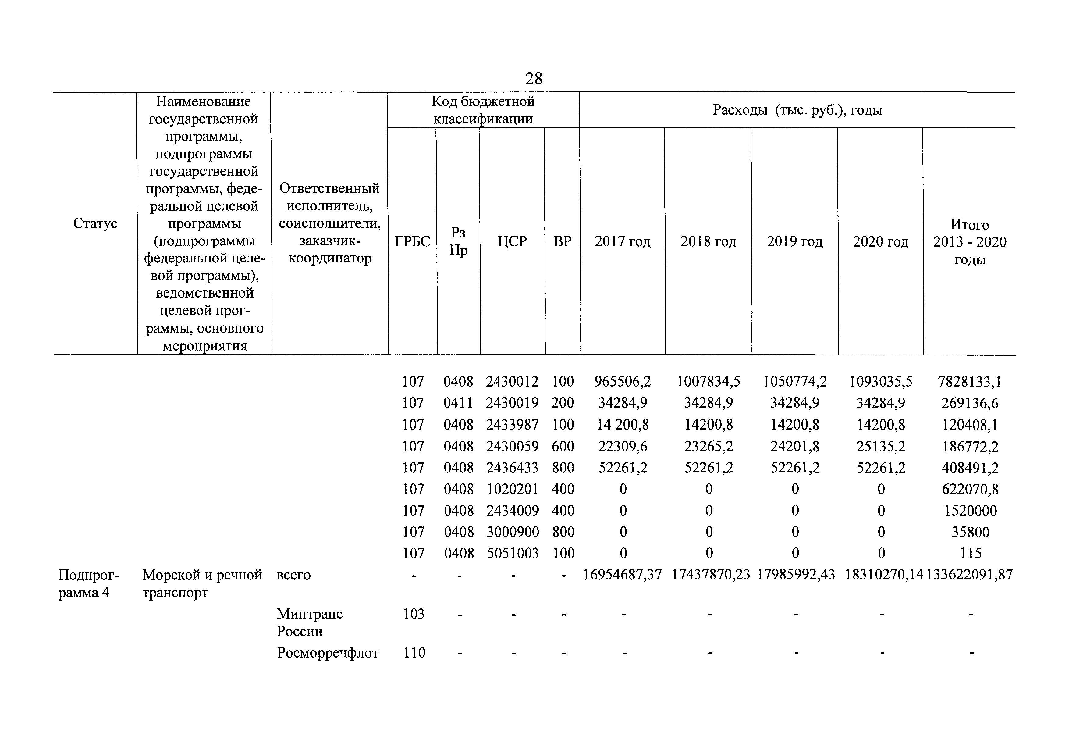 | Оглавление: | Паспорт государственной программы Российской Федерации "Развитие транспортной системы" Паспорт подпрограммы "Магистральный железнодорожный транспорт" государственной программы Российской Федерации "Развитие транспортной системы" Паспорт подпрограммы "Дорожное хозяйство" государственной программы Российской Федерации "Развитие транспортной системы" Паспорт подпрограммы "Гражданская авиация и аэронавигационное обслуживание" государственной программы Российской Федерации "Развитие транспортной системы" Паспорт подпрограммы "Морской и речной транспорт" государственной программы Российской Федерации "Развитие транспортной системы" Паспорт подпрограммы "Надзор в сфере транспорта" государственной программы Российской Федерации "Развитие транспортной системы" Паспорт подпрограммы "Развитие скоростных автомобильных дорог на условиях государственно-частного партнерства" государственной программы Российской Федерации "Развитие транспортной системы" Паспорт подпрограммы "Транспортное обеспечение XXII Олимпийских зимних игр 2014 года в г. Сочи и XXVII Всемирной летней универсиады 2013 года в г. Казани" государственной программы Российской Федерации "Развитие транспортной системы" Паспорт подпрограммы "Обеспечение реализации государственной программы Российской Федерации "Развитие транспортной системы" государственной программы Российской Федерации "Развитие транспортной системы" Паспорт подпрограммы "Развитие гражданского использования системы ГЛОНАСС на транспорте" государственной программы Российской Федерации "Развитие транспортной системы" Паспорт федеральной целевой программы "Развитие транспортной системы России (2010 - 2020 годы)" Паспорт федеральной целевой программы "Модернизация Единой системы организации воздушного движения Российской Федерации (2009 - 2020 годы)" Паспорт комплексной программы обеспечения безопасности населения на транспорте Приоритеты и цели государственной политики, а также общие требования к государственной политике субъектов Российской Федерации в сфере транспортного комплекса Приложение № 1. Сведения о целевых индикаторах и показателях государственной программы Российской Федерации "Развитие транспортной системы" Приложение № 2. Сведения о целевых индикаторах и показателях государственной программы Российской Федерации "Развитие транспортной системы" по субъектам Российской Федерации Приложение № 3. Перечень основных мероприятий государственной программы Российской Федерации "Развитие транспортной системы" Приложение № 4. Основные меры правового регулирования в сфере реализации государственной программы Российской Федерации "Развитие транспортной системы" Приложение № 5. Информация по финансовому обеспечению государственной программы Российской Федерации "Развитие транспортной системы" за счет средств федерального бюджета |