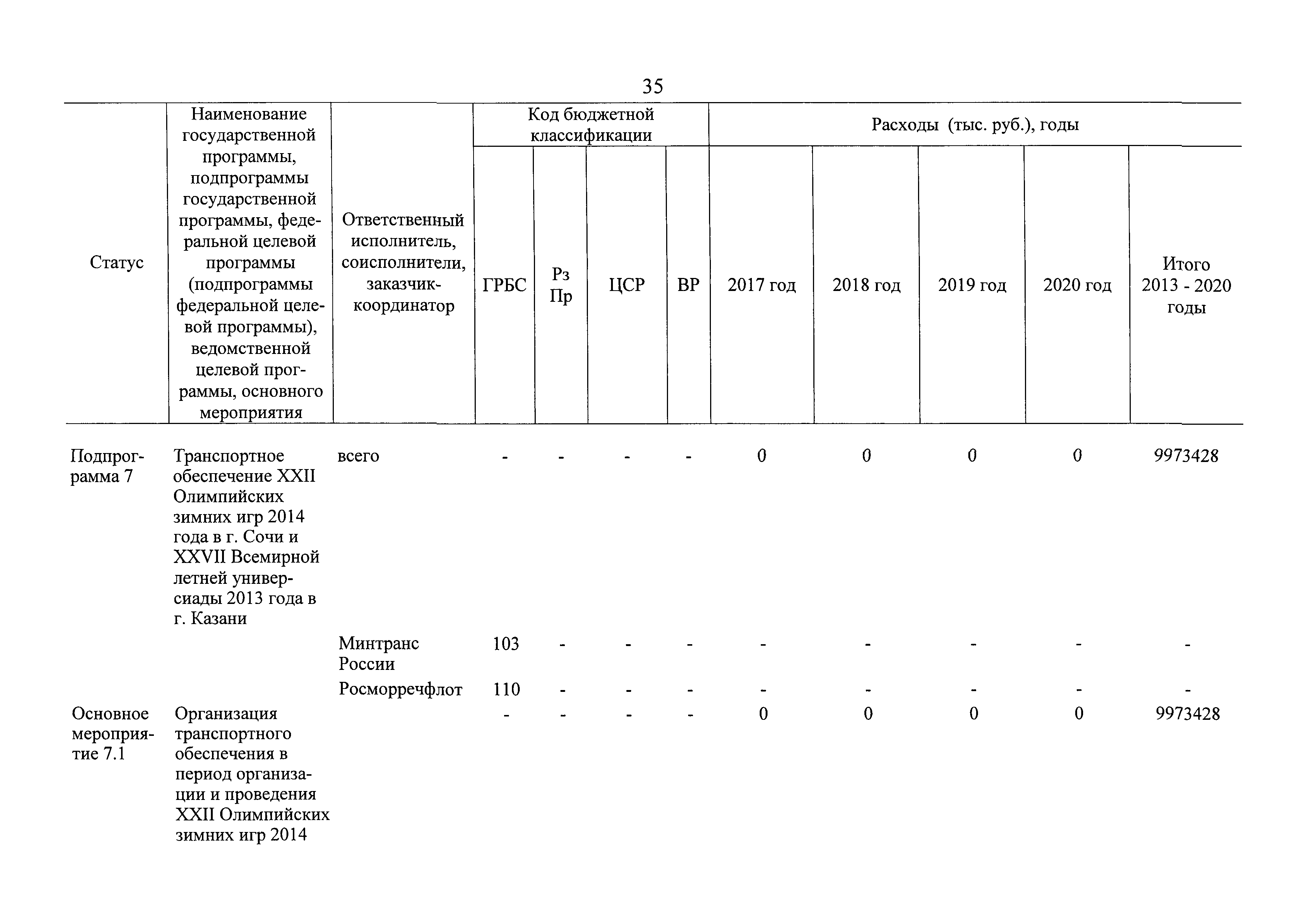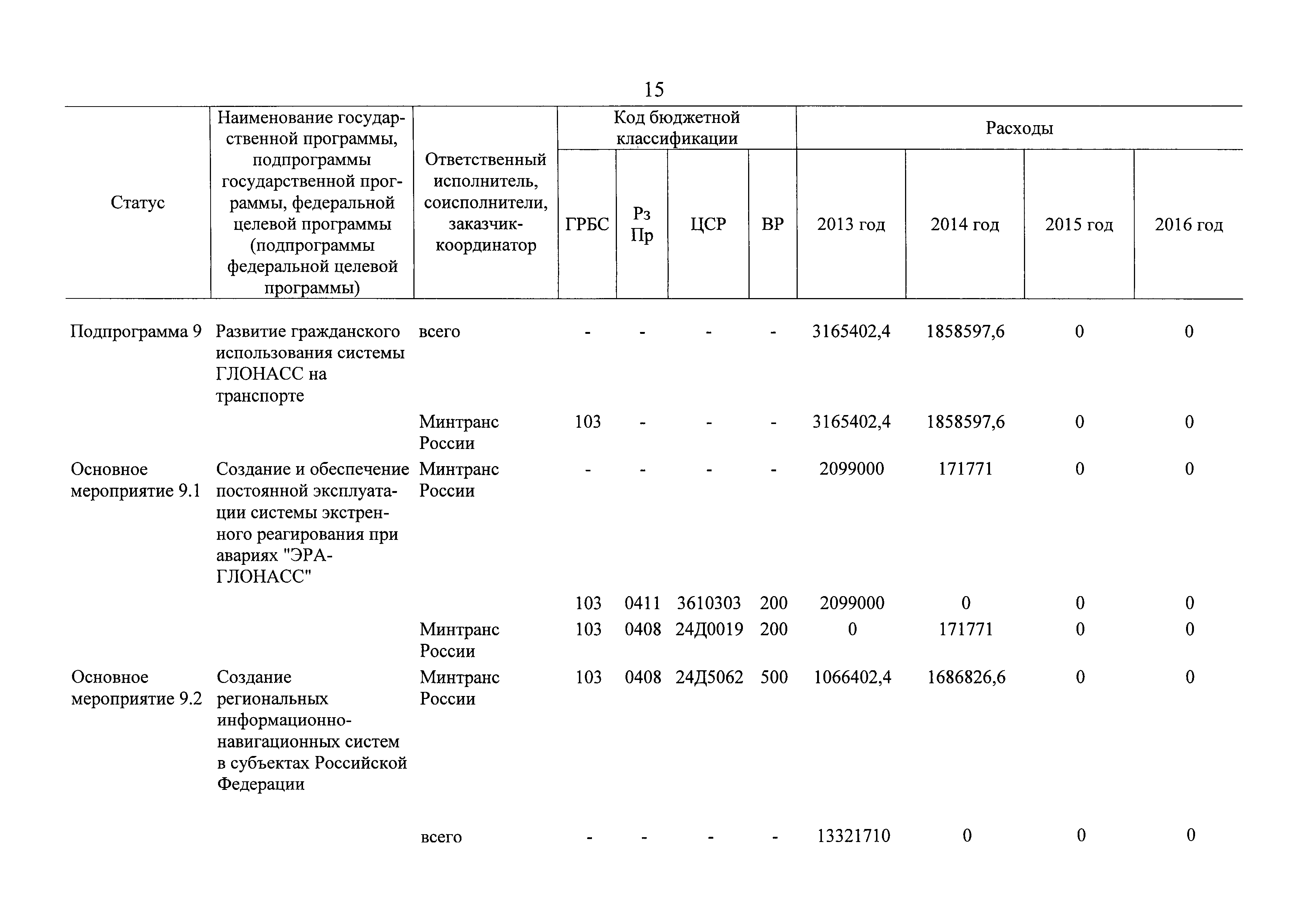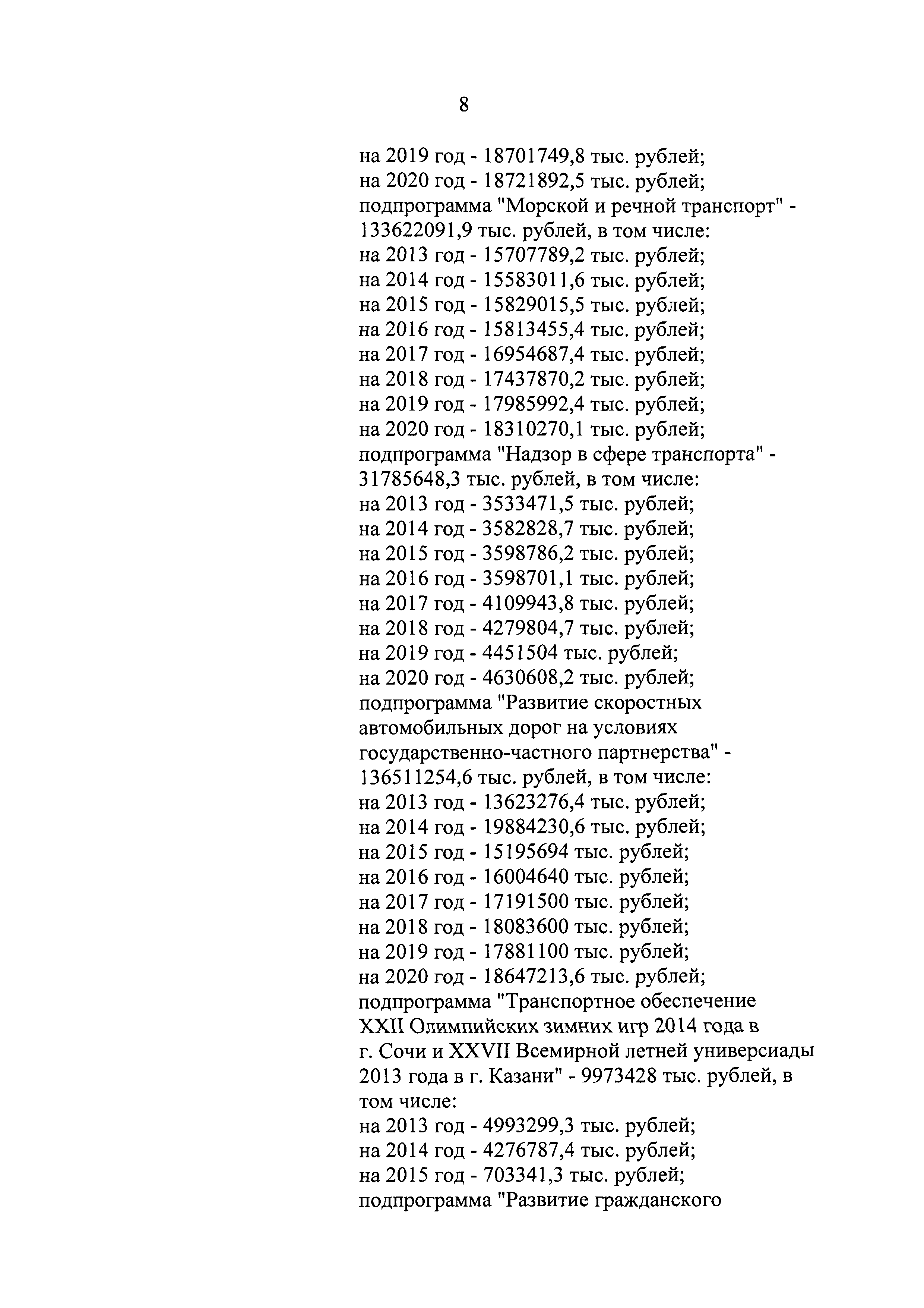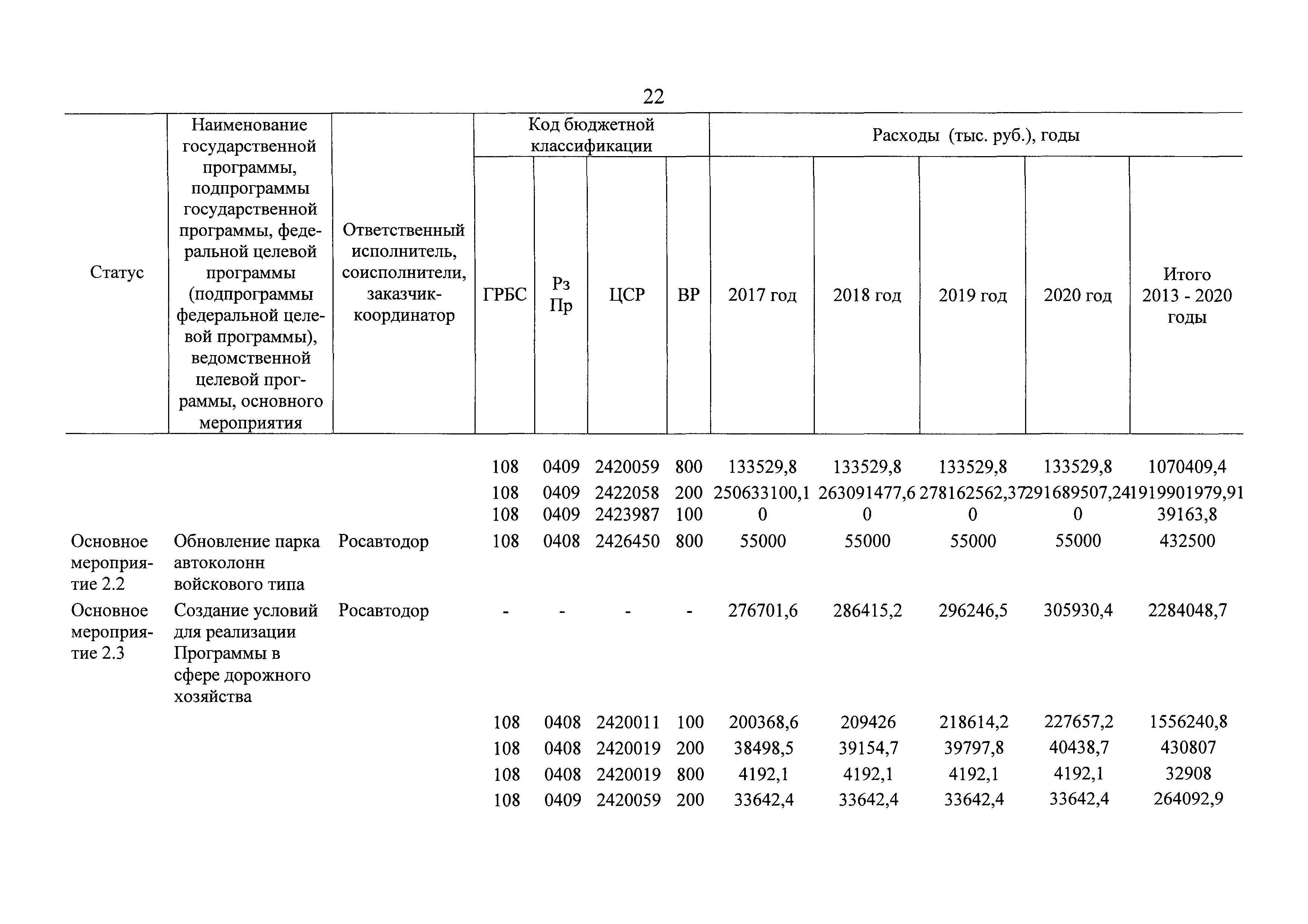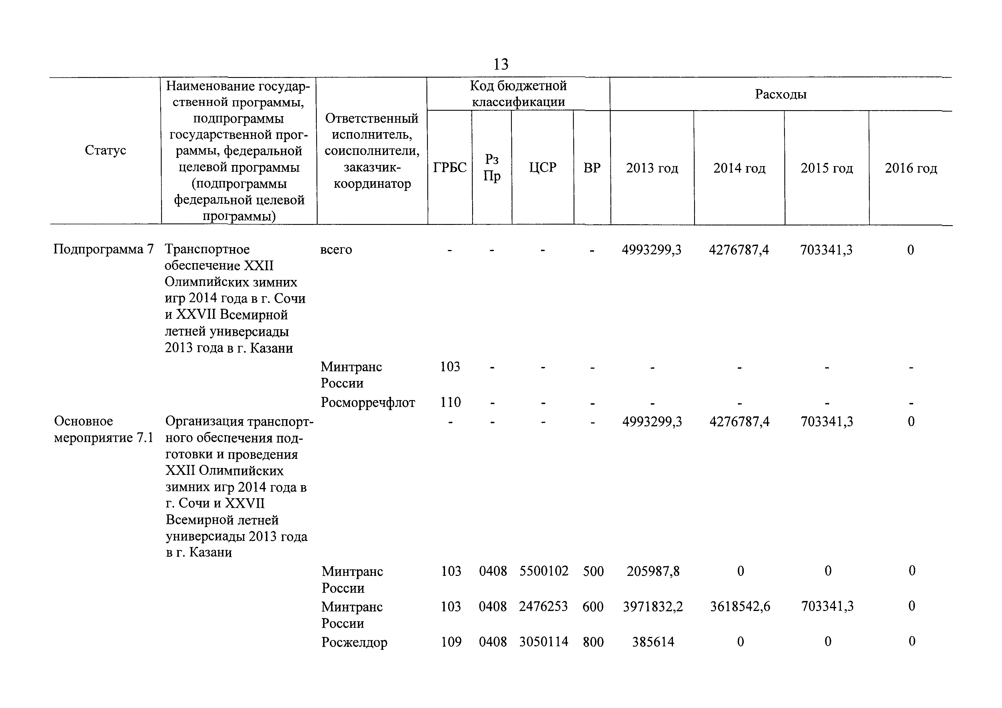 | Оглавление: | Паспорт государственной программы Российской Федерации "Развитие транспортной системы" Паспорт подпрограммы "Магистральный железнодорожный транспорт" государственной программы Российской Федерации "Развитие транспортной системы" Паспорт подпрограммы "Дорожное хозяйство" государственной программы Российской Федерации "Развитие транспортной системы" Паспорт подпрограммы "Гражданская авиация и аэронавигационное обслуживание" государственной программы Российской Федерации "Развитие транспортной системы" Паспорт подпрограммы "Морской и речной транспорт" государственной программы Российской Федерации "Развитие транспортной системы" Паспорт подпрограммы "Надзор в сфере транспорта" государственной программы Российской Федерации "Развитие транспортной системы" Паспорт подпрограммы "Развитие скоростных автомобильных дорог на условиях государственно-частного партнерства" государственной программы Российской Федерации "Развитие транспортной системы" Паспорт подпрограммы "Транспортное обеспечение XXII Олимпийских зимних игр 2014 года в г. Сочи и XXVII Всемирной летней универсиады 2013 года в г. Казани" государственной программы Российской Федерации "Развитие транспортной системы" Паспорт подпрограммы "Обеспечение реализации государственной программы Российской Федерации "Развитие транспортной системы" государственной программы Российской Федерации "Развитие транспортной системы" Паспорт подпрограммы "Развитие гражданского использования системы ГЛОНАСС на транспорте" государственной программы Российской Федерации "Развитие транспортной системы" Паспорт федеральной целевой программы "Развитие транспортной системы России (2010 - 2020 годы)" Паспорт федеральной целевой программы "Модернизация Единой системы организации воздушного движения Российской Федерации (2009 - 2020 годы)" Паспорт комплексной программы обеспечения безопасности населения на транспорте Приоритеты и цели государственной политики, а также общие требования к государственной политике субъектов Российской Федерации в сфере транспортного комплекса Приложение № 1. Сведения о целевых индикаторах и показателях государственной программы Российской Федерации "Развитие транспортной системы" Приложение № 2. Сведения о целевых индикаторах и показателях государственной программы Российской Федерации "Развитие транспортной системы" по субъектам Российской Федерации Приложение № 3. Перечень основных мероприятий государственной программы Российской Федерации "Развитие транспортной системы" Приложение № 4. Основные меры правового регулирования в сфере реализации государственной программы Российской Федерации "Развитие транспортной системы" Приложение № 5. Информация по финансовому обеспечению государственной программы Российской Федерации "Развитие транспортной системы" за счет средств федерального бюджета |