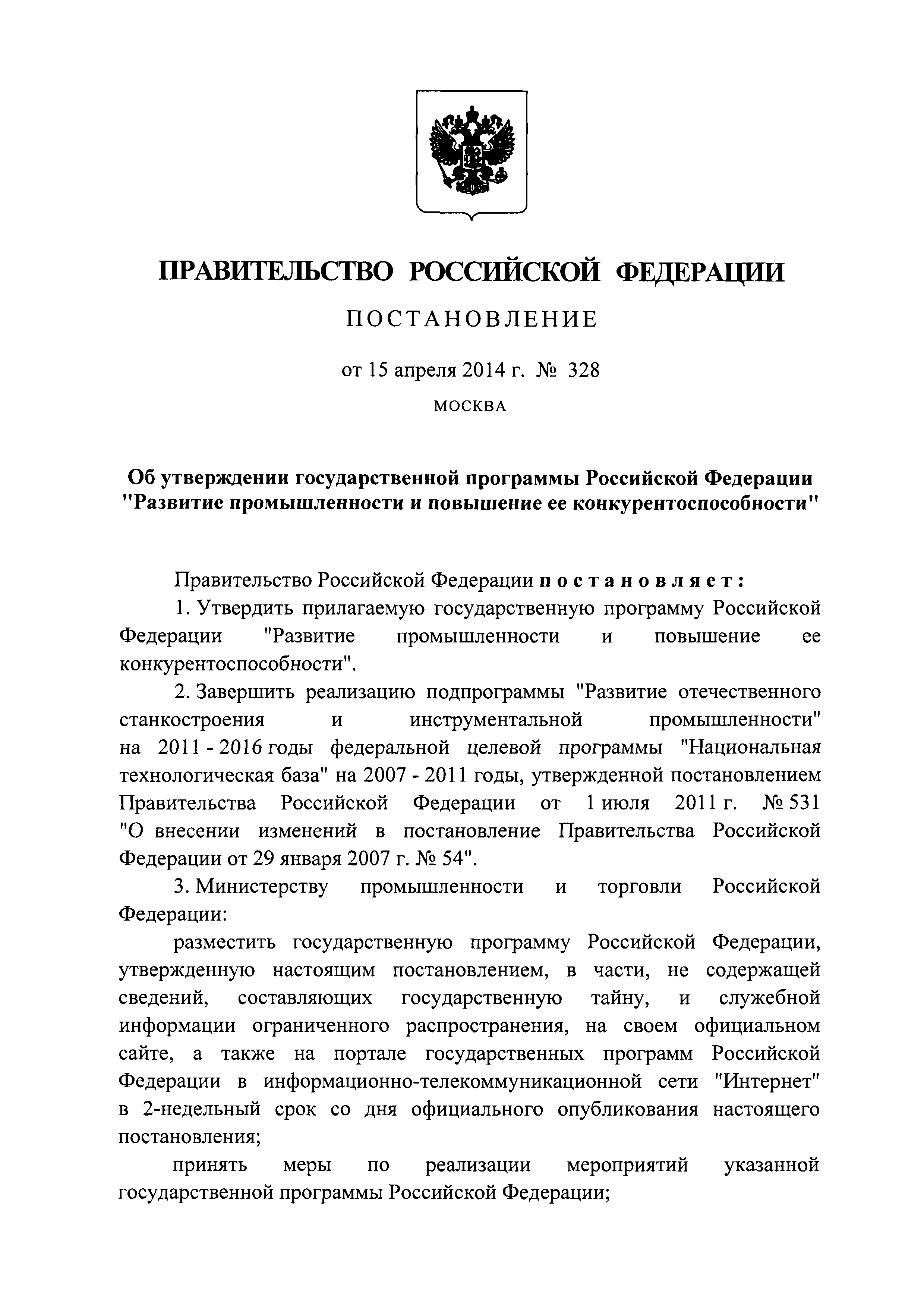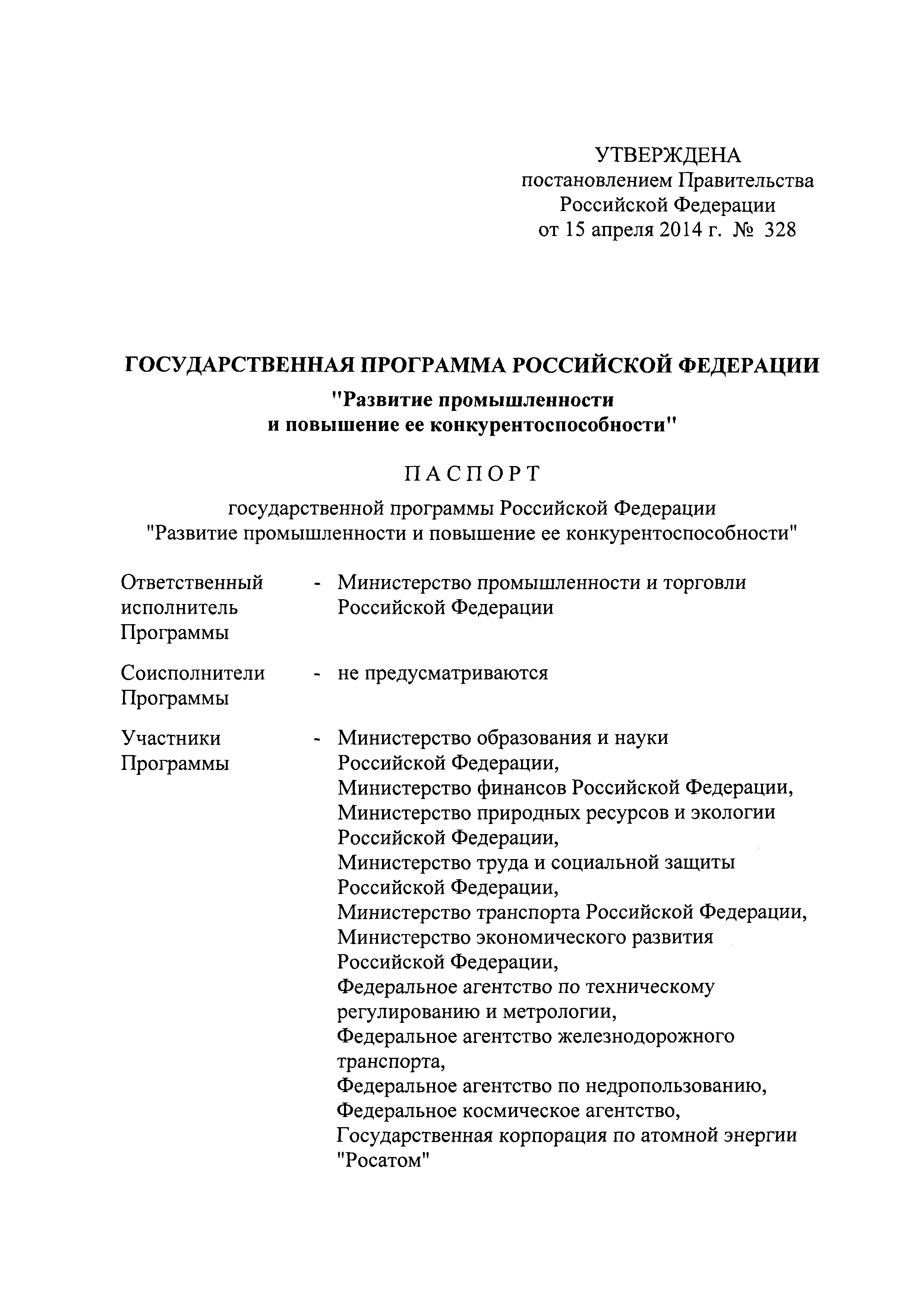 | Утверждён: | 15.04.2014 Правительство Российской Федерации (328) |
