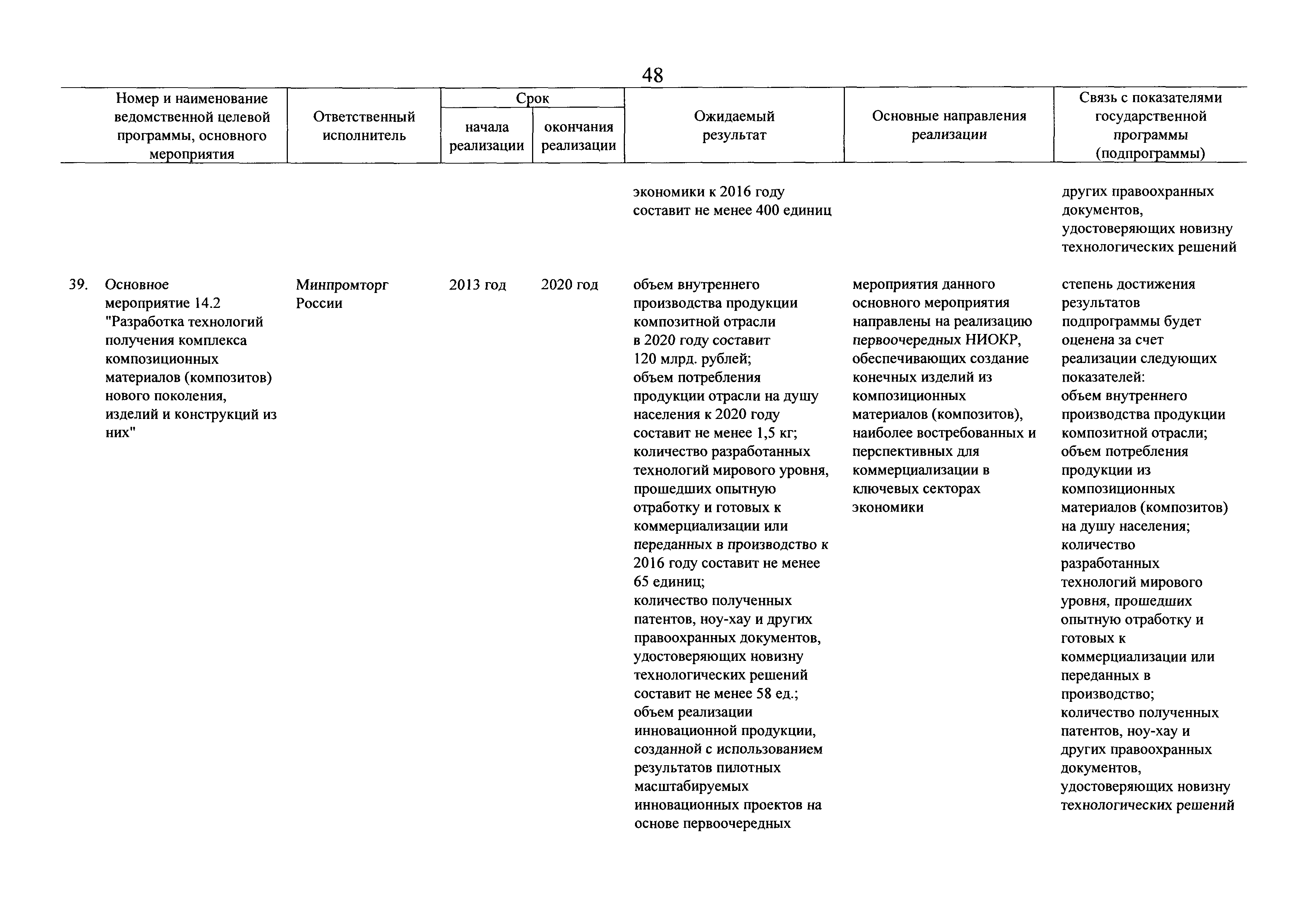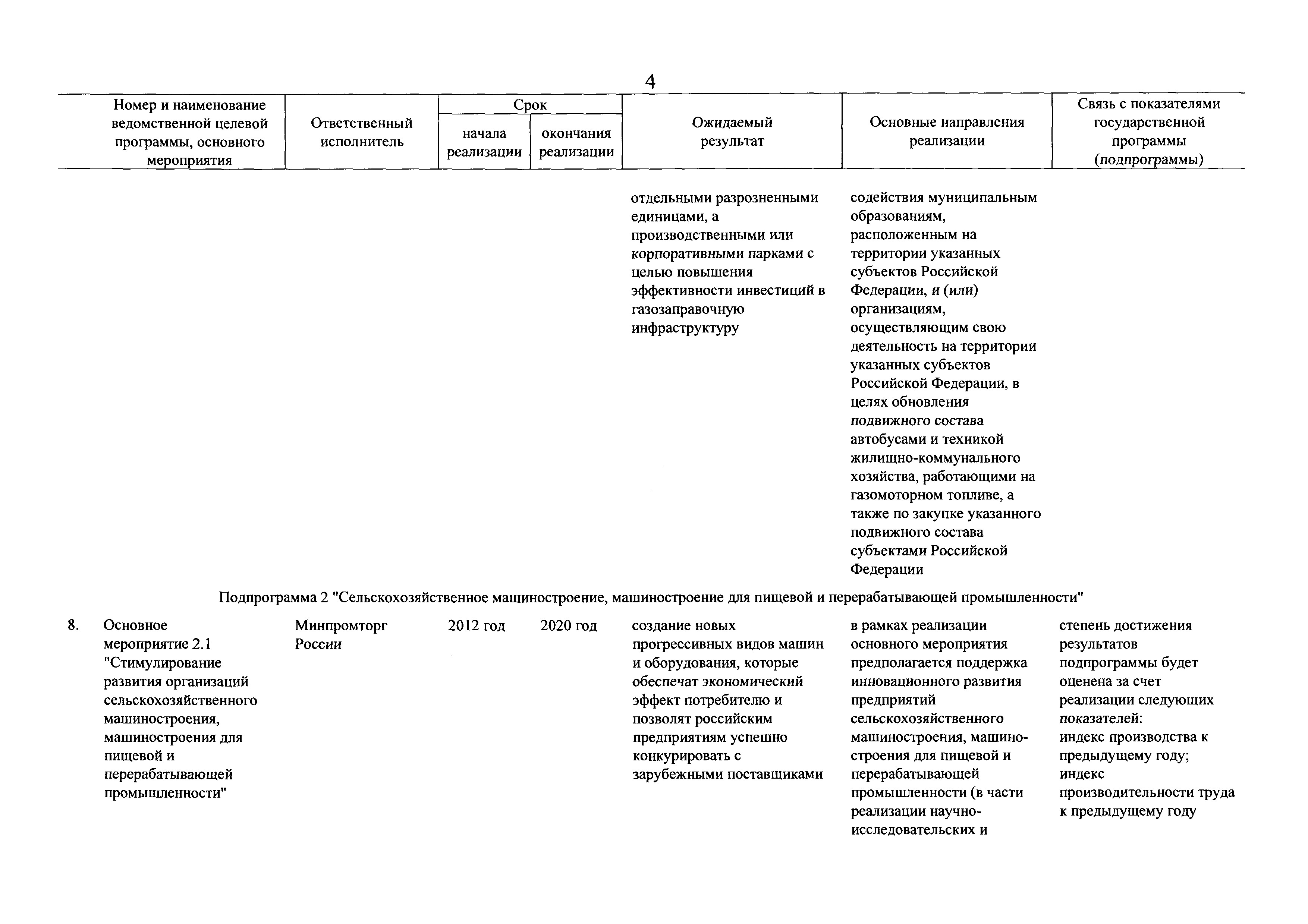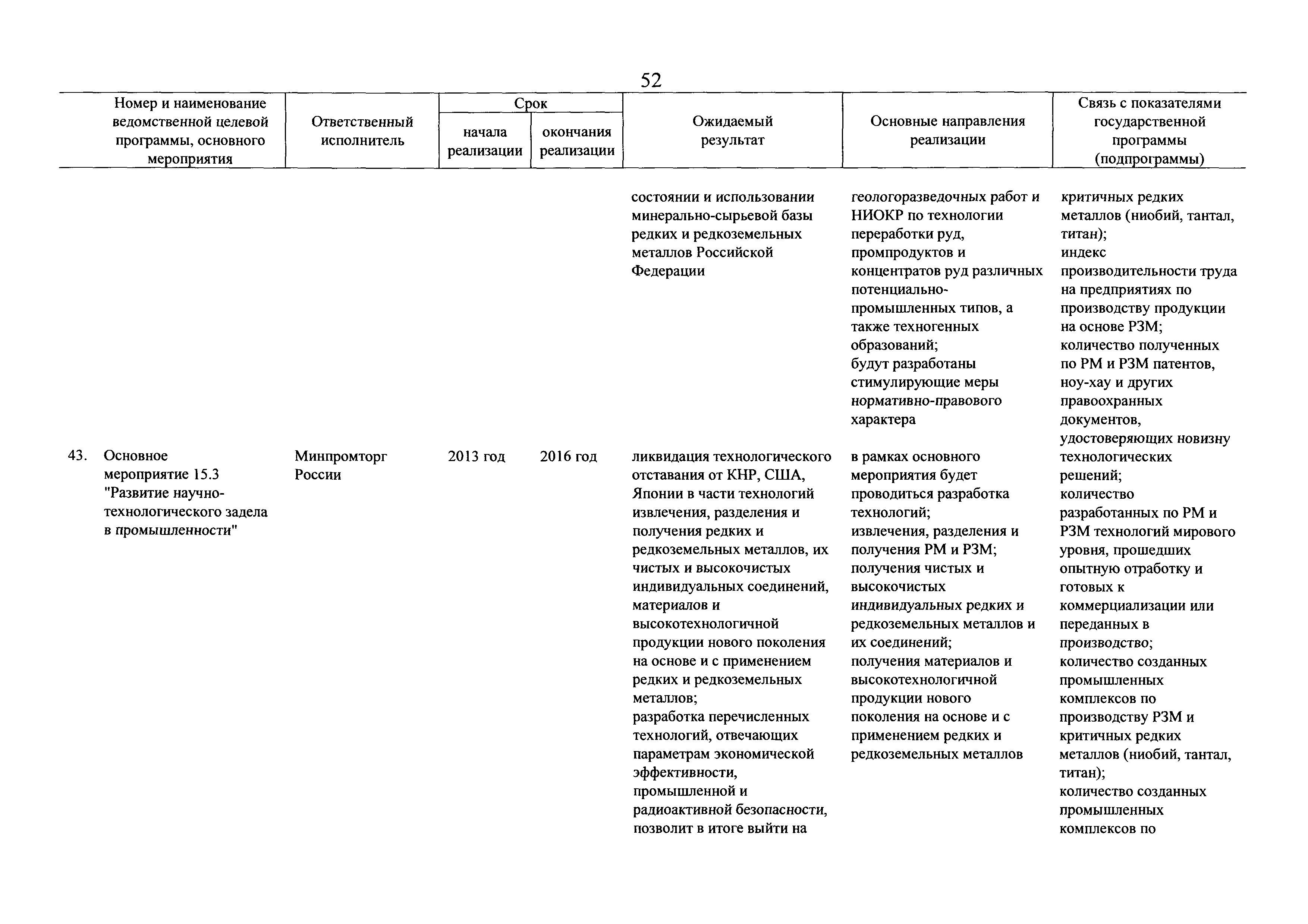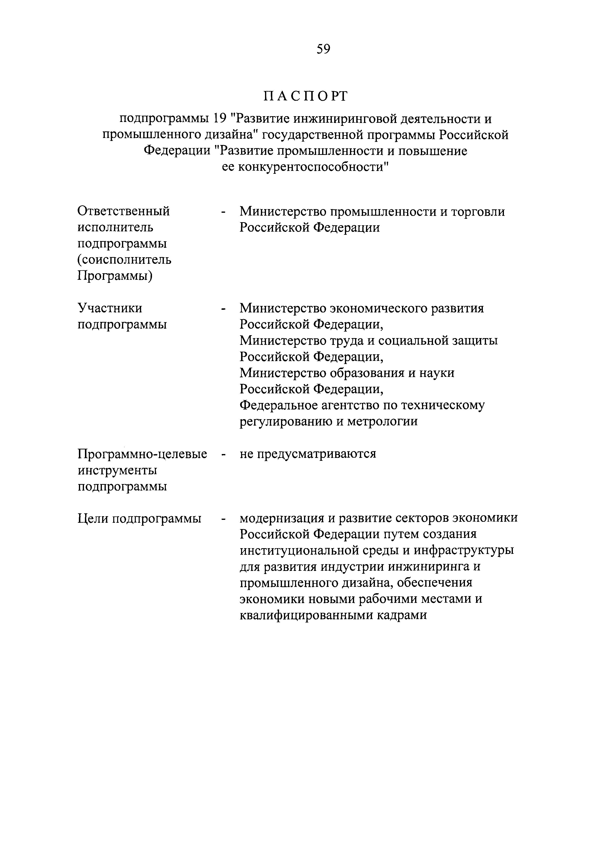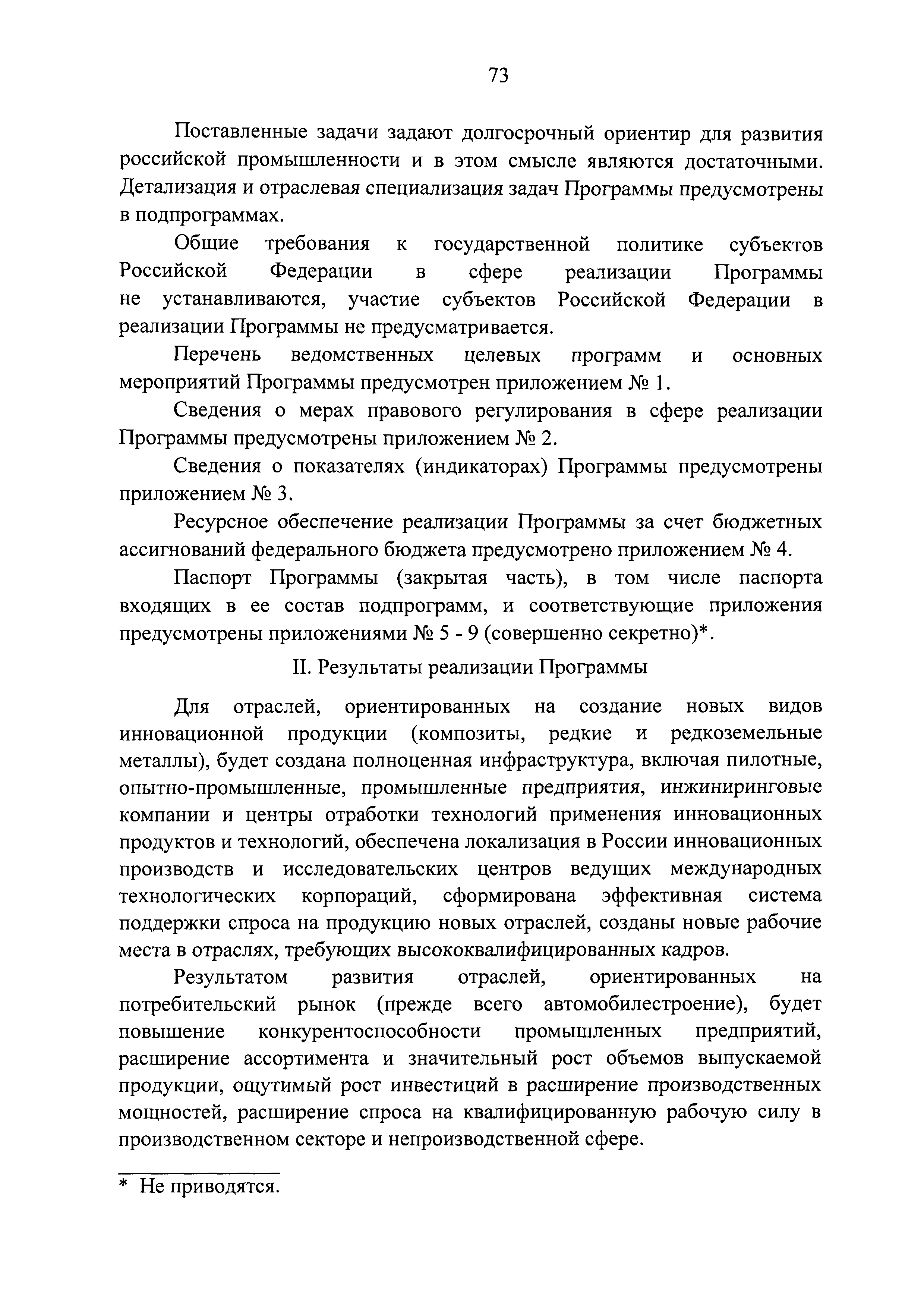 | Оглавление: | Паспорт государственной программы Российской Федерации "Развитие промышленности и повышение ее конкурентоспособности" Паспорт подпрограммы 1 "Автомобильная промышленность" государственной программы Российской Федерации "Развитие промышленности и повышение ее конкурентоспособности" Паспорт подпрограммы 2 "Сельскохозяйственное машиностроение" государственной программы Российской Федерации "Развитие промышленности и повышение ее конкурентоспособности" Паспорт подпрограммы 3 "Машиностроение специализированных производств (строительно-дорожная и коммунальная техника, пожарная, аэродромная, лесная техника)" государственной программы Российской Федерации "Развитие промышленности и повышение ее конкурентоспособности" Паспорт подпрограммы 4 "Легкая промышленность и народные художественные промыслы" государственной программы Российской Федерации "Развитие промышленности и повышение ее конкурентоспособности" Паспорт подпрограммы 5 "Ускоренное развитие оборонно-промышленного комплекса" государственной программы Российской Федерации "Развитие промышленности и повышение ее конкурентоспособности" Паспорт подпрограммы 6 "Транспортное машиностроение" государственной программы Российской Федерации "Развитие промышленности и повышение ее конкурентоспособности" Паспорт подпрограммы 7 "Станкоинструментальная промышленность" государственной программы Российской Федерации "Развитие промышленности и повышение ее конкурентоспособности" Паспорт подпрограммы 8 "Тяжелое машиностроение" государственной программы Российской Федерации "Развитие промышленности и повышение ее конкурентоспособности" Паспорт подпрограммы 9 "Силовая электротехника и энергетическое машиностроение" государственной программы Российской Федерации "Развитие промышленности и повышение ее конкурентоспособности" Паспорт подпрограммы 10 "Металлургия" государственной программы Российской Федерации "Развитие промышленности и повышение ее конкурентоспособности" Паспорт подпрограммы 11 "Лесопромышленный комплекс" государственной программы Российской Федерации "Развитие промышленности и повышение ее конкурентоспособности" Паспорт подпрограммы 12 "Развитие системы технического регулирования, стандартизации и обеспечение единства измерений" государственной программы Российской Федерации "Развитие промышленности и повышение ее конкурентоспособности" Паспорт подпрограммы 13 "Химический комплекс" государственной программы Российской Федерации "Развитие промышленности и повышение ее конкурентоспособности" Паспорт подпрограммы 14 "Развитие производства композиционных материалов (композитов) и изделий из них" государственной программы Российской Федерации "Развитие промышленности и повышение ее конкурентоспособности" Паспорт подпрограммы 15 "Развитие промышленности редких и редкоземельных металлов" государственной программы Российской Федерации "Развитие промышленности и повышение ее конкурентоспособности" Паспорт подпрограммы 16 "Современные средства индивидуальной защиты и системы жизнеобеспечения подземного персонала угольных шахт" государственной программы Российской Федерации "Развитие промышленности и повышение ее конкурентоспособности" Паспорт подпрограммы 17 "Обеспечение реализации государственно
