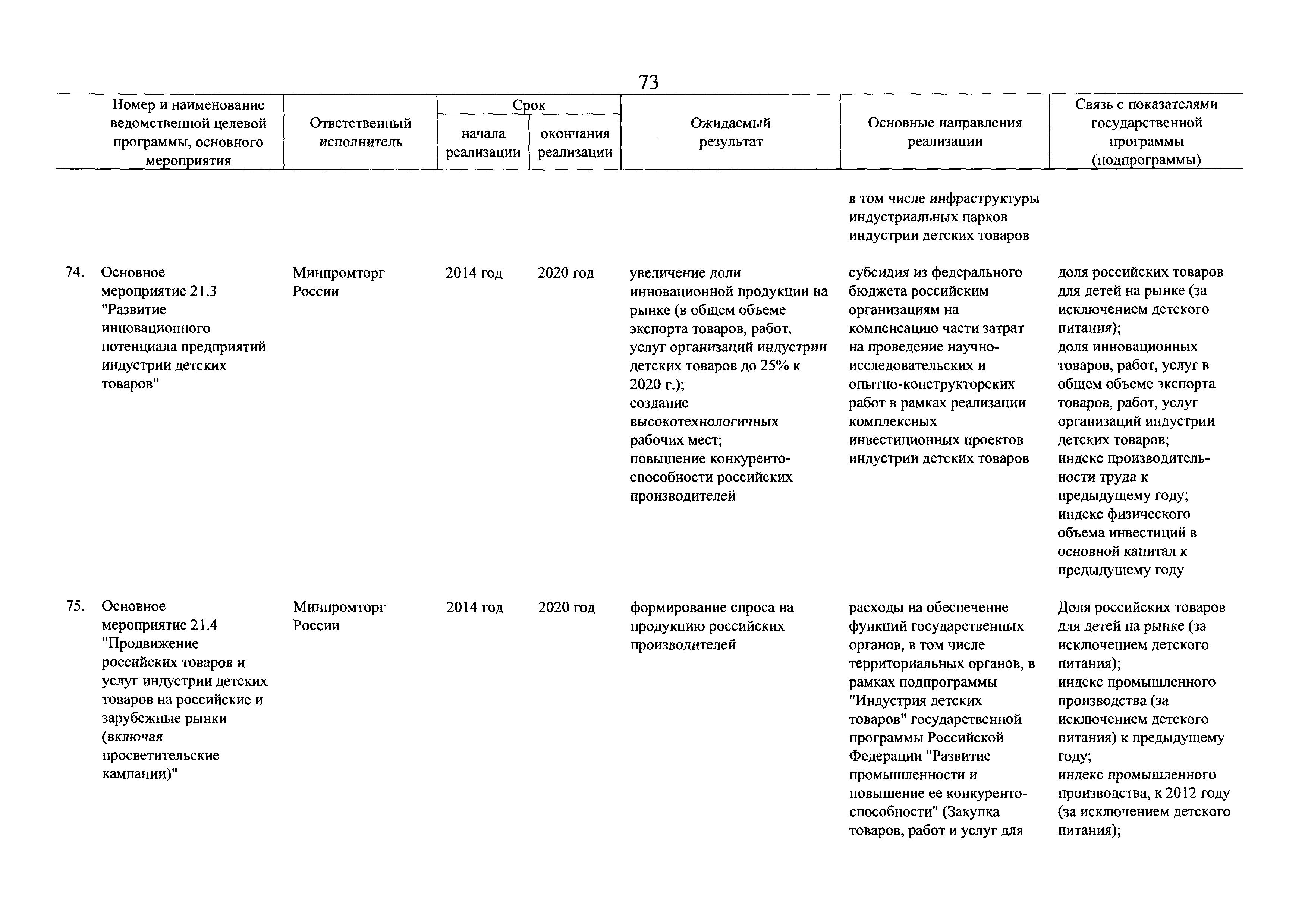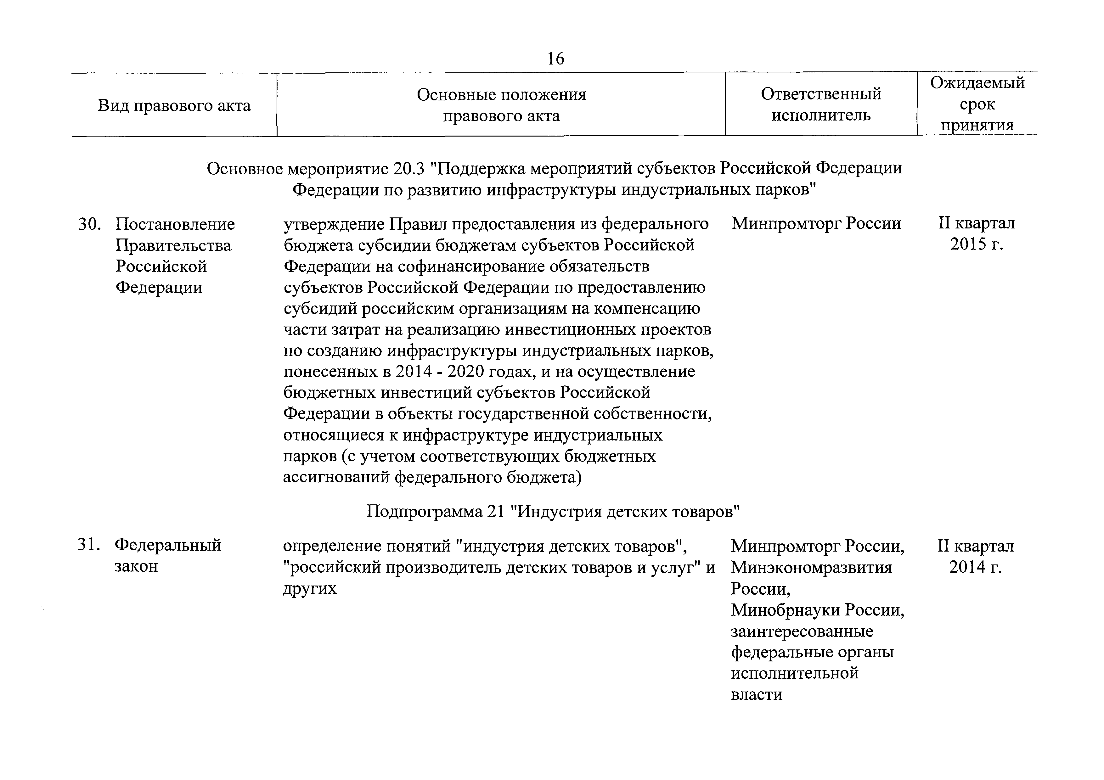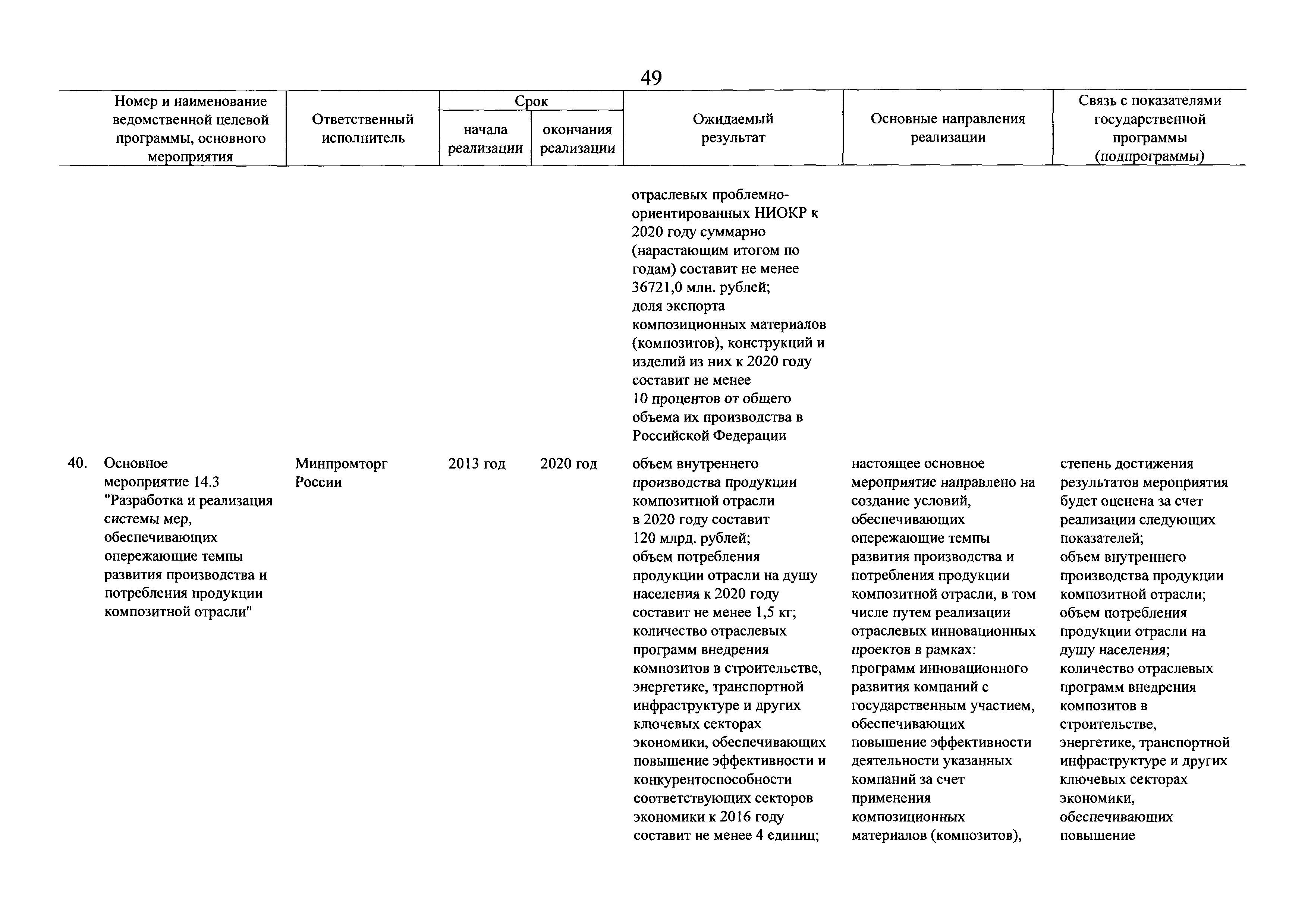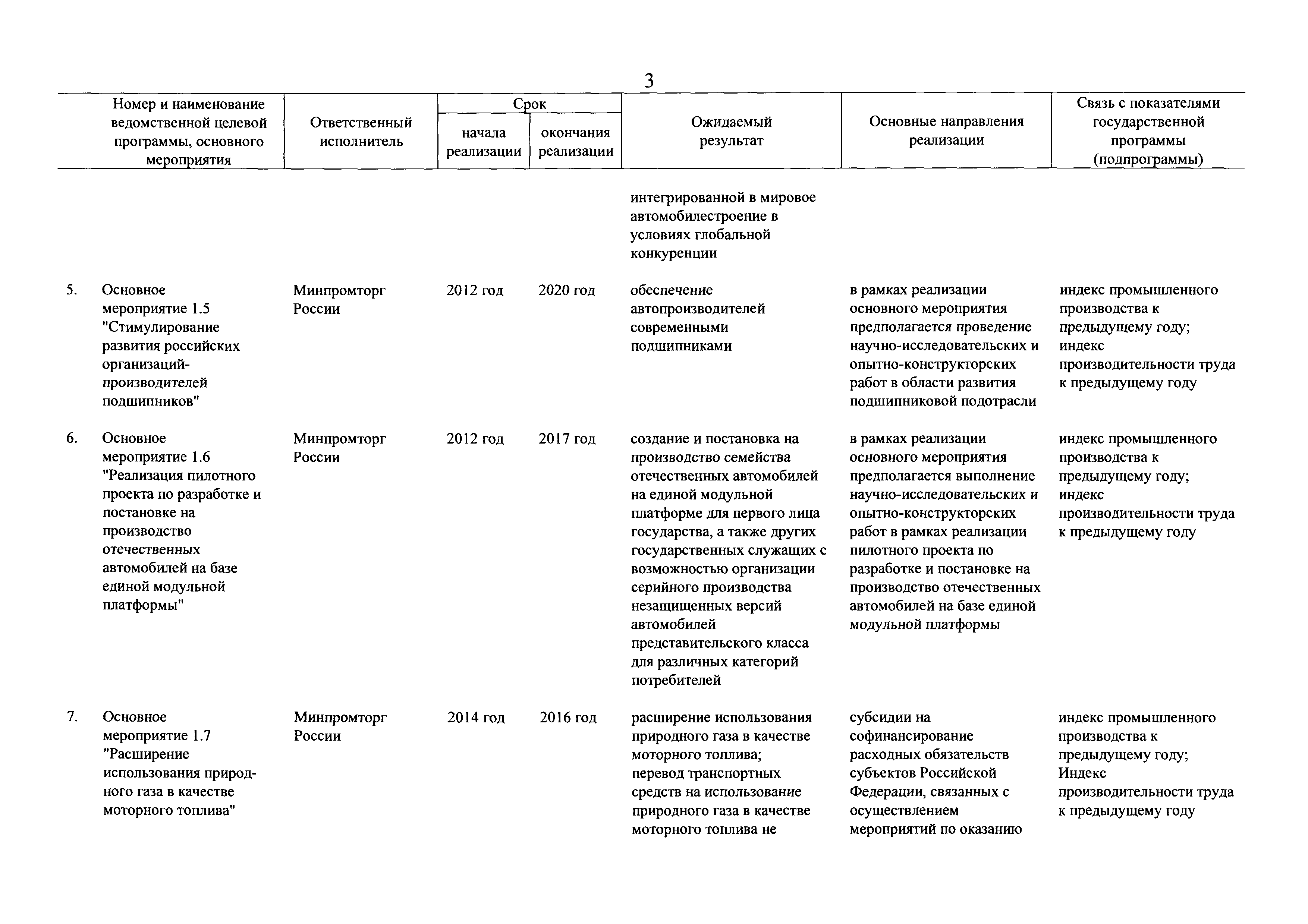 | Оглавление: | Паспорт государственной программы Российской Федерации "Развитие промышленности и повышение ее конкурентоспособности" Паспорт подпрограммы 1 "Автомобильная промышленность" государственной программы Российской Федерации "Развитие промышленности и повышение ее конкурентоспособности" Паспорт подпрограммы 2 "Сельскохозяйственное машиностроение" государственной программы Российской Федерации "Развитие промышленности и повышение ее конкурентоспособности" Паспорт подпрограммы 3 "Машиностроение специализированных производств (строительно-дорожная и коммунальная техника, пожарная, аэродромная, лесная техника)" государственной программы Российской Федерации "Развитие промышленности и повышение ее конкурентоспособности" Паспорт подпрограммы 4 "Легкая промышленность и народные художественные промыслы" государственной программы Российской Федерации "Развитие промышленности и повышение ее конкурентоспособности" Паспорт подпрограммы 5 "Ускоренное развитие оборонно-промышленного комплекса" государственной программы Российской Федерации "Развитие промышленности и повышение ее конкурентоспособности" Паспорт подпрограммы 6 "Транспортное машиностроение" государственной программы Российской Федерации "Развитие промышленности и повышение ее конкурентоспособности" Паспорт подпрограммы 7 "Станкоинструментальная промышленность" государственной программы Российской Федерации "Развитие промышленности и повышение ее конкурентоспособности" Паспорт подпрограммы 8 "Тяжелое машиностроение" государственной программы Российской Федерации "Развитие промышленности и повышение ее конкурентоспособности" Паспорт подпрограммы 9 "Силовая электротехника и энергетическое машиностроение" государственной программы Российской Федерации "Развитие промышленности и повышение ее конкурентоспособности" Паспорт подпрограммы 10 "Металлургия" государственной программы Российской Федерации "Развитие промышленности и повышение ее конкурентоспособности" Паспорт подпрограммы 11 "Лесопромышленный комплекс" государственной программы Российской Федерации "Развитие промышленности и повышение ее конкурентоспособности" Паспорт подпрограммы 12 "Развитие системы технического регулирования, стандартизации и обеспечение единства измерений" государственной программы Российской Федерации "Развитие промышленности и повышение ее конкурентоспособности" Паспорт подпрограммы 13 "Химический комплекс" государственной программы Российской Федерации "Развитие промышленности и повышение ее конкурентоспособности" Паспорт подпрограммы 14 "Развитие производства композиционных материалов (композитов) и изделий из них" государственной программы Российской Федерации "Развитие промышленности и повышение ее конкурентоспособности" Паспорт подпрограммы 15 "Развитие промышленности редких и редкоземельных металлов" государственной программы Российской Федерации "Развитие промышленности и повышение ее конкурентоспособности" Паспорт подпрограммы 16 "Современные средства индивидуальной защиты и системы жизнеобеспечения подземного персонала угольных шахт" государственной программы Российской Федерации "Развитие промышленности и повышение ее конкурентоспособности" Паспорт подпрограммы 17 "Обеспечение реализации государственно