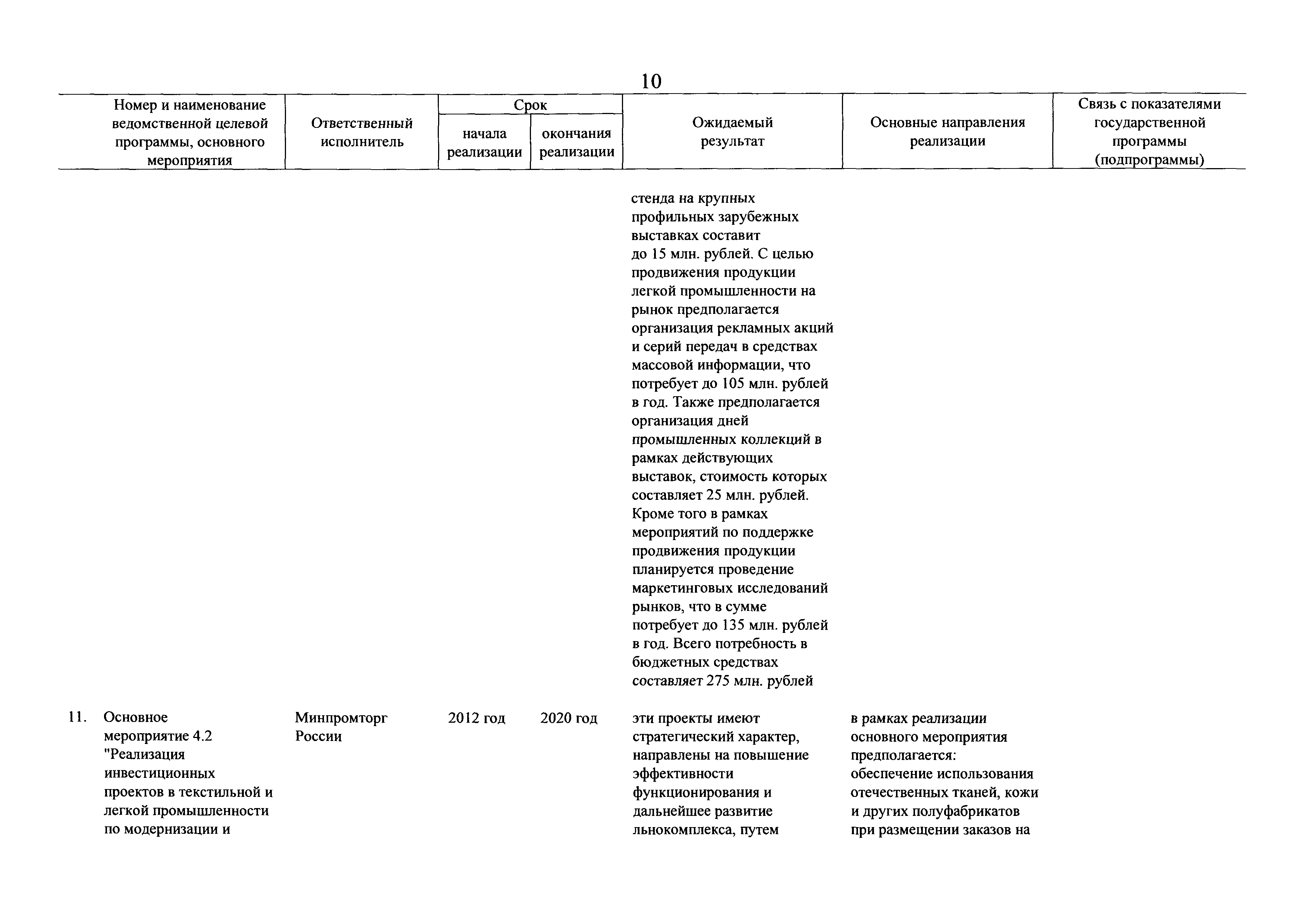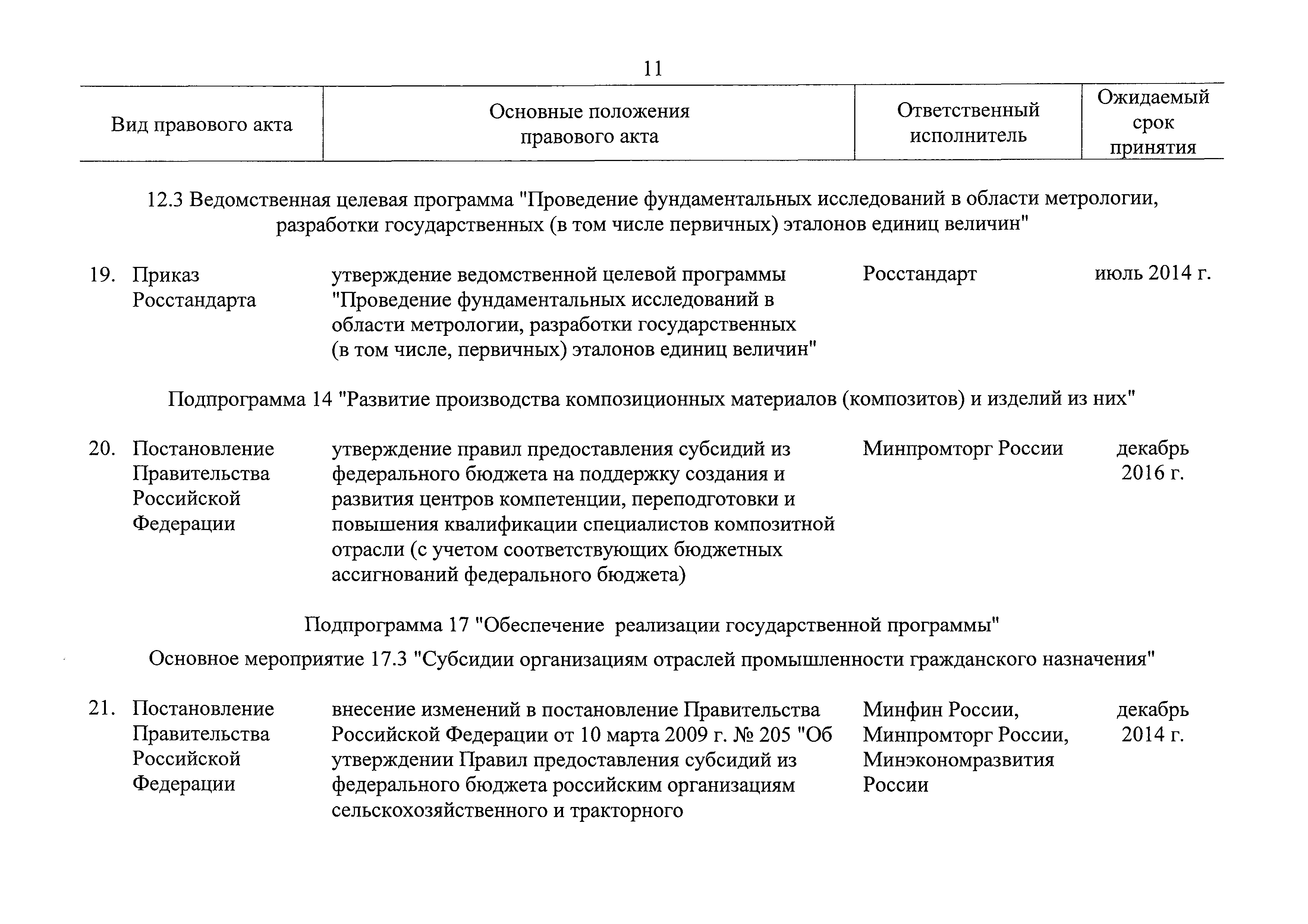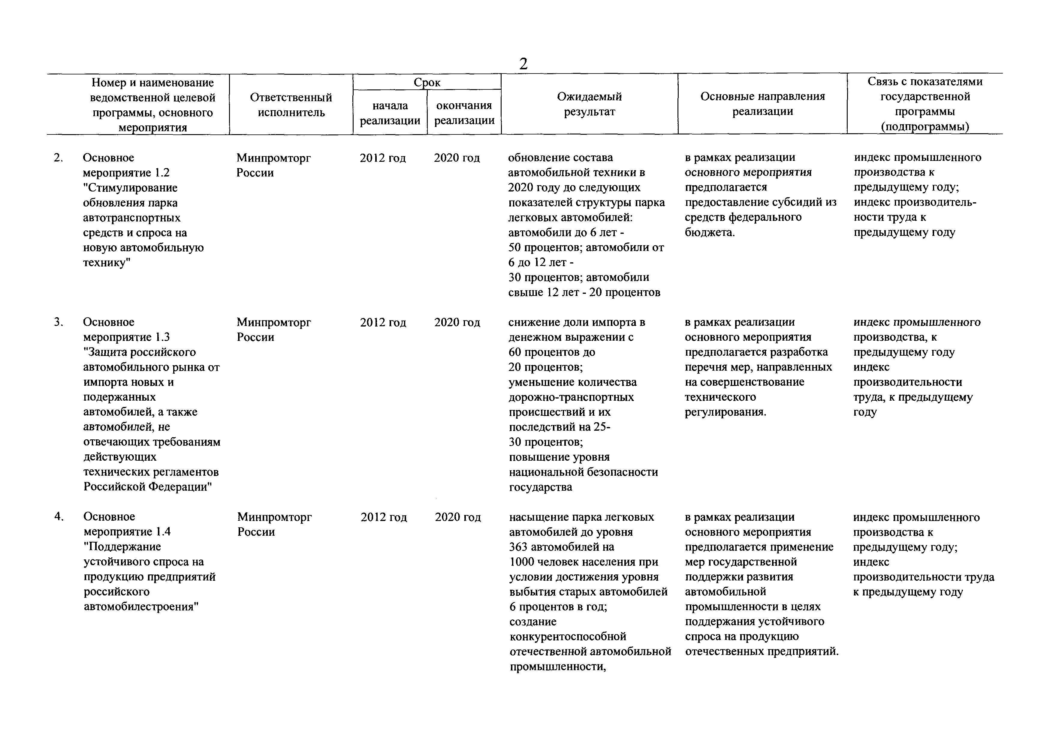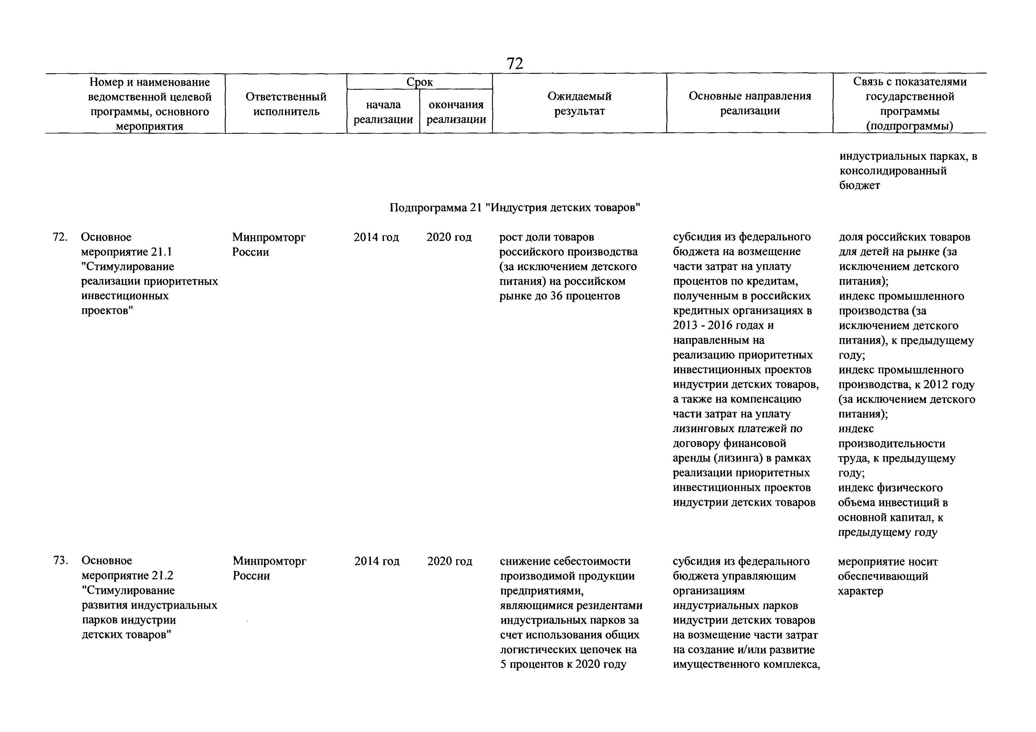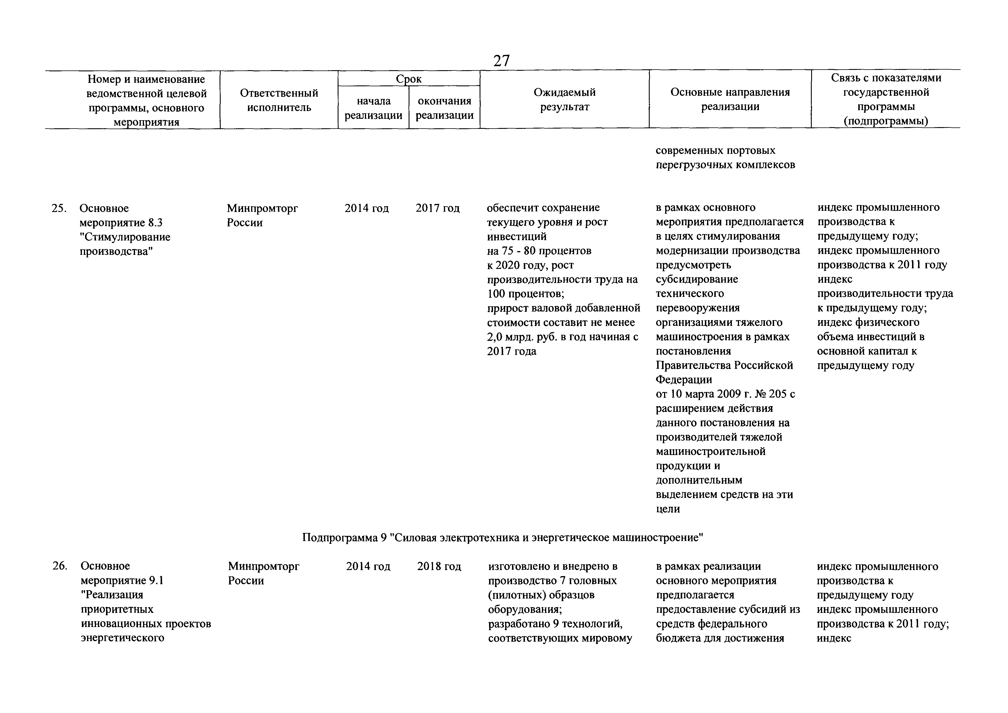 | Оглавление: | Паспорт государственной программы Российской Федерации "Развитие промышленности и повышение ее конкурентоспособности" Паспорт подпрограммы 1 "Автомобильная промышленность" государственной программы Российской Федерации "Развитие промышленности и повышение ее конкурентоспособности" Паспорт подпрограммы 2 "Сельскохозяйственное машиностроение" государственной программы Российской Федерации "Развитие промышленности и повышение ее конкурентоспособности" Паспорт подпрограммы 3 "Машиностроение специализированных производств (строительно-дорожная и коммунальная техника, пожарная, аэродромная, лесная техника)" государственной программы Российской Федерации "Развитие промышленности и повышение ее конкурентоспособности" Паспорт подпрограммы 4 "Легкая промышленность и народные художественные промыслы" государственной программы Российской Федерации "Развитие промышленности и повышение ее конкурентоспособности" Паспорт подпрограммы 5 "Ускоренное развитие оборонно-промышленного комплекса" государственной программы Российской Федерации "Развитие промышленности и повышение ее конкурентоспособности" Паспорт подпрограммы 6 "Транспортное машиностроение" государственной программы Российской Федерации "Развитие промышленности и повышение ее конкурентоспособности" Паспорт подпрограммы 7 "Станкоинструментальная промышленность" государственной программы Российской Федерации "Развитие промышленности и повышение ее конкурентоспособности" Паспорт подпрограммы 8 "Тяжелое машиностроение" государственной программы Российской Федерации "Развитие промышленности и повышение ее конкурентоспособности" Паспорт подпрограммы 9 "Силовая электротехника и энергетическое машиностроение" государственной программы Российской Федерации "Развитие промышленности и повышение ее конкурентоспособности" Паспорт подпрограммы 10 "Металлургия" государственной программы Российской Федерации "Развитие промышленности и повышение ее конкурентоспособности" Паспорт подпрограммы 11 "Лесопромышленный комплекс" государственной программы Российской Федерации "Развитие промышленности и повышение ее конкурентоспособности" Паспорт подпрограммы 12 "Развитие системы технического регулирования, стандартизации и обеспечение единства измерений" государственной программы Российской Федерации "Развитие промышленности и повышение ее конкурентоспособности" Паспорт подпрограммы 13 "Химический комплекс" государственной программы Российской Федерации "Развитие промышленности и повышение ее конкурентоспособности" Паспорт подпрограммы 14 "Развитие производства композиционных материалов (композитов) и изделий из них" государственной программы Российской Федерации "Развитие промышленности и повышение ее конкурентоспособности" Паспорт подпрограммы 15 "Развитие промышленности редких и редкоземельных металлов" государственной программы Российской Федерации "Развитие промышленности и повышение ее конкурентоспособности" Паспорт подпрограммы 16 "Современные средства индивидуальной защиты и системы жизнеобеспечения подземного персонала угольных шахт" государственной программы Российской Федерации "Развитие промышленности и повышение ее конкурентоспособности" Паспорт подпрограммы 17 "Обеспечение реализации государственно