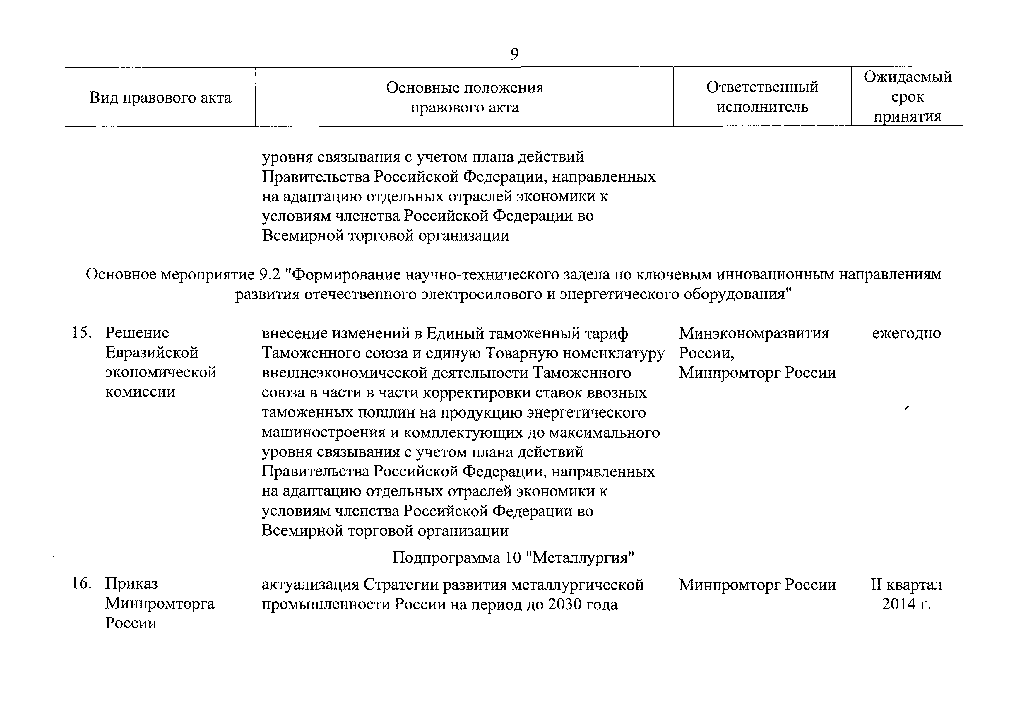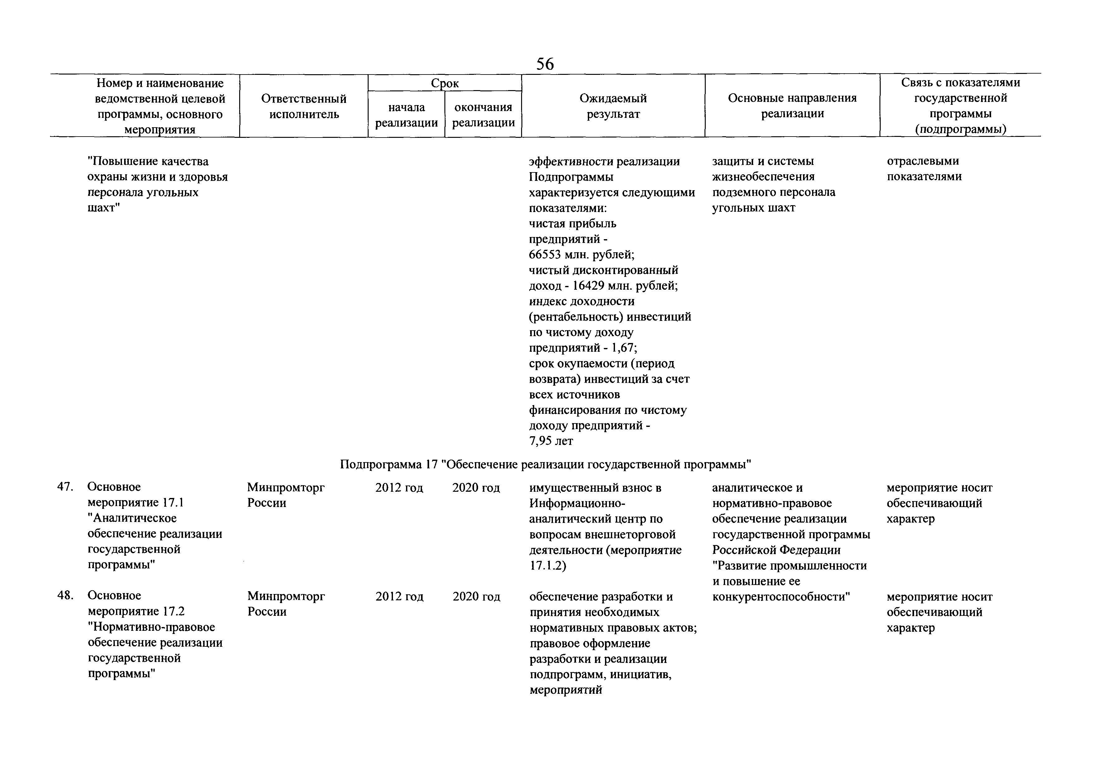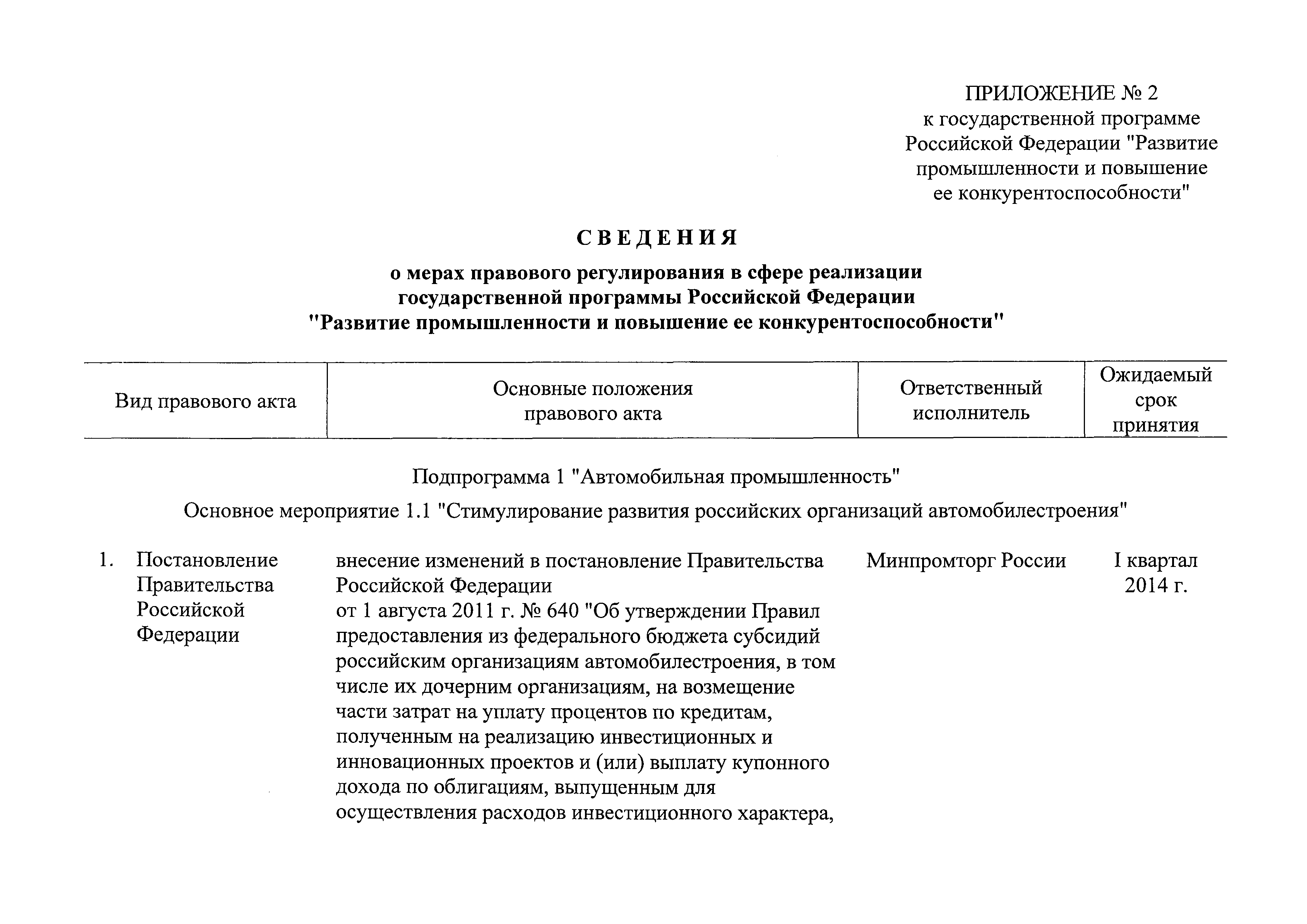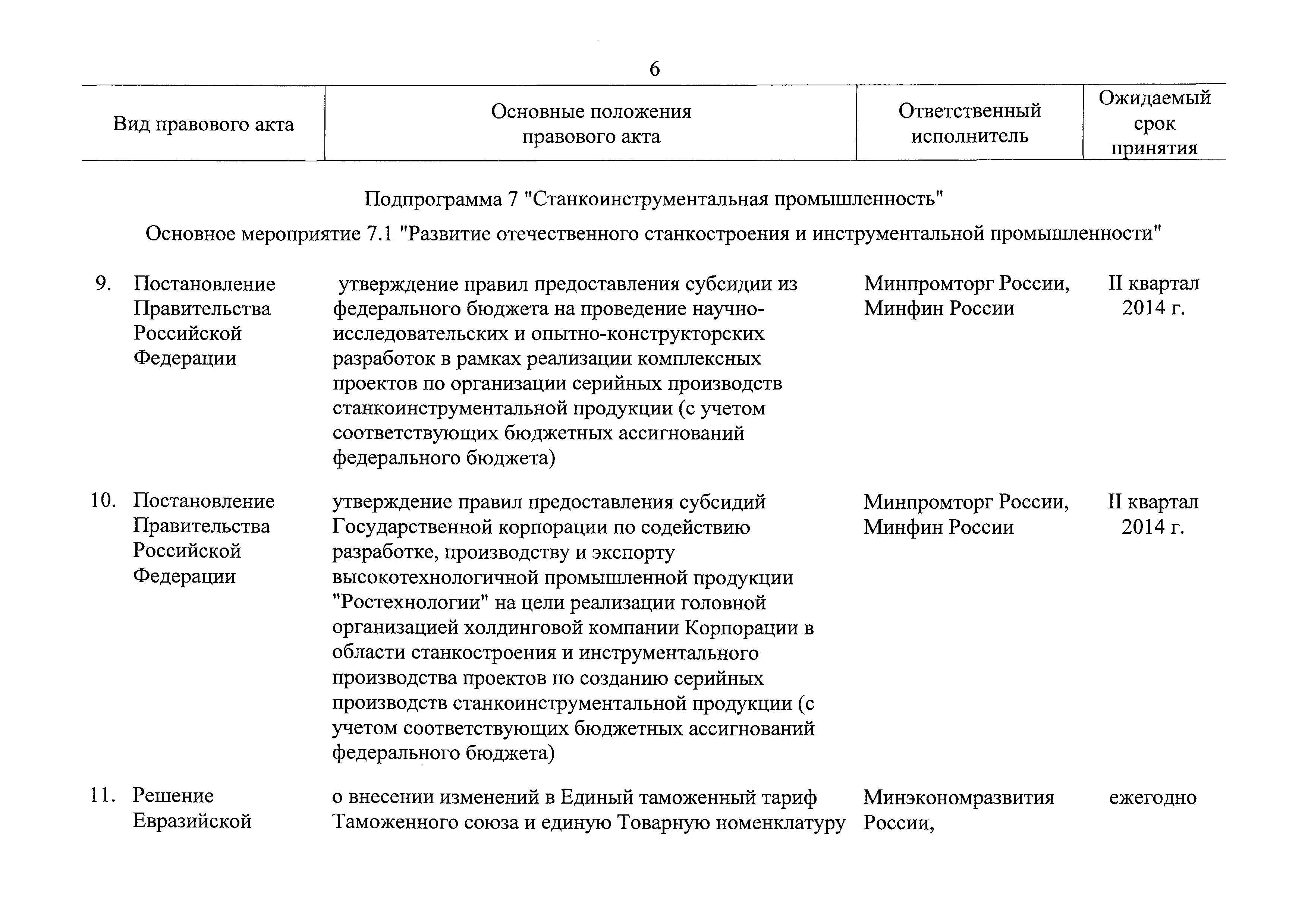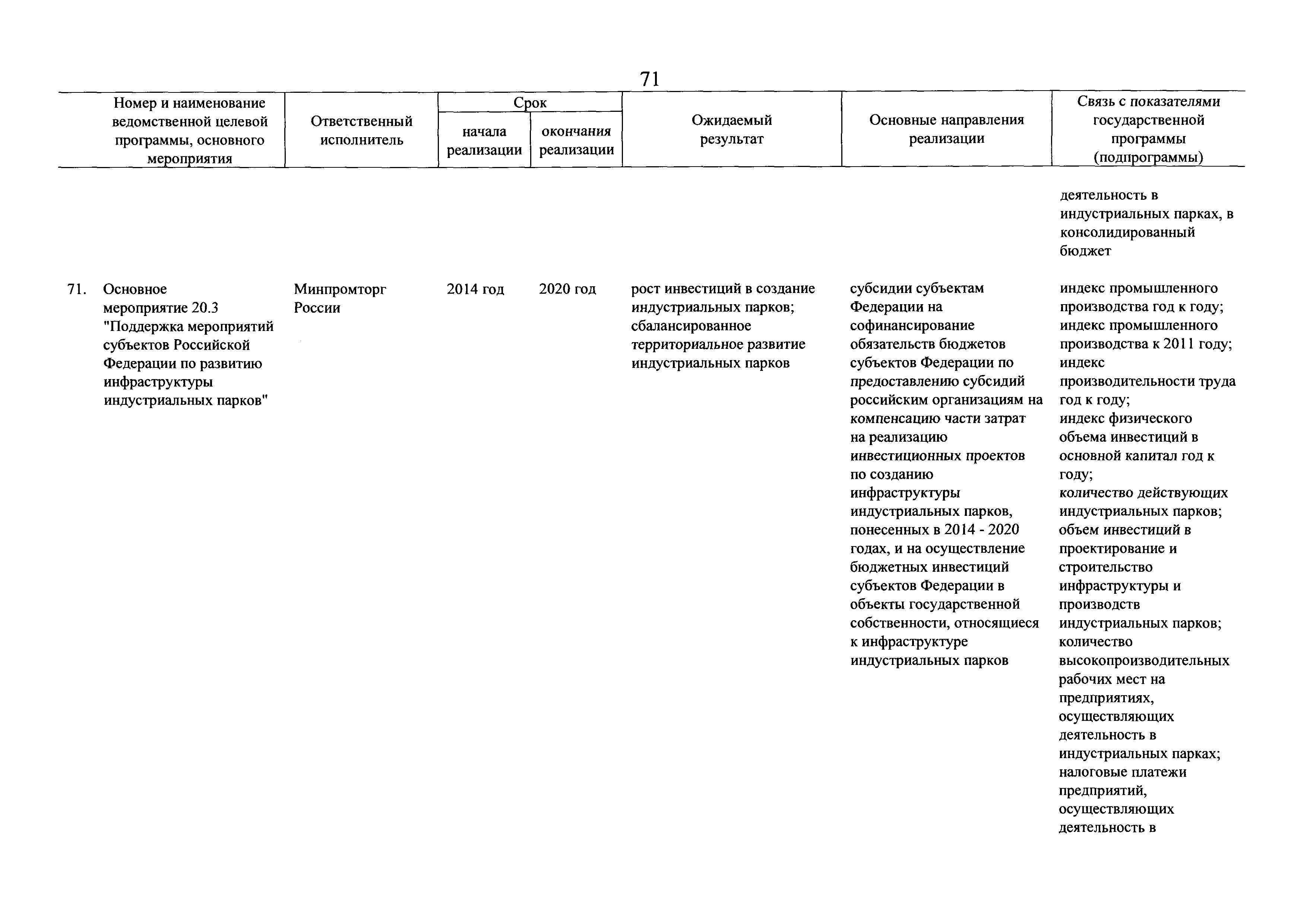 | Оглавление: | Паспорт государственной программы Российской Федерации "Развитие промышленности и повышение ее конкурентоспособности" Паспорт подпрограммы 1 "Автомобильная промышленность" государственной программы Российской Федерации "Развитие промышленности и повышение ее конкурентоспособности" Паспорт подпрограммы 2 "Сельскохозяйственное машиностроение" государственной программы Российской Федерации "Развитие промышленности и повышение ее конкурентоспособности" Паспорт подпрограммы 3 "Машиностроение специализированных производств (строительно-дорожная и коммунальная техника, пожарная, аэродромная, лесная техника)" государственной программы Российской Федерации "Развитие промышленности и повышение ее конкурентоспособности" Паспорт подпрограммы 4 "Легкая промышленность и народные художественные промыслы" государственной программы Российской Федерации "Развитие промышленности и повышение ее конкурентоспособности" Паспорт подпрограммы 5 "Ускоренное развитие оборонно-промышленного комплекса" государственной программы Российской Федерации "Развитие промышленности и повышение ее конкурентоспособности" Паспорт подпрограммы 6 "Транспортное машиностроение" государственной программы Российской Федерации "Развитие промышленности и повышение ее конкурентоспособности" Паспорт подпрограммы 7 "Станкоинструментальная промышленность" государственной программы Российской Федерации "Развитие промышленности и повышение ее конкурентоспособности" Паспорт подпрограммы 8 "Тяжелое машиностроение" государственной программы Российской Федерации "Развитие промышленности и повышение ее конкурентоспособности" Паспорт подпрограммы 9 "Силовая электротехника и энергетическое машиностроение" государственной программы Российской Федерации "Развитие промышленности и повышение ее конкурентоспособности" Паспорт подпрограммы 10 "Металлургия" государственной программы Российской Федерации "Развитие промышленности и повышение ее конкурентоспособности" Паспорт подпрограммы 11 "Лесопромышленный комплекс" государственной программы Российской Федерации "Развитие промышленности и повышение ее конкурентоспособности" Паспорт подпрограммы 12 "Развитие системы технического регулирования, стандартизации и обеспечение единства измерений" государственной программы Российской Федерации "Развитие промышленности и повышение ее конкурентоспособности" Паспорт подпрограммы 13 "Химический комплекс" государственной программы Российской Федерации "Развитие промышленности и повышение ее конкурентоспособности" Паспорт подпрограммы 14 "Развитие производства композиционных материалов (композитов) и изделий из них" государственной программы Российской Федерации "Развитие промышленности и повышение ее конкурентоспособности" Паспорт подпрограммы 15 "Развитие промышленности редких и редкоземельных металлов" государственной программы Российской Федерации "Развитие промышленности и повышение ее конкурентоспособности" Паспорт подпрограммы 16 "Современные средства индивидуальной защиты и системы жизнеобеспечения подземного персонала угольных шахт" государственной программы Российской Федерации "Развитие промышленности и повышение ее конкурентоспособности" Паспорт подпрограммы 17 "Обеспечение реализации государственно