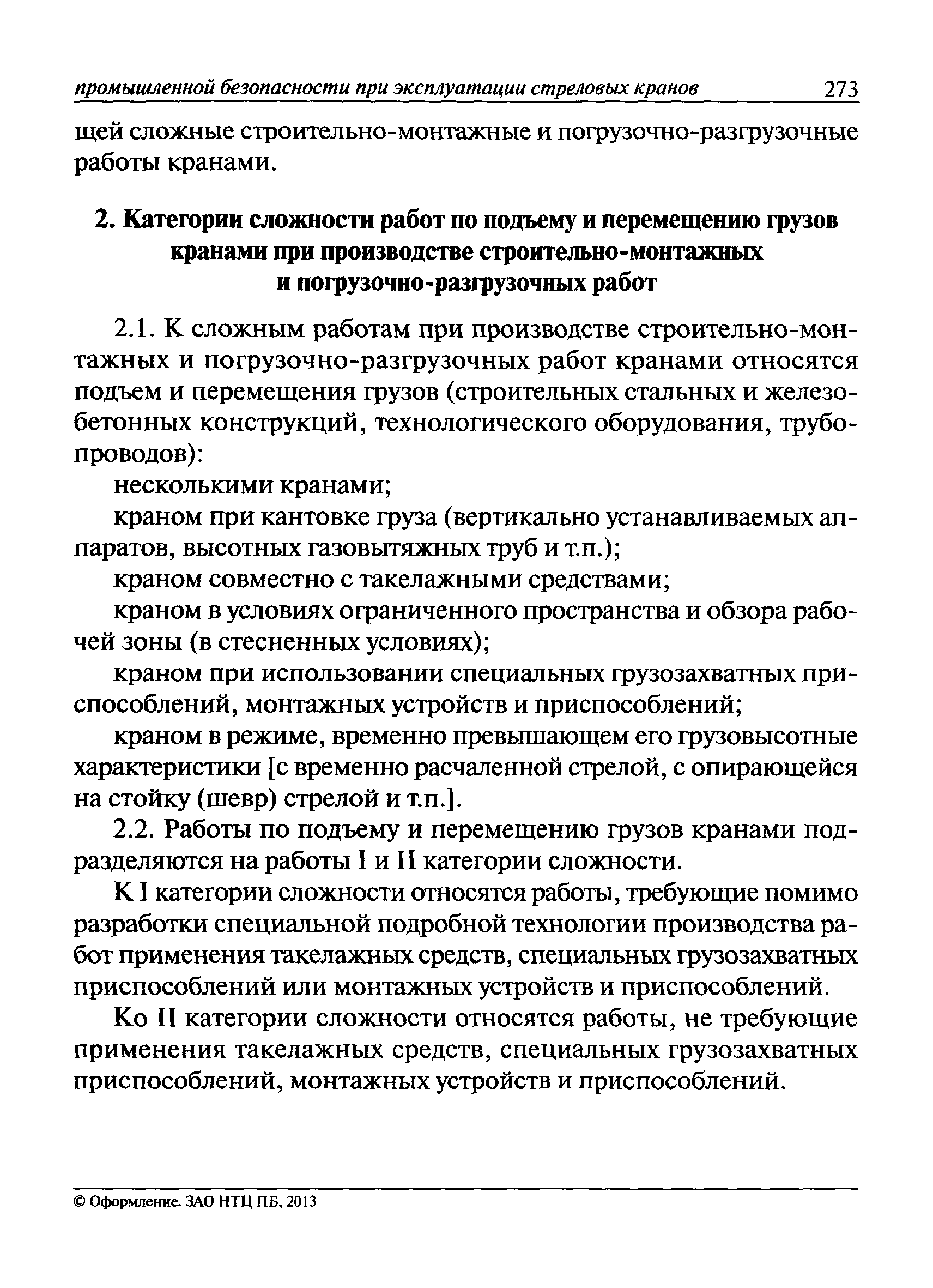 | Область применения: | Документ разработан в развитие Правил устройства и безопасной эксплуатации грузоподъемных кранов и устанавливает дополнительные требования к технологической документации при производстве сложных строительно- монтажных и погрузочно-разгрузочных работ с применением грузоподъемных кранов. |