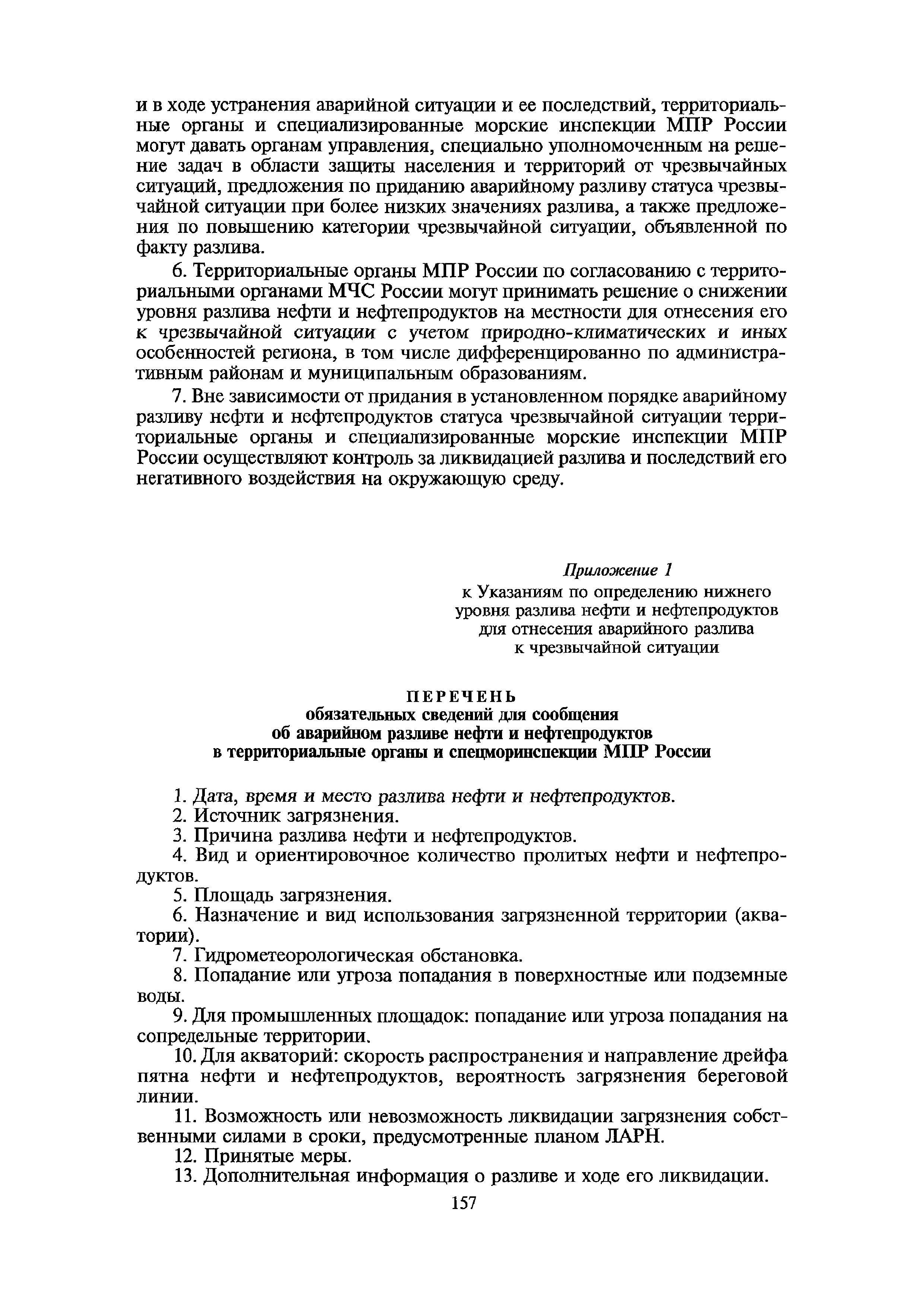 Указания по определению нижнего уровня разлива нефти и нефтепродуктов для отнесения аварийного разлива к чрезвычайной ситуации| Статус: | не определен законодательством | | Название рус.: | Указания по определению нижнего уровня разлива нефти и нефтепродуктов для отнесения аварийного разлива к чрезвычайной ситуации | | Дата добавления в базу: | 01.10.2014 | | Дата актуализации: | 01.11.2014 | | Дата введения: | 28.05.2003 | | Область применения: | Указания применяются уполномоченными органами при организации работ и осуществлении контроля за ликвидацией последствий разливов нефти и нефтепродуктов, представлении информации об угрозе возникновения или возникновении чрезвычайных ситуаций, связанных с аварийными разливами | | Оглавление: | Приложение 1 Приложение 2 |