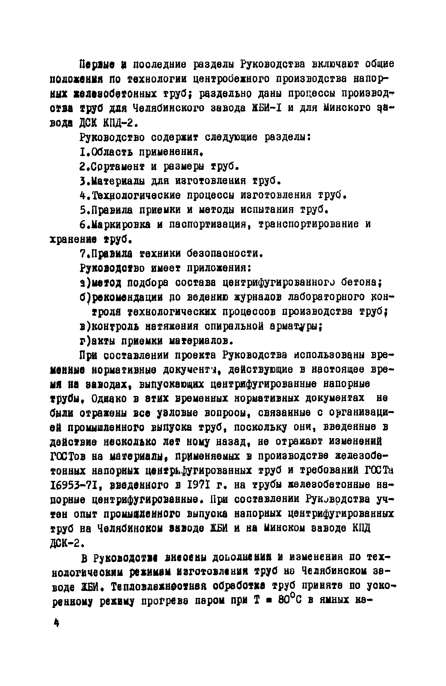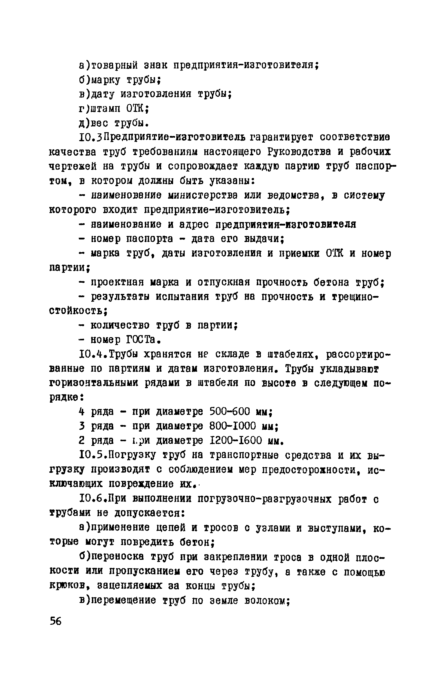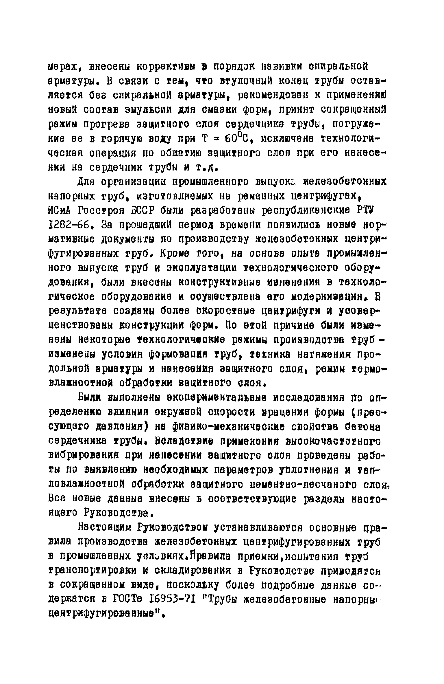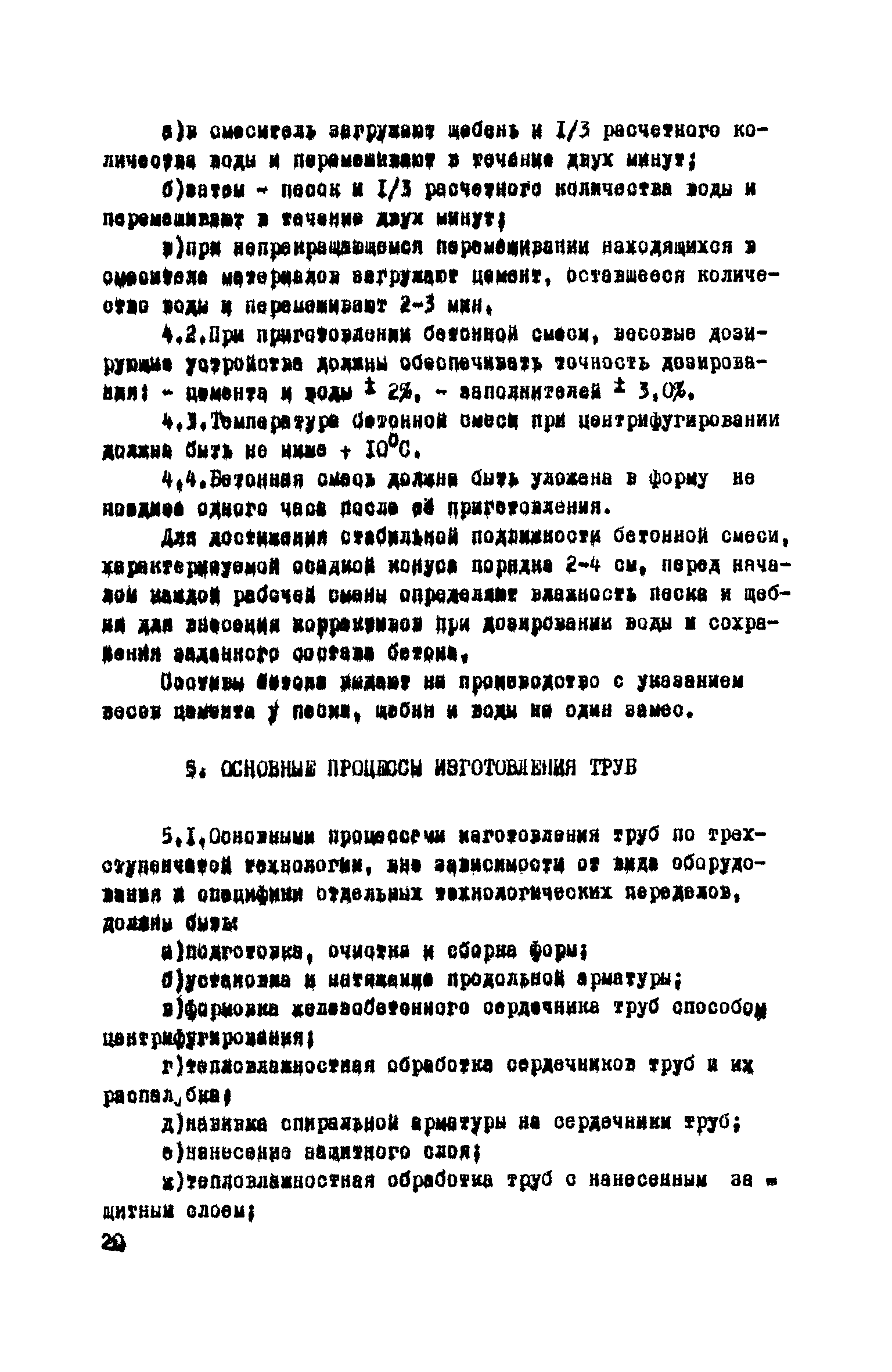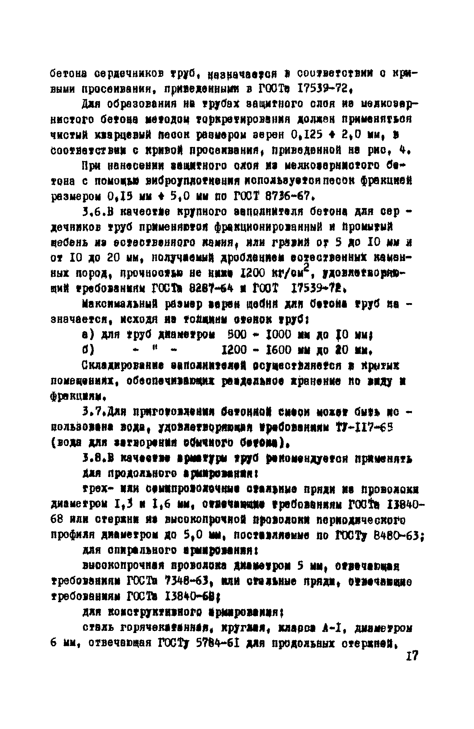 Руководство по изготовлению, испытанию и приемке железобетонных напорных труб, выпускаемых по трехступенчатой технологии| Статус: | справочные материалы, мп, тпр | | Название рус.: | Руководство по изготовлению, испытанию и приемке железобетонных напорных труб, выпускаемых по трехступенчатой технологии | | Дата добавления в базу: | 01.10.2014 | | Дата актуализации: | 01.01.2021 | | Область применения: | Документ определяет требования к изготовлению, испытанию и приемке железобетонных напорных труб по трехступенчатой технологии и распространяется на производство труб по двум видам трехступенчатой технологии, осуществляемой с использованием различного оборудования | | Оглавление: | Предисловие Область применения Сортамент и размеры труб Материалы для изготовления труб Приготовление бетонной смеси Основные процессы изготовления труб Изготовление труб с применением свободно-роликовых центрифуг Изготовление труб с использованием ременных центрифуг Правила приемки Методы испытаний Маркировка, паспортизация. транспортирование и хранение Правила техники безопасности Приложение 1. Методика и пример проектирования состава центрифугированного бетона Приложение 2. Формы лабораторных журналов Приложение 2 а-б. Акты приемки материалов Приложение 3. Контроль натяжения спиральной арматуры Приложение 4. Инструкция по нанесению цементно-песчаного слоя | | Разработан: | НИИЖБ Институт строительства и архитектуры Госстроя БССР