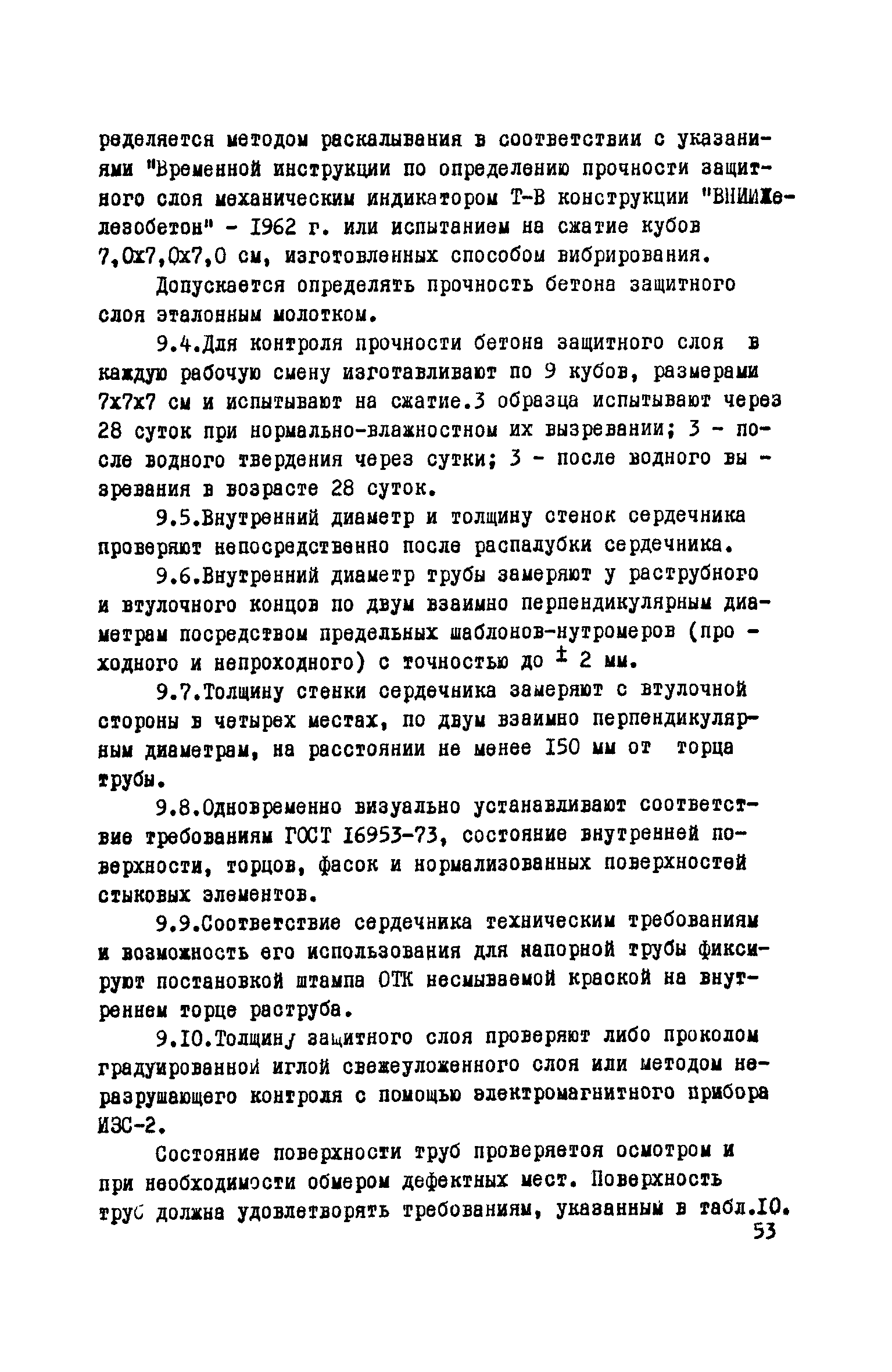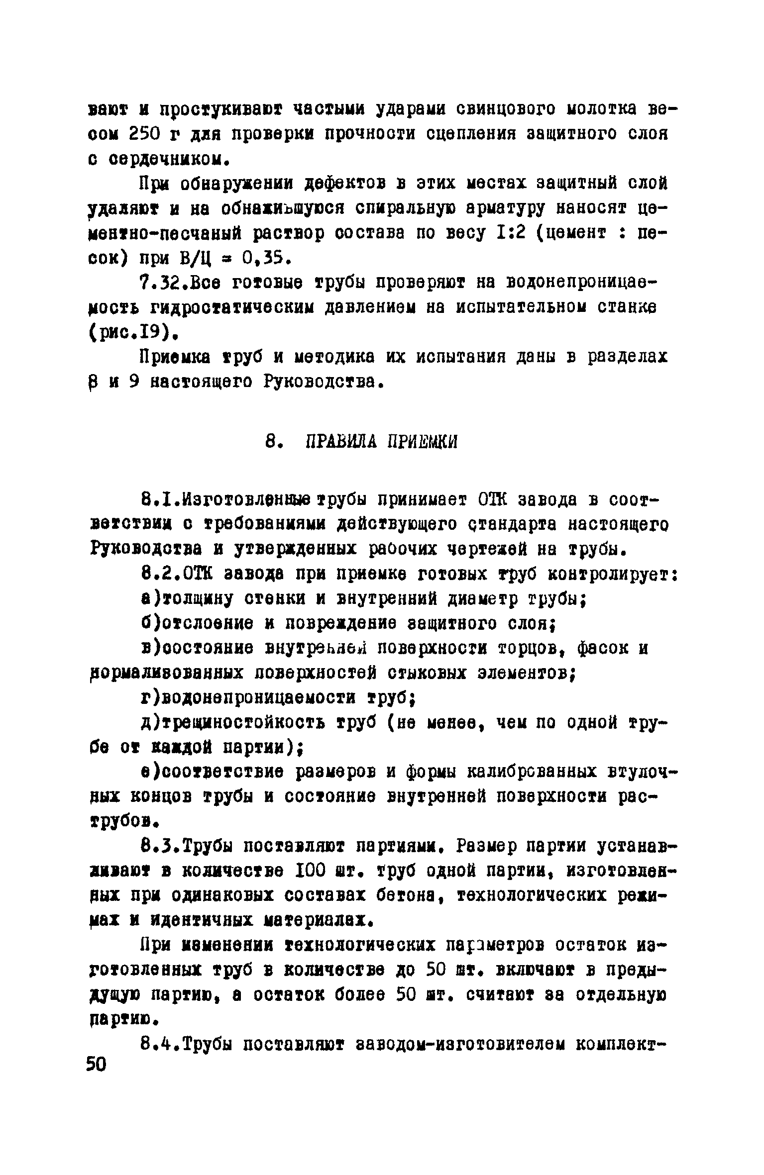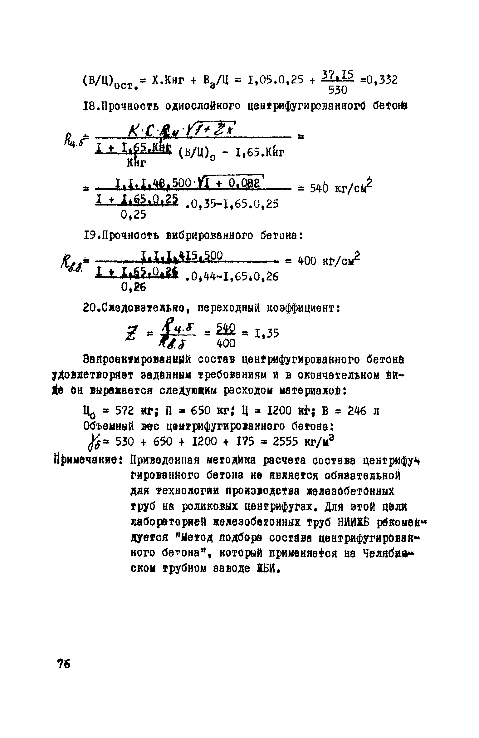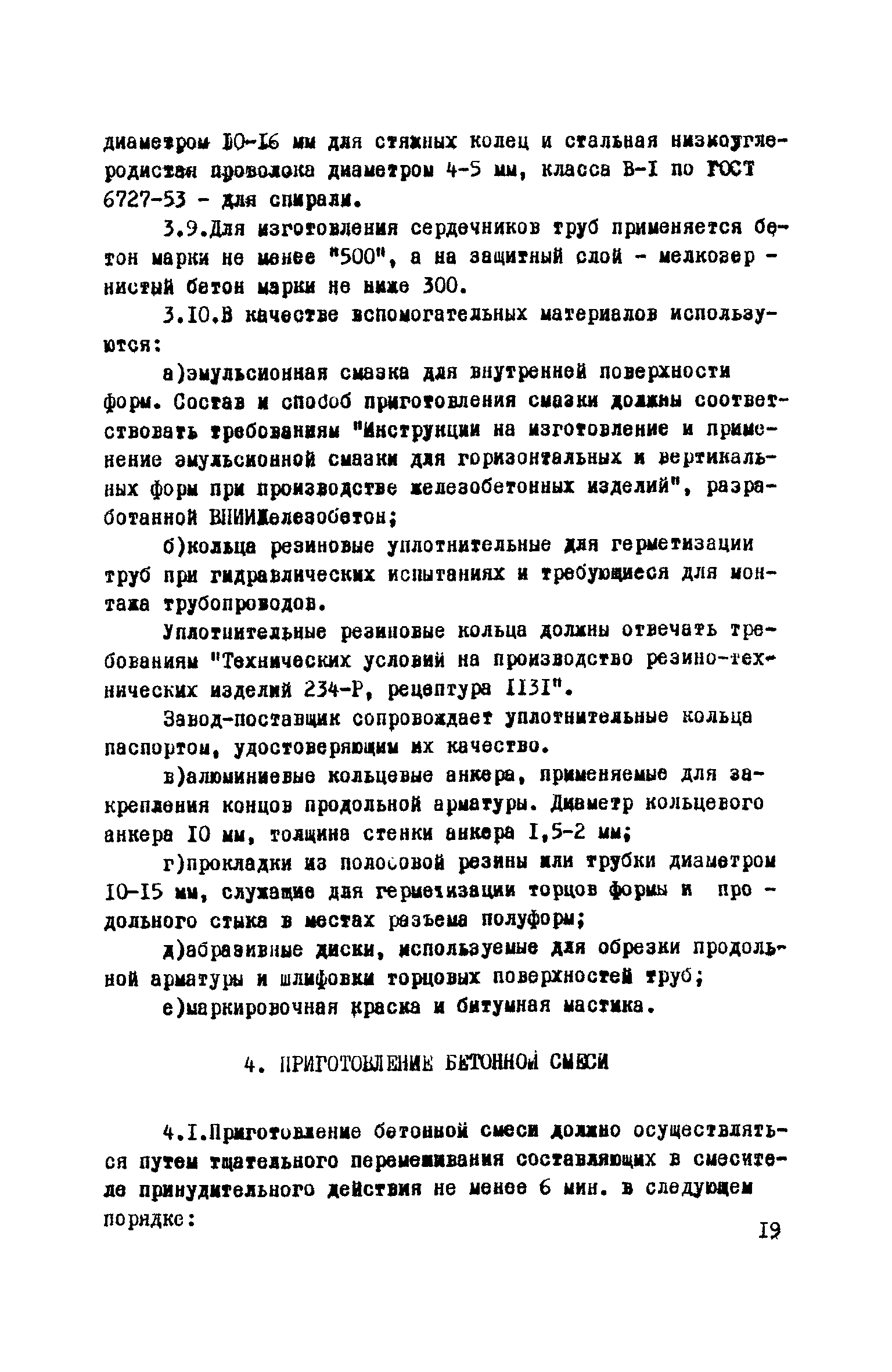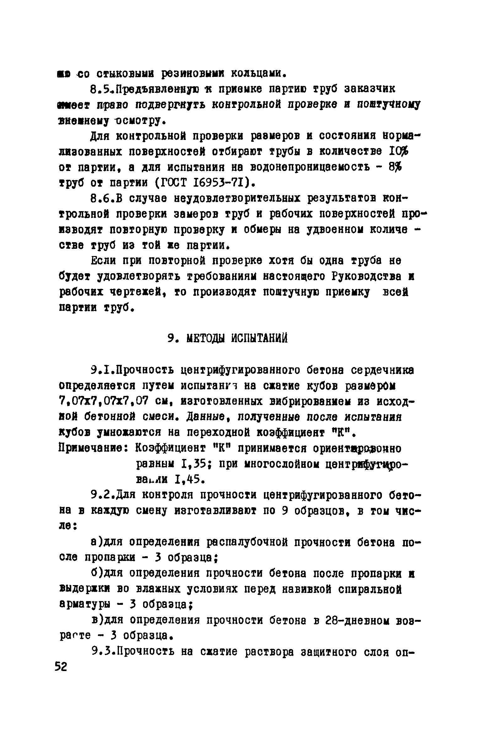 Руководство по изготовлению, испытанию и приемке железобетонных напорных труб, выпускаемых по трехступенчатой технологии| Статус: | справочные материалы, мп, тпр | | Название рус.: | Руководство по изготовлению, испытанию и приемке железобетонных напорных труб, выпускаемых по трехступенчатой технологии | | Дата добавления в базу: | 01.10.2014 | | Дата актуализации: | 01.01.2021 | | Область применения: | Документ определяет требования к изготовлению, испытанию и приемке железобетонных напорных труб по трехступенчатой технологии и распространяется на производство труб по двум видам трехступенчатой технологии, осуществляемой с использованием различного оборудования | | Оглавление: | Предисловие Область применения Сортамент и размеры труб Материалы для изготовления труб Приготовление бетонной смеси Основные процессы изготовления труб Изготовление труб с применением свободно-роликовых центрифуг Изготовление труб с использованием ременных центрифуг Правила приемки Методы испытаний Маркировка, паспортизация. транспортирование и хранение Правила техники безопасности Приложение 1. Методика и пример проектирования состава центрифугированного бетона Приложение 2. Формы лабораторных журналов Приложение 2 а-б. Акты приемки материалов Приложение 3. Контроль натяжения спиральной арматуры Приложение 4. Инструкция по нанесению цементно-песчаного слоя | | Разработан: | НИИЖБ Институт строительства и архитектуры Госстроя БССР
