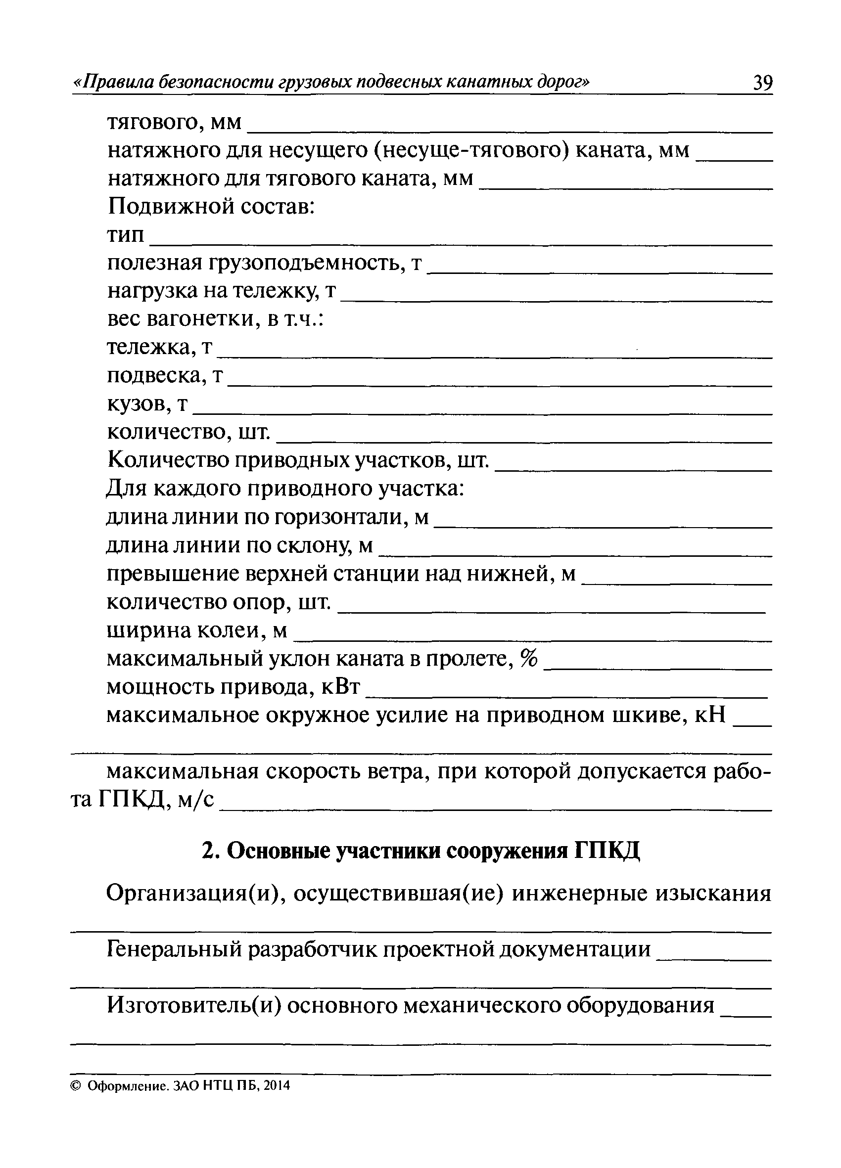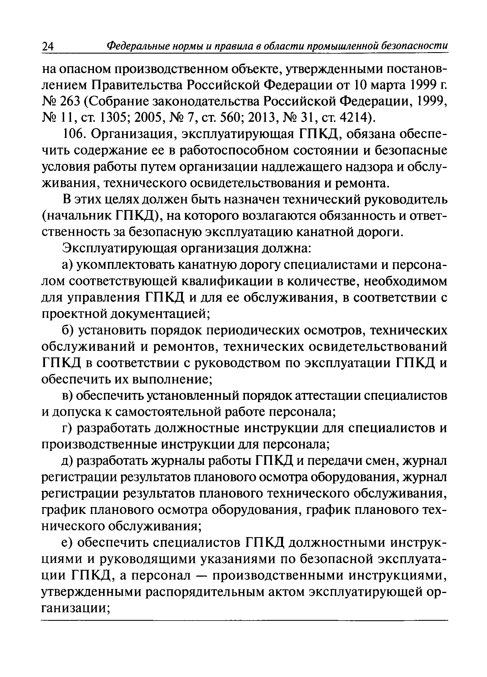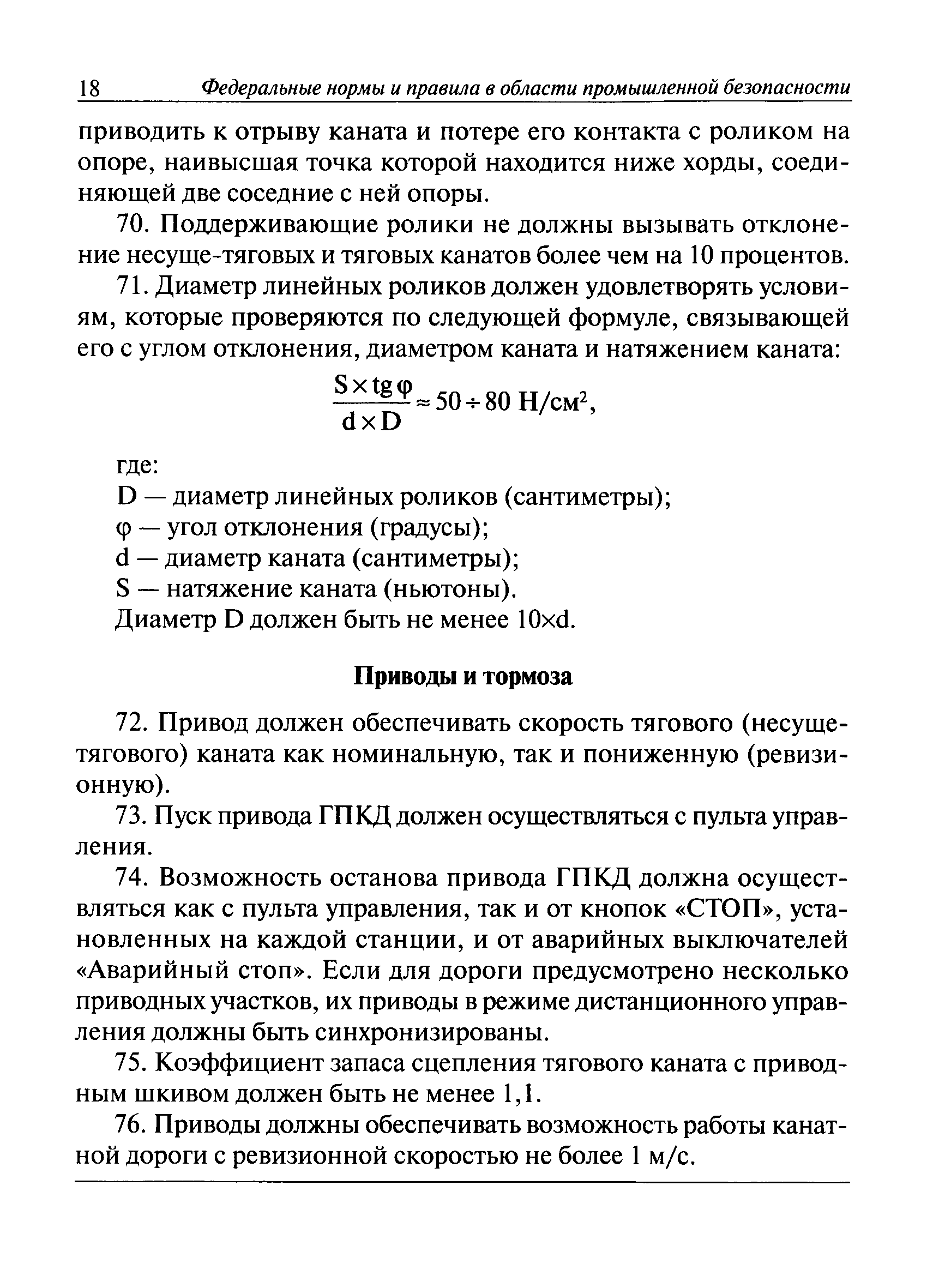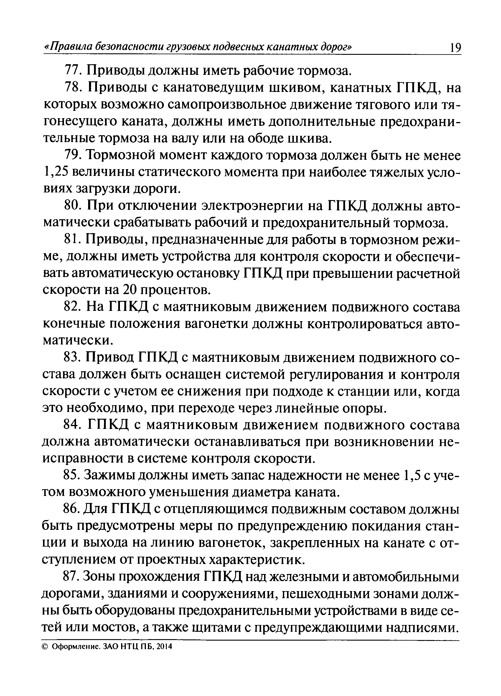 | Оглавление: | I. Общие положения II. Требования при изготовлении III. Общие требования к безопасности технологических процессов IV. Приемка и ввод в эксплуатацию V. Регистрация VI. Организация эксплуатации VII. Регламентные работы VIII. Техническое освидетельствование и экспертиза промышленной безопасности IХ. Требования к руководству по эксплуатации Х. Переходные положения Приложение № 1. Термины и определения Приложение № 2. Нормы браковки стальных канатов грузовой подвесной канатной дороги Приложение № 3. Паспорт грузовой подвесной канатной дороги Приложение № 4. Перечень работ, выполняемых специализированными организациями или ремонтными службами (подразделениями) эксплуатирующей организации |
