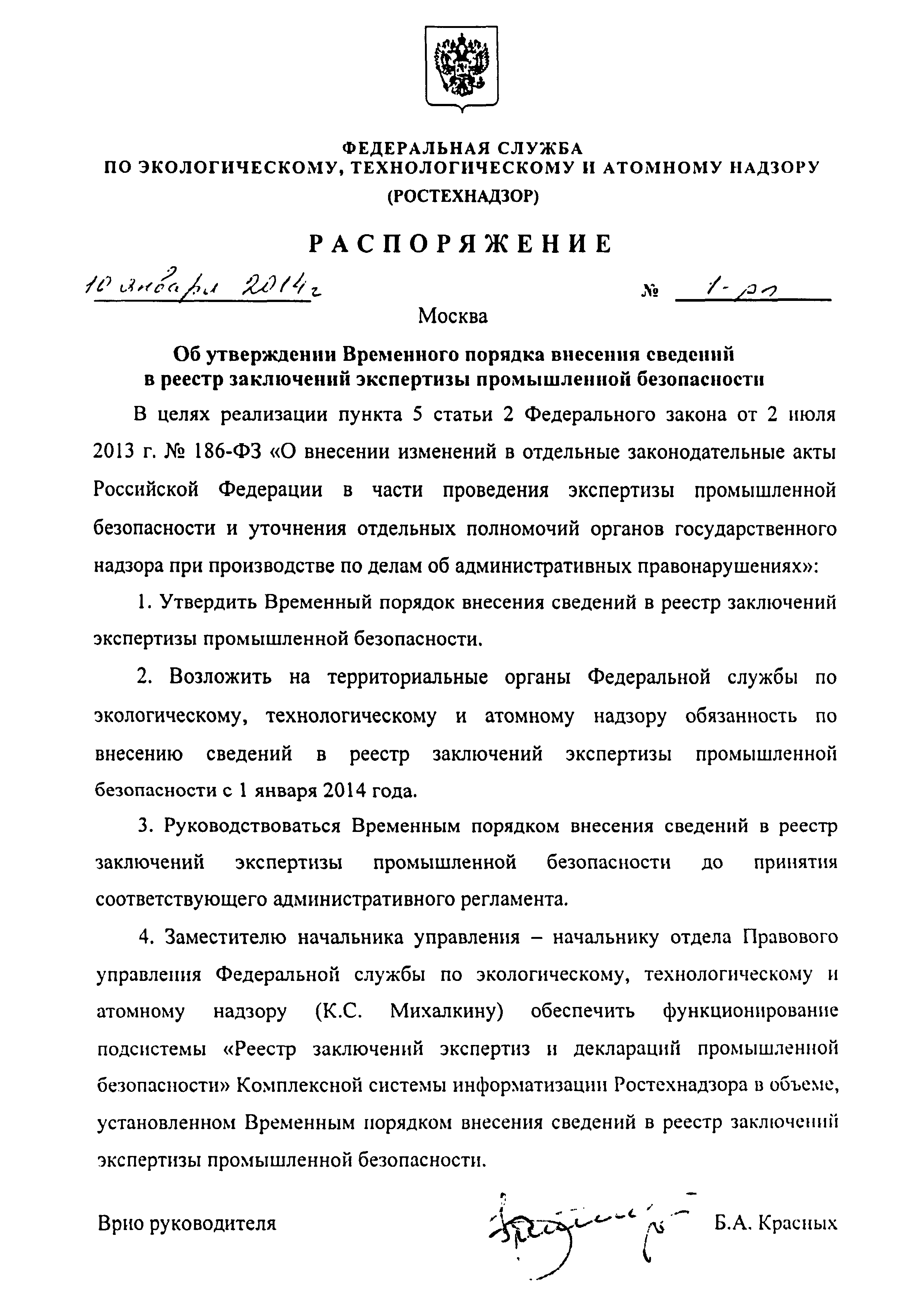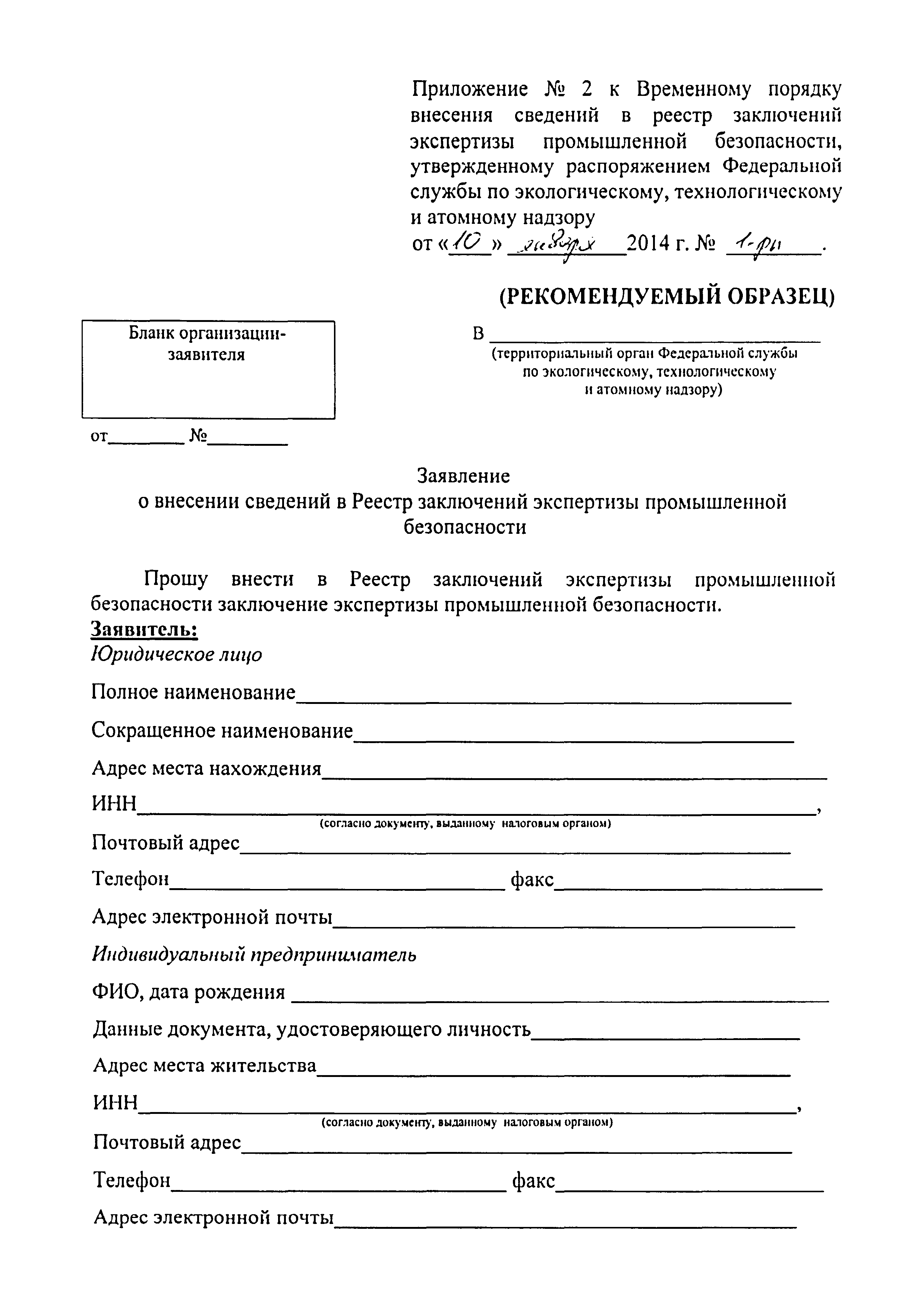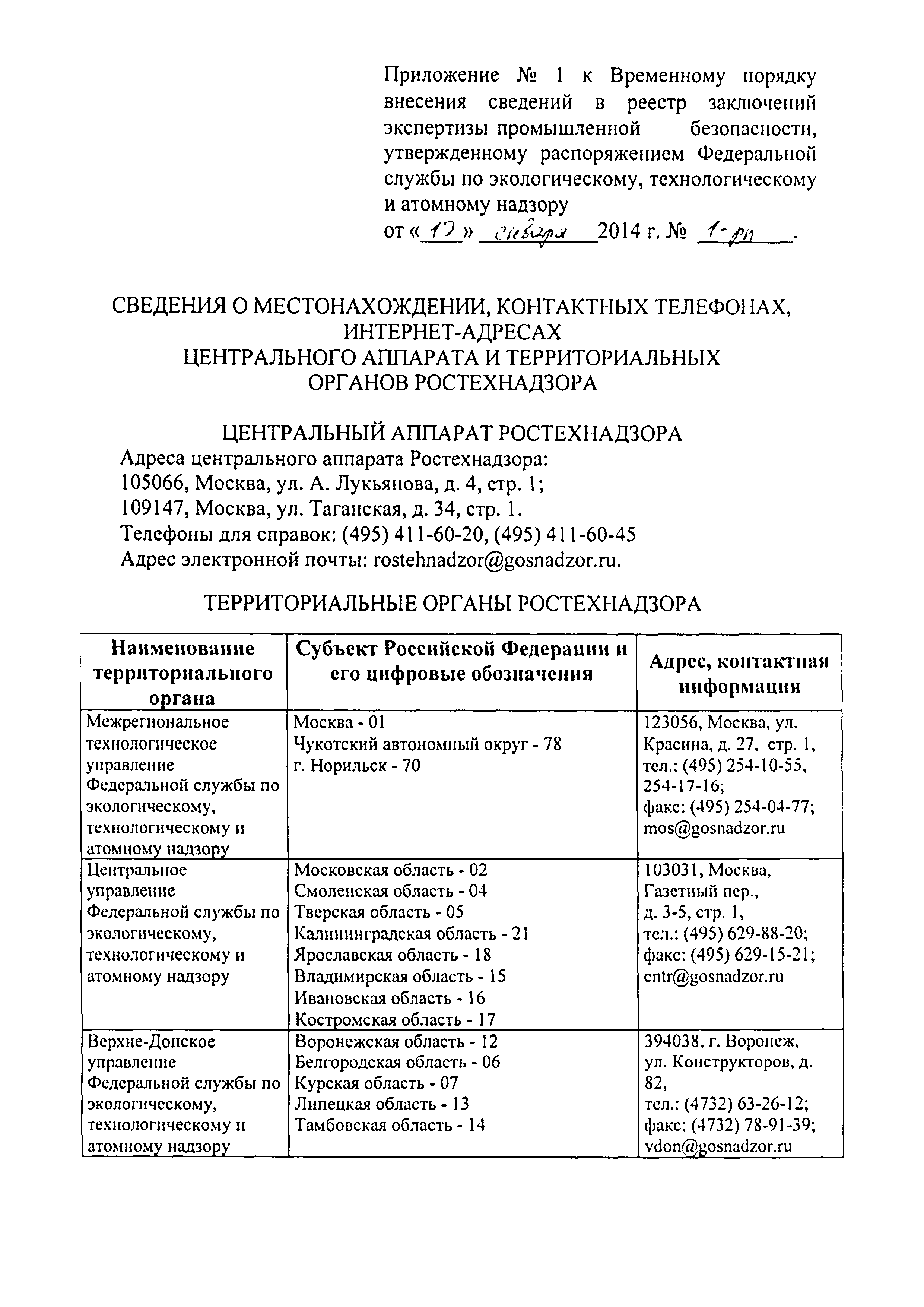 | Утверждён: | 10.01.2014 Федеральная служба по экологическому, технологическому и атомному надзору (1-рп)