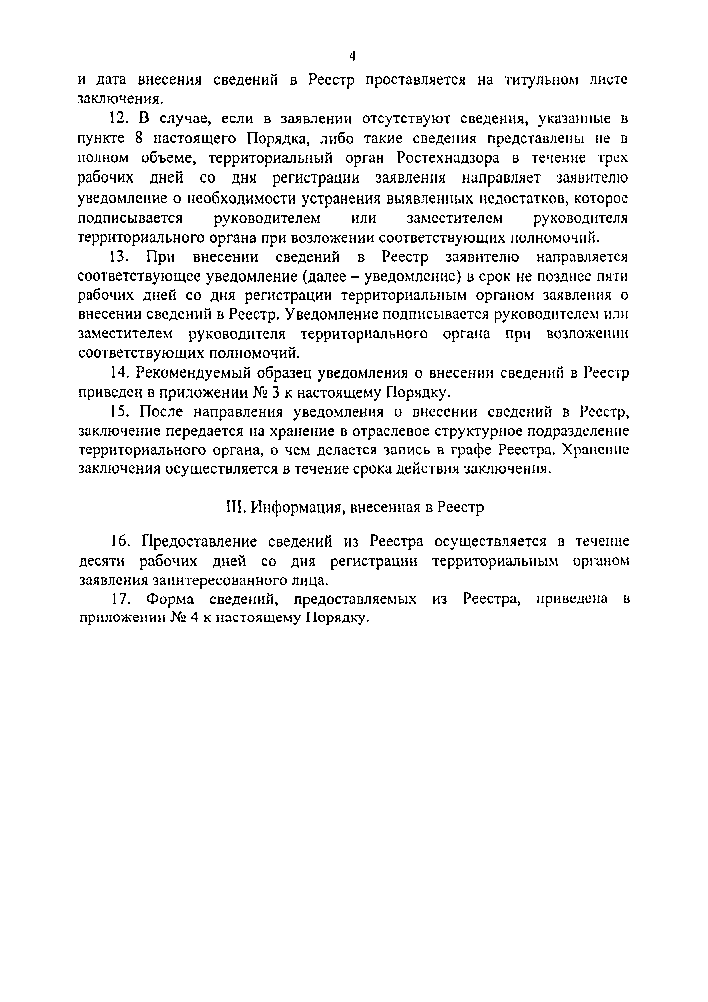 | Оглавление: | I. Общие положения II. Порядок внесения сведений в Реестр III. Информация, внесенная в Реестр Приложение № 1. Сведения о местонахождении, контактных телефонах, интернет-адресах центрального аппарата и территориальных органов Ростехнадзора Приложение № 2. Заявление о внесении в Реестр заключений экспертизы промышленной безопасности Приложение № 3. Уведомление о внесении сведений в Реестр заключений экспертизы промышленной безопасности Приложение № 4. Форма сведений, предоставляемых из Реестра заключений экспертизы промышленной безопасности |