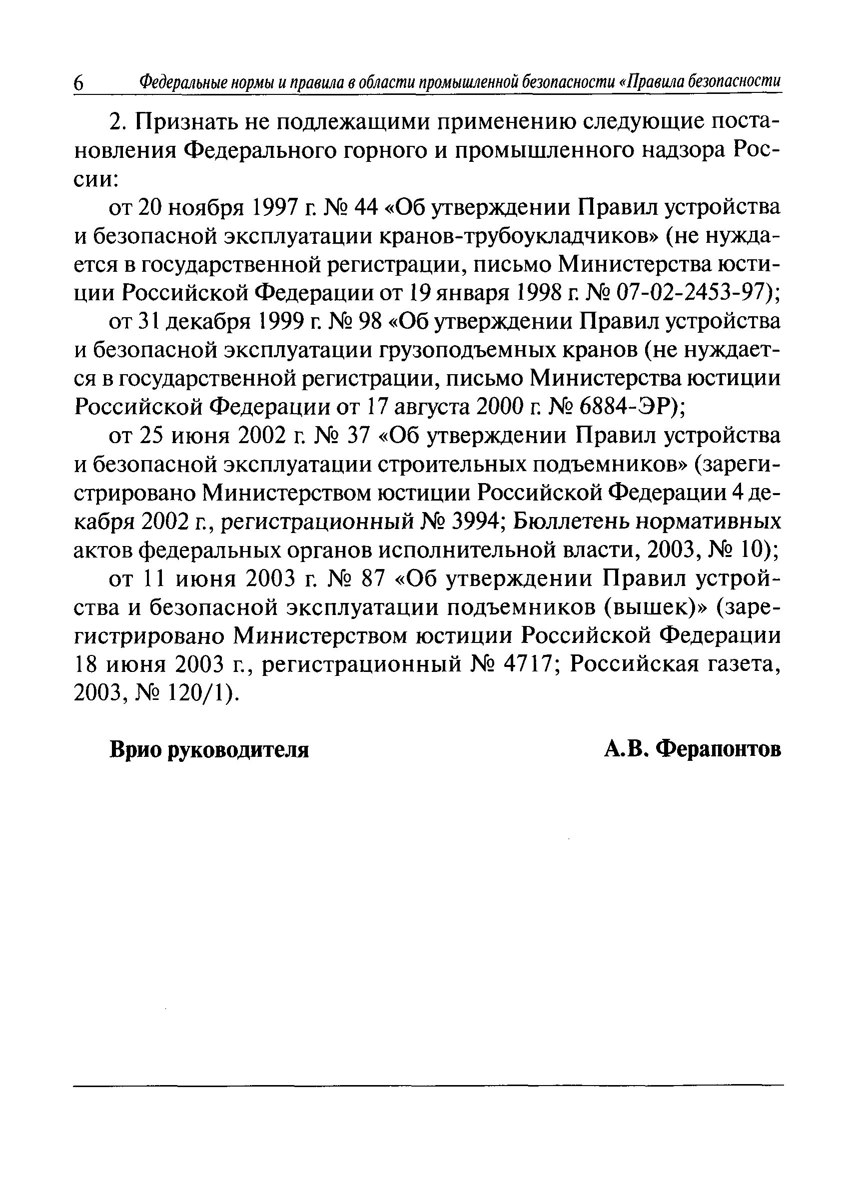 | Название рус.: | Федеральные нормы и правила в области промышленной безопасности "Правила безопасности опасных производственных объектов, на которых используются подъемные сооружения" |