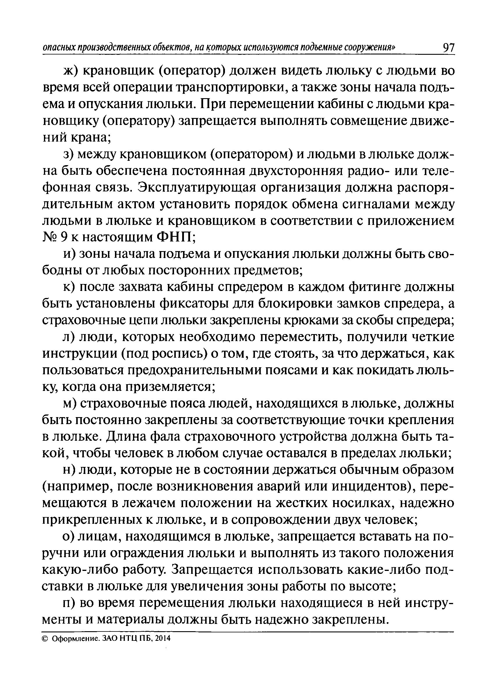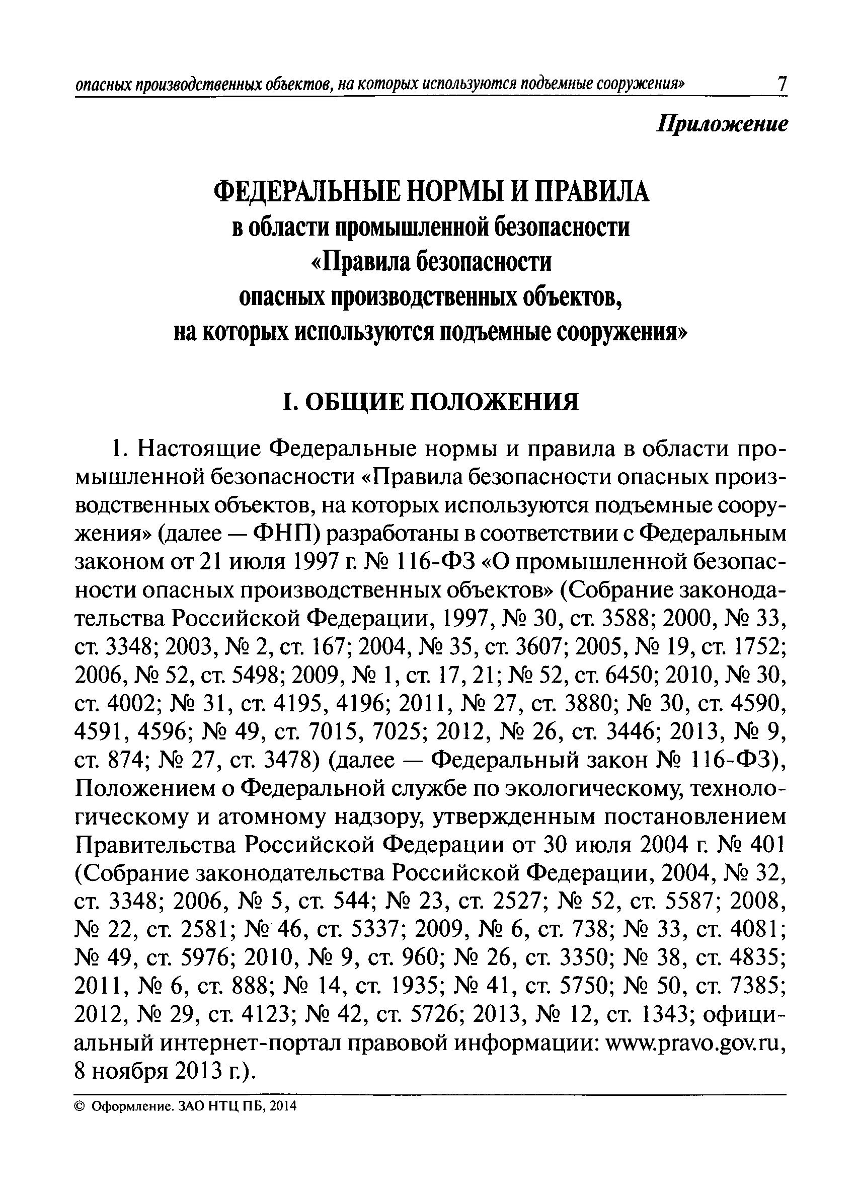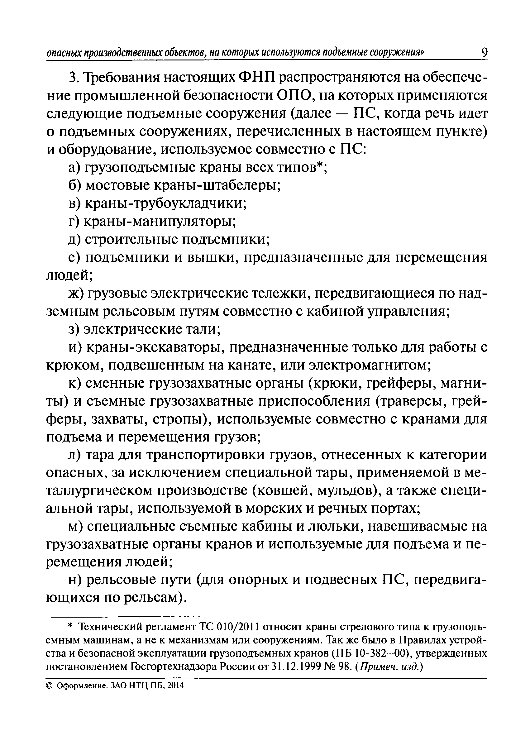 | Область применения: | Федеральные нормы и правила предназначены для применения организациями, осуществляющими деятельность в области промышленной безопасности опасных производственных объектов, на которых используются подъемные сооружения, и применяются в части, не противоречащей действующим законодательным и иным нормативным правовым актам. |