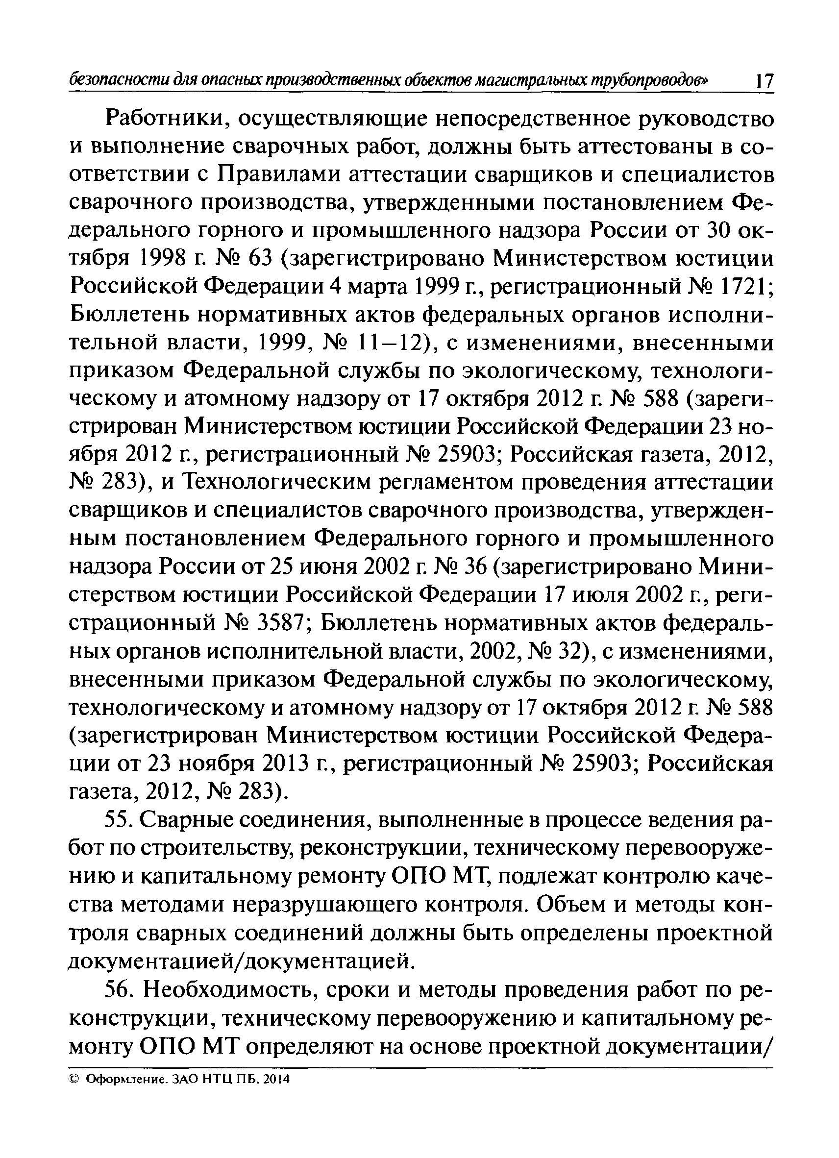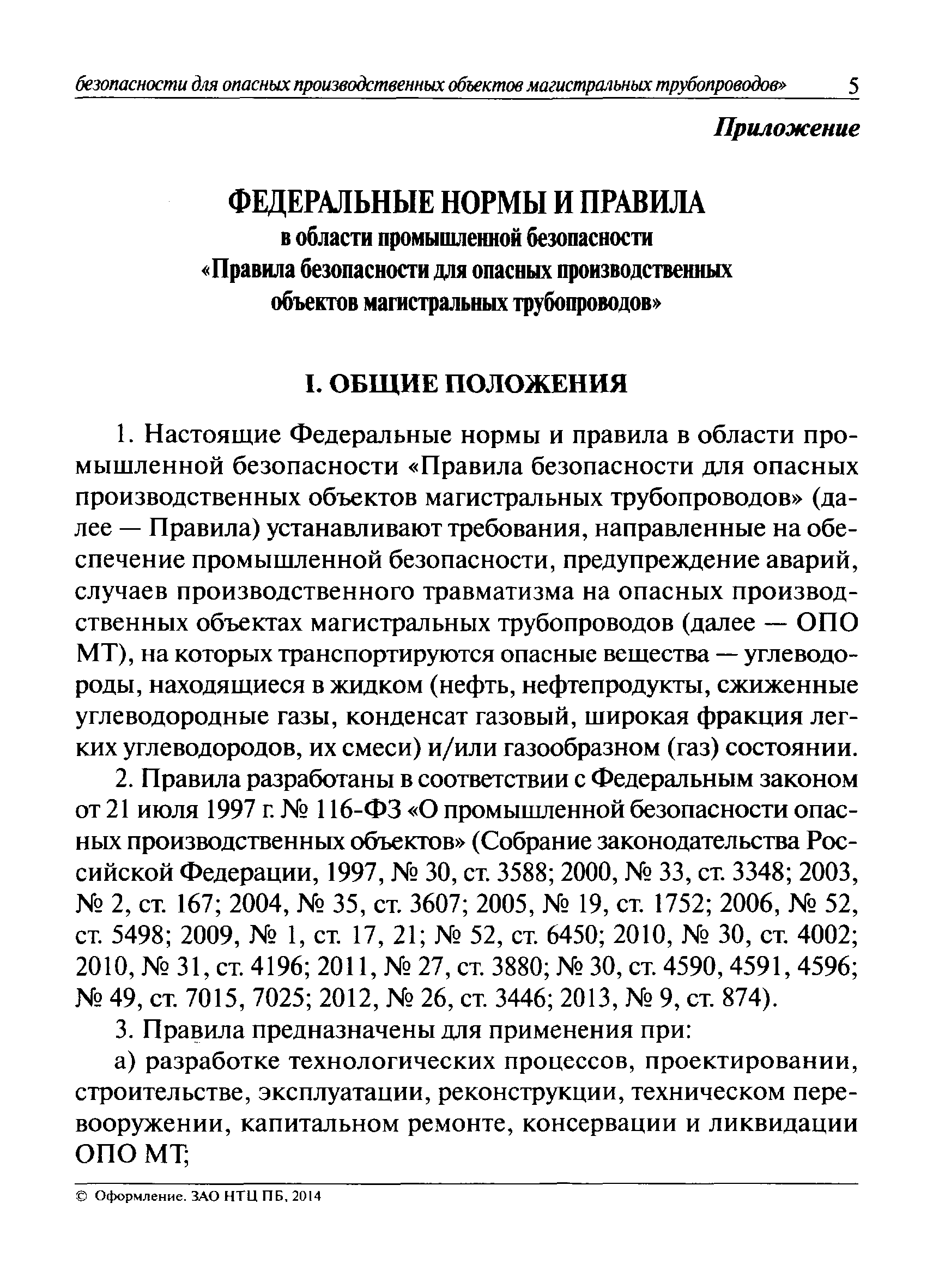 | Название рус.: | Федеральные нормы и правила в области промышленной безопасности "Правила безопасности для опасных производственных объектов магистральных трубопроводов" |