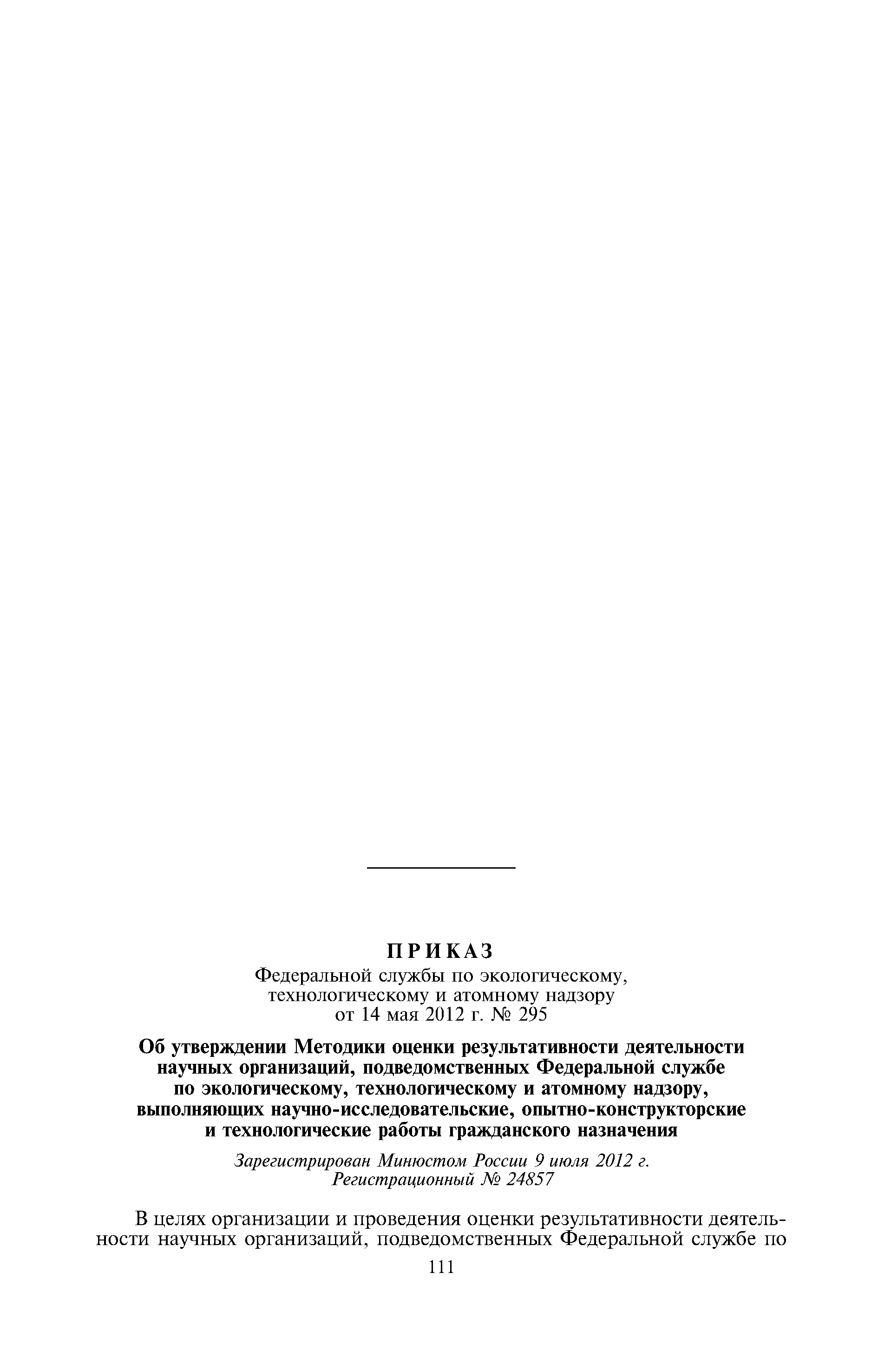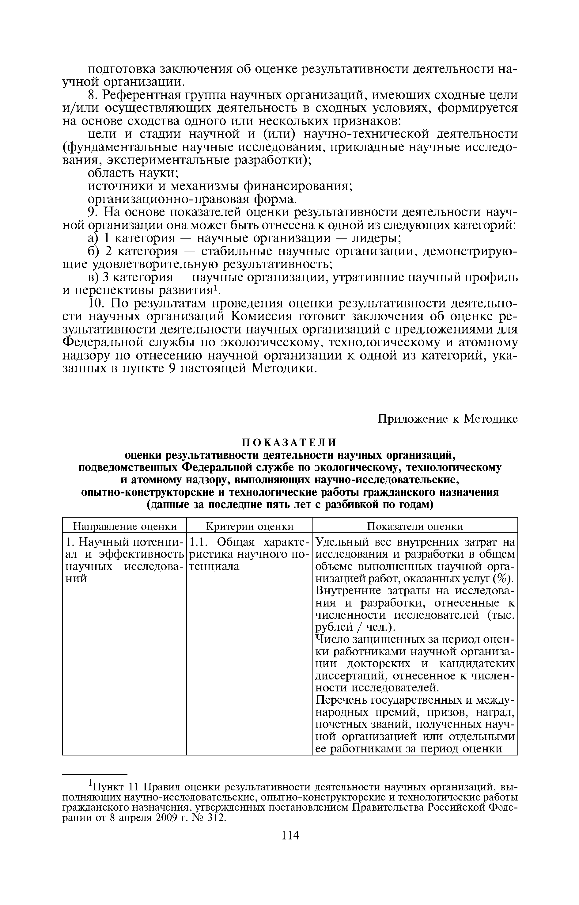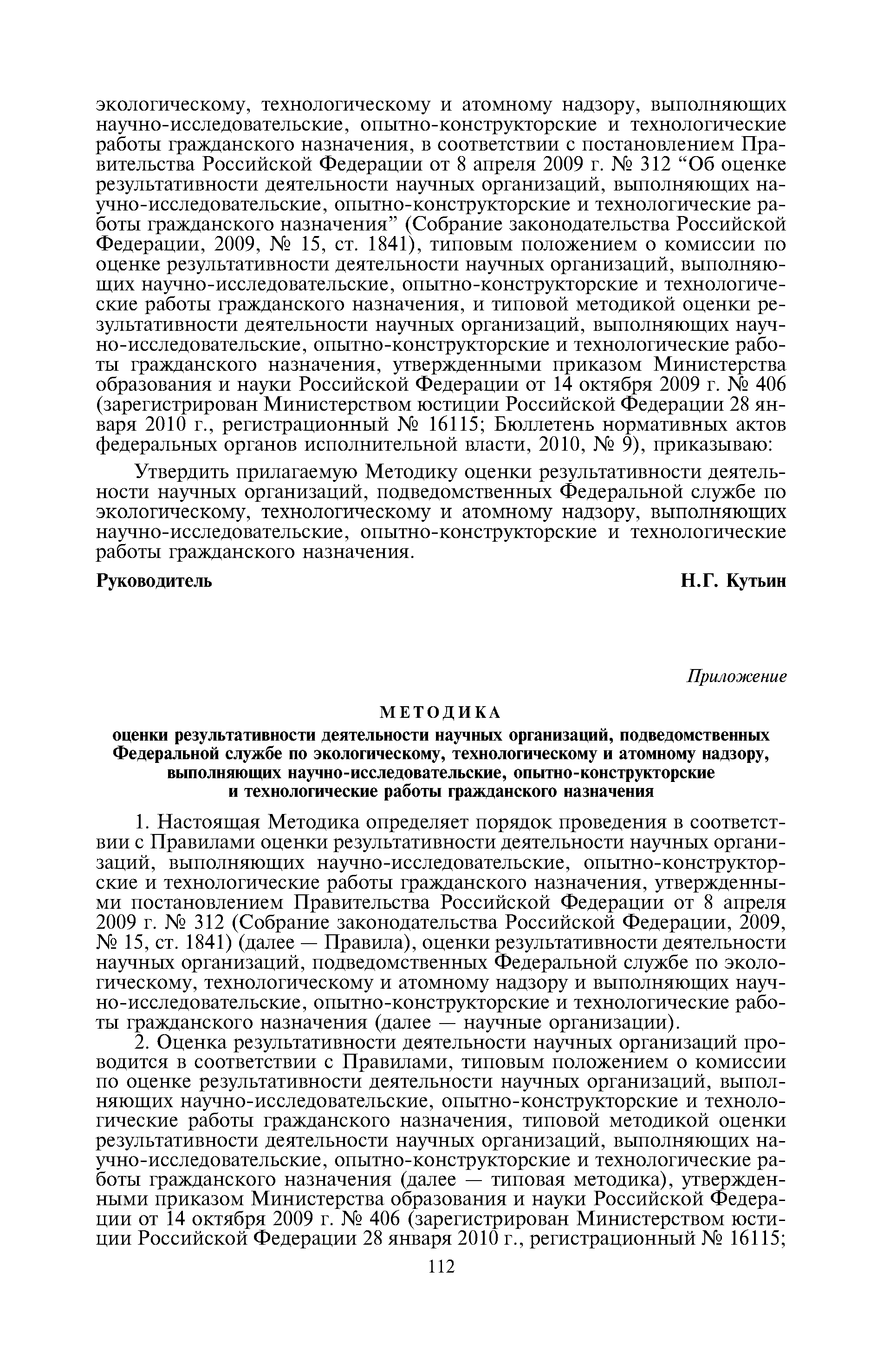 Методика оценки результативности деятельности научных организаций, подведомственных Федеральной службе по экологическому, технологическому и атомному надзору, выполняющих научно-исследовательские, опытно-конструкторские и технологические работы гражданского назначения| Статус: | утратил силу | | Название рус.: | Методика оценки результативности деятельности научных организаций, подведомственных Федеральной службе по экологическому, технологическому и атомному надзору, выполняющих научно-исследовательские, опытно-конструкторские и технологические работы гражданского назначения | | Дата добавления в базу: | 01.10.2014 | | Дата актуализации: | 01.01.2021 | | Дата введения: | 23.11.2012 | | Дата окончания срока действия: | 14.02.2016 | | Область применения: | Методика определяет порядок проведения, в соответствии с Правилами оценки результативности деятельности научных организаций, выполняющих научно-исследовательские, опытно-конструкторские и технологические работы гражданского назначения, оценки результативности деятельности научных организаций, подведомственных Федеральной службе по экологическому, технологическому и атомному надзору и выполняющих научно-исследовательские, опытно-конструкторские и технологические работы гражданского назначения. | | Утверждён: | 14.05.2012 Федеральная служба по экологическому, технологическому и атомному надзору (295)