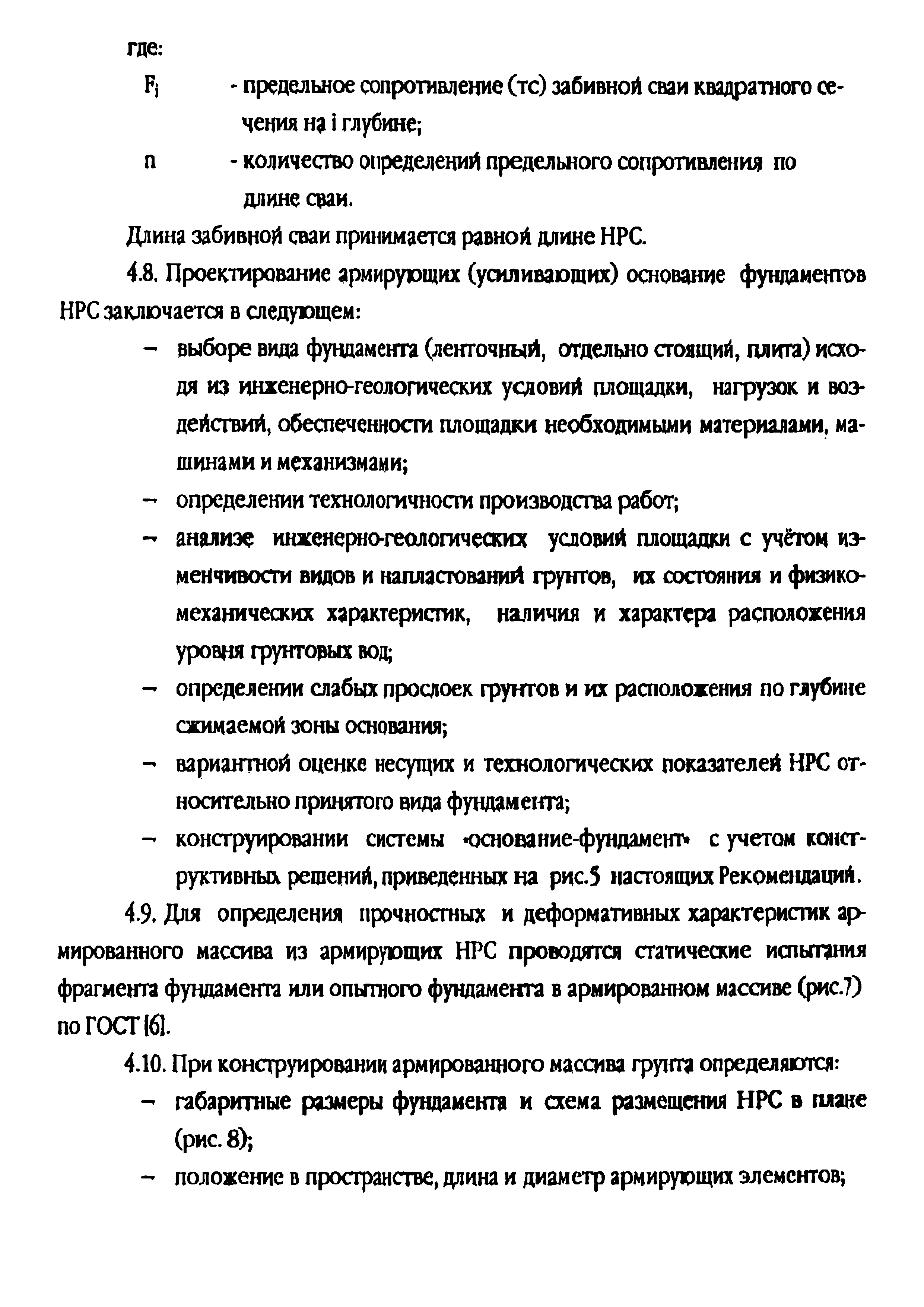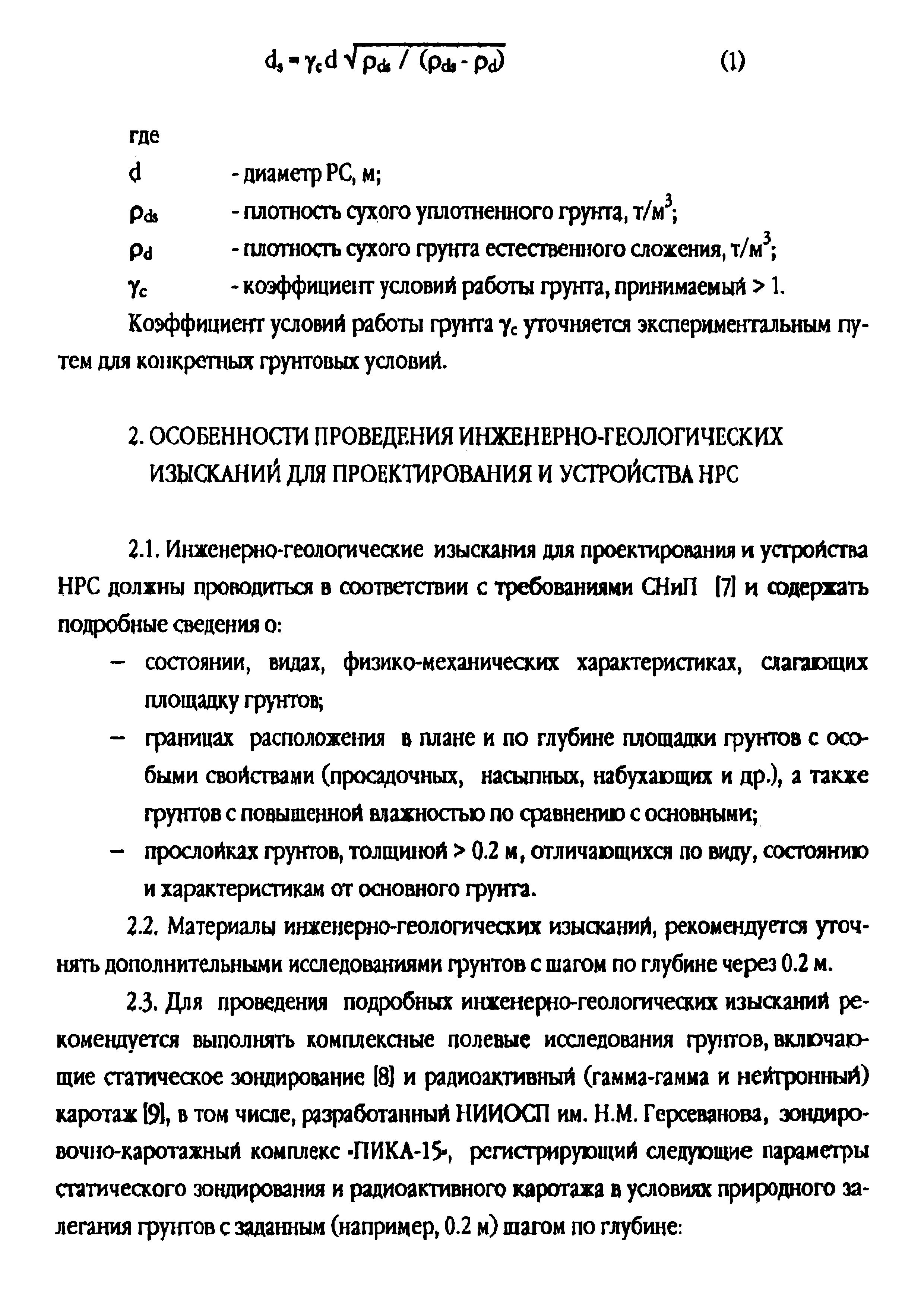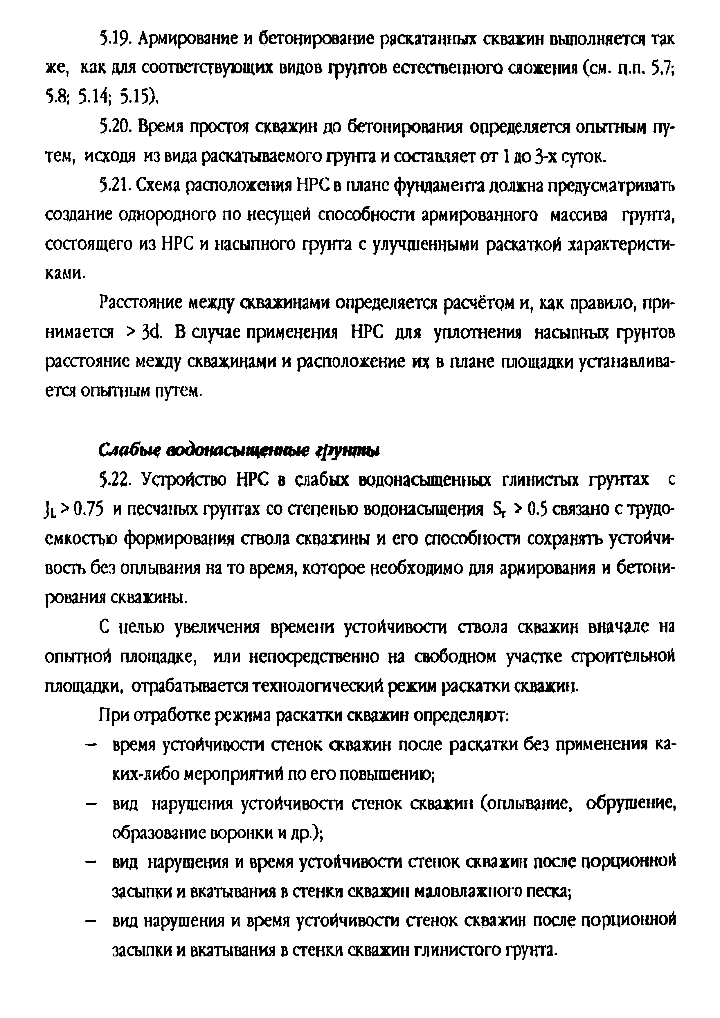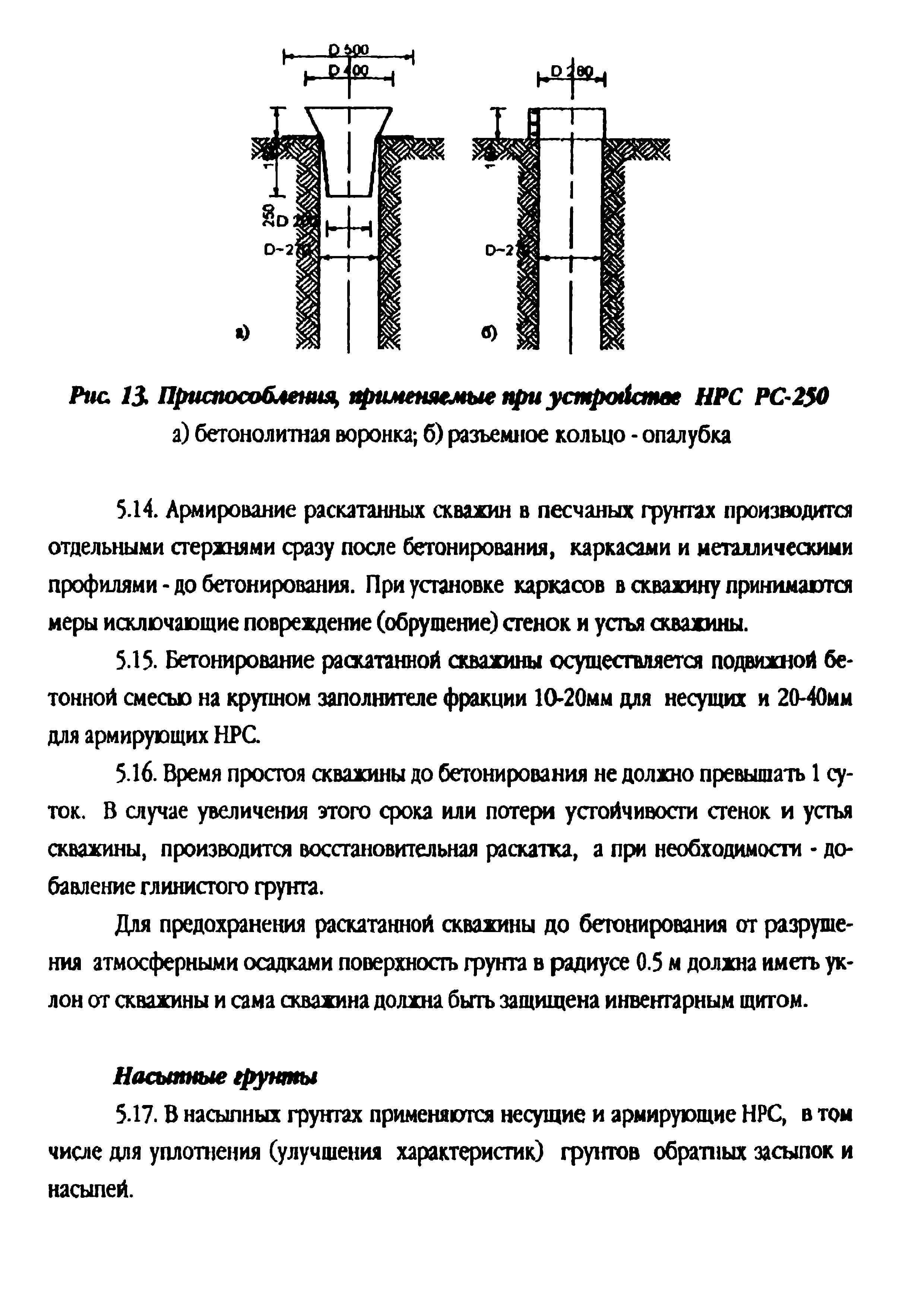 | Оглавление: | Введение 1. Общие положения 2. Особенности проведения инженерно-геологических изысканий для проектирования и устройства НРС 3. Классификация конструктивных решений устройства НРС 4. Проектирование оснований фундаментов из НРС 5. Устройство НРС в различных инженерно-геологических условиях 6. Производство работ Список использованных источников Приложение 1. Пример определения несущей способности НРС по данным комплексного статического зондирования Приложение 2. Журнал производства работ по устройству НРС Приложение 3. Технико-экономические показатели раскатки вертикальных скважин РС 250 установкой на базе ПБУ-1 (УГБ-50М) |