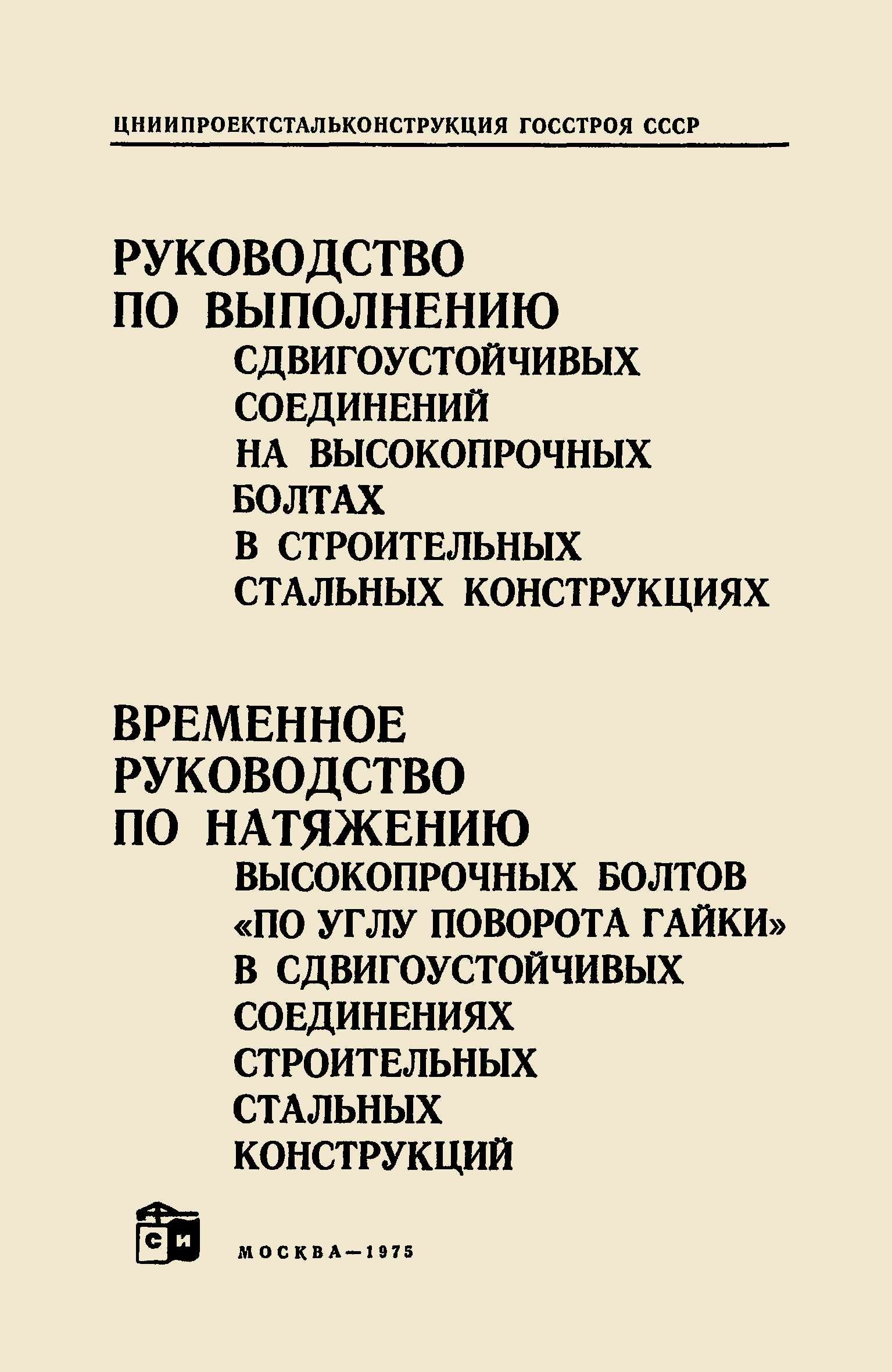| Название рус.: | Временное руководство по натяжению высокопрочных болтов "по углу поворота гайки" в сдвигоустойчивых соединениях строительных стальных конструкций |