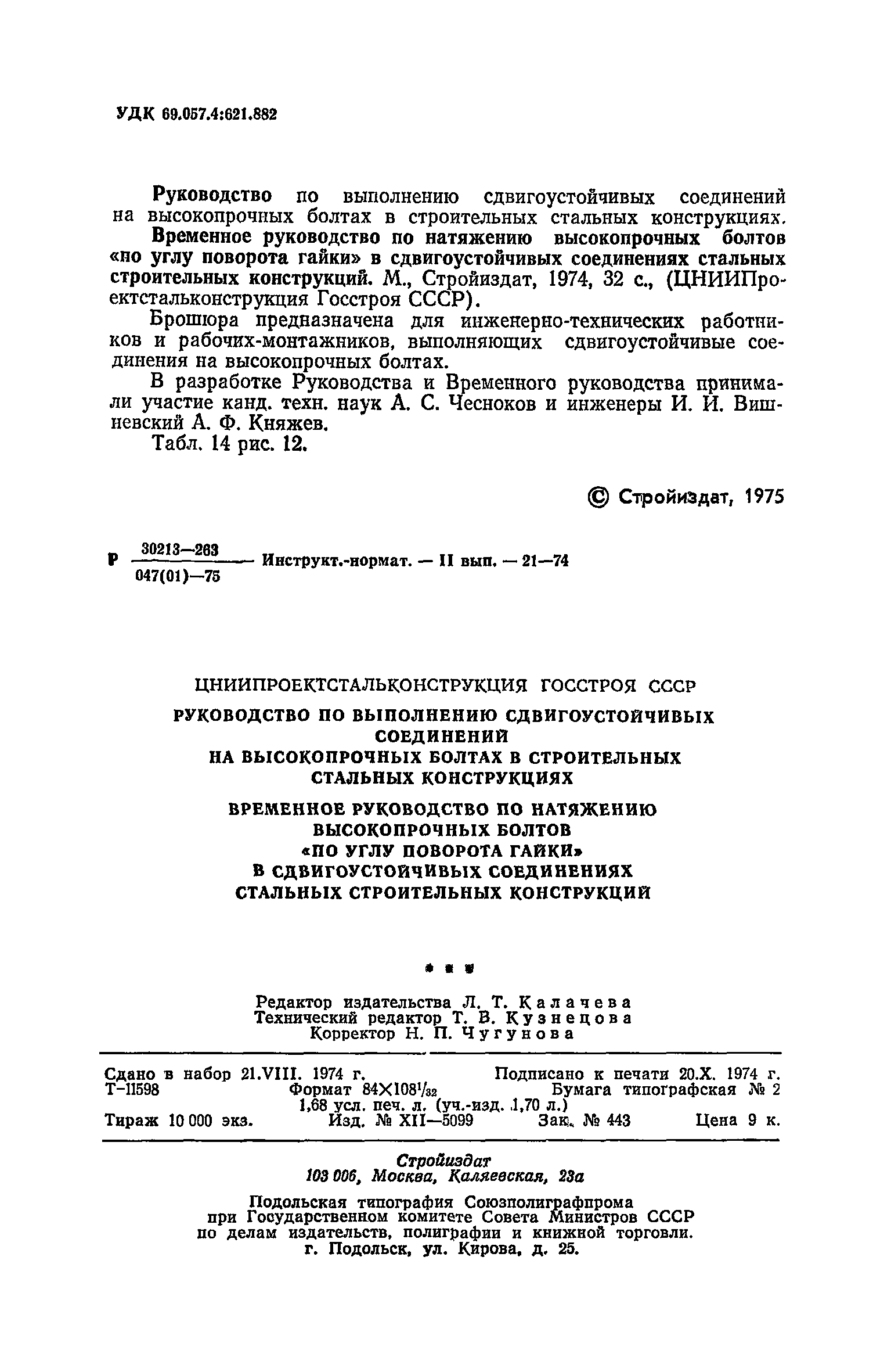 | Название рус.: | Руководство по выполнению сдвигоустойчивых соединений на высокопрочных болтах в строительных стальных конструкциях |