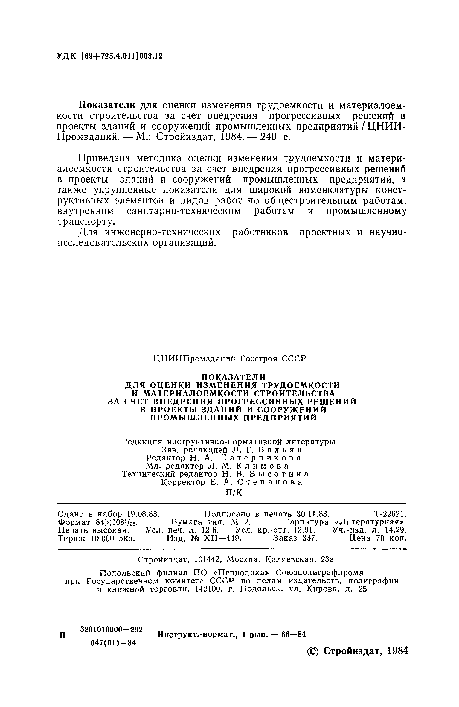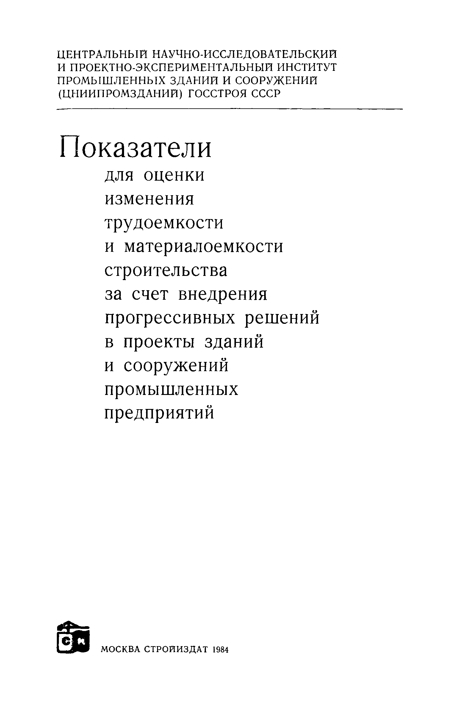 | Название рус.: | Показатели для оценки изменения трудоемкости и материалоемкости строительства за счет внедрения прогрессивных решений в проекты зданий и сооружений промышленных предприятий |