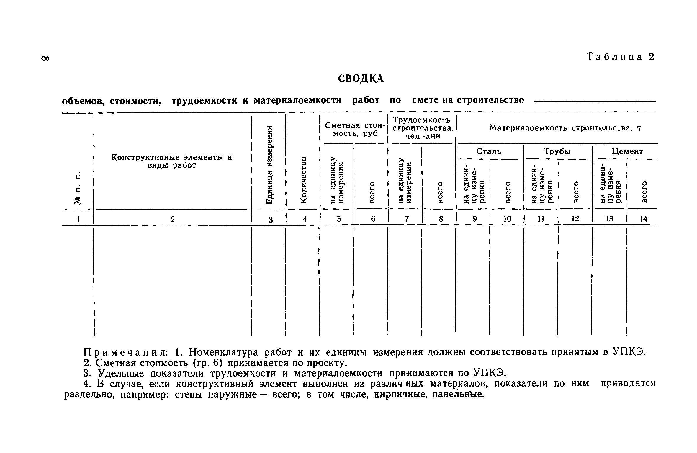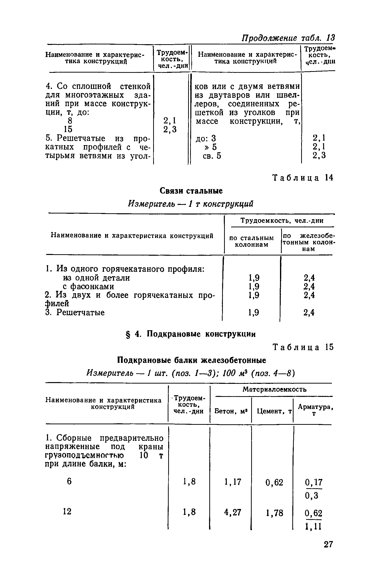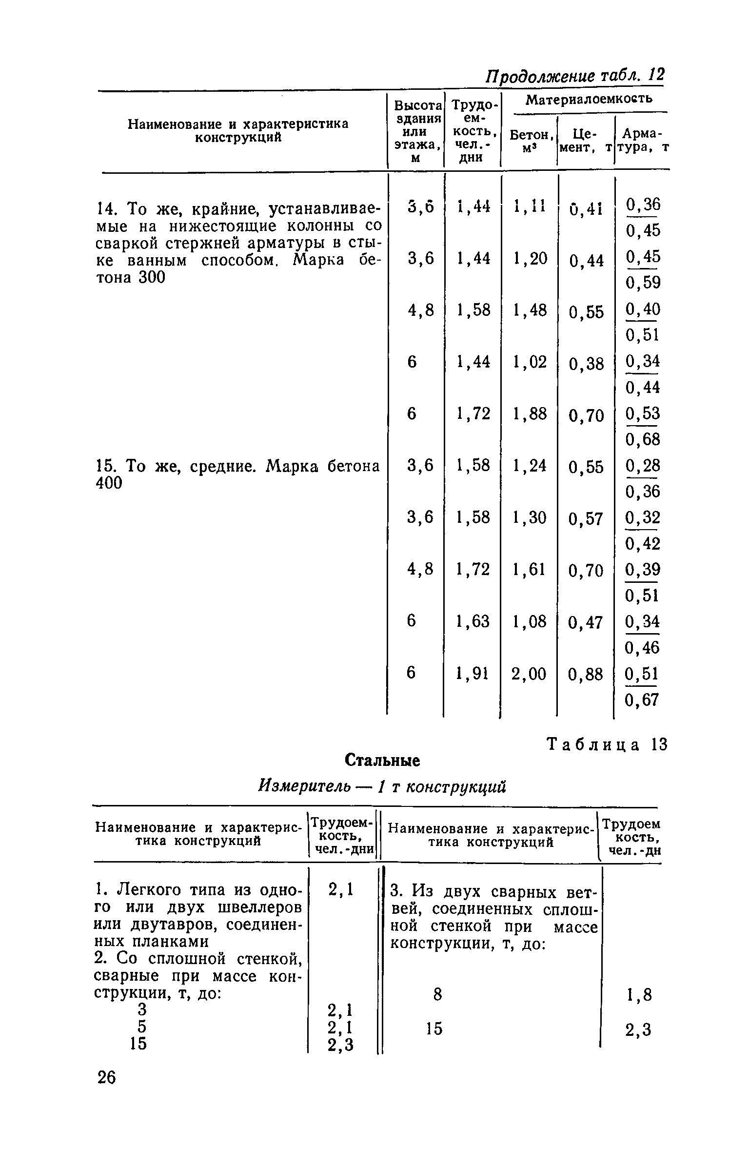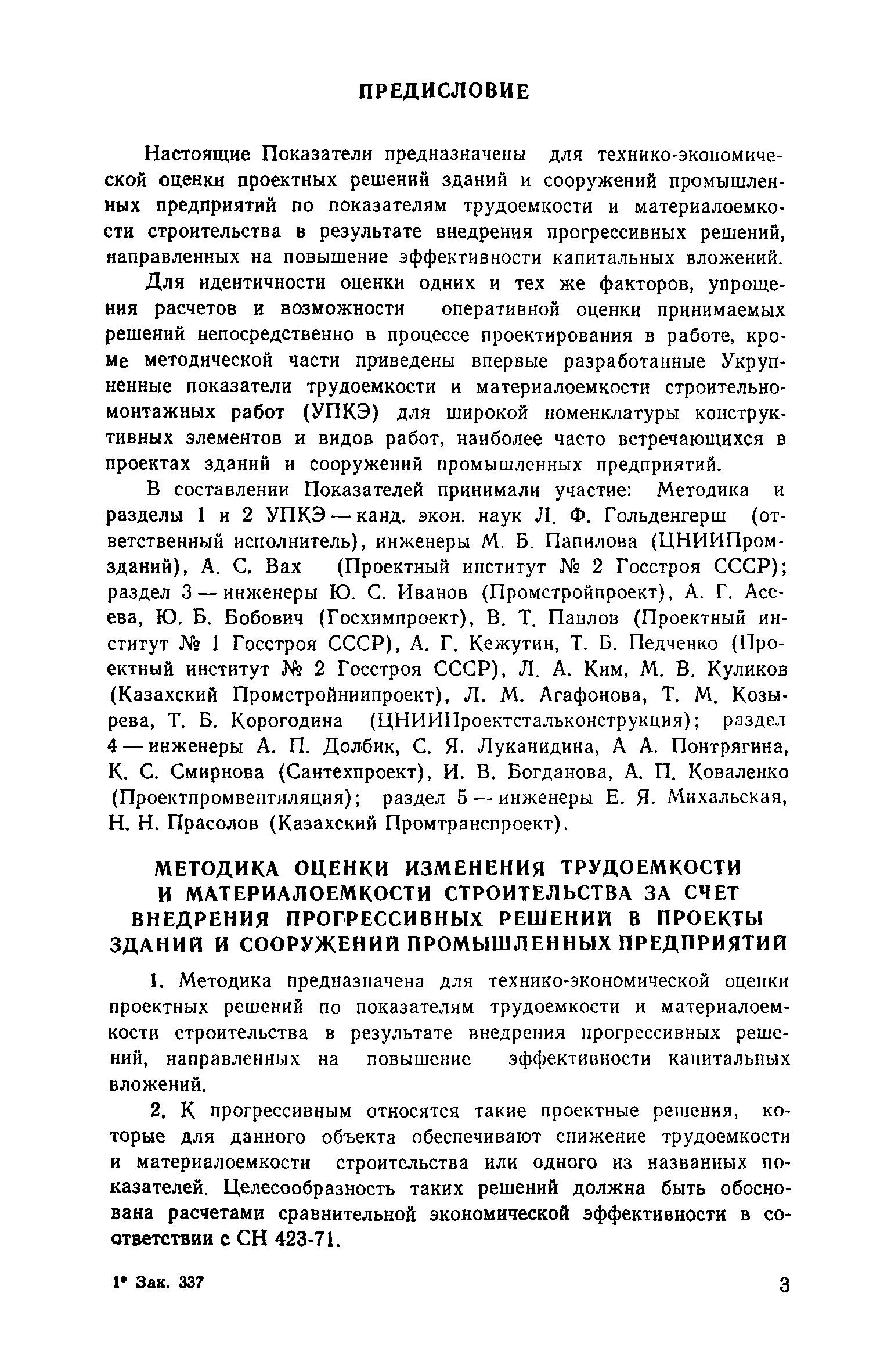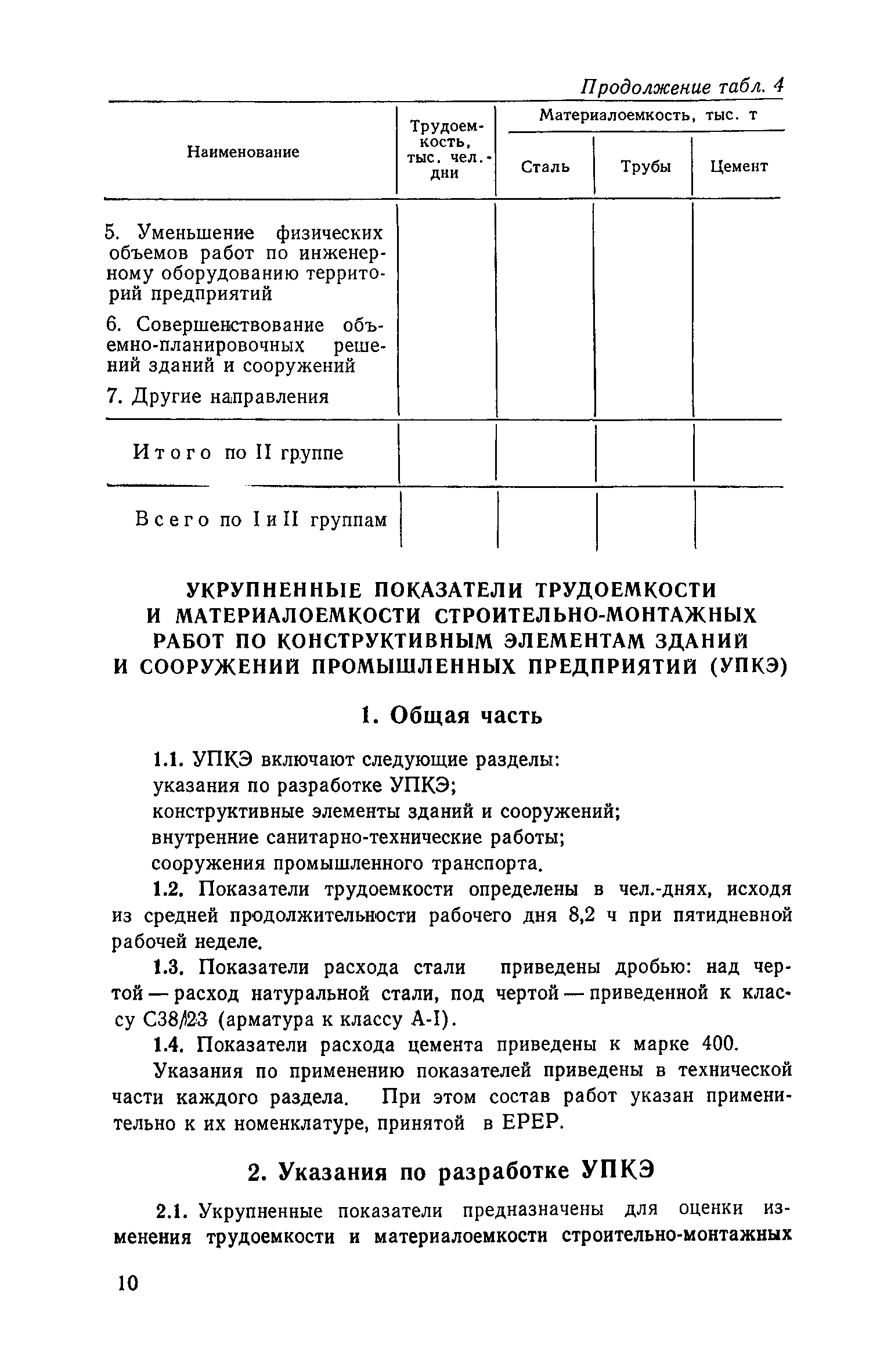| Оглавление: | Предисловие Методика оценки изменения трудоемкости и материалоемкости строительства за счет внедрения прогрессивных решений в проекты зданий и сооружений промышленных предприятий Укрупненные показатели трудоемкости и материалоемкости строительно-монтажных работ по конструктивным элементам зданий и сооружений промышленных предприятий (УПКЭ) 1. Общая часть 2. Указания по разработке УПКЭ 3. Конструктивные элементы зданий и сооружений Земляные работы Фундаменты Колонны Подкрановые конструкции Перекрытия Стропильные конструкции Каркасы производственных зданий Покрытия и кровли Стены и перегородки Полы Фонари Заполнение проемов Отделочные работы Теплоизоляционные работы Подвалы Тоннели н каналы Эстакады и отдельно стоящие опоры под технологические трубопроводы 4. Внутренние санитарно-технические работы Внутренние водопровод, канализация и трубопроводы Отопление и вентиляция Кондиционирование воздуха 5. Сооружения промышленного транспорта |