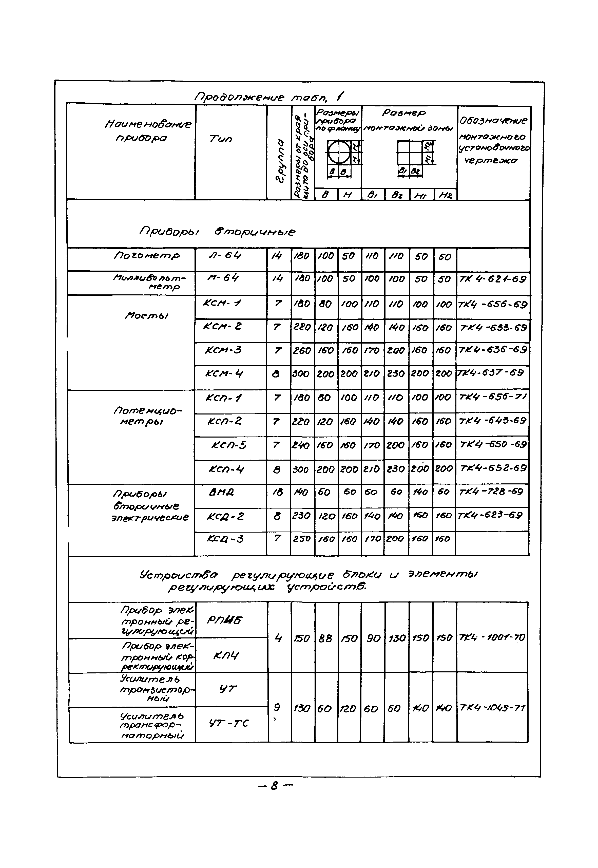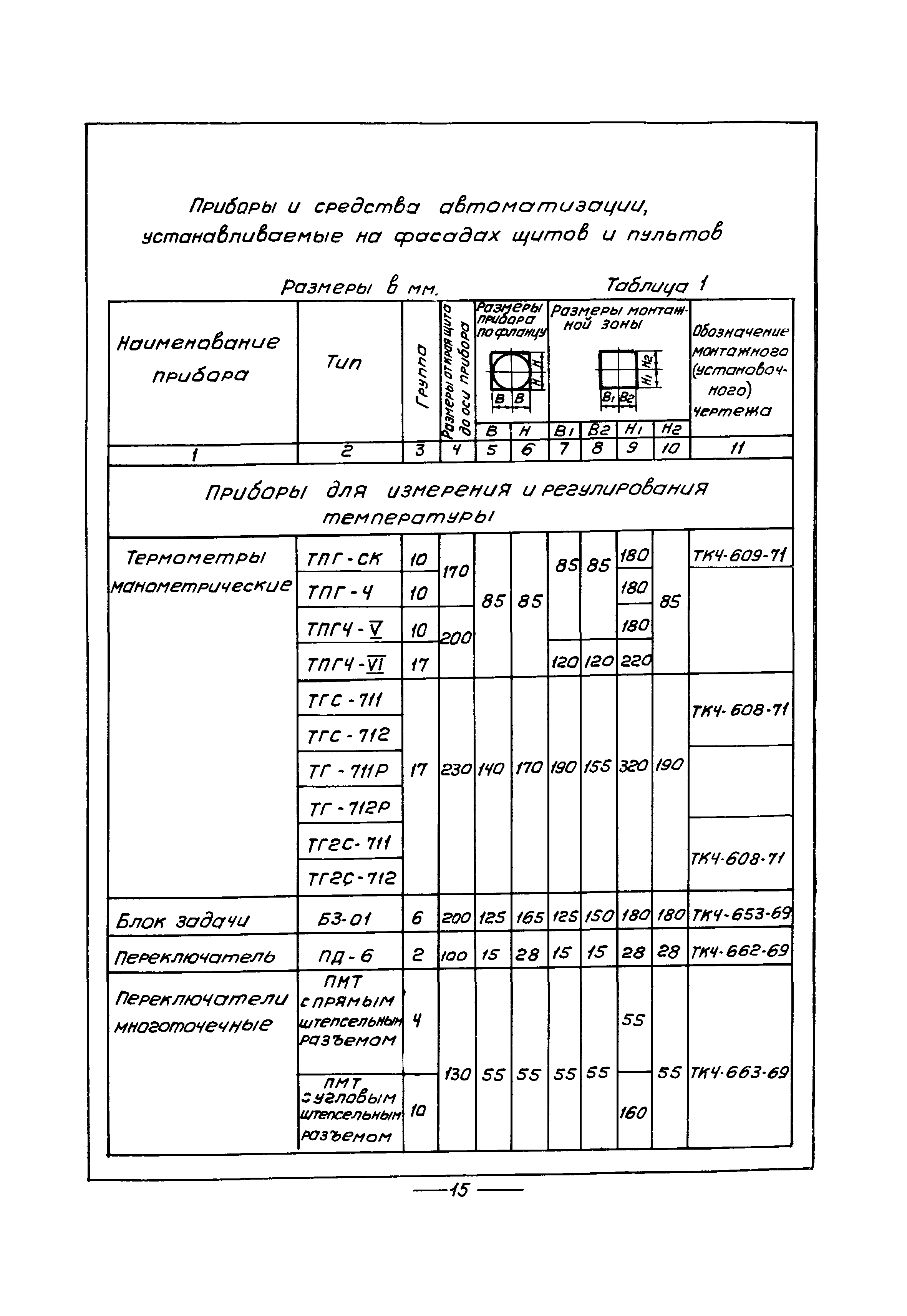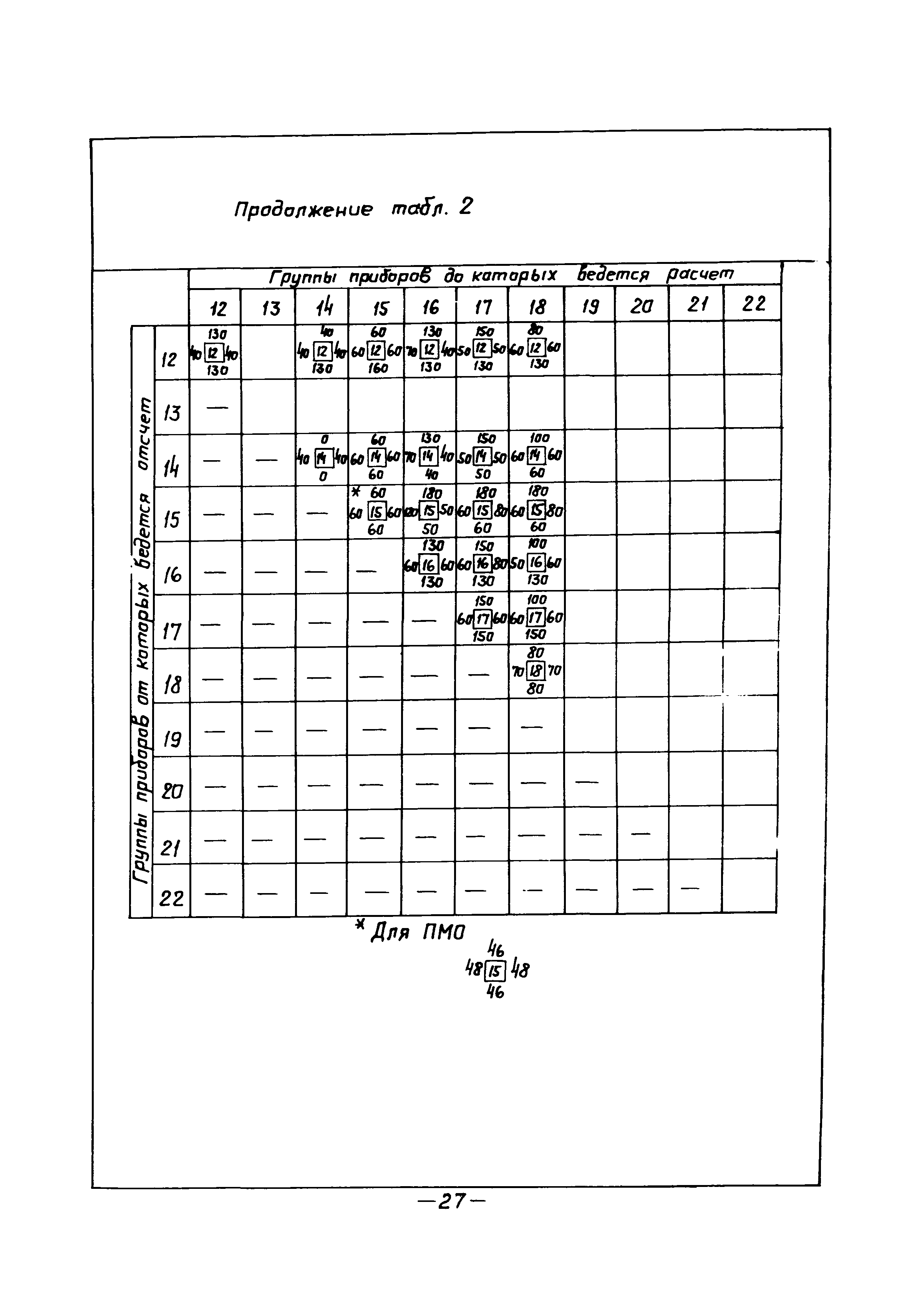 Рекомендуемые расстояния между приборами на фасадах щитов и пультов, применяемых для автоматизации котельных и сантехсистем| Статус: | справочные материалы, мп, тпр | | Название рус.: | Рекомендуемые расстояния между приборами на фасадах щитов и пультов, применяемых для автоматизации котельных и сантехсистем | | Дата добавления в базу: | 01.10.2014 | | Дата актуализации: | 01.01.2021 | | Область применения: | Документ действует при определении расстояния между приборами на фасадах щитов и пультов, применяемых для автоматизации котельных и сантехсистем | | Оглавление: | Общие положения Порядок расчета Приборы и средства автоматизации, устанавливаемые на фасадах щитов и пультов (таблица 1) Рекомендуемые расстояния между приборами и средствами автоматизации на фасадах щитов и пультов (таблица 2) Приборы и средства автоматизации, устанавливаемые на фасадах щитов и пультов (таблица 1) Рекомендуемые расстояния между приборами и средствами автоматизации на фасадах щитов и пультов (таблица 2) | | Разработан: | ГПИ Сантехпроект Госстроя СССР