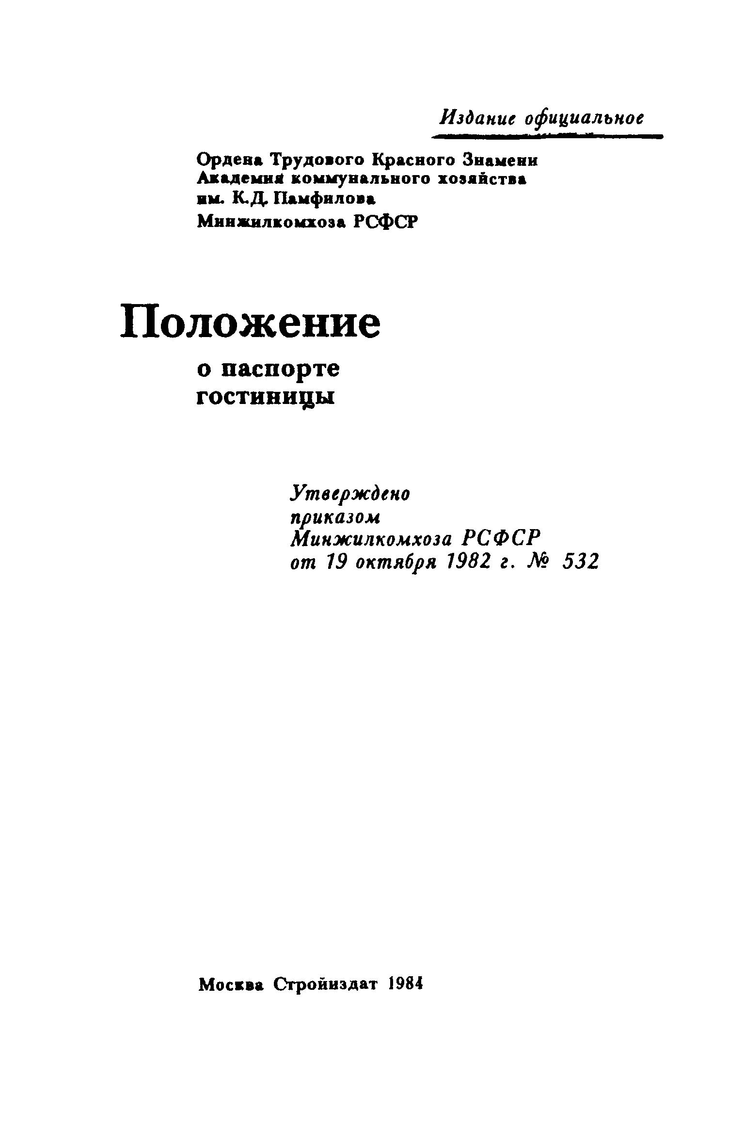 | Утверждён: | 19.10.1982 Минжилкомхоз РСФСР (Russian Federation Minzhilkomkhoz 532)