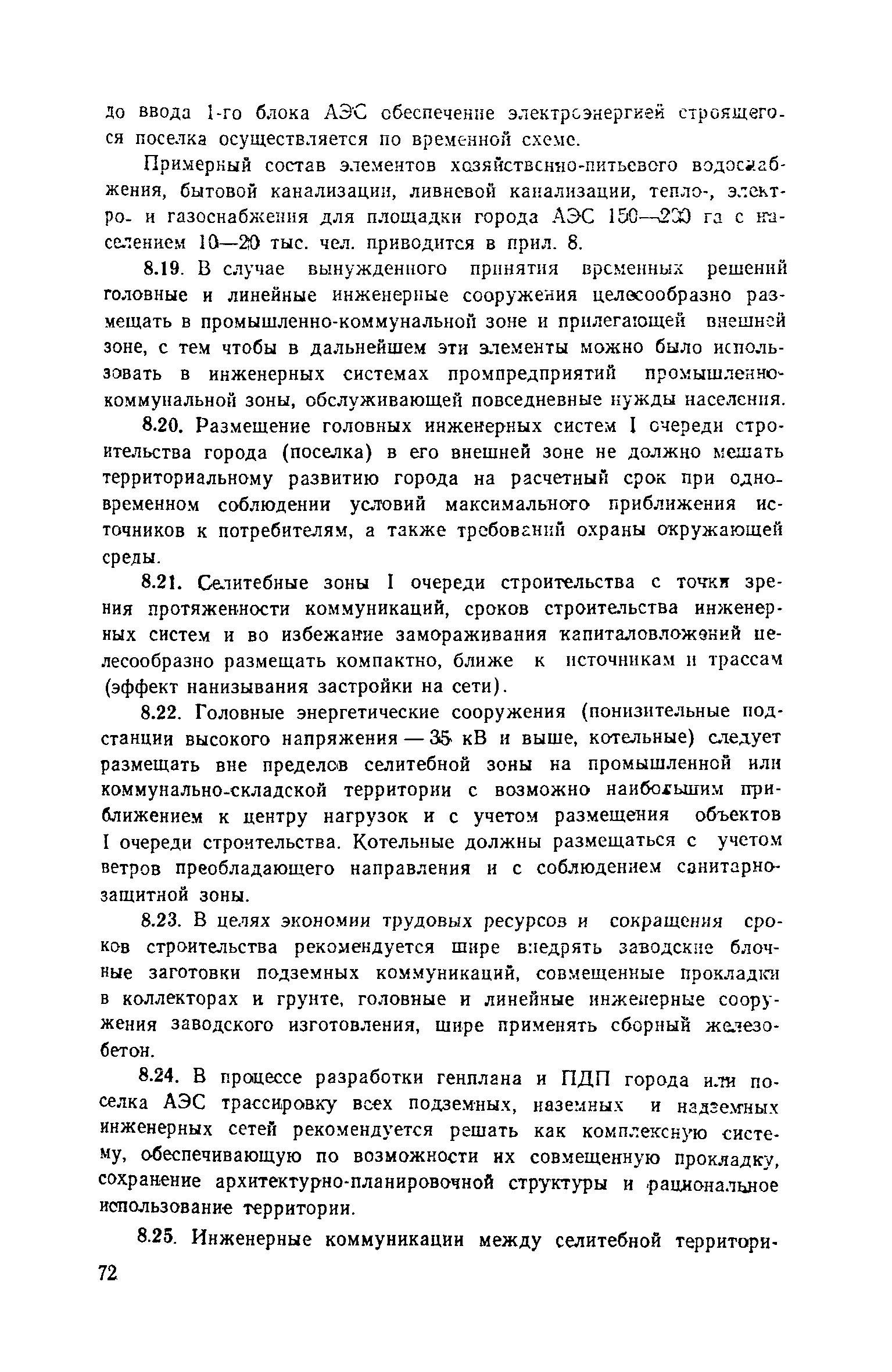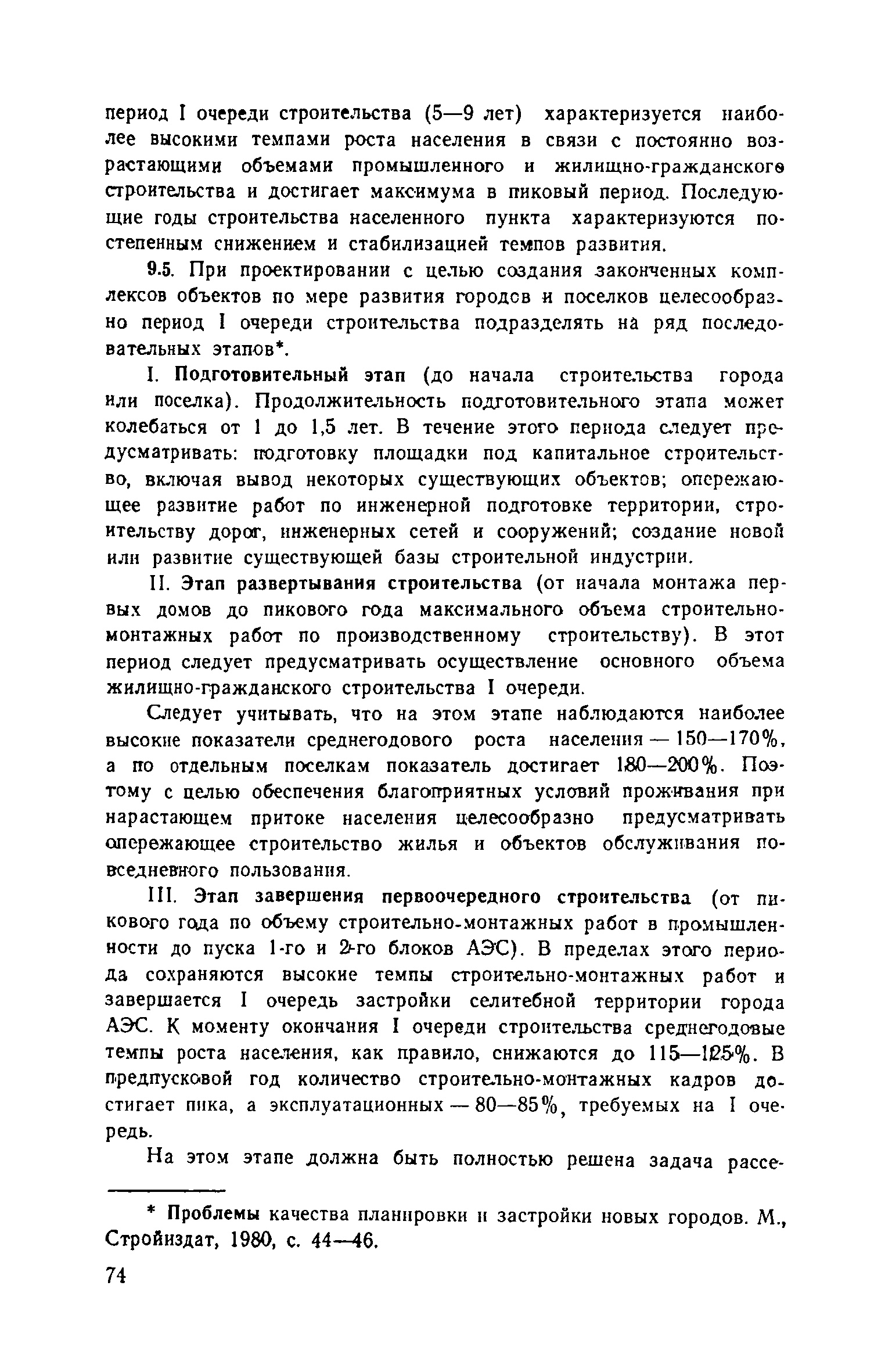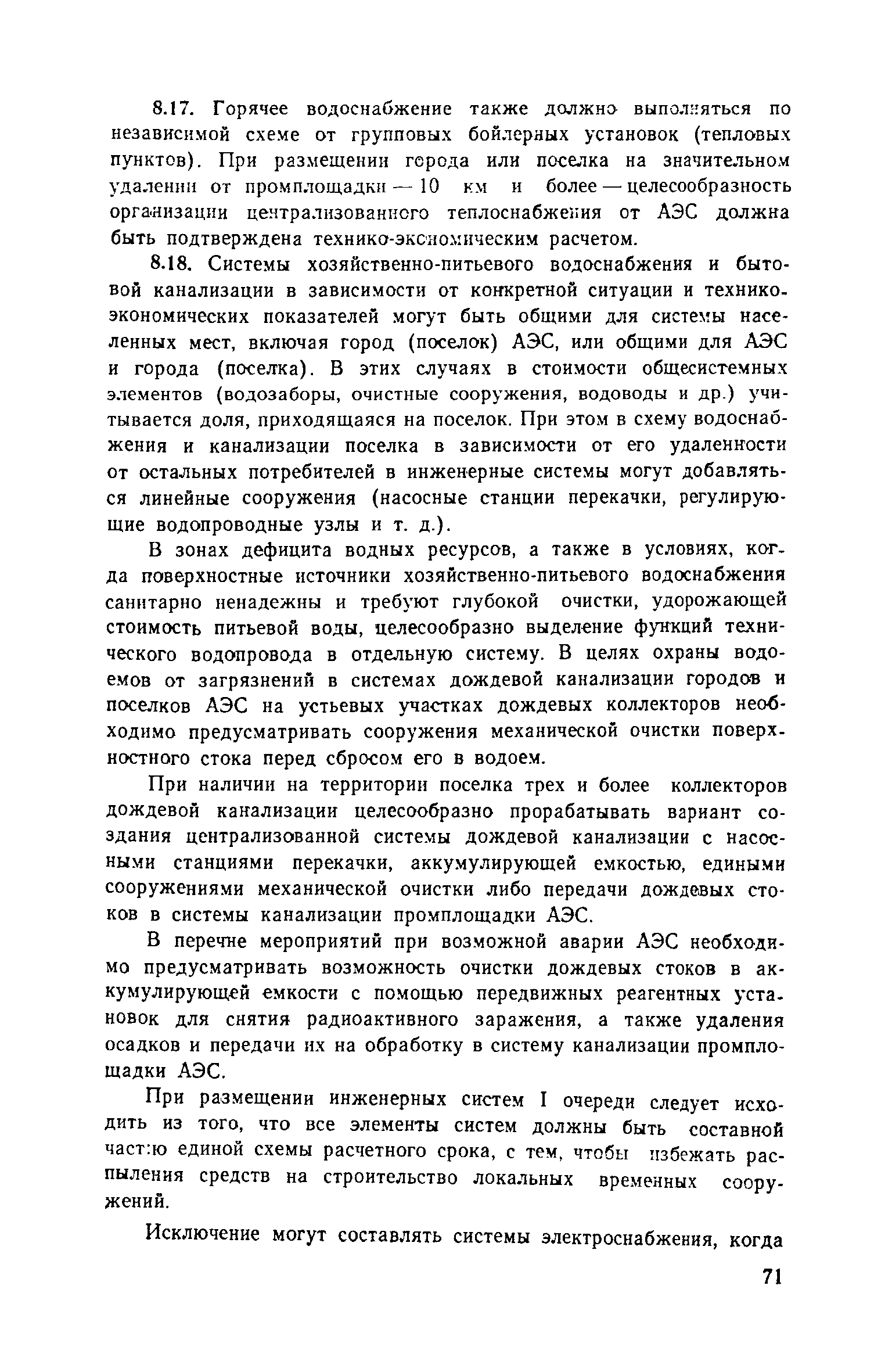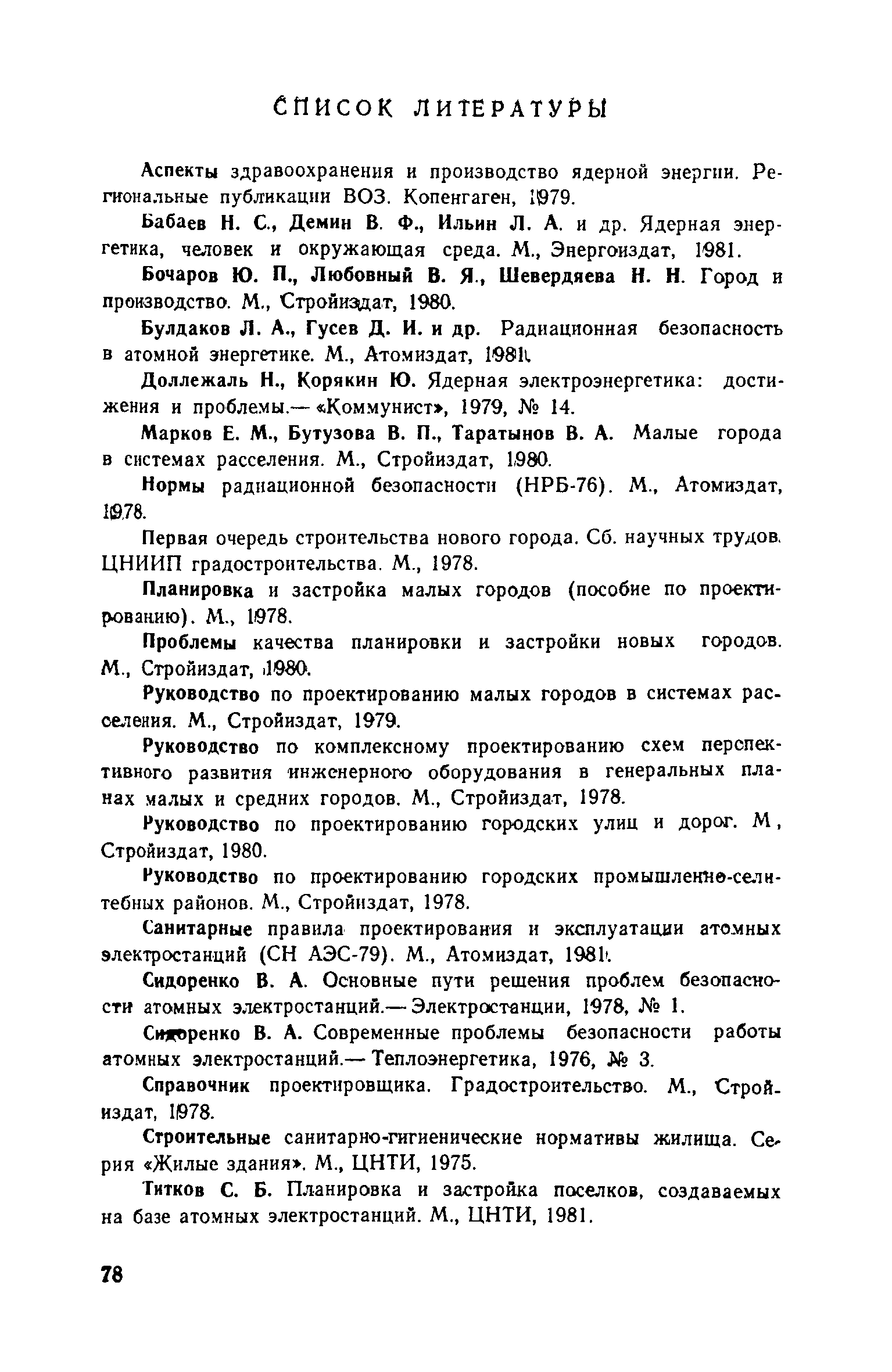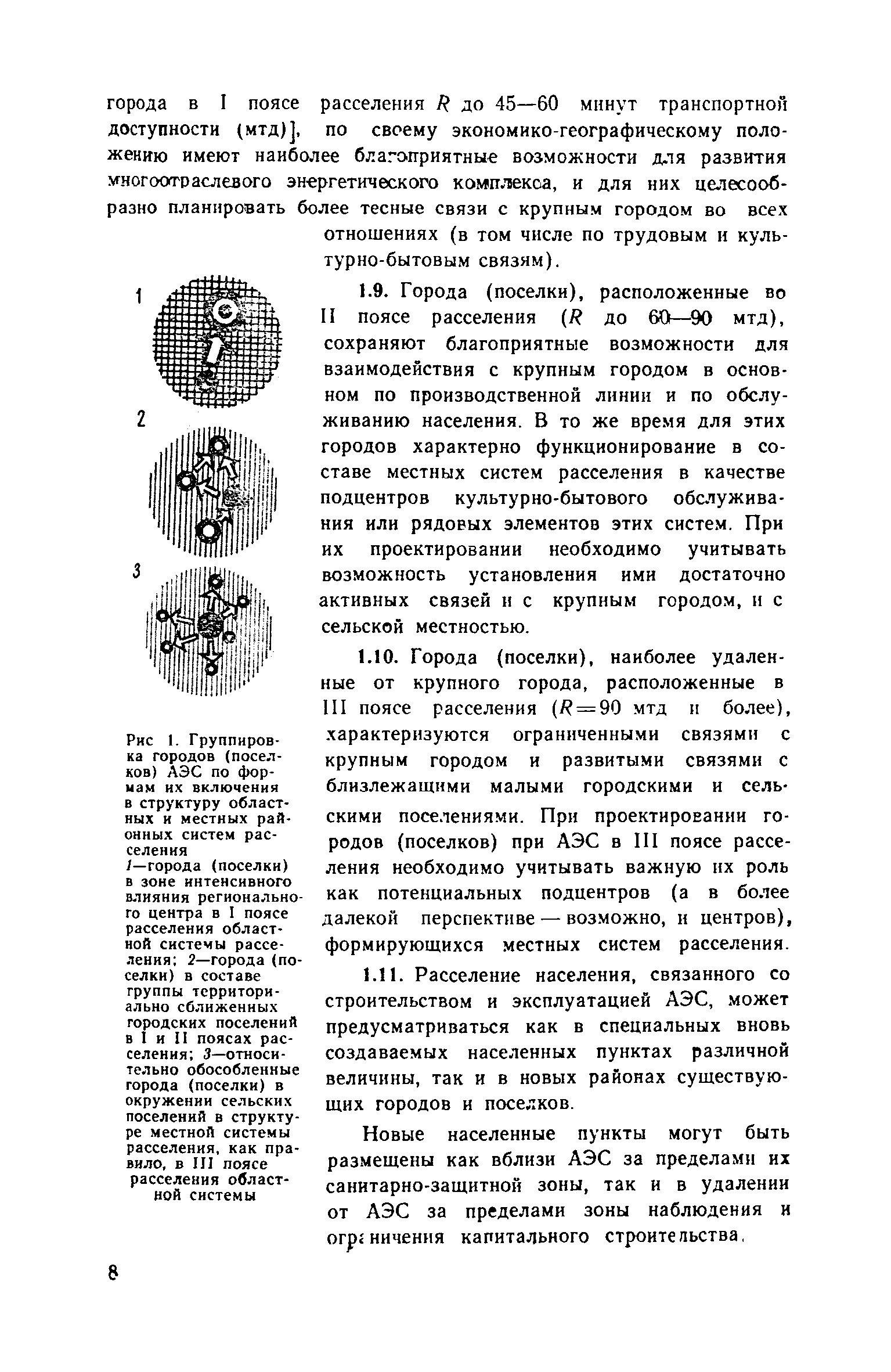 Руководство по проектированию городов и поселков АЭС| Статус: | справочные материалы, мп, тпр | | Название рус.: | Руководство по проектированию городов и поселков АЭС | | Дата добавления в базу: | 01.10.2014 | | Дата актуализации: | 01.01.2021 | | Область применения: | В документе приведены основные положения по размещению городов и поселков в областных системах расселения, изложены методы определения направлений и перспектив их развитии, расчета объемов строительства по этапам. Раскрыты принципы общей архитектурно-планировочной организации городов и поселков АЭС и их отдельных функциональных зон, систем общественного обслуживания населения, систем инженерного оборудования. Для работников архитектурно-планировочных органов, проектных и научно-исследовательских организаций. | | Оглавление: | Предисловие 1. Размещение и определение перспектив развития городов и поселков АЭС в системах расселения 2. Социально-профессиональный и демографический состав населения 3. Общие положения по архитектурно-планировочной организации городов и поселков АЭС 4. Формирование жилой застройки 5. Организация системы общественного обслуживания населения 6. Формирование общественного центра 7. Формирование промышленного узла и промышленно-коммунальной зоны 8. Организация систем инженерного оборудования 9. Особенности I очереди строительства городов и поселков АЭС Список литературы Приложение 1. Нормативные расстояния от городов с различной численностью населения до АТЭЦ и АЭС Приложение 2. Методика расчета численности населения городов и поселков АЭС Приложение 3. Состав, расчет и размещение учреждений и предприятий обслуживания в поселках АЭС с населением 8-12 тыс. человек Приложение 4. Состав, расчет и размещение учреждений и предприятий обслуживания в городах АЭС с населением 12-25 тыс. человек Приложение 5. Состав, расчет и размещение учреждений и предприятий обслуживания в городах АЭС с населением 25-40 тыс. человек Приложение 6. Перечень промышленных и коммунально-складских предприятий города (поселка) на базе АЭС мощностью 6000 МВт Приложение 7. Расчетные показатели складских объектов, размещаемых в городах и поселках АЭС Приложение 8. Состав инженерных систем городов и поселков АЭС | | Разработан: | ЦНИИП градостроительства