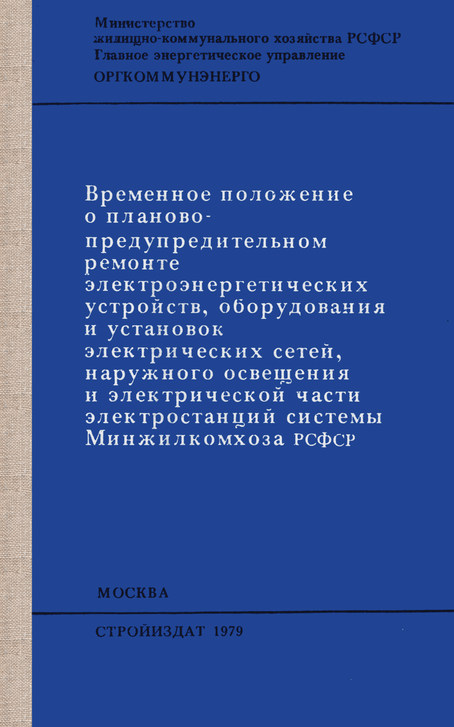 Скачать Временное положение о планово-предупредительном ремонте электроэнергетических устройств, оборудования и установок электрических сетей, наружного освещения и электрической части электростанций системы Минжилкомхоза РСФСРДата актуализации: 01.01.2021