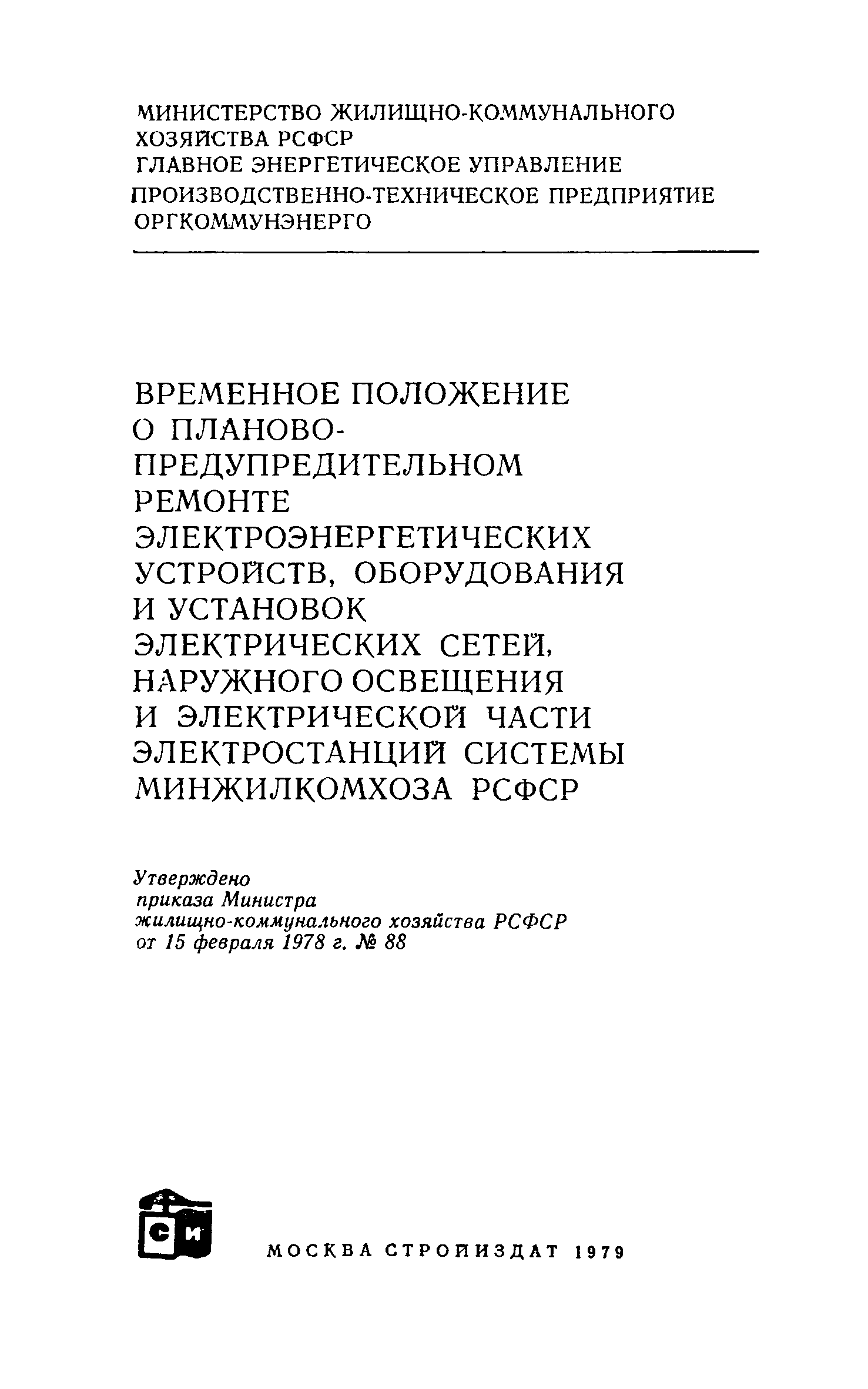 | | Утверждён: | 15.02.1978 Министерство жилищно-коммунального хозяйства РСФСР (88)