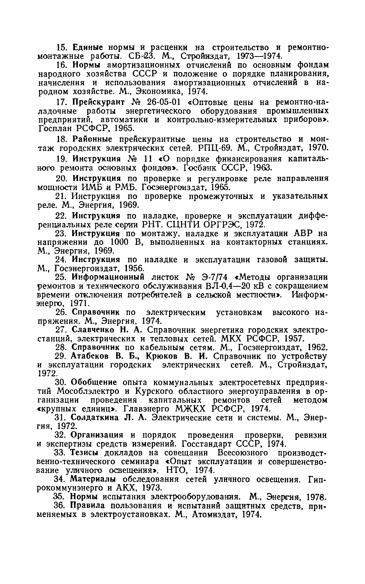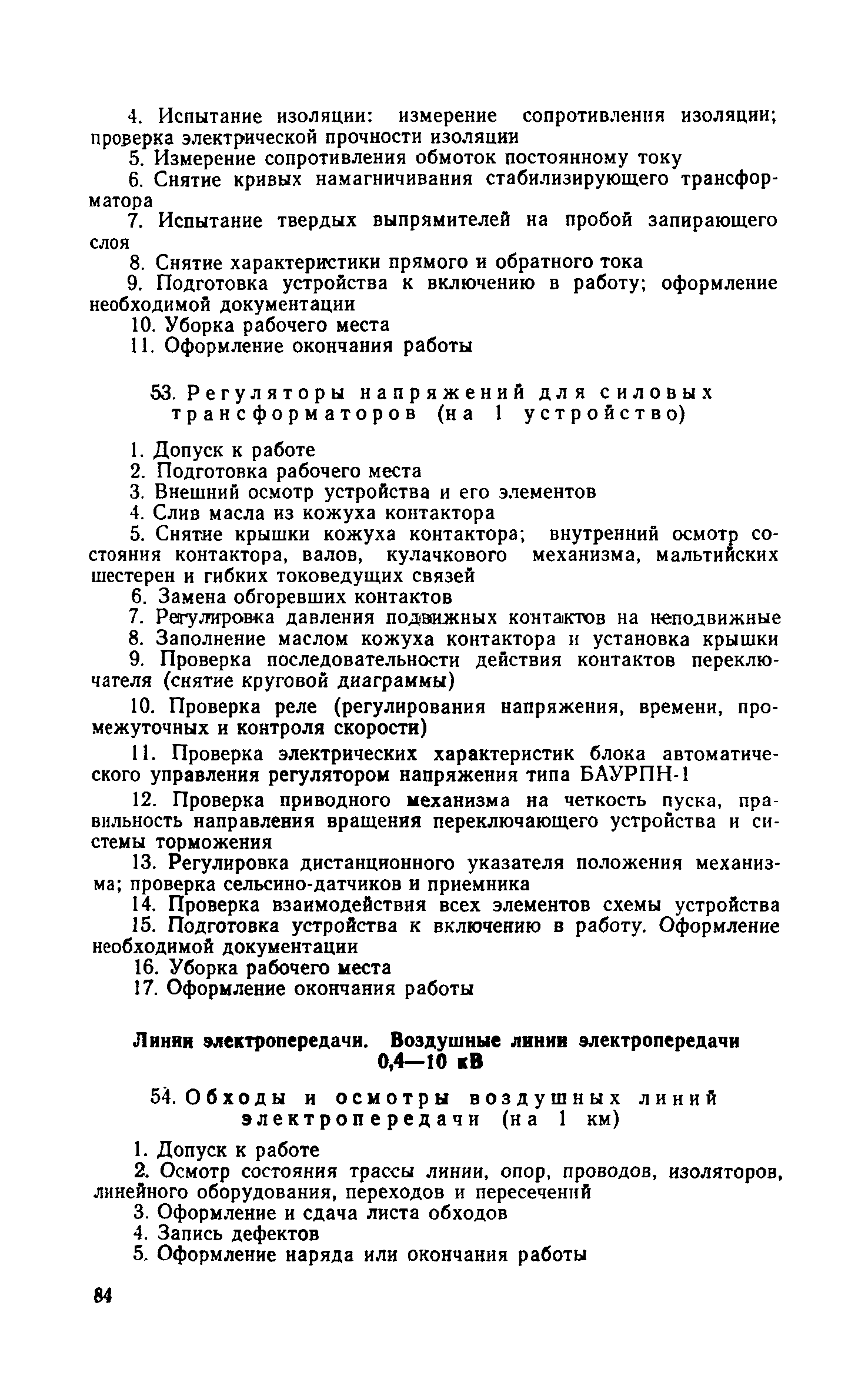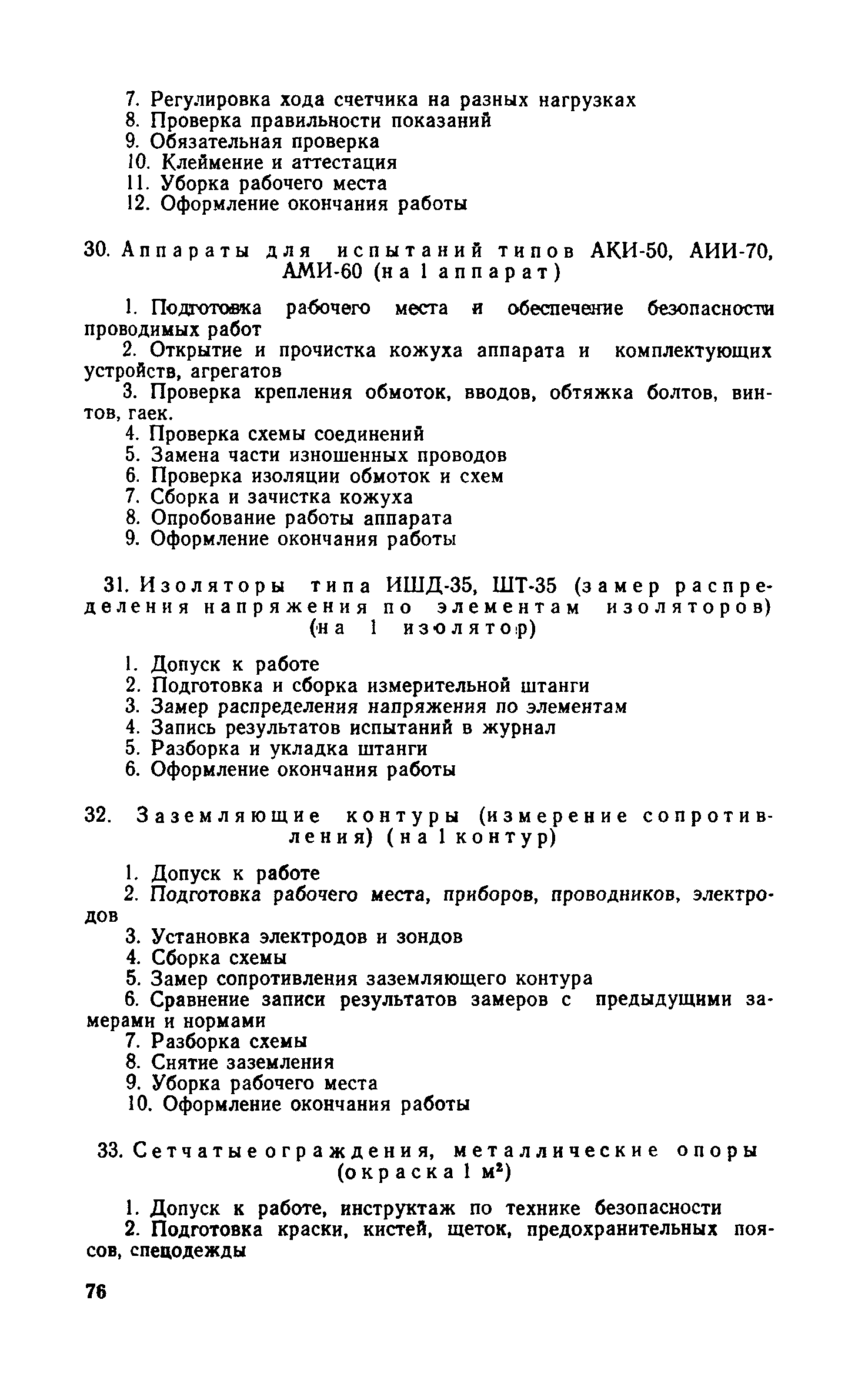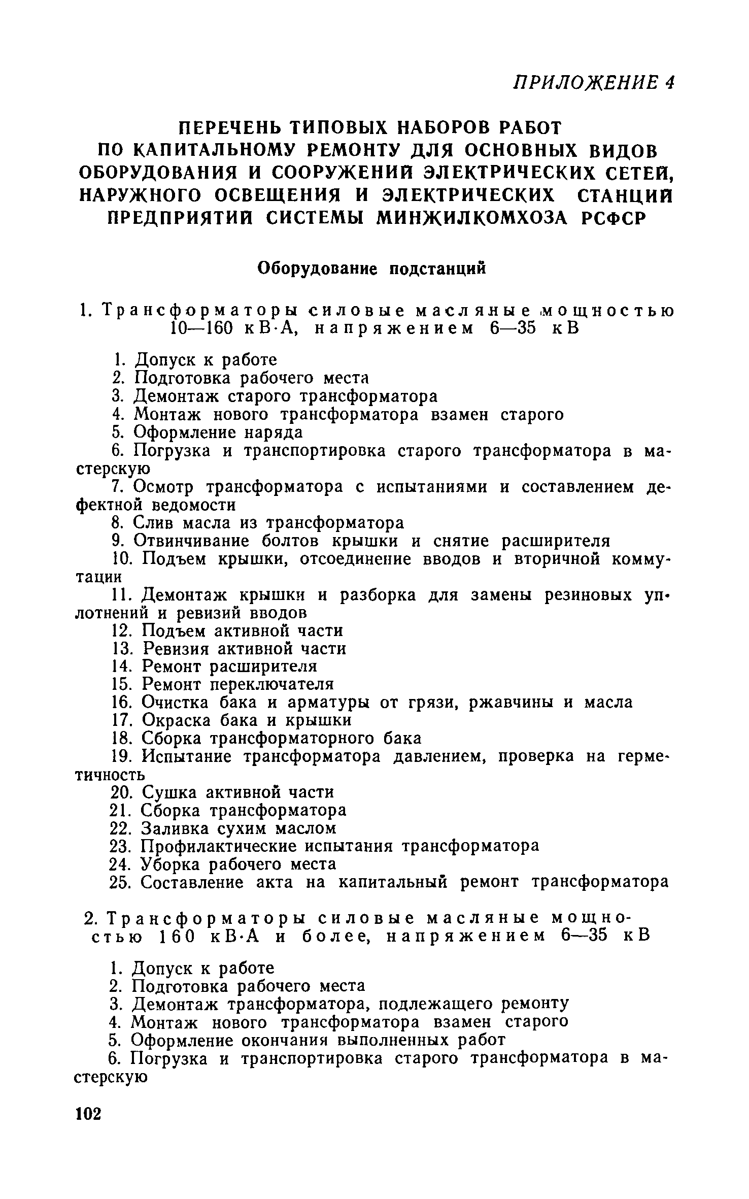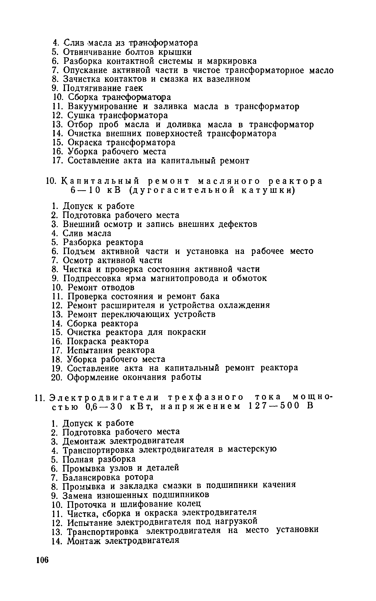 Временное положение о планово-предупредительном ремонте электроэнергетических устройств, оборудования и установок электрических сетей, наружного освещения и электрической части электростанций системы Минжилкомхоза РСФСР| Статус: | отменен в рф | | Название рус.: | Временное положение о планово-предупредительном ремонте электроэнергетических устройств, оборудования и установок электрических сетей, наружного освещения и электрической части электростанций системы Минжилкомхоза РСФСР | | Дата добавления в базу: | 01.10.2014 | | Дата актуализации: | 01.01.2021 | | Дата введения: | 01.01.1979 | | Дата окончания срока действия: | 25.06.2020 | | Область применения: | В документе рассматриваются планирование, организация и финансирование капитальных и текущих ремонтов электроэнергетического оборудования. Даны перечни наименований электроэнергетического оборудования, на которое распространяется Положение. Приведены нормы расхода материалов и запасных частей на ремонт, нормы времени на выполнение этих работ, а также формы документации оформления планово-предупредительных ремонтов. Временное положение предназначено для работников, занимающихся эксплуатацией электрооборудования предприятий системы Минжилкомхоза РСФСР. | | Оглавление: | Введение Глава I. Основные положения Глава II. Планирование и организация работ планово-предупредительных ремонтов Глава III. Финансирование капитальных и текущих ремонтов Глава IV. Подготовка и утверждение сметно-технической документации на проведение капитальных и текущих ремонтов Глава V. Капитальный и текущий ремонт основного оборудования электростанций, электросетей и установок наружного освещения Глава VI. Основные положения эксплуатации оборудования и ответственность за его сохранность Приложение 1. Перечень наименований электроэнергетических устройств, оборудования и установок Приложение 2. Периодичность планово-предупредительных ремонтов электроэнергетических устройств, оборудования и установок Приложение 3. Перечень работ, выполняемых при текущем ремонте электрических сетей, установок Приложение 4. Перечень типовых наборов работ по капитальному ремонту для основных видов оборудования и сооружений Приложение 5. Перечень нетиповых работ для основных видов оборудования и сооружений Приложение 6. Типовые нормы времени на капитальный ремонт электроэнергетических устройств, оборудования и установок Приложение 7. Нормы расхода материалов и запасных частей на капитальный ремонт электрических сетей, электроэнергетических устройств, оборудования и установок частей на капитальный ремонт электрических сетей, электроэнергетических устройств, оборудования и установок Приложение 8. Формы документации Приложение 9. Нормы амортизационных отчислений для устройств электропередачи, электродвигателей и силового оборудования Приложение 10. Типовые нормы времени на текущий ремонт электроэнергетических устройств, оборудования и установок Список литературы | | Разработан: | Оргкоммунэнерго