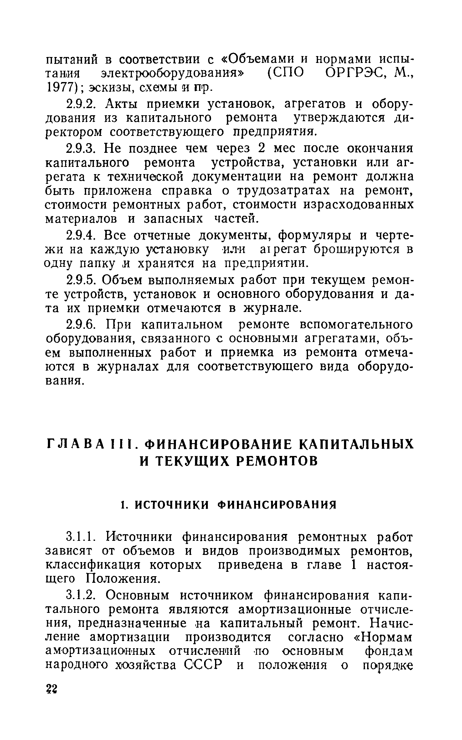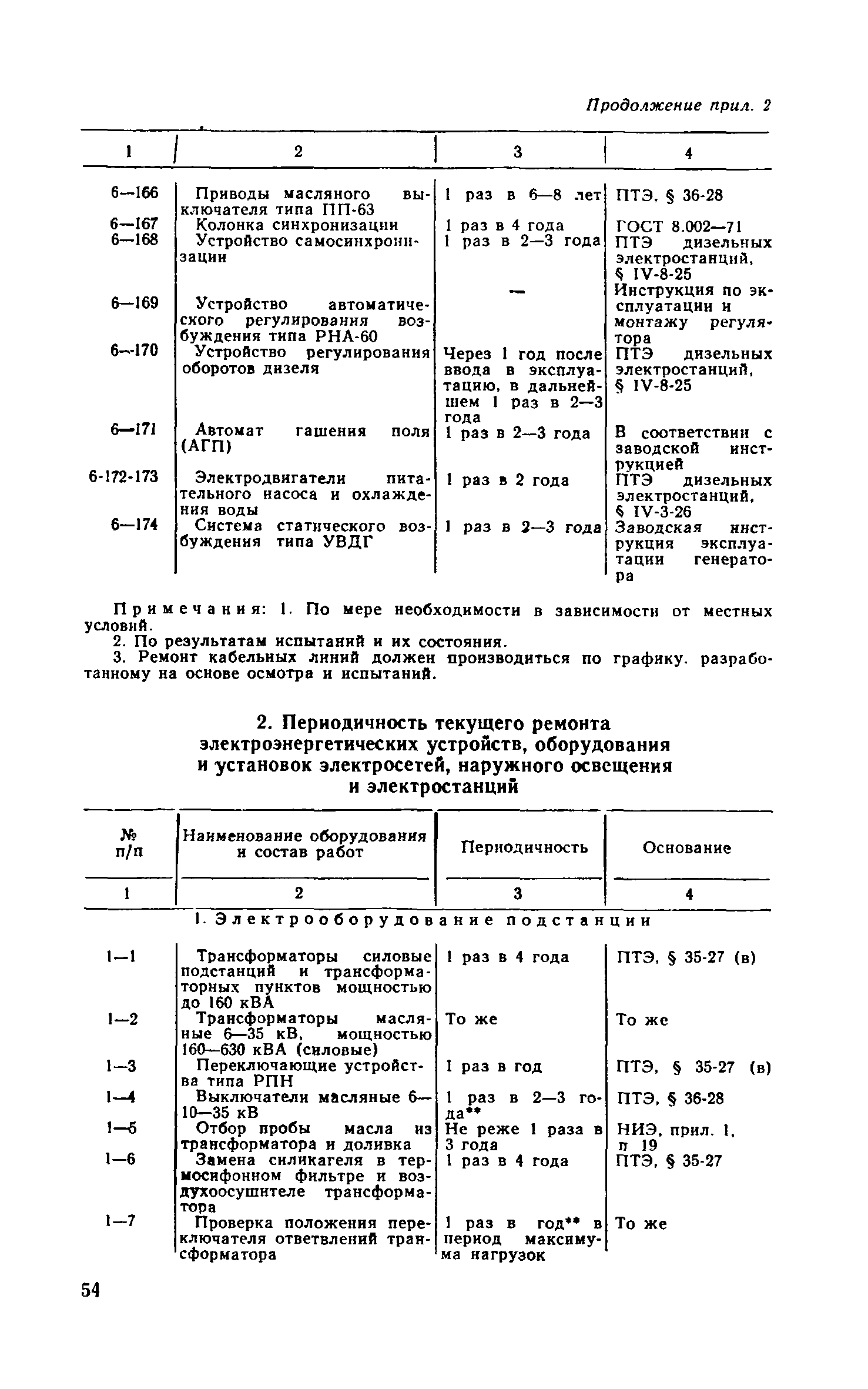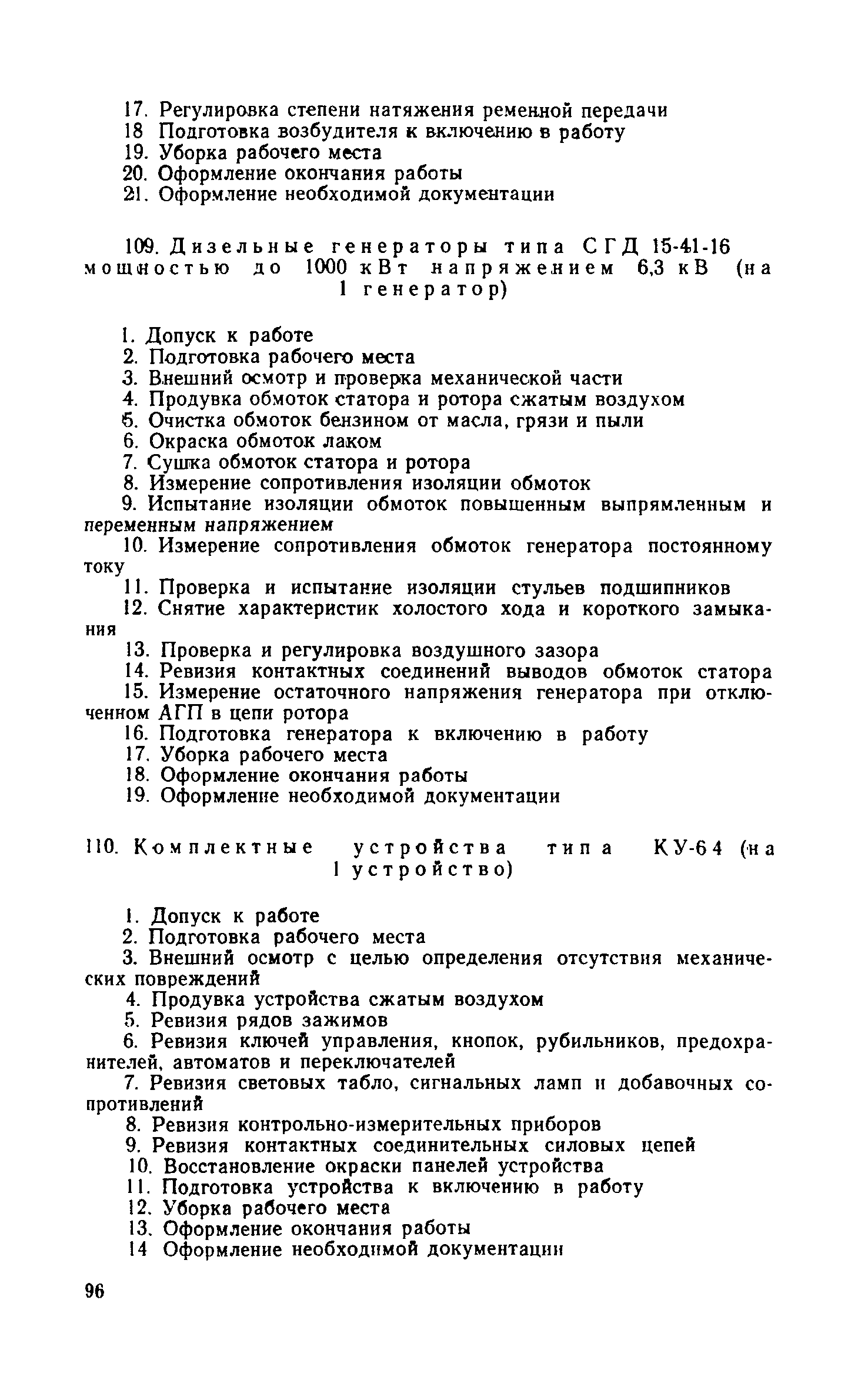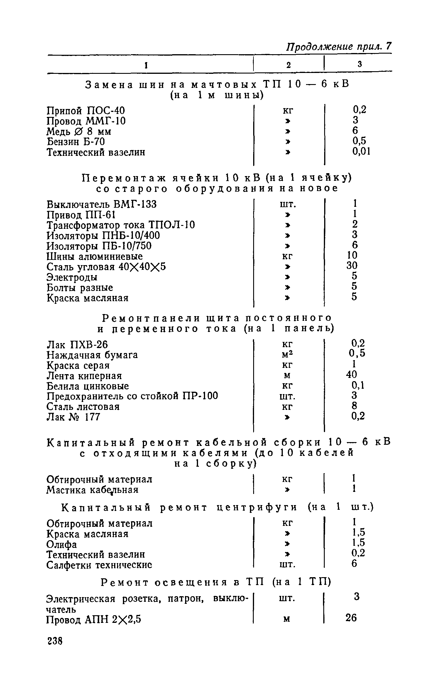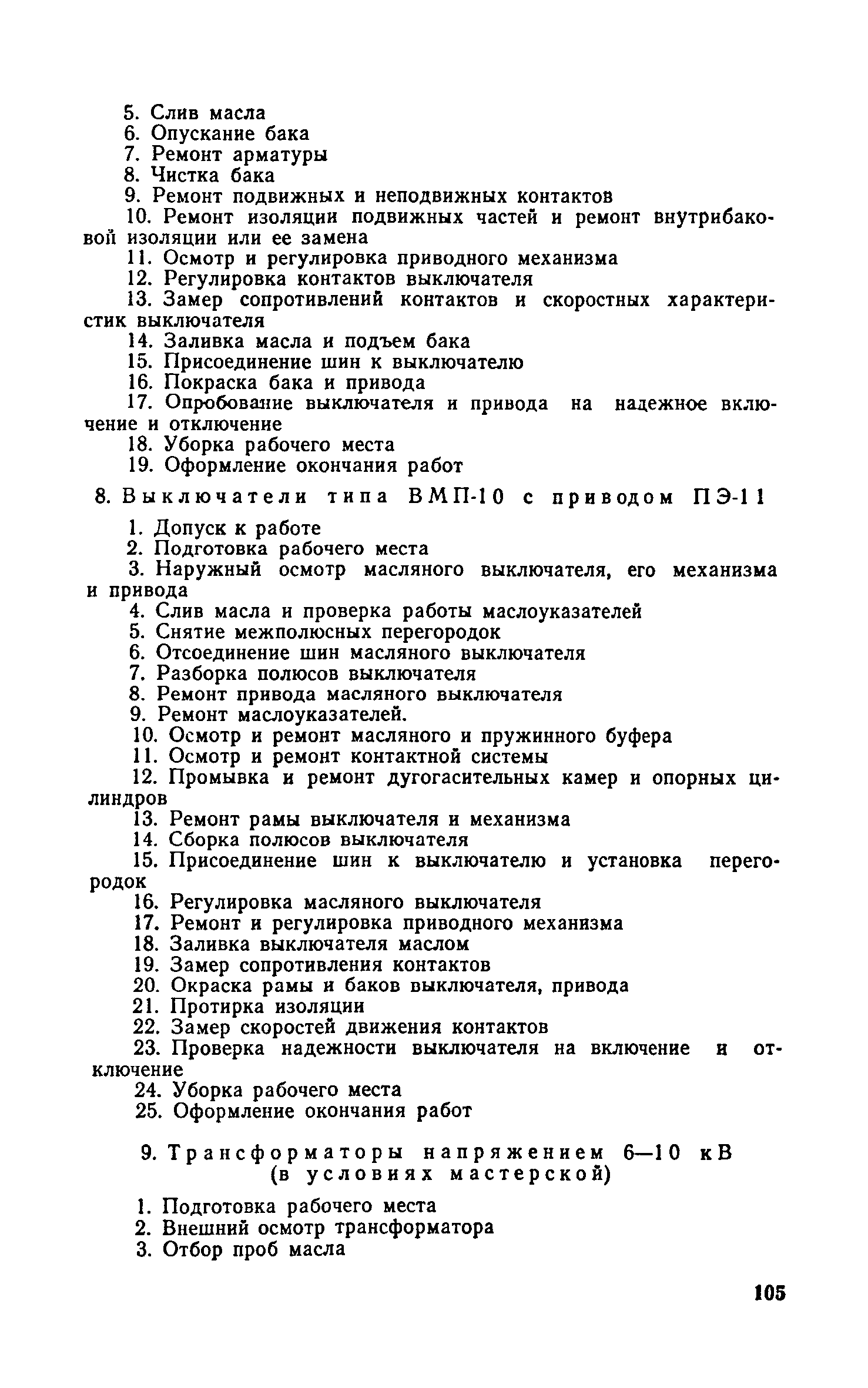 Временное положение о планово-предупредительном ремонте электроэнергетических устройств, оборудования и установок электрических сетей, наружного освещения и электрической части электростанций системы Минжилкомхоза РСФСР| Статус: | отменен в рф | | Название рус.: | Временное положение о планово-предупредительном ремонте электроэнергетических устройств, оборудования и установок электрических сетей, наружного освещения и электрической части электростанций системы Минжилкомхоза РСФСР | | Дата добавления в базу: | 01.10.2014 | | Дата актуализации: | 01.01.2021 | | Дата введения: | 01.01.1979 | | Дата окончания срока действия: | 25.06.2020 | | Область применения: | В документе рассматриваются планирование, организация и финансирование капитальных и текущих ремонтов электроэнергетического оборудования. Даны перечни наименований электроэнергетического оборудования, на которое распространяется Положение. Приведены нормы расхода материалов и запасных частей на ремонт, нормы времени на выполнение этих работ, а также формы документации оформления планово-предупредительных ремонтов. Временное положение предназначено для работников, занимающихся эксплуатацией электрооборудования предприятий системы Минжилкомхоза РСФСР. | | Оглавление: | Введение Глава I. Основные положения Глава II. Планирование и организация работ планово-предупредительных ремонтов Глава III. Финансирование капитальных и текущих ремонтов Глава IV. Подготовка и утверждение сметно-технической документации на проведение капитальных и текущих ремонтов Глава V. Капитальный и текущий ремонт основного оборудования электростанций, электросетей и установок наружного освещения Глава VI. Основные положения эксплуатации оборудования и ответственность за его сохранность Приложение 1. Перечень наименований электроэнергетических устройств, оборудования и установок Приложение 2. Периодичность планово-предупредительных ремонтов электроэнергетических устройств, оборудования и установок Приложение 3. Перечень работ, выполняемых при текущем ремонте электрических сетей, установок Приложение 4. Перечень типовых наборов работ по капитальному ремонту для основных видов оборудования и сооружений Приложение 5. Перечень нетиповых работ для основных видов оборудования и сооружений Приложение 6. Типовые нормы времени на капитальный ремонт электроэнергетических устройств, оборудования и установок Приложение 7. Нормы расхода материалов и запасных частей на капитальный ремонт электрических сетей, электроэнергетических устройств, оборудования и установок частей на капитальный ремонт электрических сетей, электроэнергетических устройств, оборудования и установок Приложение 8. Формы документации Приложение 9. Нормы амортизационных отчислений для устройств электропередачи, электродвигателей и силового оборудования Приложение 10. Типовые нормы времени на текущий ремонт электроэнергетических устройств, оборудования и установок Список литературы | | Разработан: | Оргкоммунэнерго