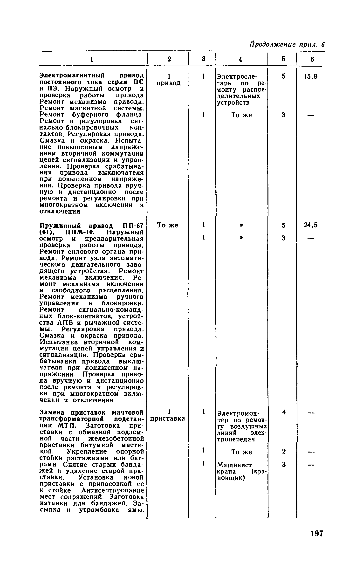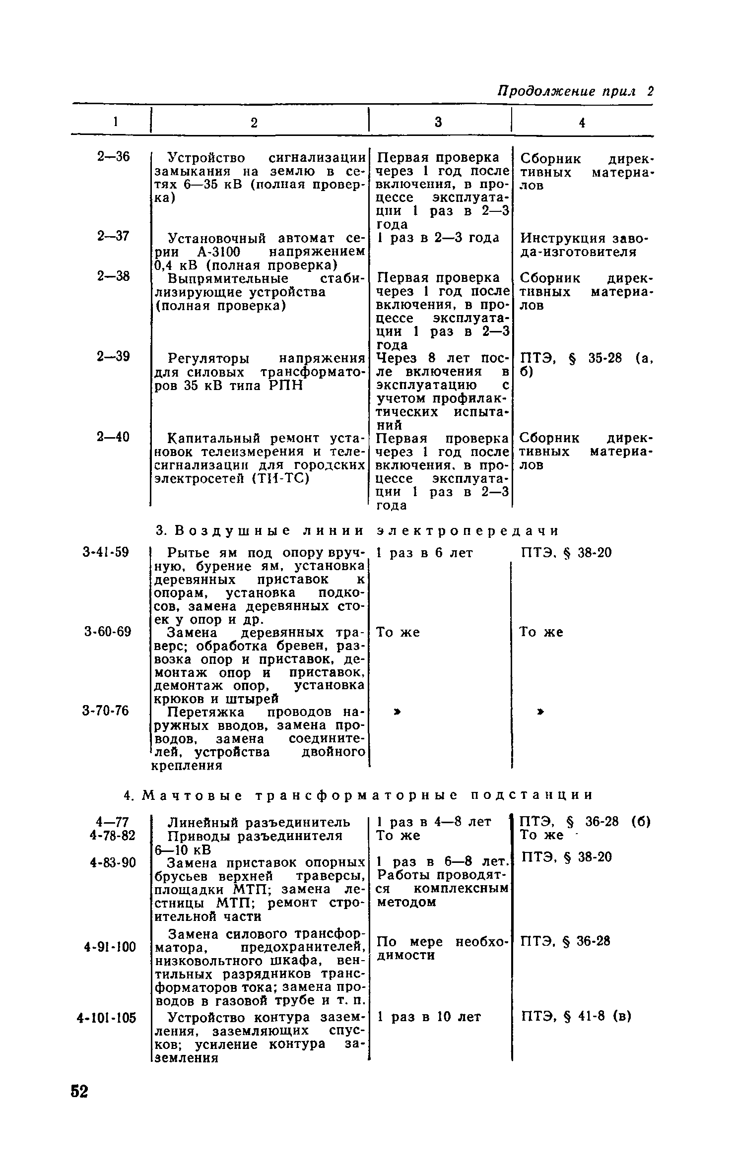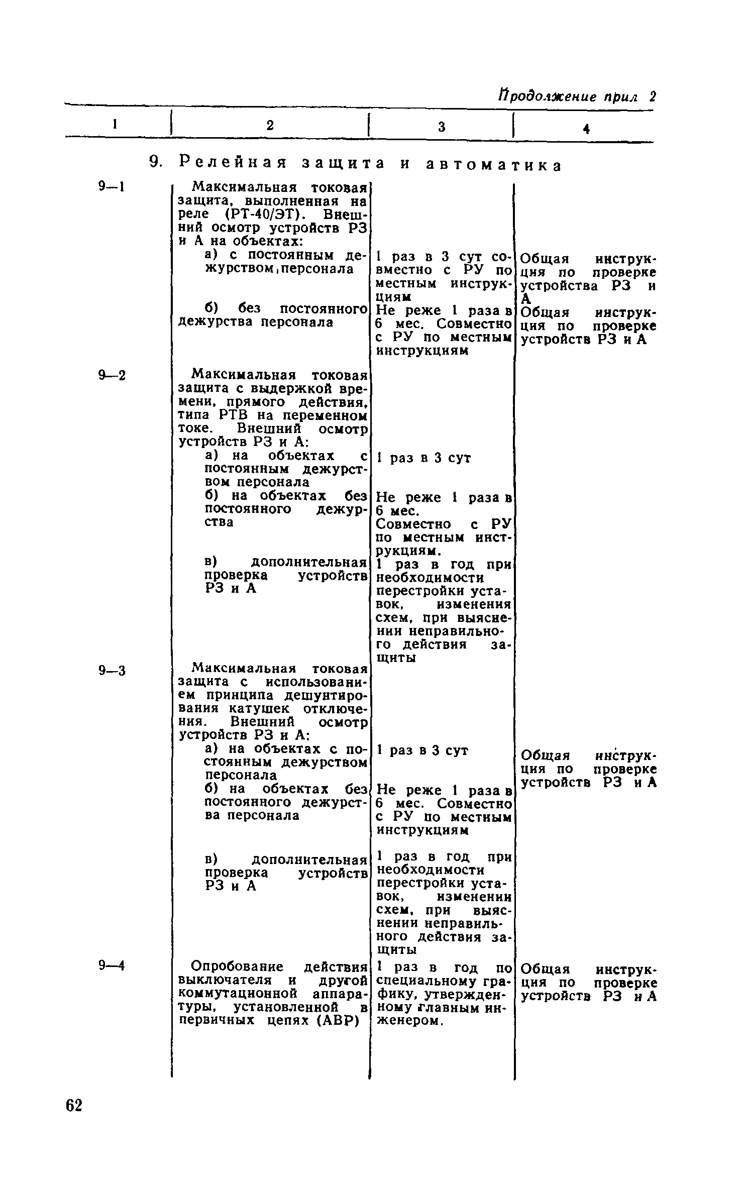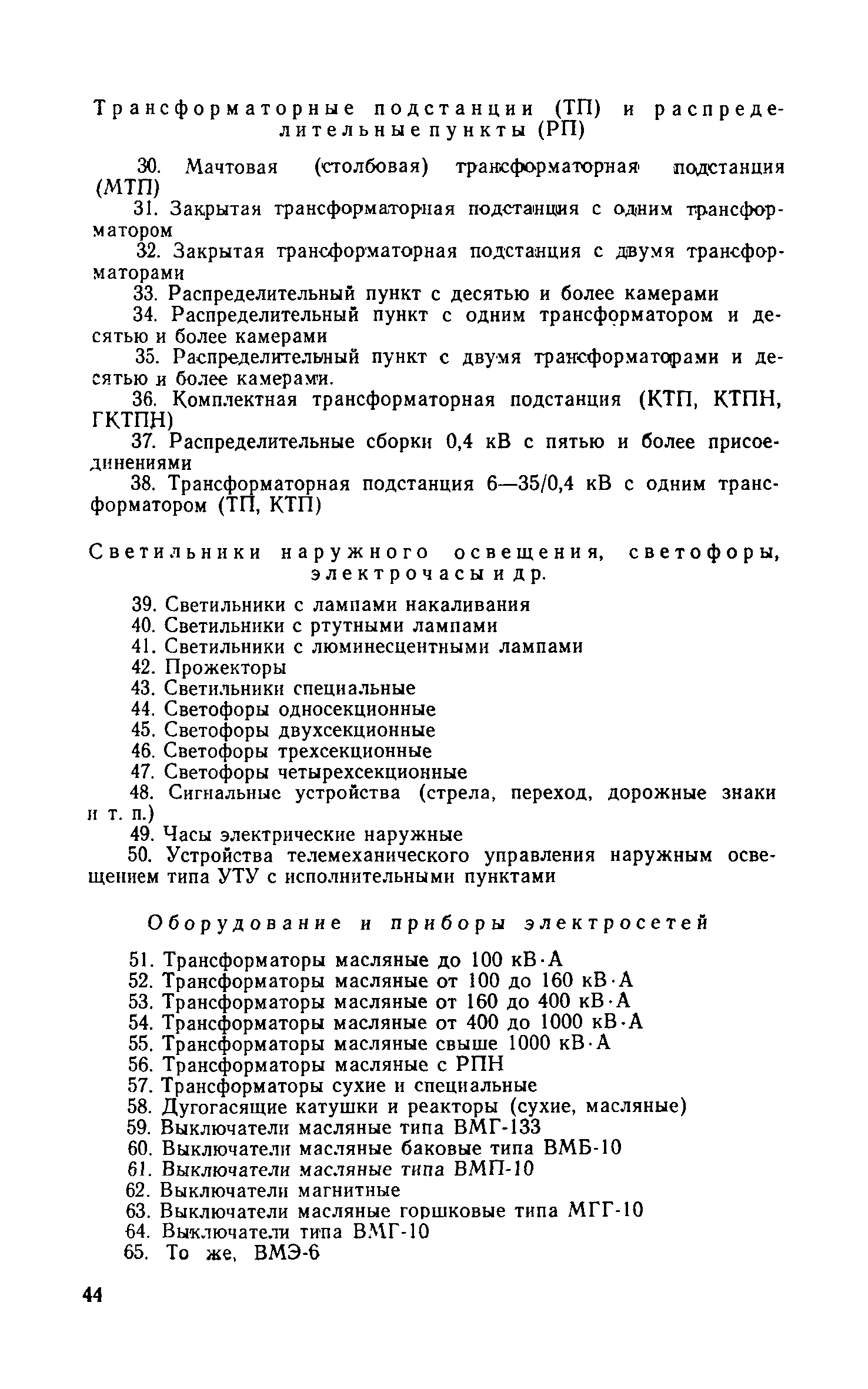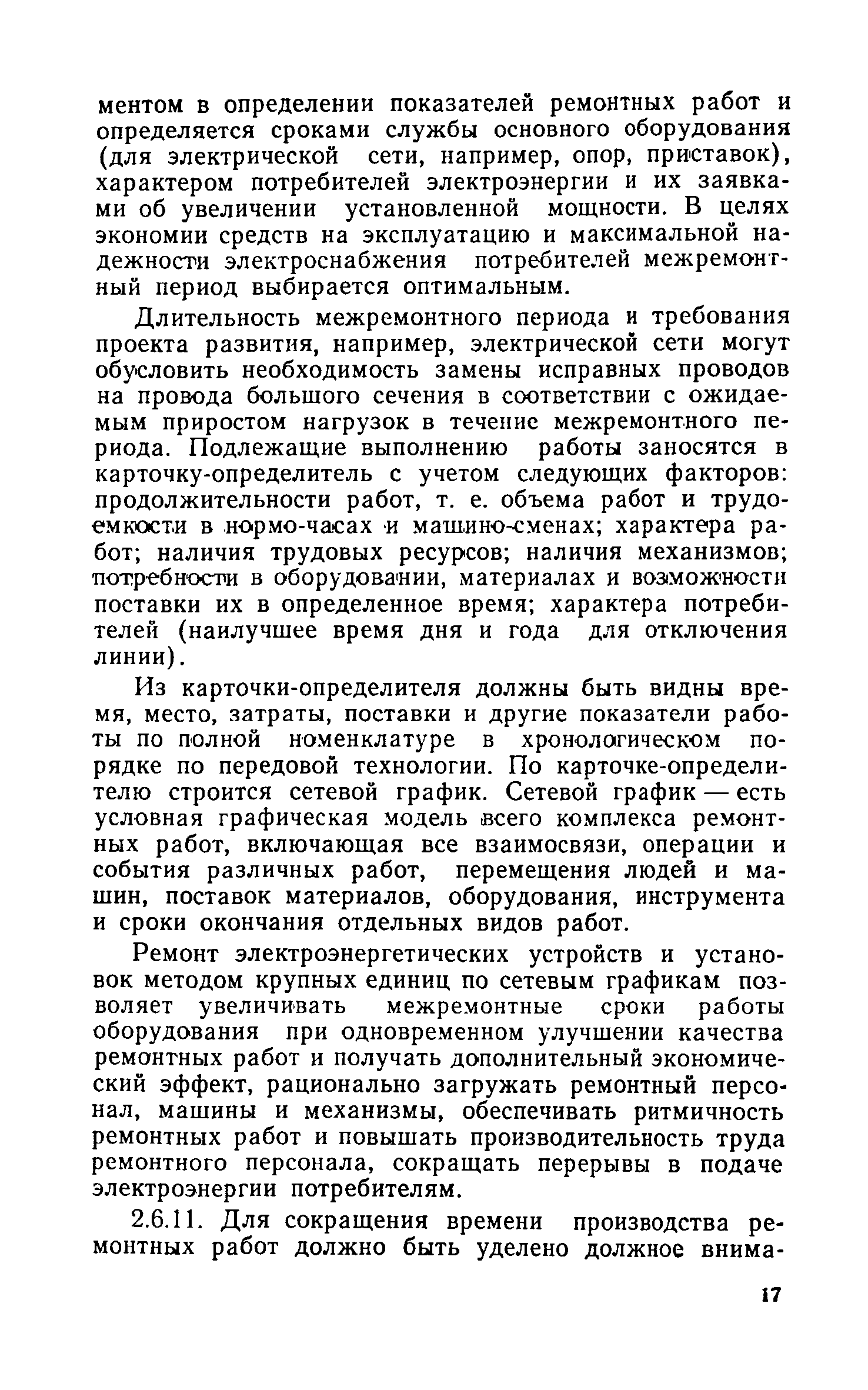 Временное положение о планово-предупредительном ремонте электроэнергетических устройств, оборудования и установок электрических сетей, наружного освещения и электрической части электростанций системы Минжилкомхоза РСФСР| Статус: | отменен в рф | | Название рус.: | Временное положение о планово-предупредительном ремонте электроэнергетических устройств, оборудования и установок электрических сетей, наружного освещения и электрической части электростанций системы Минжилкомхоза РСФСР | | Дата добавления в базу: | 01.10.2014 | | Дата актуализации: | 01.01.2021 | | Дата введения: | 01.01.1979 | | Дата окончания срока действия: | 25.06.2020 | | Область применения: | В документе рассматриваются планирование, организация и финансирование капитальных и текущих ремонтов электроэнергетического оборудования. Даны перечни наименований электроэнергетического оборудования, на которое распространяется Положение. Приведены нормы расхода материалов и запасных частей на ремонт, нормы времени на выполнение этих работ, а также формы документации оформления планово-предупредительных ремонтов. Временное положение предназначено для работников, занимающихся эксплуатацией электрооборудования предприятий системы Минжилкомхоза РСФСР. | | Оглавление: | Введение Глава I. Основные положения Глава II. Планирование и организация работ планово-предупредительных ремонтов Глава III. Финансирование капитальных и текущих ремонтов Глава IV. Подготовка и утверждение сметно-технической документации на проведение капитальных и текущих ремонтов Глава V. Капитальный и текущий ремонт основного оборудования электростанций, электросетей и установок наружного освещения Глава VI. Основные положения эксплуатации оборудования и ответственность за его сохранность Приложение 1. Перечень наименований электроэнергетических устройств, оборудования и установок Приложение 2. Периодичность планово-предупредительных ремонтов электроэнергетических устройств, оборудования и установок Приложение 3. Перечень работ, выполняемых при текущем ремонте электрических сетей, установок Приложение 4. Перечень типовых наборов работ по капитальному ремонту для основных видов оборудования и сооружений Приложение 5. Перечень нетиповых работ для основных видов оборудования и сооружений Приложение 6. Типовые нормы времени на капитальный ремонт электроэнергетических устройств, оборудования и установок Приложение 7. Нормы расхода материалов и запасных частей на капитальный ремонт электрических сетей, электроэнергетических устройств, оборудования и установок частей на капитальный ремонт электрических сетей, электроэнергетических устройств, оборудования и установок Приложение 8. Формы документации Приложение 9. Нормы амортизационных отчислений для устройств электропередачи, электродвигателей и силового оборудования Приложение 10. Типовые нормы времени на текущий ремонт электроэнергетических устройств, оборудования и установок Список литературы | | Разработан: | Оргкоммунэнерго
