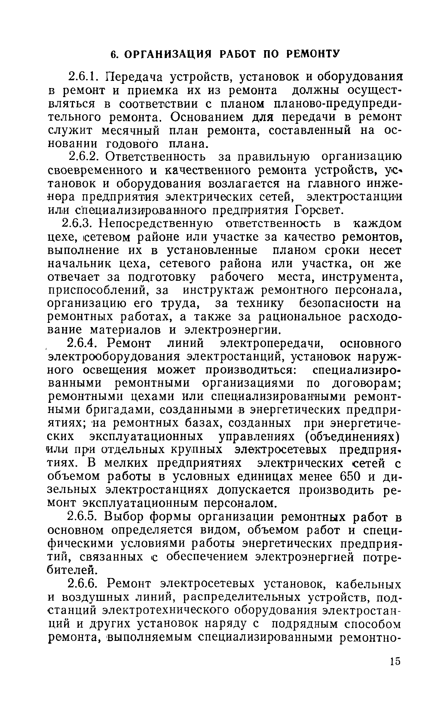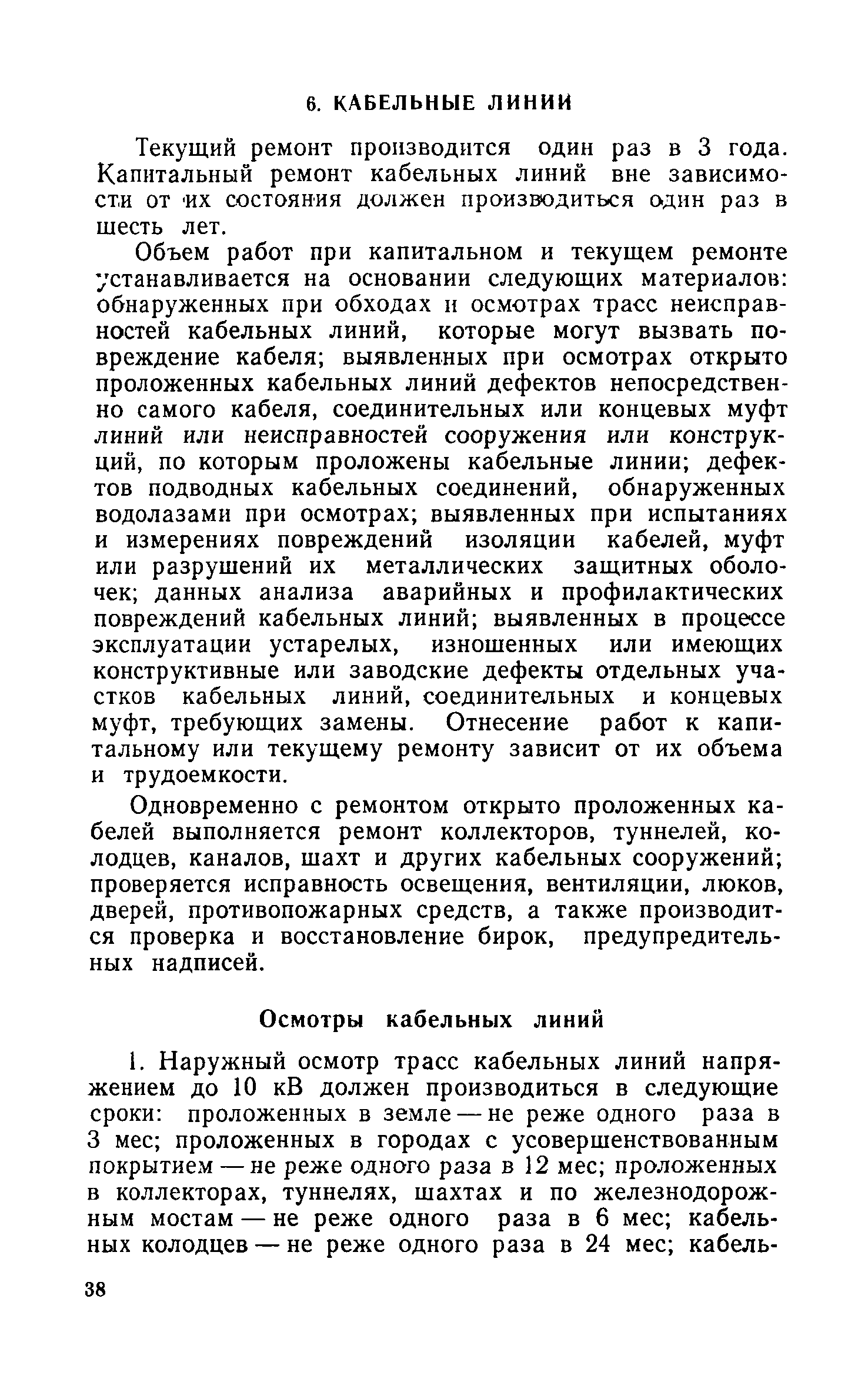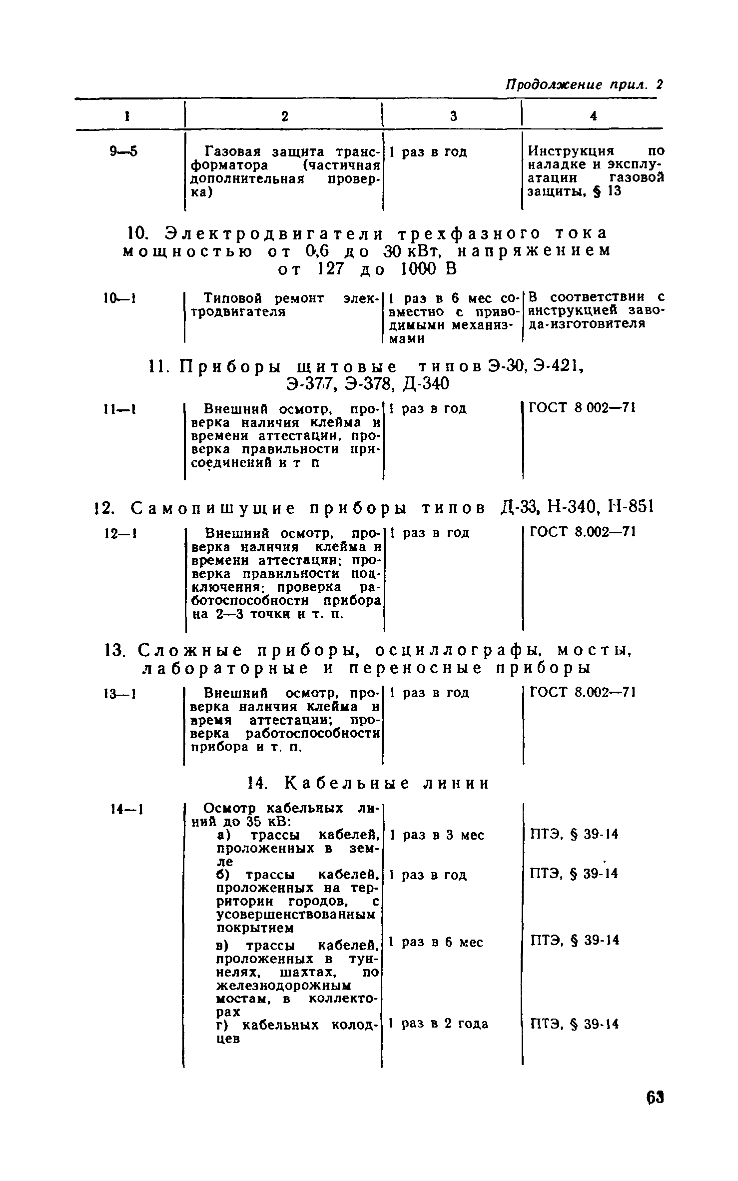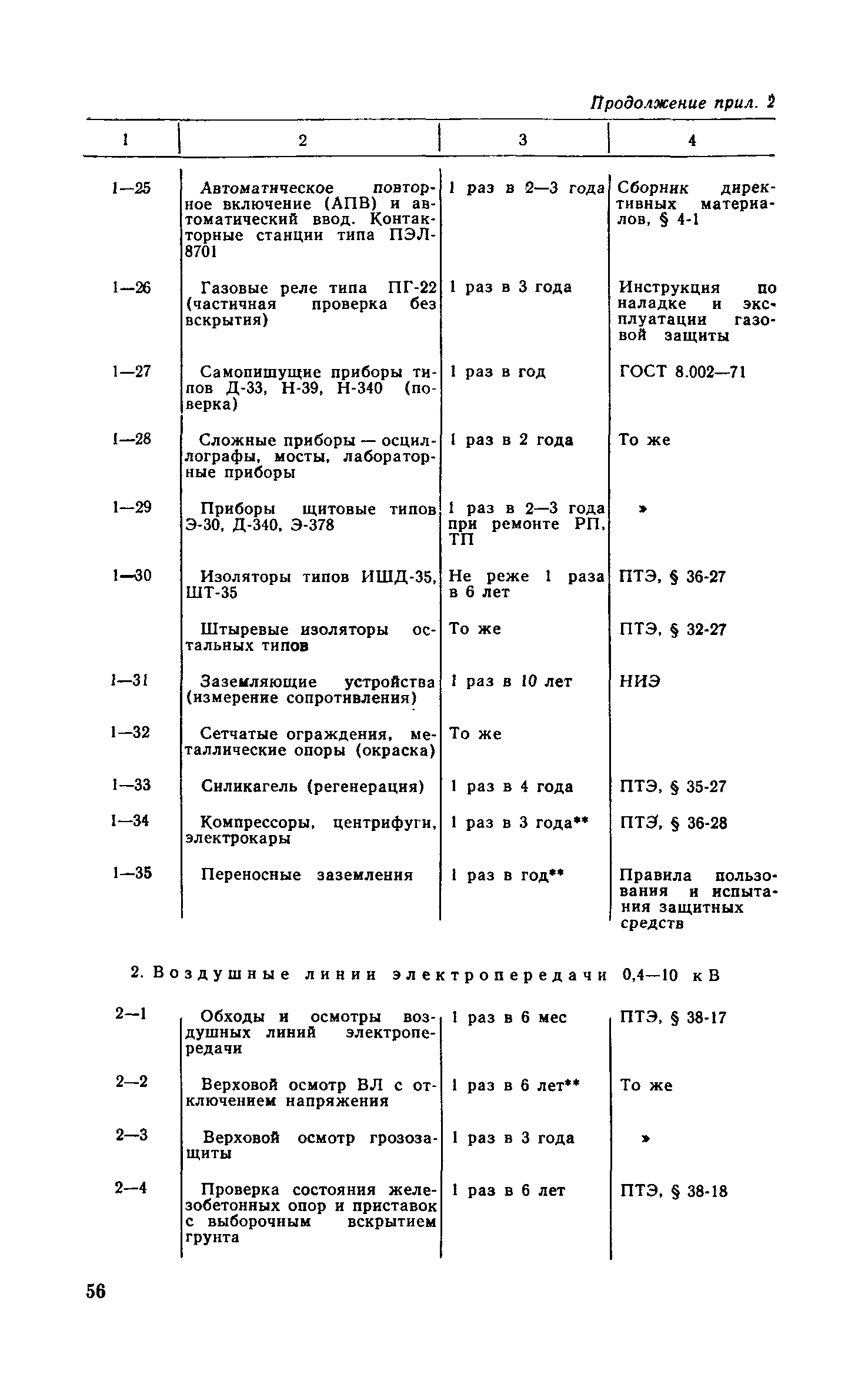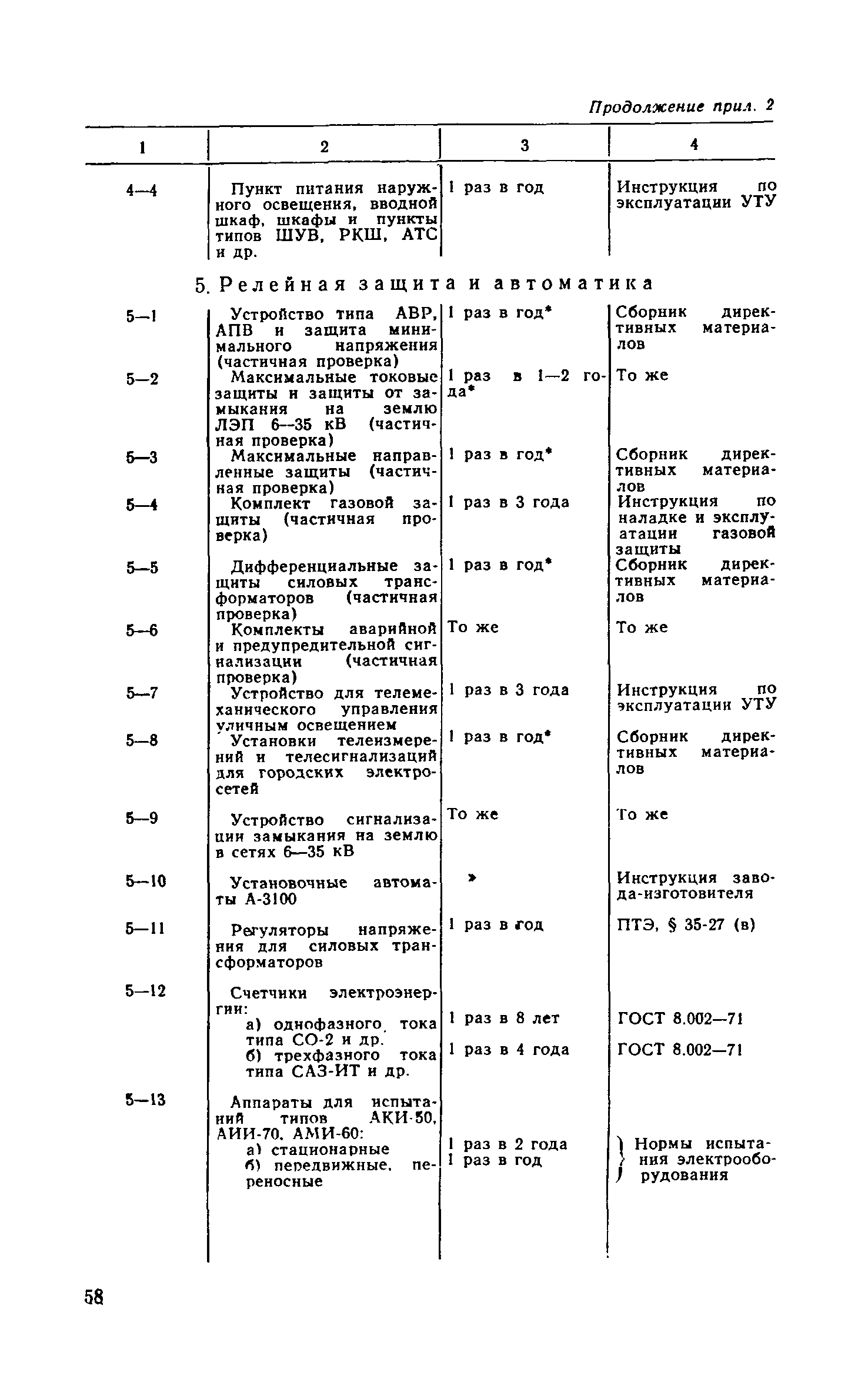 Временное положение о планово-предупредительном ремонте электроэнергетических устройств, оборудования и установок электрических сетей, наружного освещения и электрической части электростанций системы Минжилкомхоза РСФСР| Статус: | отменен в рф | | Название рус.: | Временное положение о планово-предупредительном ремонте электроэнергетических устройств, оборудования и установок электрических сетей, наружного освещения и электрической части электростанций системы Минжилкомхоза РСФСР | | Дата добавления в базу: | 01.10.2014 | | Дата актуализации: | 01.01.2021 | | Дата введения: | 01.01.1979 | | Дата окончания срока действия: | 25.06.2020 | | Область применения: | В документе рассматриваются планирование, организация и финансирование капитальных и текущих ремонтов электроэнергетического оборудования. Даны перечни наименований электроэнергетического оборудования, на которое распространяется Положение. Приведены нормы расхода материалов и запасных частей на ремонт, нормы времени на выполнение этих работ, а также формы документации оформления планово-предупредительных ремонтов. Временное положение предназначено для работников, занимающихся эксплуатацией электрооборудования предприятий системы Минжилкомхоза РСФСР. | | Оглавление: | Введение Глава I. Основные положения Глава II. Планирование и организация работ планово-предупредительных ремонтов Глава III. Финансирование капитальных и текущих ремонтов Глава IV. Подготовка и утверждение сметно-технической документации на проведение капитальных и текущих ремонтов Глава V. Капитальный и текущий ремонт основного оборудования электростанций, электросетей и установок наружного освещения Глава VI. Основные положения эксплуатации оборудования и ответственность за его сохранность Приложение 1. Перечень наименований электроэнергетических устройств, оборудования и установок Приложение 2. Периодичность планово-предупредительных ремонтов электроэнергетических устройств, оборудования и установок Приложение 3. Перечень работ, выполняемых при текущем ремонте электрических сетей, установок Приложение 4. Перечень типовых наборов работ по капитальному ремонту для основных видов оборудования и сооружений Приложение 5. Перечень нетиповых работ для основных видов оборудования и сооружений Приложение 6. Типовые нормы времени на капитальный ремонт электроэнергетических устройств, оборудования и установок Приложение 7. Нормы расхода материалов и запасных частей на капитальный ремонт электрических сетей, электроэнергетических устройств, оборудования и установок частей на капитальный ремонт электрических сетей, электроэнергетических устройств, оборудования и установок Приложение 8. Формы документации Приложение 9. Нормы амортизационных отчислений для устройств электропередачи, электродвигателей и силового оборудования Приложение 10. Типовые нормы времени на текущий ремонт электроэнергетических устройств, оборудования и установок Список литературы | | Разработан: | Оргкоммунэнерго