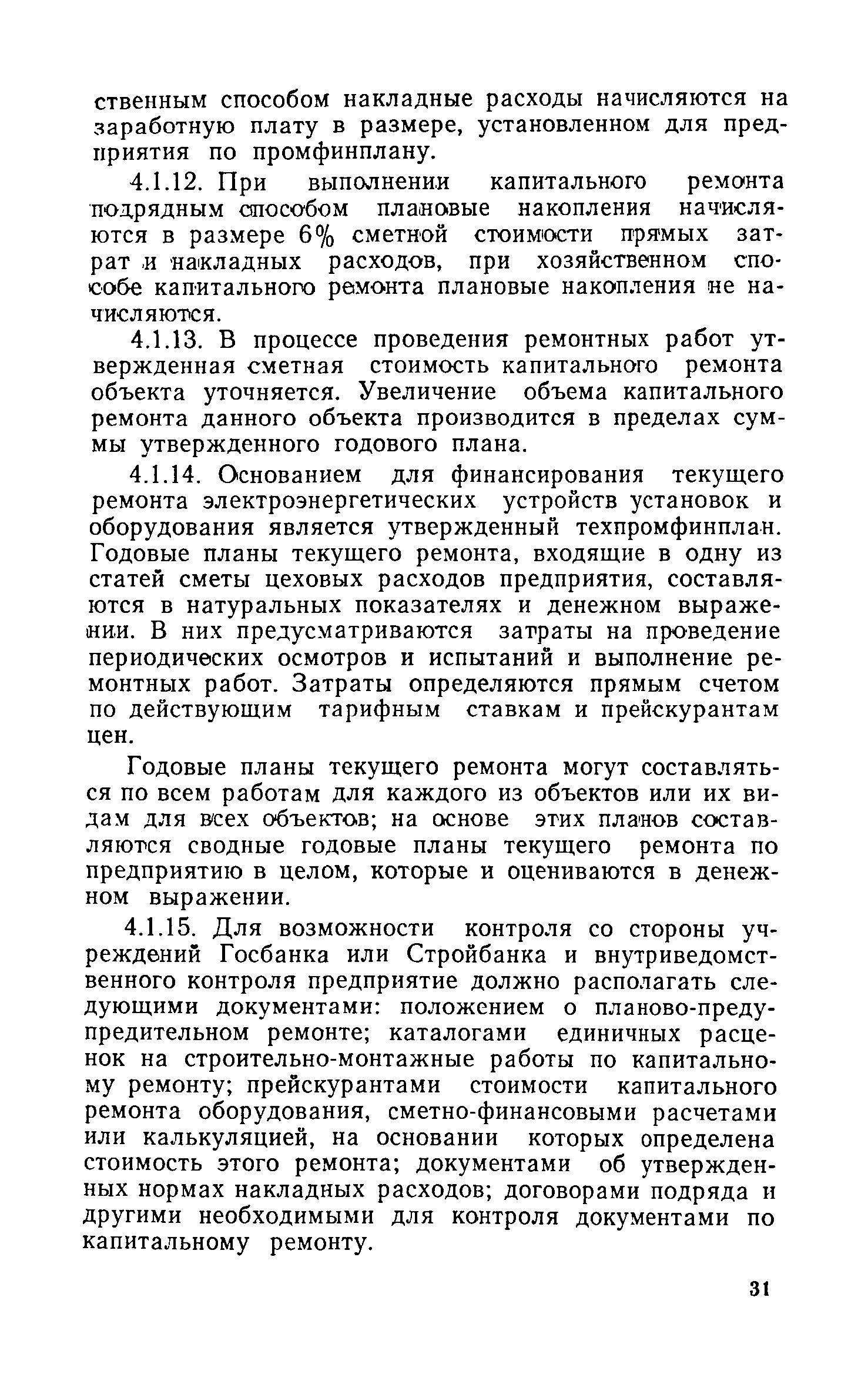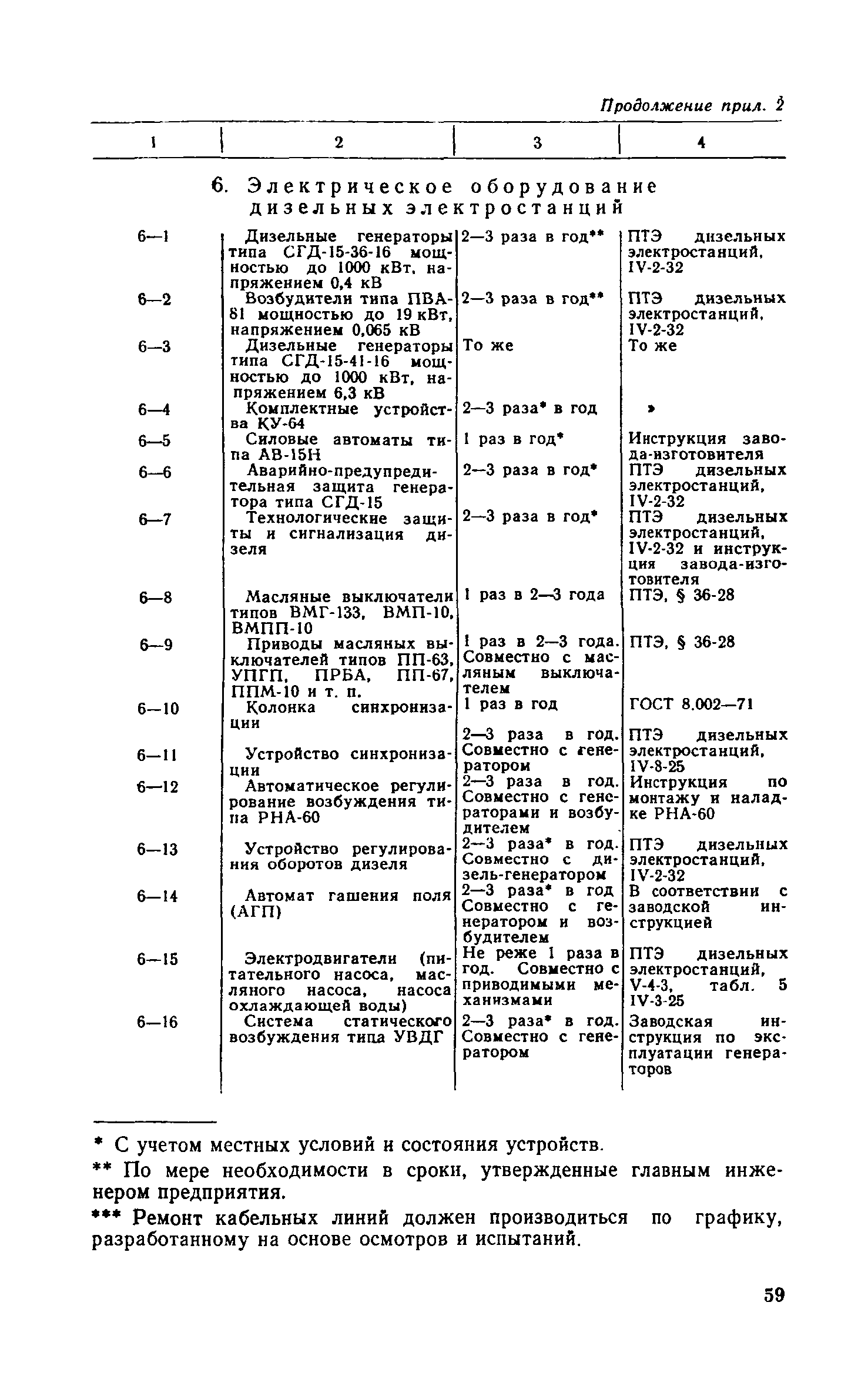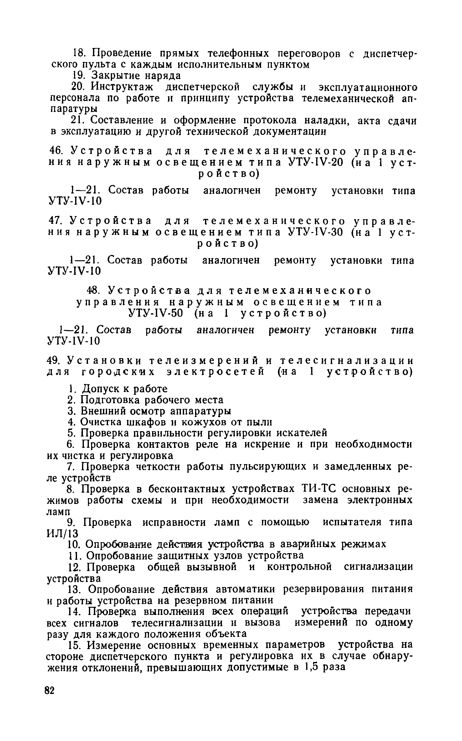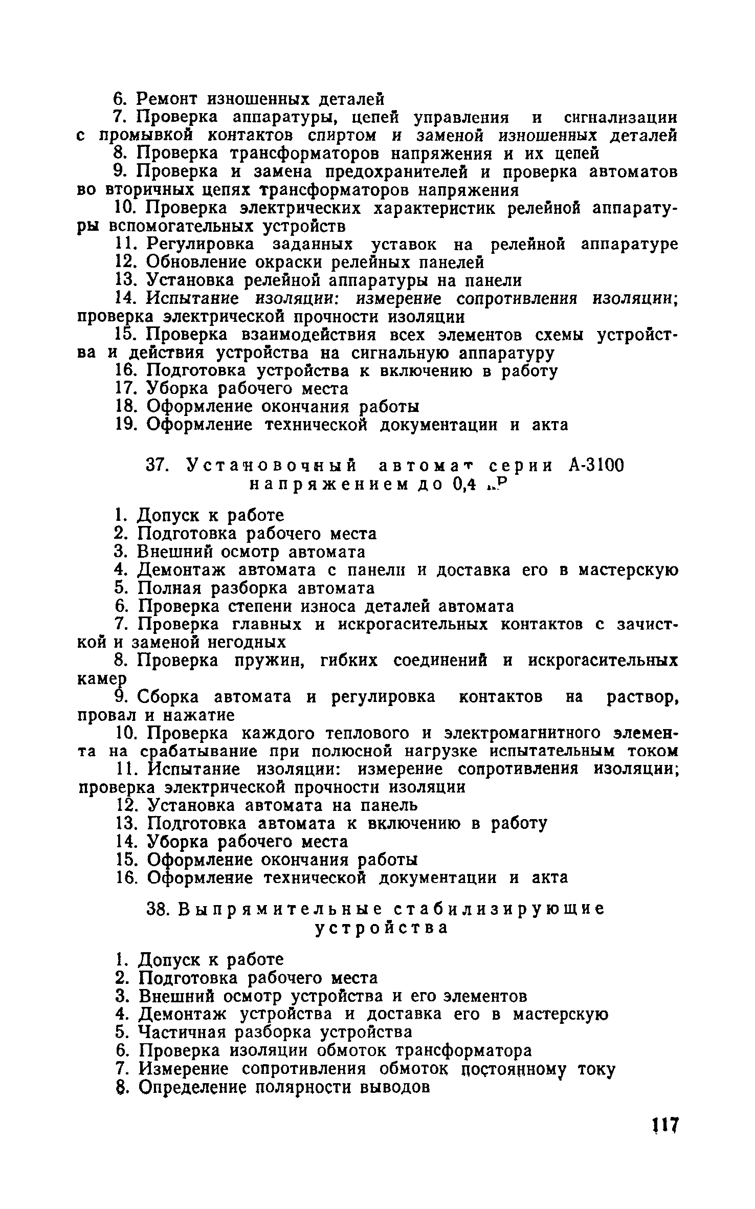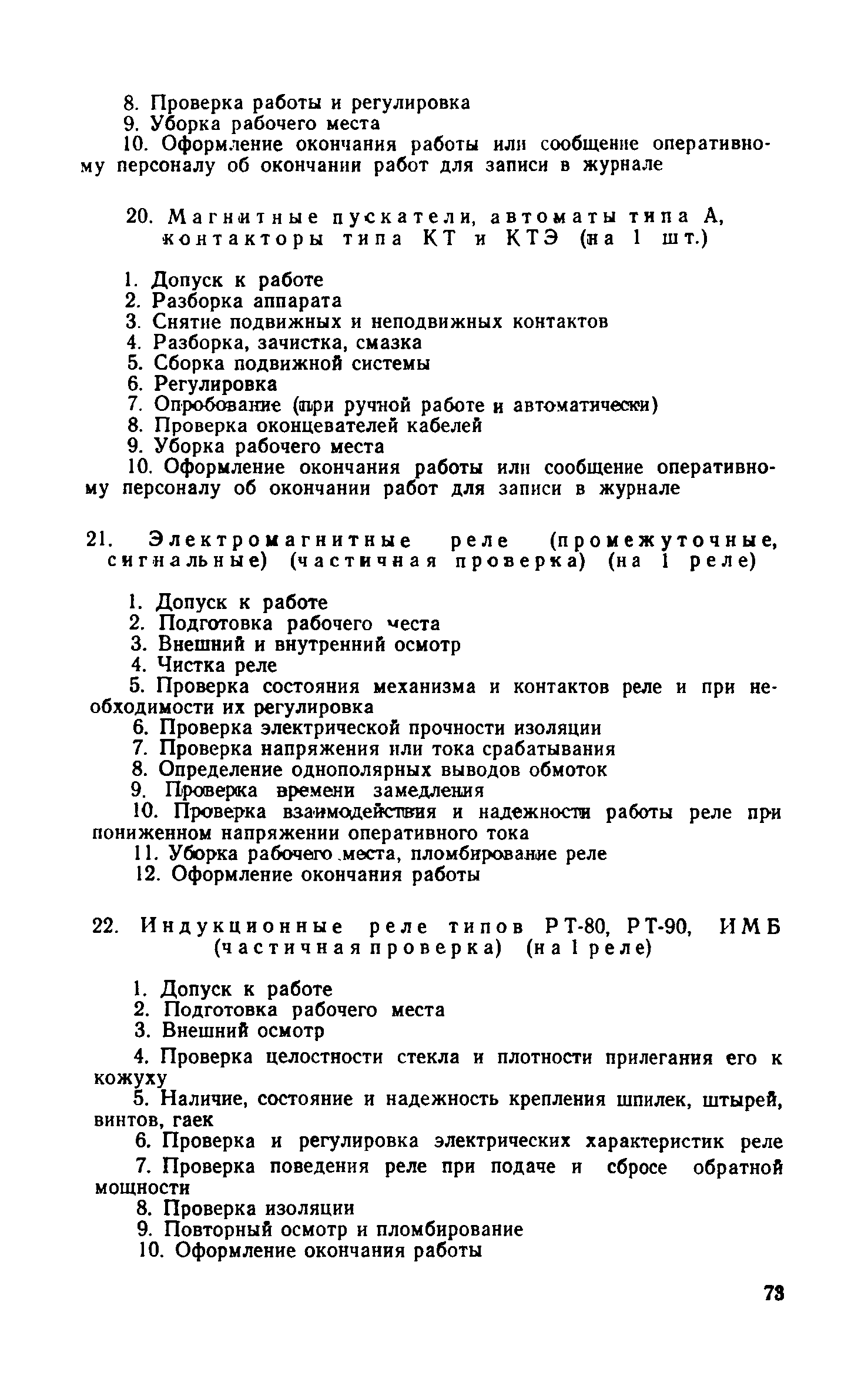 Временное положение о планово-предупредительном ремонте электроэнергетических устройств, оборудования и установок электрических сетей, наружного освещения и электрической части электростанций системы Минжилкомхоза РСФСР| Статус: | отменен в рф | | Название рус.: | Временное положение о планово-предупредительном ремонте электроэнергетических устройств, оборудования и установок электрических сетей, наружного освещения и электрической части электростанций системы Минжилкомхоза РСФСР | | Дата добавления в базу: | 01.10.2014 | | Дата актуализации: | 01.01.2021 | | Дата введения: | 01.01.1979 | | Дата окончания срока действия: | 25.06.2020 | | Область применения: | В документе рассматриваются планирование, организация и финансирование капитальных и текущих ремонтов электроэнергетического оборудования. Даны перечни наименований электроэнергетического оборудования, на которое распространяется Положение. Приведены нормы расхода материалов и запасных частей на ремонт, нормы времени на выполнение этих работ, а также формы документации оформления планово-предупредительных ремонтов. Временное положение предназначено для работников, занимающихся эксплуатацией электрооборудования предприятий системы Минжилкомхоза РСФСР. | | Оглавление: | Введение Глава I. Основные положения Глава II. Планирование и организация работ планово-предупредительных ремонтов Глава III. Финансирование капитальных и текущих ремонтов Глава IV. Подготовка и утверждение сметно-технической документации на проведение капитальных и текущих ремонтов Глава V. Капитальный и текущий ремонт основного оборудования электростанций, электросетей и установок наружного освещения Глава VI. Основные положения эксплуатации оборудования и ответственность за его сохранность Приложение 1. Перечень наименований электроэнергетических устройств, оборудования и установок Приложение 2. Периодичность планово-предупредительных ремонтов электроэнергетических устройств, оборудования и установок Приложение 3. Перечень работ, выполняемых при текущем ремонте электрических сетей, установок Приложение 4. Перечень типовых наборов работ по капитальному ремонту для основных видов оборудования и сооружений Приложение 5. Перечень нетиповых работ для основных видов оборудования и сооружений Приложение 6. Типовые нормы времени на капитальный ремонт электроэнергетических устройств, оборудования и установок Приложение 7. Нормы расхода материалов и запасных частей на капитальный ремонт электрических сетей, электроэнергетических устройств, оборудования и установок частей на капитальный ремонт электрических сетей, электроэнергетических устройств, оборудования и установок Приложение 8. Формы документации Приложение 9. Нормы амортизационных отчислений для устройств электропередачи, электродвигателей и силового оборудования Приложение 10. Типовые нормы времени на текущий ремонт электроэнергетических устройств, оборудования и установок Список литературы | | Разработан: | Оргкоммунэнерго