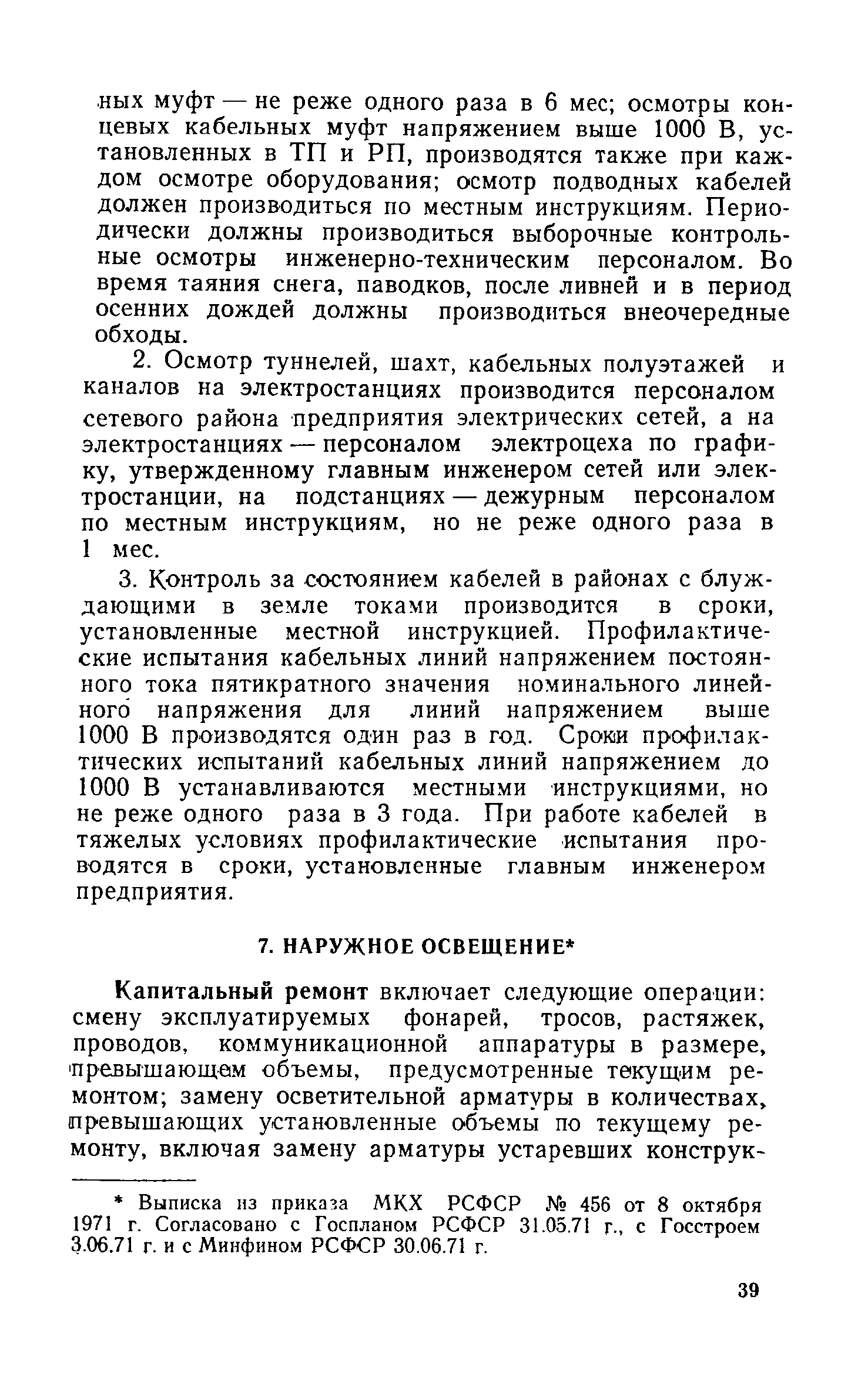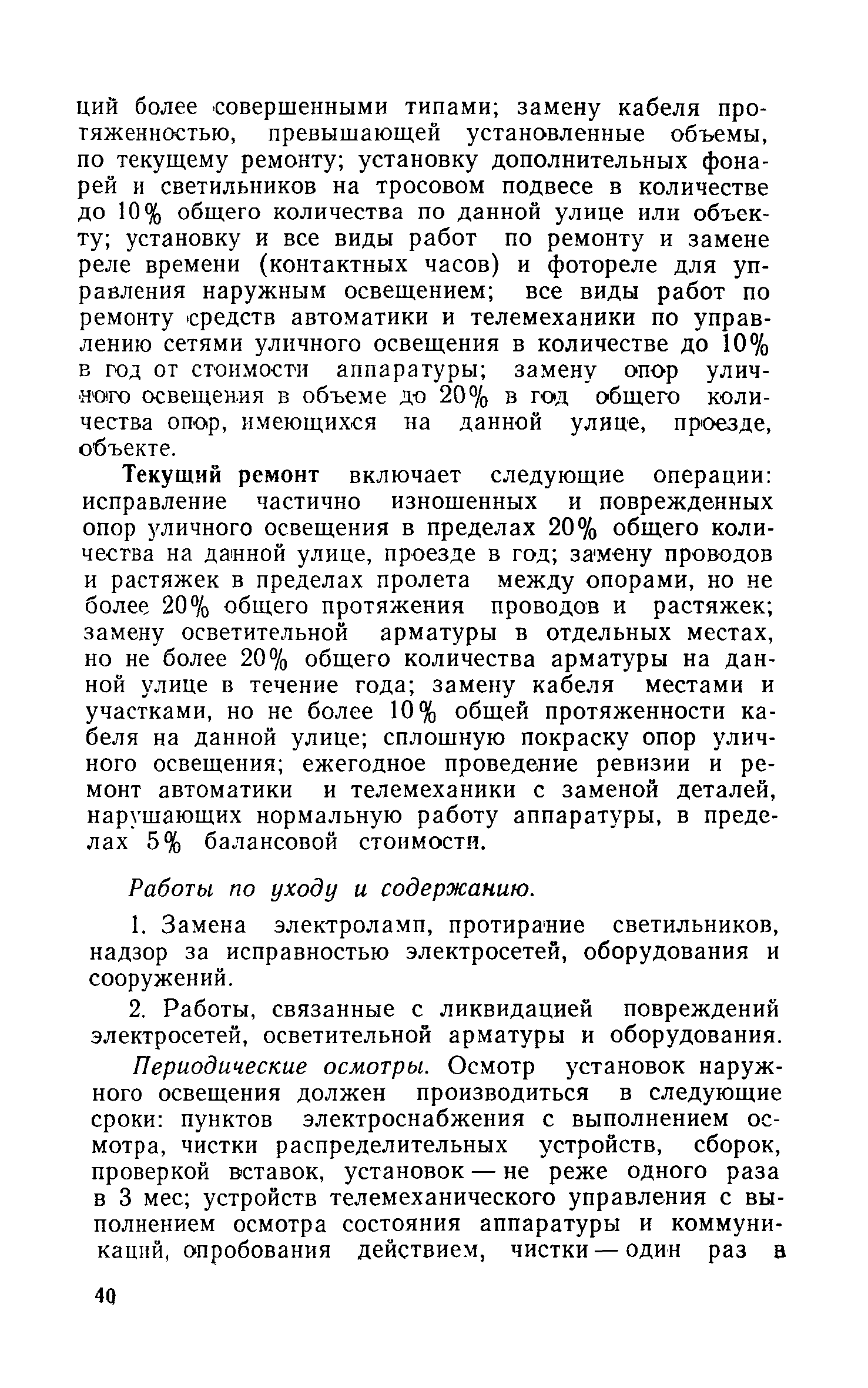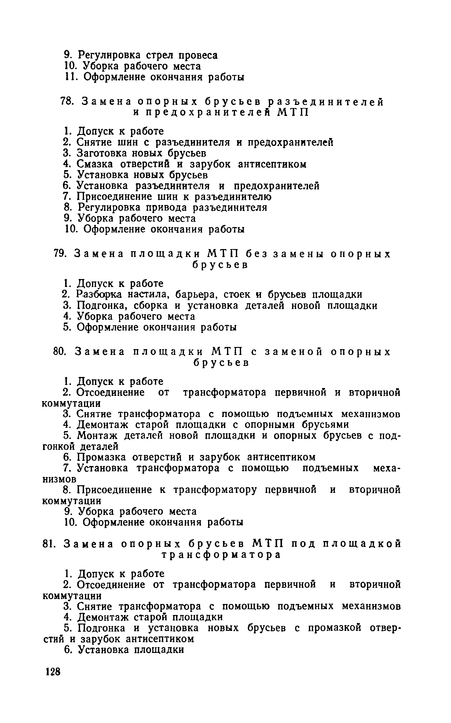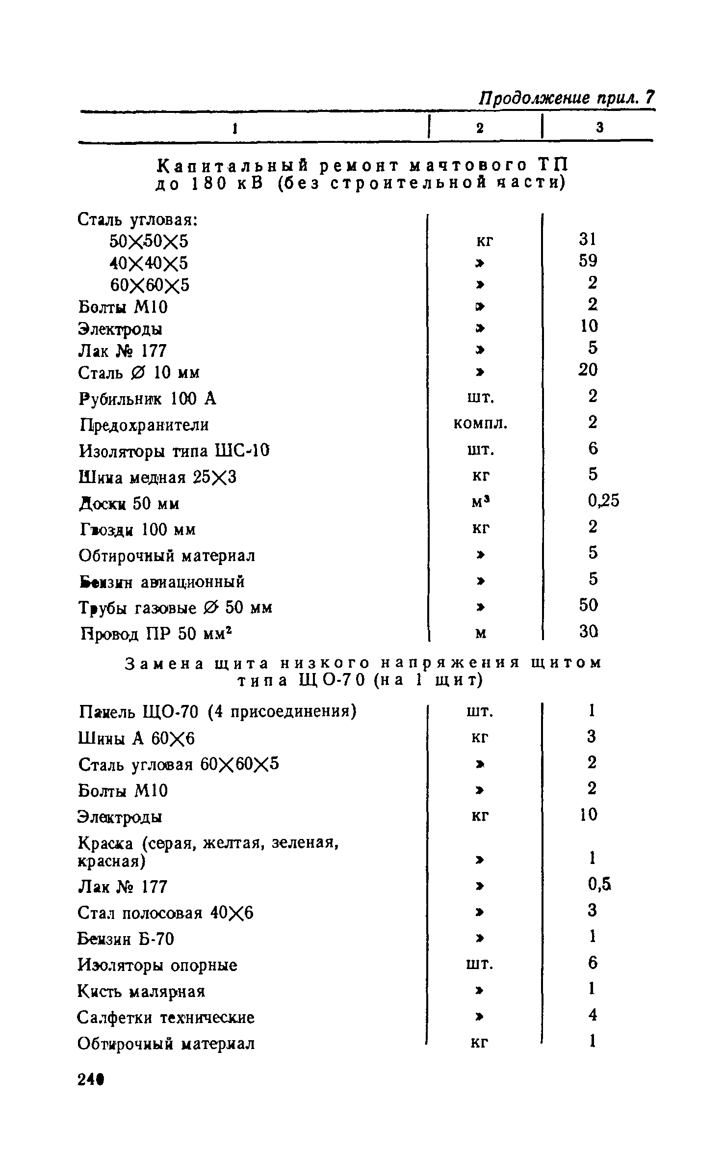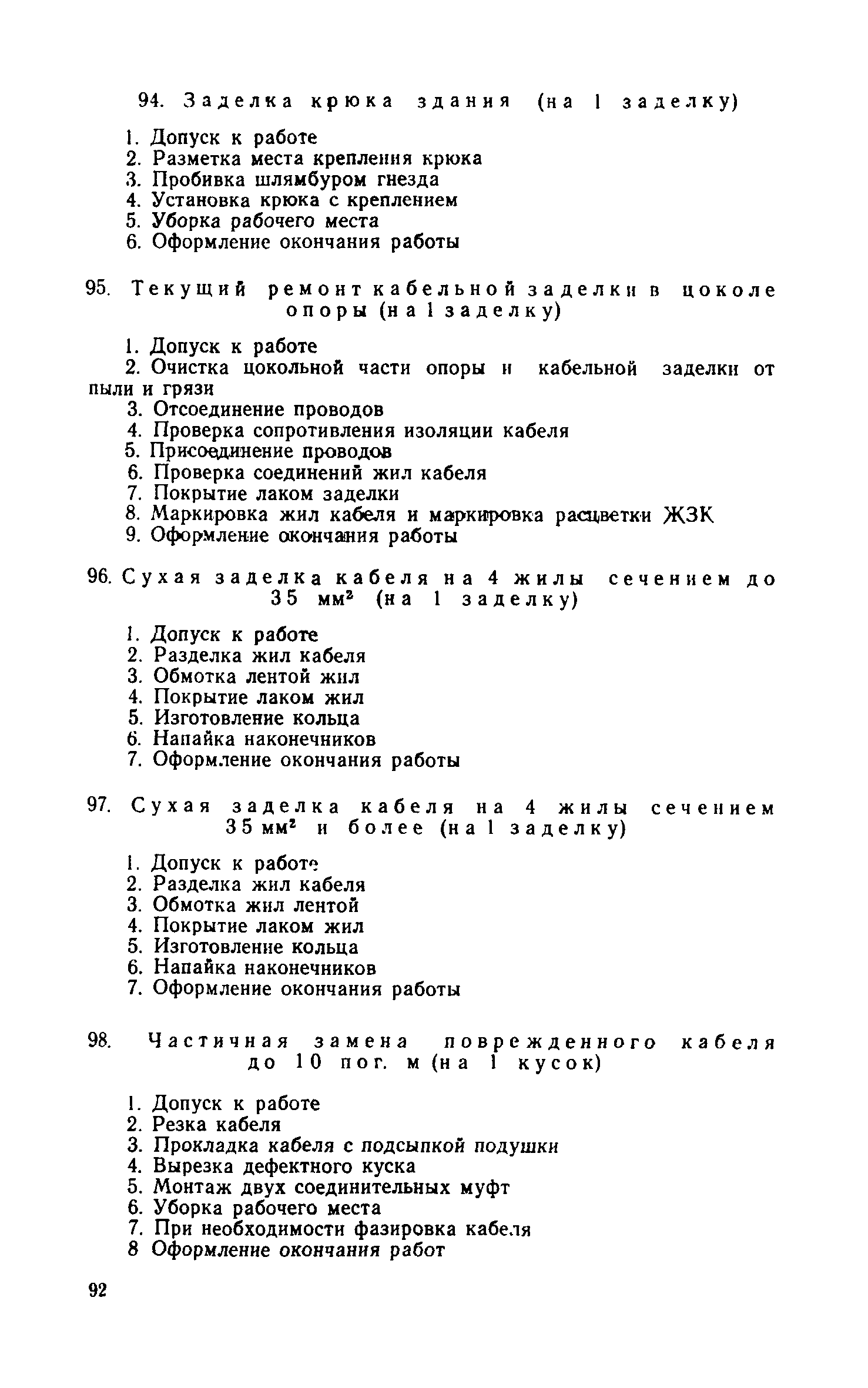 Временное положение о планово-предупредительном ремонте электроэнергетических устройств, оборудования и установок электрических сетей, наружного освещения и электрической части электростанций системы Минжилкомхоза РСФСР| Статус: | отменен в рф | | Название рус.: | Временное положение о планово-предупредительном ремонте электроэнергетических устройств, оборудования и установок электрических сетей, наружного освещения и электрической части электростанций системы Минжилкомхоза РСФСР | | Дата добавления в базу: | 01.10.2014 | | Дата актуализации: | 01.01.2021 | | Дата введения: | 01.01.1979 | | Дата окончания срока действия: | 25.06.2020 | | Область применения: | В документе рассматриваются планирование, организация и финансирование капитальных и текущих ремонтов электроэнергетического оборудования. Даны перечни наименований электроэнергетического оборудования, на которое распространяется Положение. Приведены нормы расхода материалов и запасных частей на ремонт, нормы времени на выполнение этих работ, а также формы документации оформления планово-предупредительных ремонтов. Временное положение предназначено для работников, занимающихся эксплуатацией электрооборудования предприятий системы Минжилкомхоза РСФСР. | | Оглавление: | Введение Глава I. Основные положения Глава II. Планирование и организация работ планово-предупредительных ремонтов Глава III. Финансирование капитальных и текущих ремонтов Глава IV. Подготовка и утверждение сметно-технической документации на проведение капитальных и текущих ремонтов Глава V. Капитальный и текущий ремонт основного оборудования электростанций, электросетей и установок наружного освещения Глава VI. Основные положения эксплуатации оборудования и ответственность за его сохранность Приложение 1. Перечень наименований электроэнергетических устройств, оборудования и установок Приложение 2. Периодичность планово-предупредительных ремонтов электроэнергетических устройств, оборудования и установок Приложение 3. Перечень работ, выполняемых при текущем ремонте электрических сетей, установок Приложение 4. Перечень типовых наборов работ по капитальному ремонту для основных видов оборудования и сооружений Приложение 5. Перечень нетиповых работ для основных видов оборудования и сооружений Приложение 6. Типовые нормы времени на капитальный ремонт электроэнергетических устройств, оборудования и установок Приложение 7. Нормы расхода материалов и запасных частей на капитальный ремонт электрических сетей, электроэнергетических устройств, оборудования и установок частей на капитальный ремонт электрических сетей, электроэнергетических устройств, оборудования и установок Приложение 8. Формы документации Приложение 9. Нормы амортизационных отчислений для устройств электропередачи, электродвигателей и силового оборудования Приложение 10. Типовые нормы времени на текущий ремонт электроэнергетических устройств, оборудования и установок Список литературы | | Разработан: | Оргкоммунэнерго