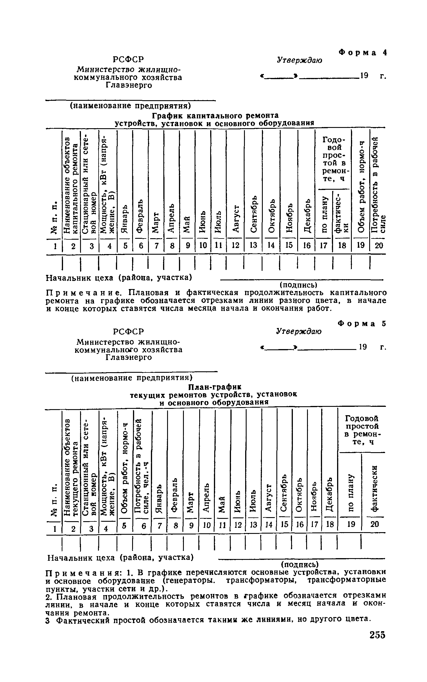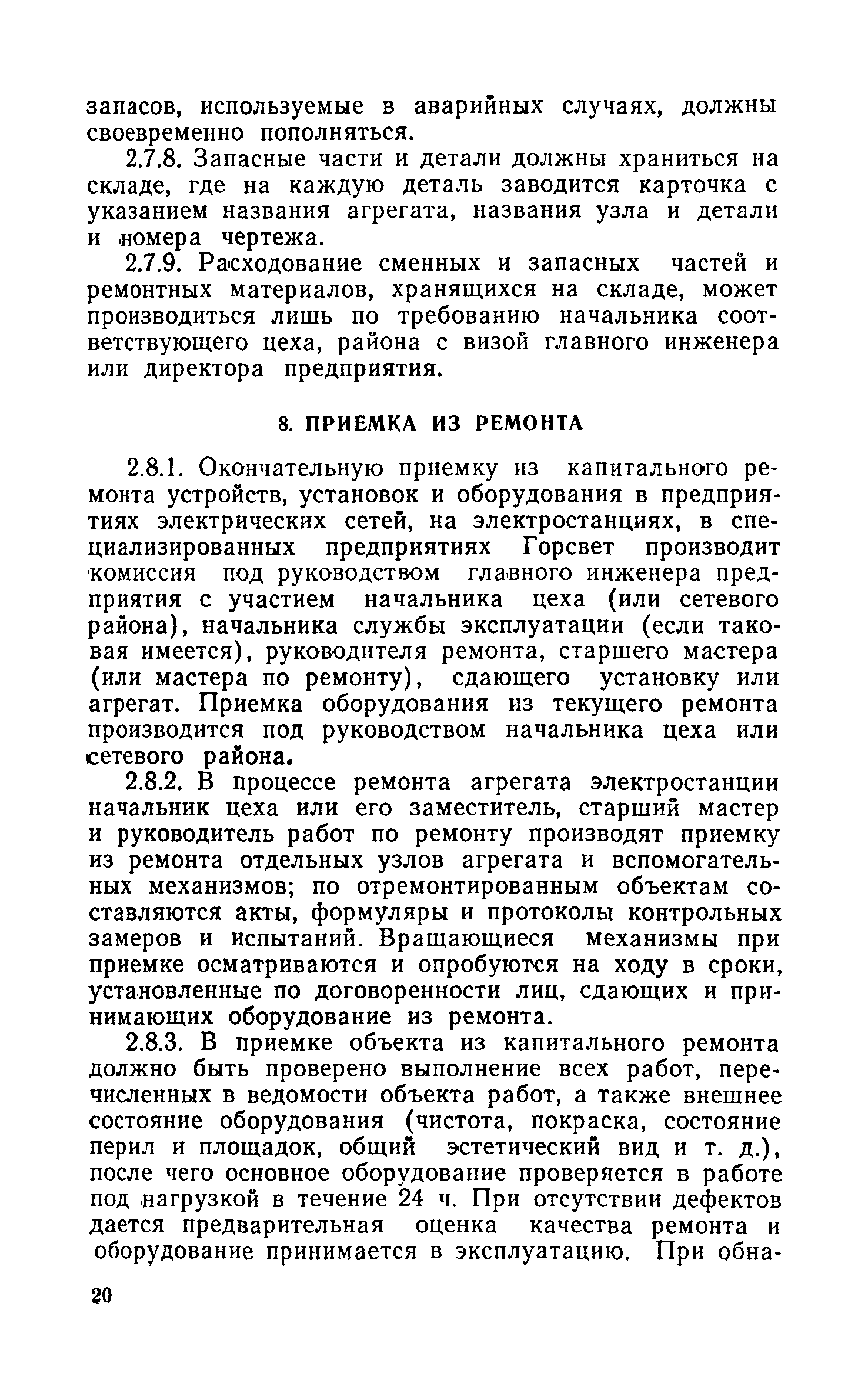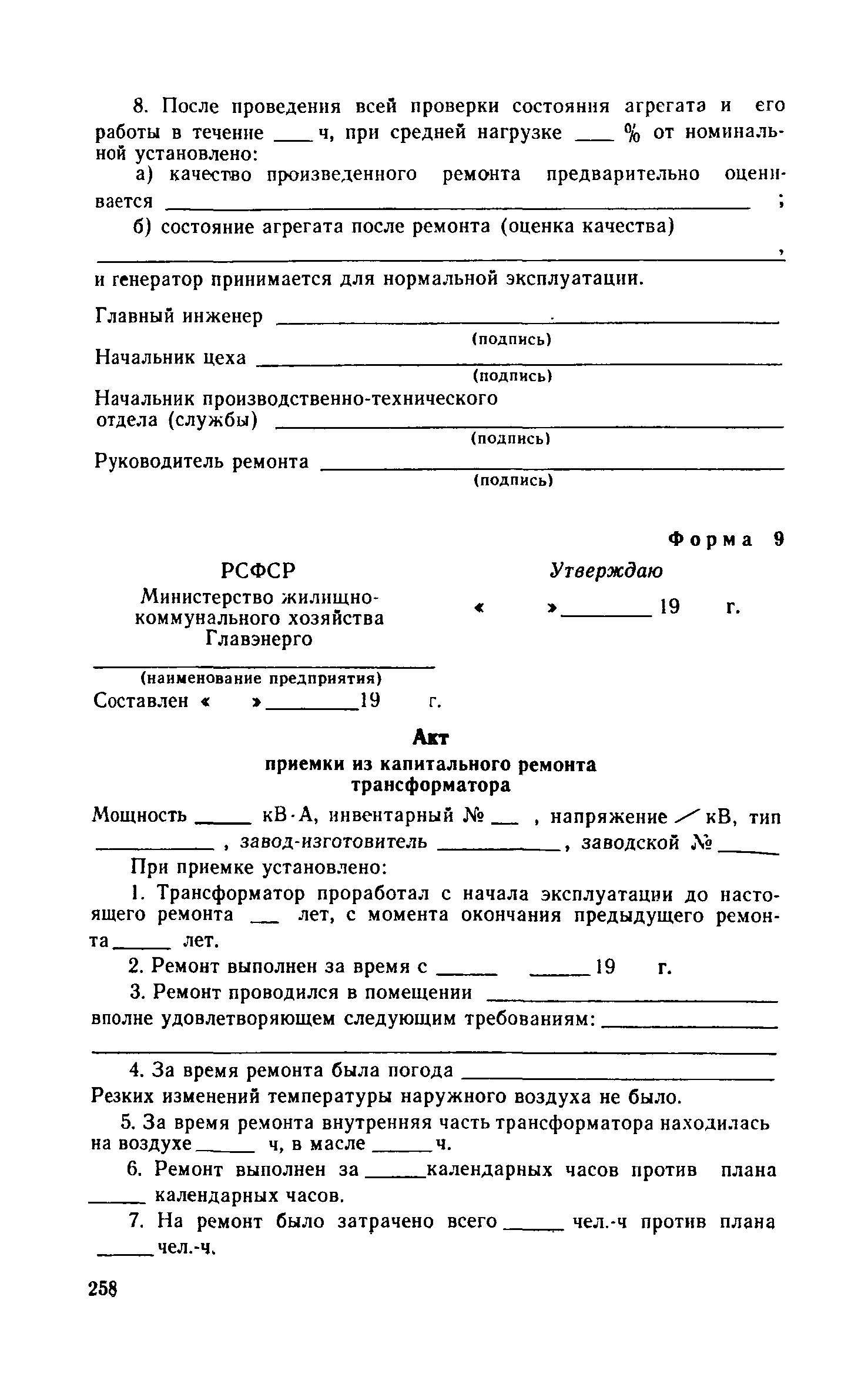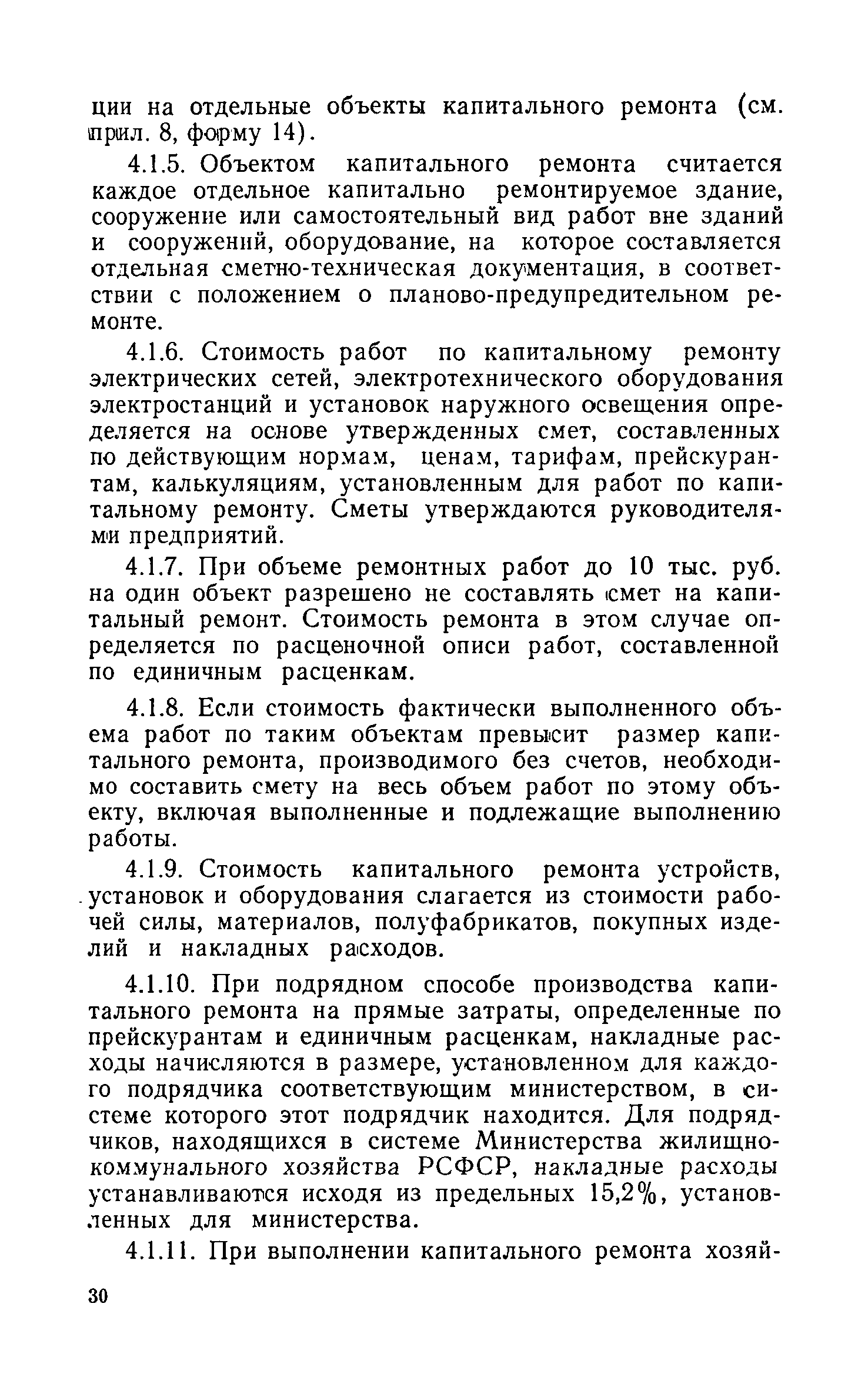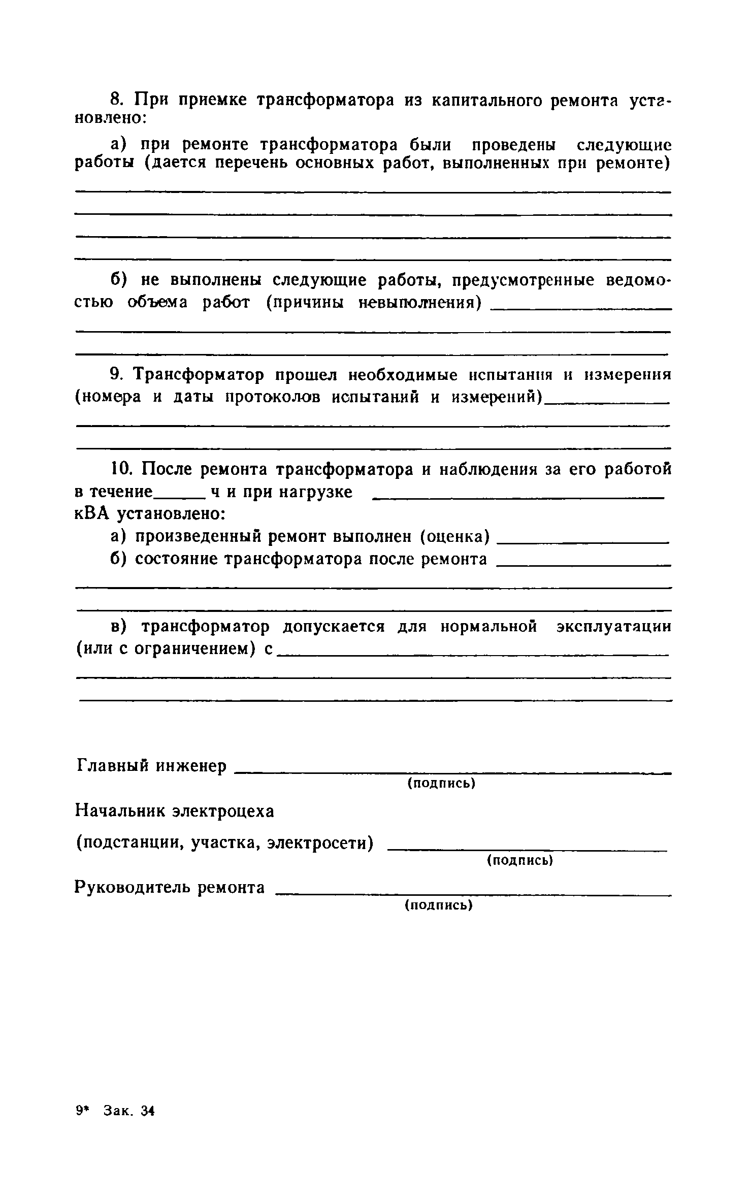 Временное положение о планово-предупредительном ремонте электроэнергетических устройств, оборудования и установок электрических сетей, наружного освещения и электрической части электростанций системы Минжилкомхоза РСФСР| Статус: | отменен в рф | | Название рус.: | Временное положение о планово-предупредительном ремонте электроэнергетических устройств, оборудования и установок электрических сетей, наружного освещения и электрической части электростанций системы Минжилкомхоза РСФСР | | Дата добавления в базу: | 01.10.2014 | | Дата актуализации: | 01.01.2021 | | Дата введения: | 01.01.1979 | | Дата окончания срока действия: | 25.06.2020 | | Область применения: | В документе рассматриваются планирование, организация и финансирование капитальных и текущих ремонтов электроэнергетического оборудования. Даны перечни наименований электроэнергетического оборудования, на которое распространяется Положение. Приведены нормы расхода материалов и запасных частей на ремонт, нормы времени на выполнение этих работ, а также формы документации оформления планово-предупредительных ремонтов. Временное положение предназначено для работников, занимающихся эксплуатацией электрооборудования предприятий системы Минжилкомхоза РСФСР. | | Оглавление: | Введение Глава I. Основные положения Глава II. Планирование и организация работ планово-предупредительных ремонтов Глава III. Финансирование капитальных и текущих ремонтов Глава IV. Подготовка и утверждение сметно-технической документации на проведение капитальных и текущих ремонтов Глава V. Капитальный и текущий ремонт основного оборудования электростанций, электросетей и установок наружного освещения Глава VI. Основные положения эксплуатации оборудования и ответственность за его сохранность Приложение 1. Перечень наименований электроэнергетических устройств, оборудования и установок Приложение 2. Периодичность планово-предупредительных ремонтов электроэнергетических устройств, оборудования и установок Приложение 3. Перечень работ, выполняемых при текущем ремонте электрических сетей, установок Приложение 4. Перечень типовых наборов работ по капитальному ремонту для основных видов оборудования и сооружений Приложение 5. Перечень нетиповых работ для основных видов оборудования и сооружений Приложение 6. Типовые нормы времени на капитальный ремонт электроэнергетических устройств, оборудования и установок Приложение 7. Нормы расхода материалов и запасных частей на капитальный ремонт электрических сетей, электроэнергетических устройств, оборудования и установок частей на капитальный ремонт электрических сетей, электроэнергетических устройств, оборудования и установок Приложение 8. Формы документации Приложение 9. Нормы амортизационных отчислений для устройств электропередачи, электродвигателей и силового оборудования Приложение 10. Типовые нормы времени на текущий ремонт электроэнергетических устройств, оборудования и установок Список литературы | | Разработан: | Оргкоммунэнерго