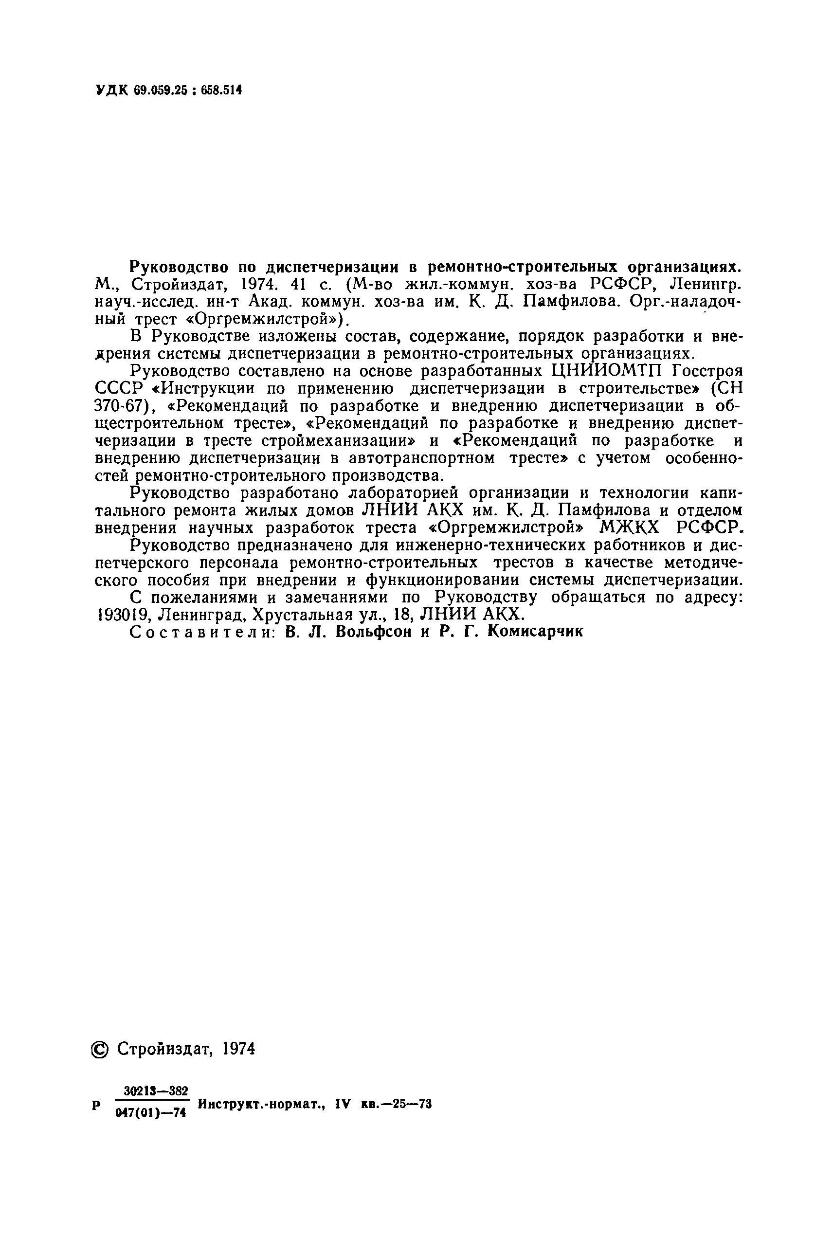 | Название рус.: | Руководство по диспетчеризации в ремонтно-строительных организациях |