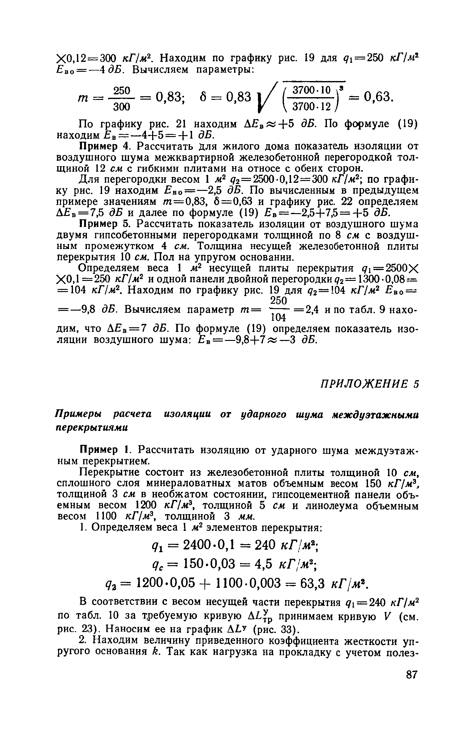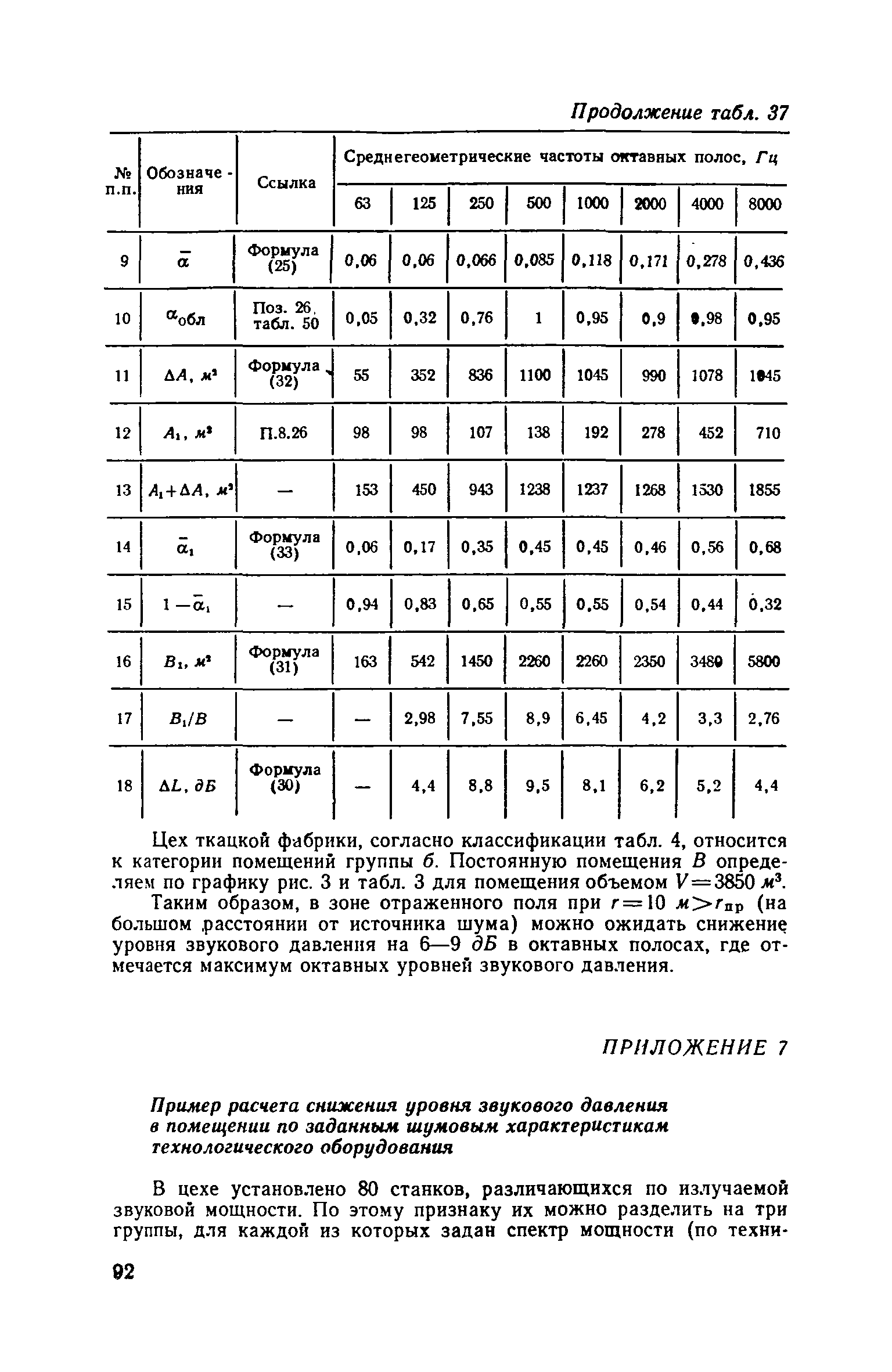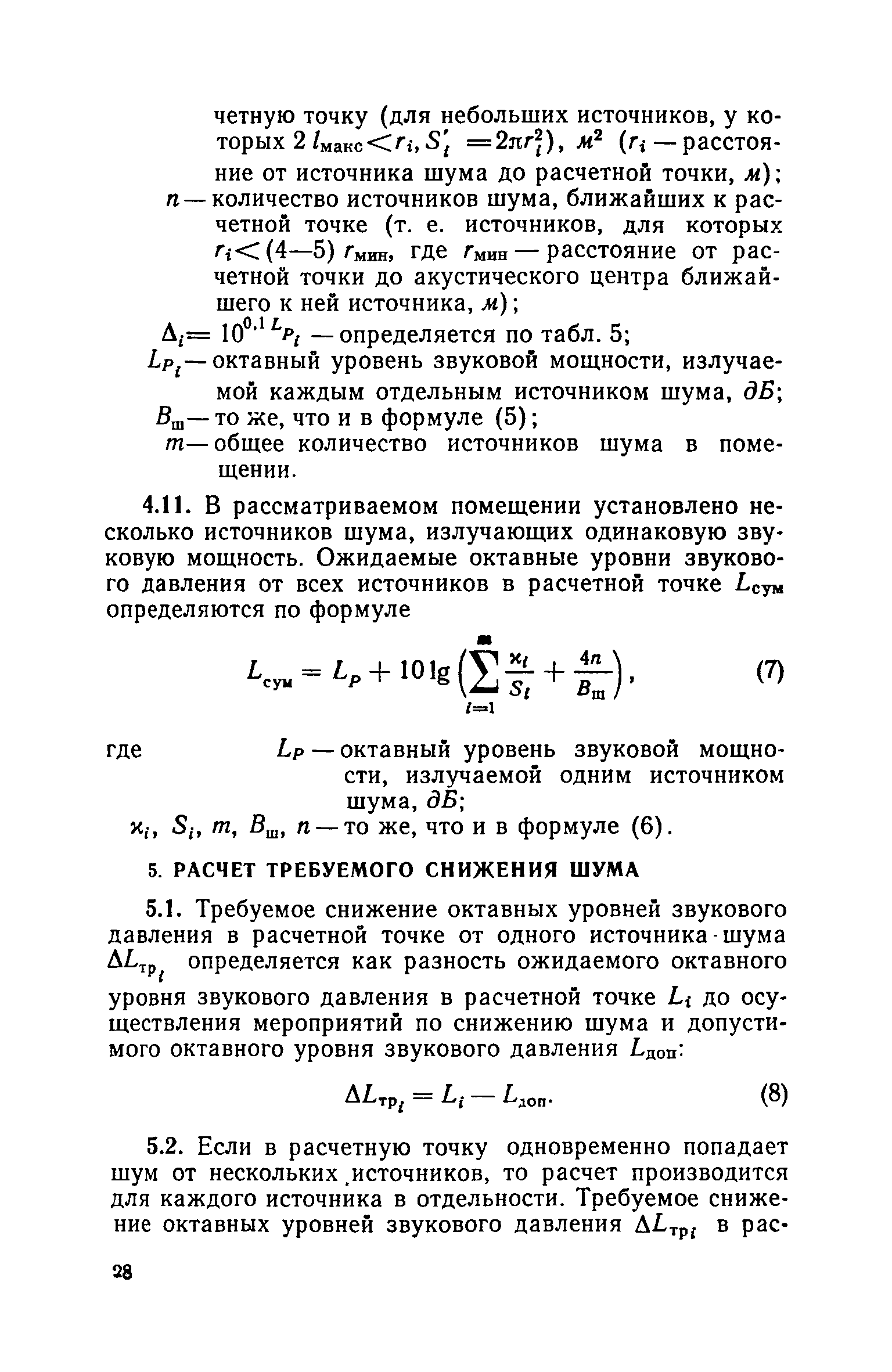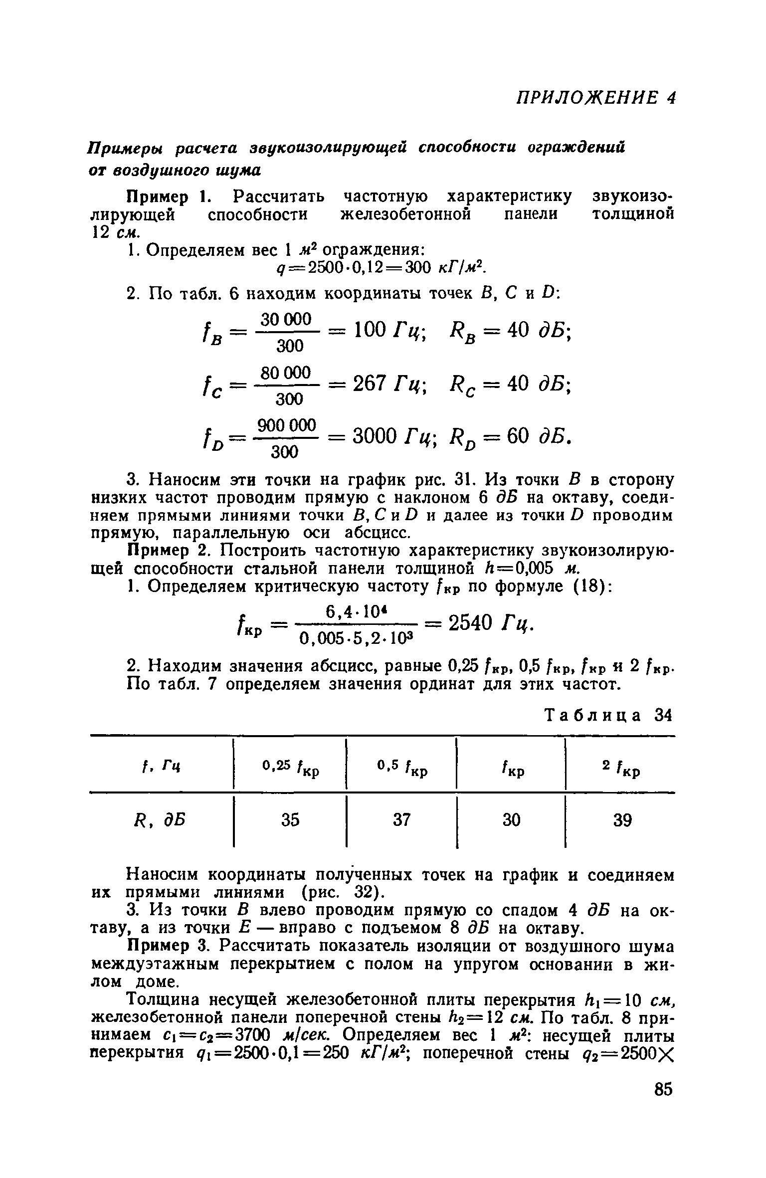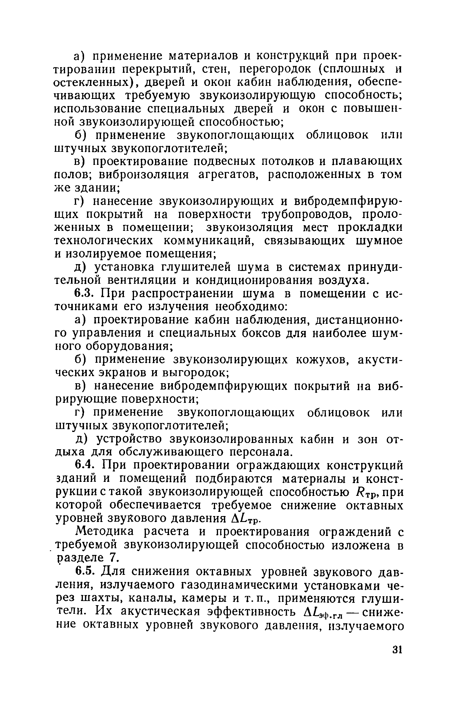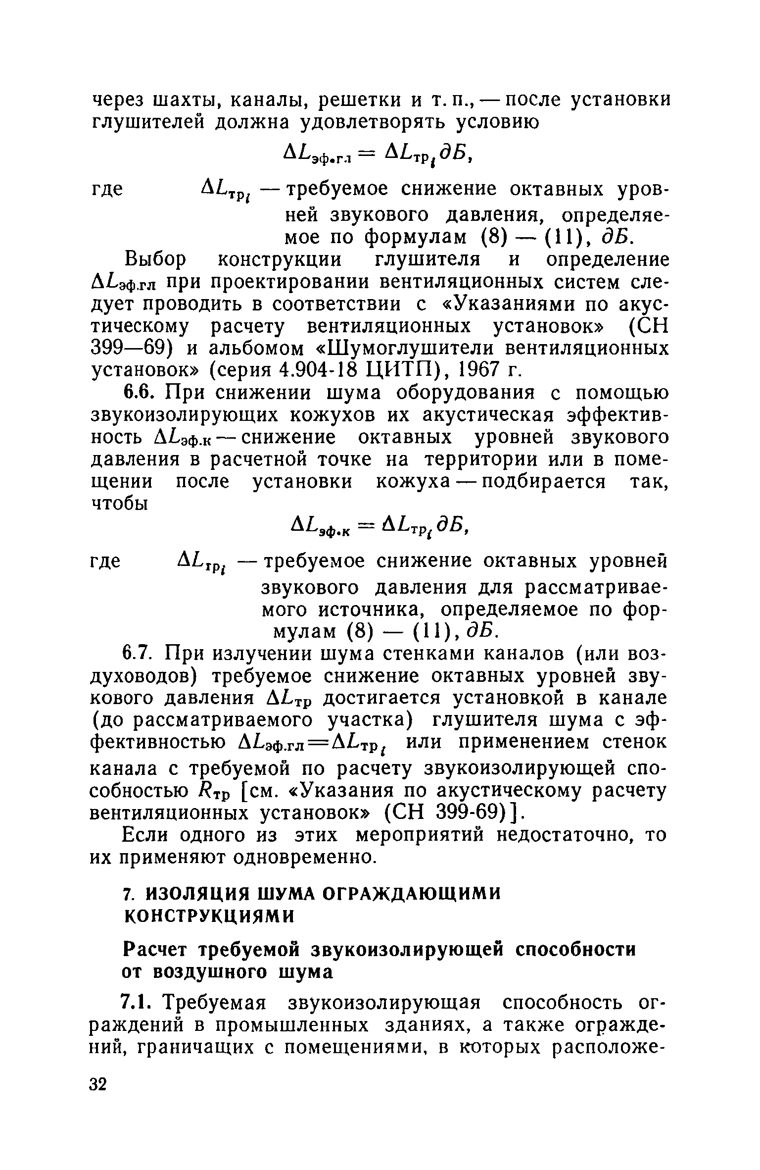 | Оглавление: | Предисловие 1. Общие положения 2. Планировочные решения 3. Порядок расчета и проектирования мероприятий по снижению шума 4. Расчет ожидаемых уровней звукового давления в расчетных точках до осуществления мероприятий по шумоглушению Расчетные точки расположены на территории Расчетные точки расположены в изолируемом от шума помещения Расчетные точки расположены в помещении с источниками шума 5. Расчет требуемого снижения шума 6. Строительно-акустические мероприятия по обеспечению требуемого снижения шума 7. Изоляция шума ограждающими конструкциями Расчет требуемой звукоизолирующей способности от воздушного шума Расчет звукоизолирующей способности от воздушного шума однослойных ограждений Приближенный расчет показателя изоляции от воздушного шума однослойными. двухслойными и раздельными многослойными ограждениями жилых и общественных зданий Расчет изоляции от ударного шума междуэтажными перекрытиями Конструктивные решения звукоизолирующих ограждений 8. Снижение шума звукопоглощающими облицовками и штучными звукопоглотителями Применение и размещение звукопоглощающих облицовок и штучных звукопоглотителей Расчет акустических характеристик помещений Выбор конструкции звукопоглощающей облицовки Расчет величины ожидаемого снижения шума Требования к звукопоглощающим облицовкам и штучным звукопоглотителям Приложение 1. Основные акустические понятия и определения Приложение 2. Примеры расчета ожидаемых уровней звукового давления в расчетных точках Приложение 3. Примеры расчета требуемой звукоизолирующей способности ограждающих конструкций Приложение 4. Примеры расчета звукоизолирующей способности ограждений от воздушного шума Приложение 5. Примеры расчета изоляции от ударного шума междуэтажными перекрытиями Приложение 6. Пример выбора конструкции звукопоглощающей облицовки по заданному усредненному спектру уровня звукового давления Приложение 7. Пример расчета снижения уровня звукового давления в помещении по заданным шумовым характеристикам технологического оборудования Приложение 8. Примеры расчета требуемого дополнительного звукопоглощения и выбор конструкции звукопоглотителя по требуемому снижению уровня звукового давления в зоне отраженного поля Приложение 9. Акустические характеристики некоторых звукопоглощающих облицовок и штучных звукопоглотителей |
