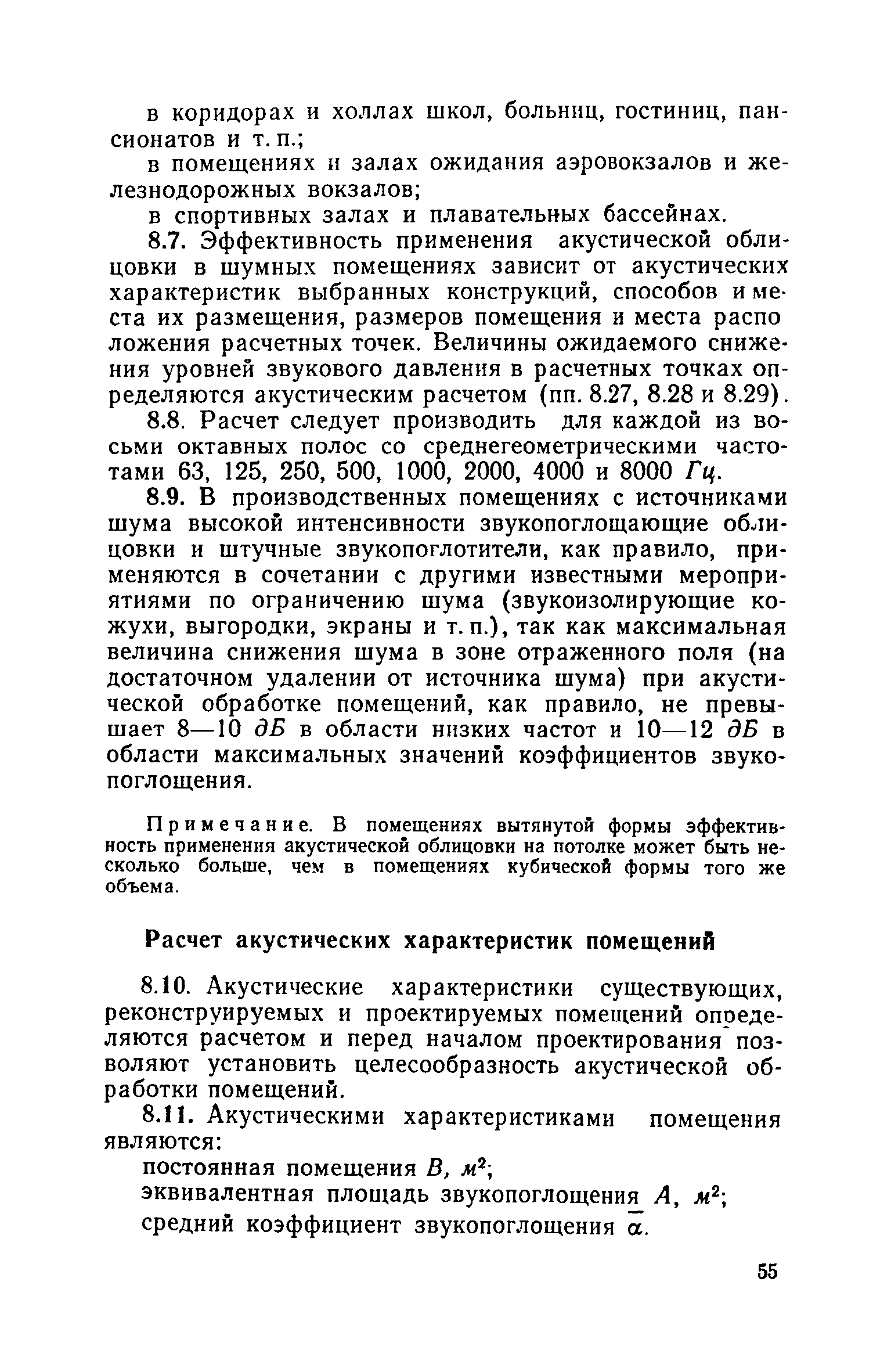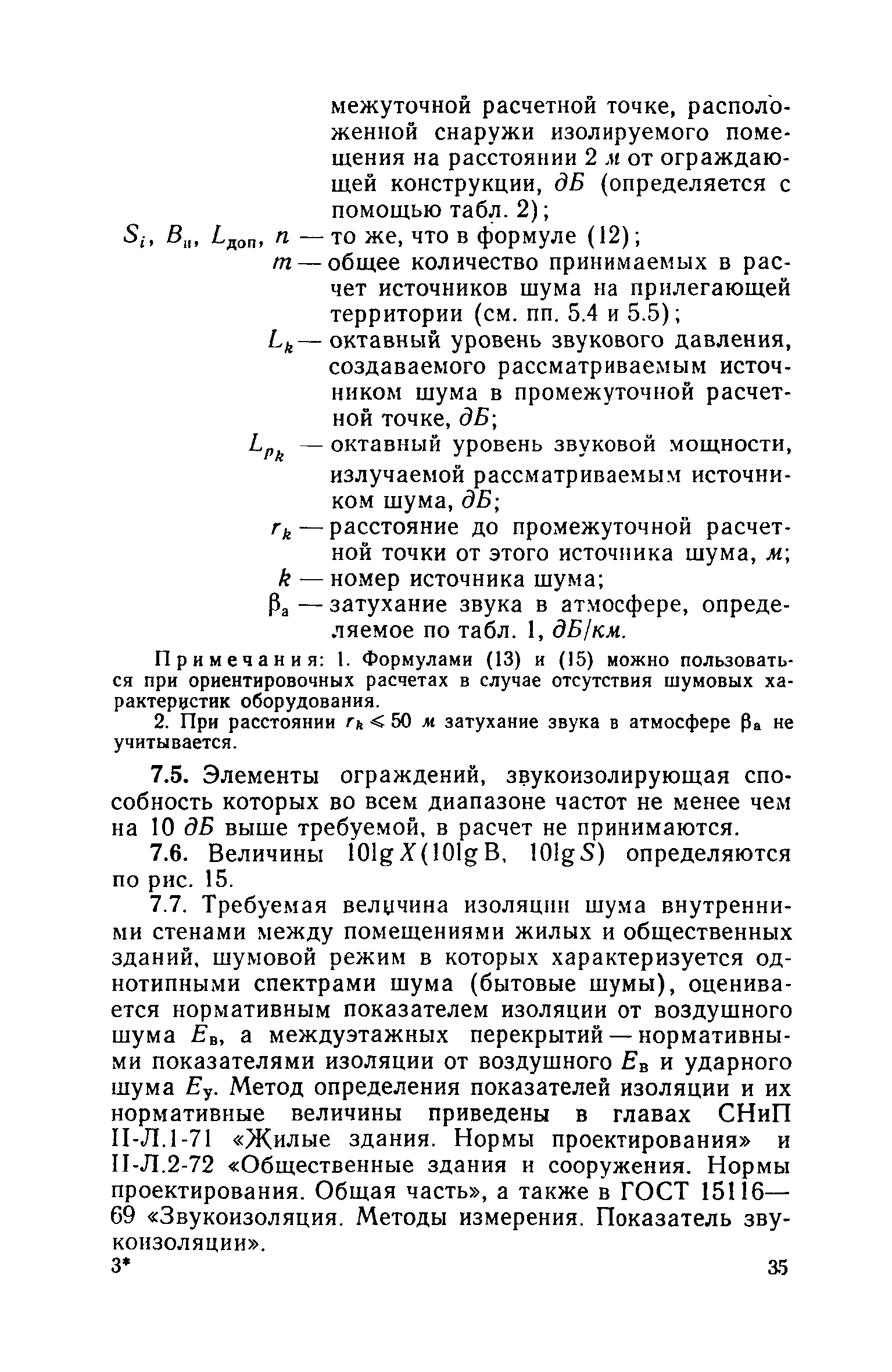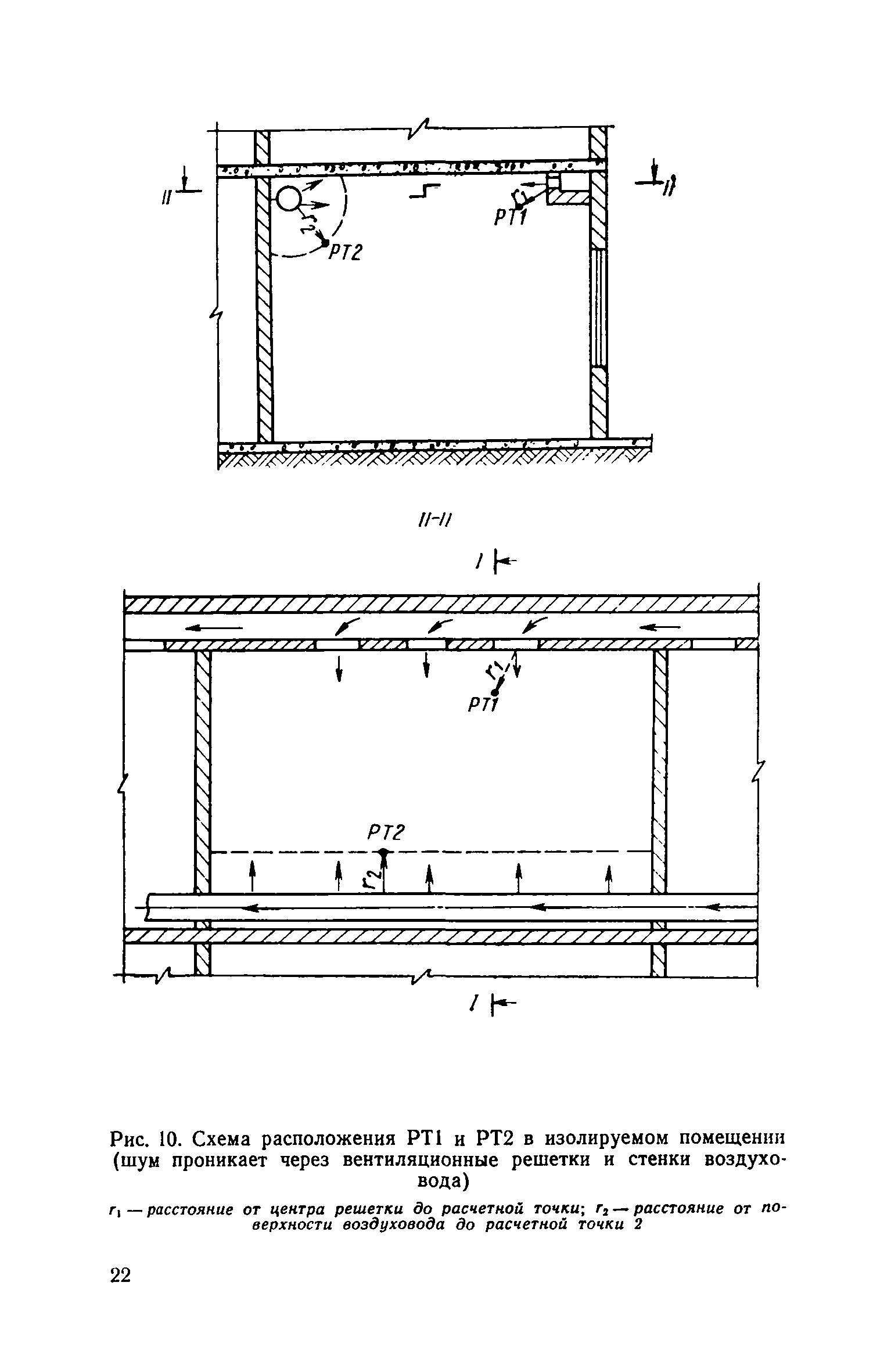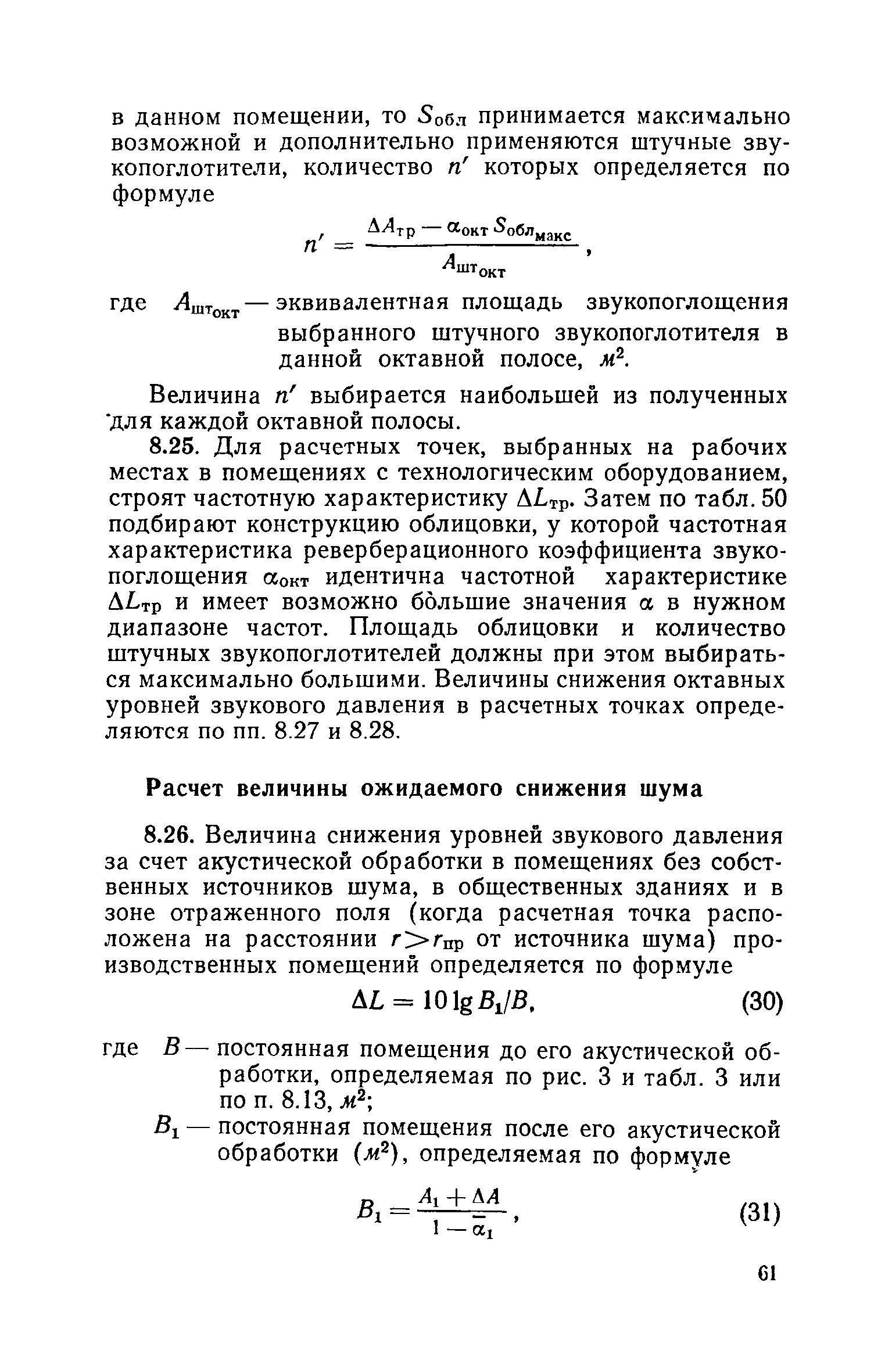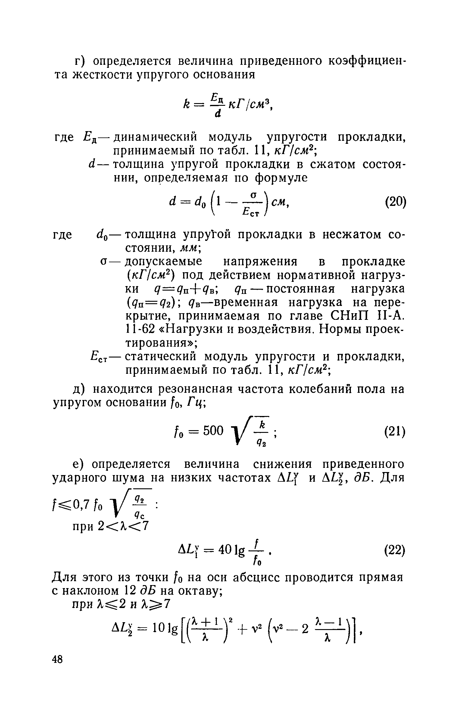 | Оглавление: | Предисловие 1. Общие положения 2. Планировочные решения 3. Порядок расчета и проектирования мероприятий по снижению шума 4. Расчет ожидаемых уровней звукового давления в расчетных точках до осуществления мероприятий по шумоглушению Расчетные точки расположены на территории Расчетные точки расположены в изолируемом от шума помещения Расчетные точки расположены в помещении с источниками шума 5. Расчет требуемого снижения шума 6. Строительно-акустические мероприятия по обеспечению требуемого снижения шума 7. Изоляция шума ограждающими конструкциями Расчет требуемой звукоизолирующей способности от воздушного шума Расчет звукоизолирующей способности от воздушного шума однослойных ограждений Приближенный расчет показателя изоляции от воздушного шума однослойными. двухслойными и раздельными многослойными ограждениями жилых и общественных зданий Расчет изоляции от ударного шума междуэтажными перекрытиями Конструктивные решения звукоизолирующих ограждений 8. Снижение шума звукопоглощающими облицовками и штучными звукопоглотителями Применение и размещение звукопоглощающих облицовок и штучных звукопоглотителей Расчет акустических характеристик помещений Выбор конструкции звукопоглощающей облицовки Расчет величины ожидаемого снижения шума Требования к звукопоглощающим облицовкам и штучным звукопоглотителям Приложение 1. Основные акустические понятия и определения Приложение 2. Примеры расчета ожидаемых уровней звукового давления в расчетных точках Приложение 3. Примеры расчета требуемой звукоизолирующей способности ограждающих конструкций Приложение 4. Примеры расчета звукоизолирующей способности ограждений от воздушного шума Приложение 5. Примеры расчета изоляции от ударного шума междуэтажными перекрытиями Приложение 6. Пример выбора конструкции звукопоглощающей облицовки по заданному усредненному спектру уровня звукового давления Приложение 7. Пример расчета снижения уровня звукового давления в помещении по заданным шумовым характеристикам технологического оборудования Приложение 8. Примеры расчета требуемого дополнительного звукопоглощения и выбор конструкции звукопоглотителя по требуемому снижению уровня звукового давления в зоне отраженного поля Приложение 9. Акустические характеристики некоторых звукопоглощающих облицовок и штучных звукопоглотителей |