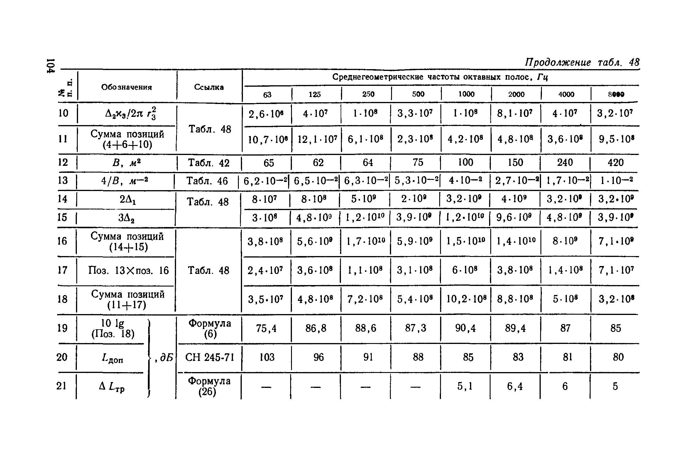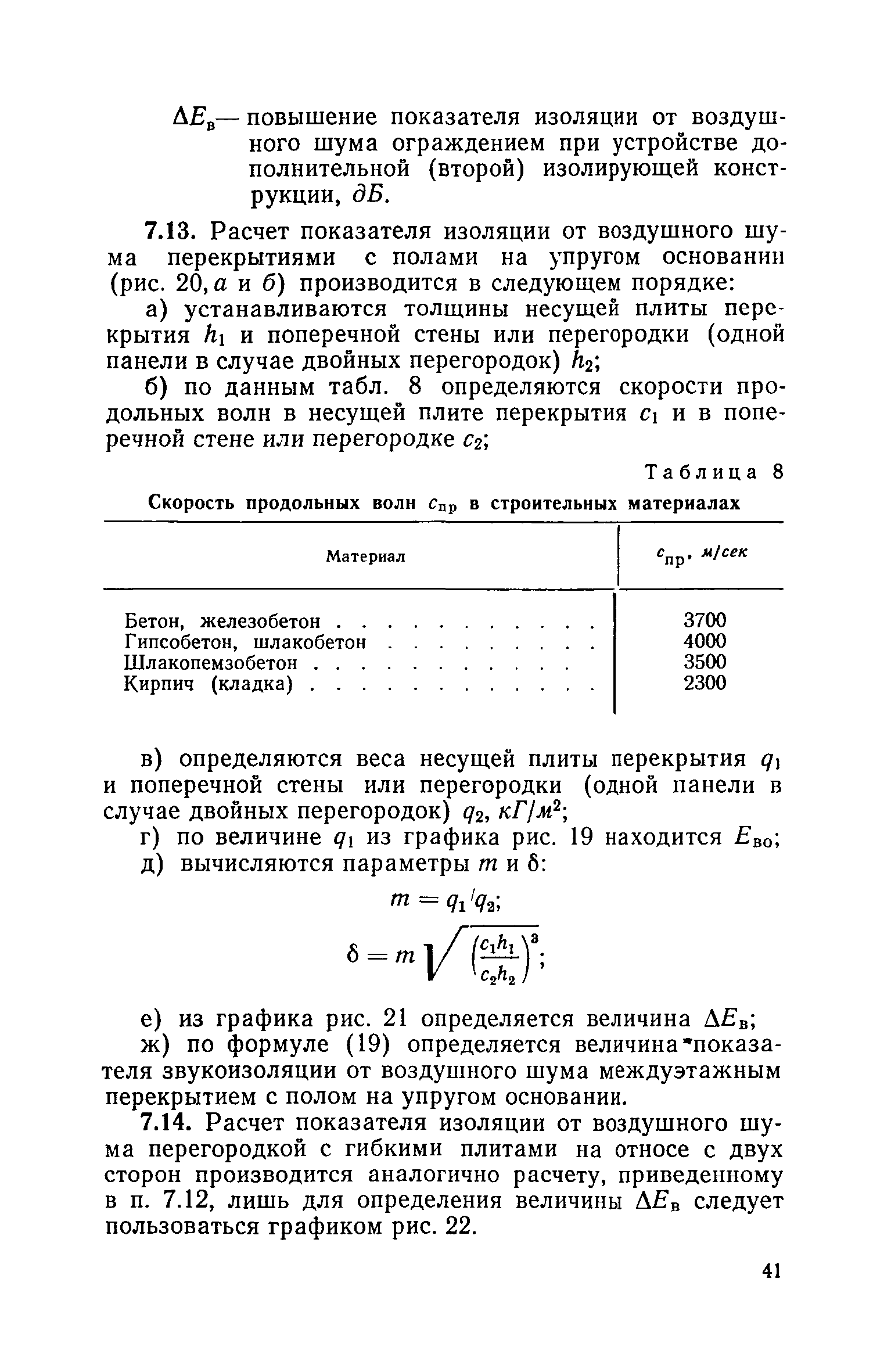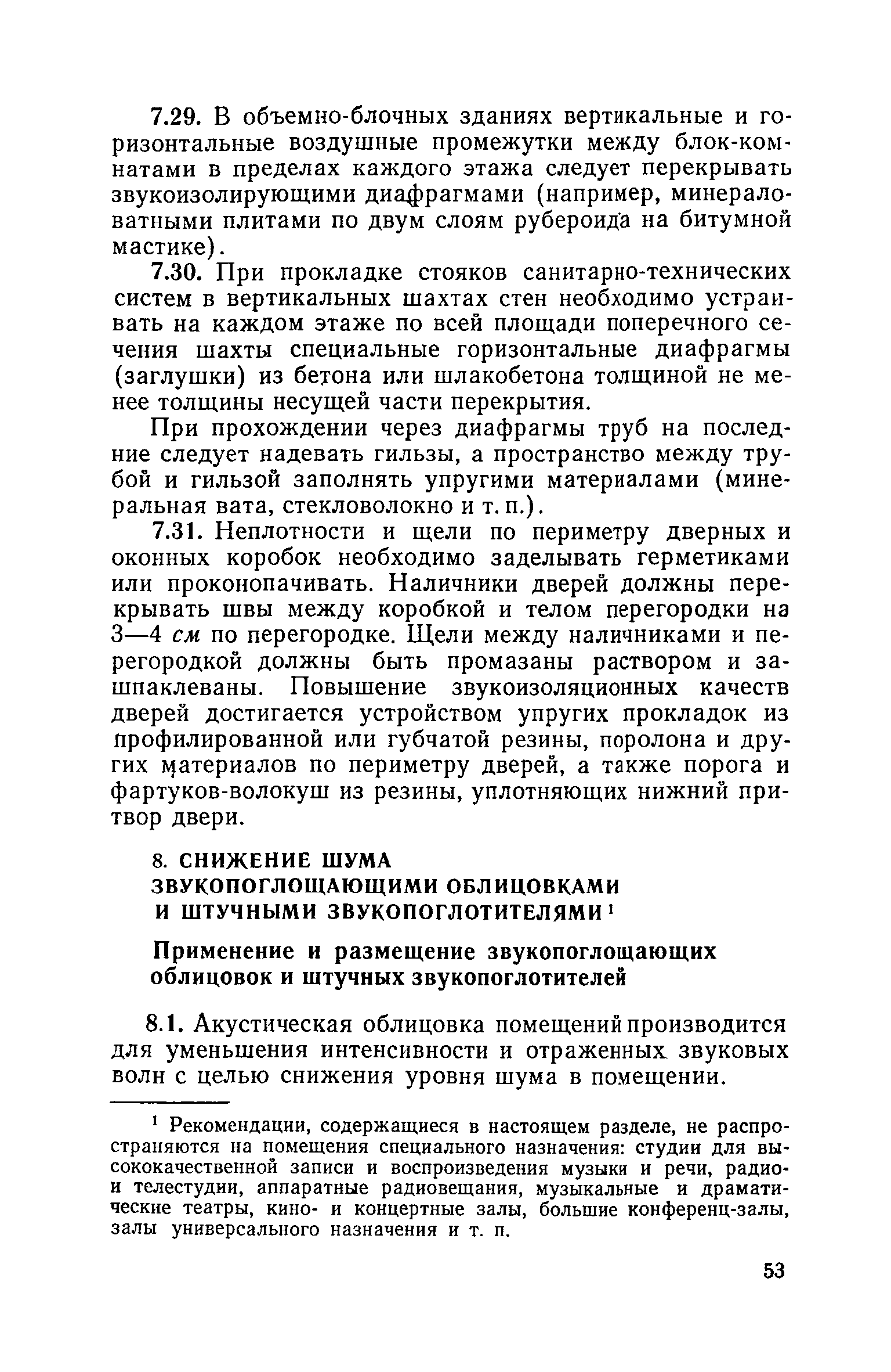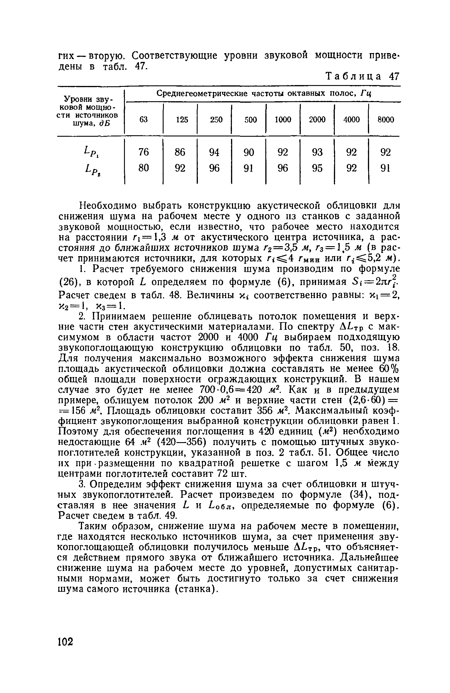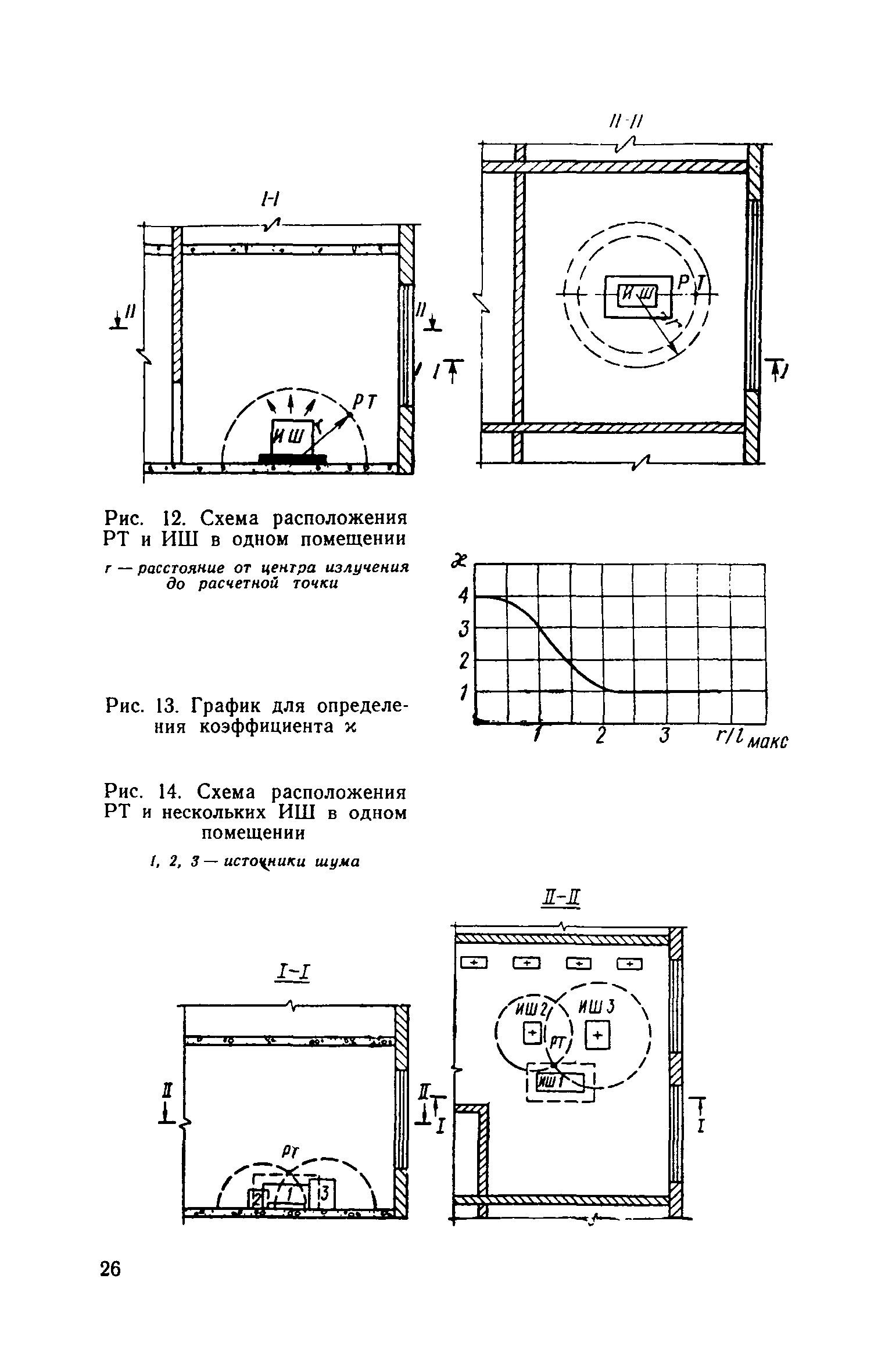 | Оглавление: | Предисловие 1. Общие положения 2. Планировочные решения 3. Порядок расчета и проектирования мероприятий по снижению шума 4. Расчет ожидаемых уровней звукового давления в расчетных точках до осуществления мероприятий по шумоглушению Расчетные точки расположены на территории Расчетные точки расположены в изолируемом от шума помещения Расчетные точки расположены в помещении с источниками шума 5. Расчет требуемого снижения шума 6. Строительно-акустические мероприятия по обеспечению требуемого снижения шума 7. Изоляция шума ограждающими конструкциями Расчет требуемой звукоизолирующей способности от воздушного шума Расчет звукоизолирующей способности от воздушного шума однослойных ограждений Приближенный расчет показателя изоляции от воздушного шума однослойными. двухслойными и раздельными многослойными ограждениями жилых и общественных зданий Расчет изоляции от ударного шума междуэтажными перекрытиями Конструктивные решения звукоизолирующих ограждений 8. Снижение шума звукопоглощающими облицовками и штучными звукопоглотителями Применение и размещение звукопоглощающих облицовок и штучных звукопоглотителей Расчет акустических характеристик помещений Выбор конструкции звукопоглощающей облицовки Расчет величины ожидаемого снижения шума Требования к звукопоглощающим облицовкам и штучным звукопоглотителям Приложение 1. Основные акустические понятия и определения Приложение 2. Примеры расчета ожидаемых уровней звукового давления в расчетных точках Приложение 3. Примеры расчета требуемой звукоизолирующей способности ограждающих конструкций Приложение 4. Примеры расчета звукоизолирующей способности ограждений от воздушного шума Приложение 5. Примеры расчета изоляции от ударного шума междуэтажными перекрытиями Приложение 6. Пример выбора конструкции звукопоглощающей облицовки по заданному усредненному спектру уровня звукового давления Приложение 7. Пример расчета снижения уровня звукового давления в помещении по заданным шумовым характеристикам технологического оборудования Приложение 8. Примеры расчета требуемого дополнительного звукопоглощения и выбор конструкции звукопоглотителя по требуемому снижению уровня звукового давления в зоне отраженного поля Приложение 9. Акустические характеристики некоторых звукопоглощающих облицовок и штучных звукопоглотителей |