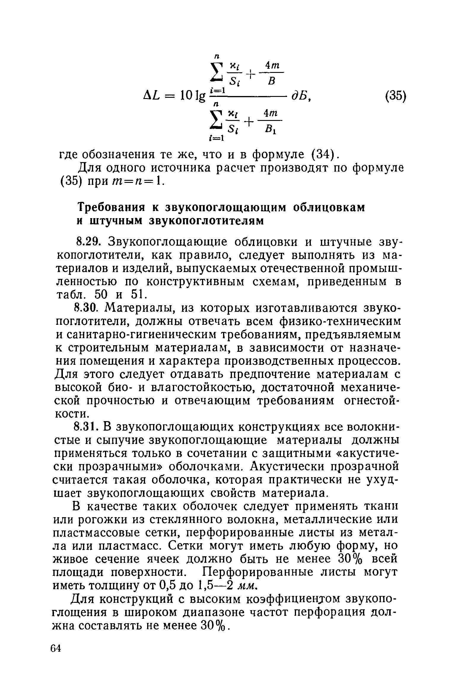 | Область применения: | Пособие содержит основные положения по шумоглушению строительно-акустическими методами, методы расчета ожидаемых уровней звукового давления в требуемого снижения шума, расчет звукоизоляции ограждающими конструкциями и снижения шума звукопоглощающими облицовками и штучными звукопоглотителями. Приводятся примеры расчета, а также таблицы акустических характеристик звукопоглощающих облицовок и штучных звукопоглотителей. Пособие предназначено для работников проектных организаций, а также для инженерно-технических работников, занимающихся решением вопросов борьбы с шумом. |