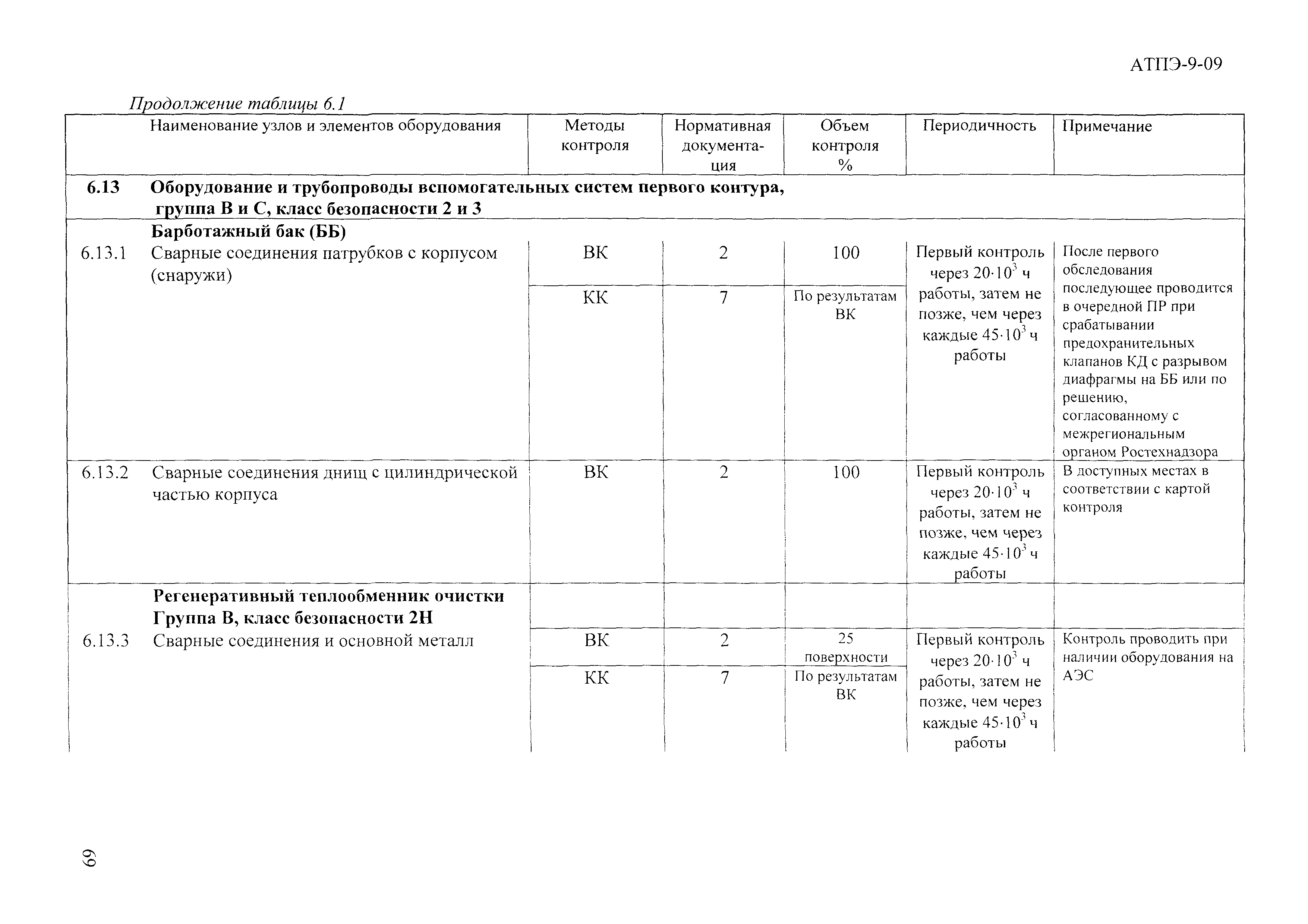 | Оглавление: | 1 Область применения 2 Нормативные ссылки 3 Сокращения 4 Общие положения 5 Организационно-технические мероприятия 6 Программа контроля за состоянием основного металла и сварных соединений оборудования трубопроводов 1 контура АЭС с реакторной установкой ВВЭР-1000 6.1 Корпус реактора 6.2 Корпус статорный привода СУЗ 6.3 Верхний блок 6.4 Оборудование шахтного объема 6.5 Парогенератор ПГВ-1000М или ПГВ-1000 6.6 Компенсатор давления 6.7 Трубопроводы компенсации давления 6.8 Главный циркуляционный трубопровод 6.9 Главный циркуляционный насос 6.10 Главная запорная задвижка 6.11 Емкость САОЗ 6.12 Трубопроводы от реактора до емкости САОЗ и трубопроводы расхолаживания 6.13 Оборудование и трубопроводы вспомогательных систем первого контура 7 Программа контроля за состоянием основного металла и сварных соединений оборудования трубопроводов 2 контура АЭС с реакторной установкой ВВЭР-1000 7.1 Турбина 7.2 Приводная турбина ОК-12А 7.3 Деаэратор 7.4 Подогреватель низкого давления 7.5 Подогреватель высокого давления 7.6 Сепаратор-пароперегреватель 7.7 Главные паропроводы 7.8 Питательные трубопроводы 7.9 Паропровод БРУ-К, БРУ-СН 7.10 Паропровод греющего пара 1 и 2 ступеней СПП 7.11 Трубопровод отвода КГП из СПП 7.12 Трубопроводы КГП 7.13 Трубопроводы I-II отборов на ПВД-6,7 7.14 Трубопроводы основного конденсата 8 Перечень зон трубопроводов АЭС с ВВЭР-1000, контролируемых разрушающими методами 9 Порядок и нормы оценки результатов контроля сварных соединений в эксплуатации Приложение А (справочное). Технологическая карта контроля Приложение Б (рекомендуемое). Протокол (заключение) Приложение В (рекомендуемое). Форма книги учета обследования (контроля) узлов (элементов) АЭС Приложение Г (обязательное). Акт обследования дефектного узла Приложение Д (обязательное). Выписка из заводского сертификата Приложение Е (справочное). Нормы оценки качества основного металла, сварных соединений и наплавок оборудования и трубопроводо и для методов неразрушающего контроля Приложение Ж (обязательное). Объемы и зоны проведения УЗТ Приложение И (справочное). Типы тройников Приложение К (обязательное). Зоны проведения контроля элементов трубопроводов Лист регистрации изменений |