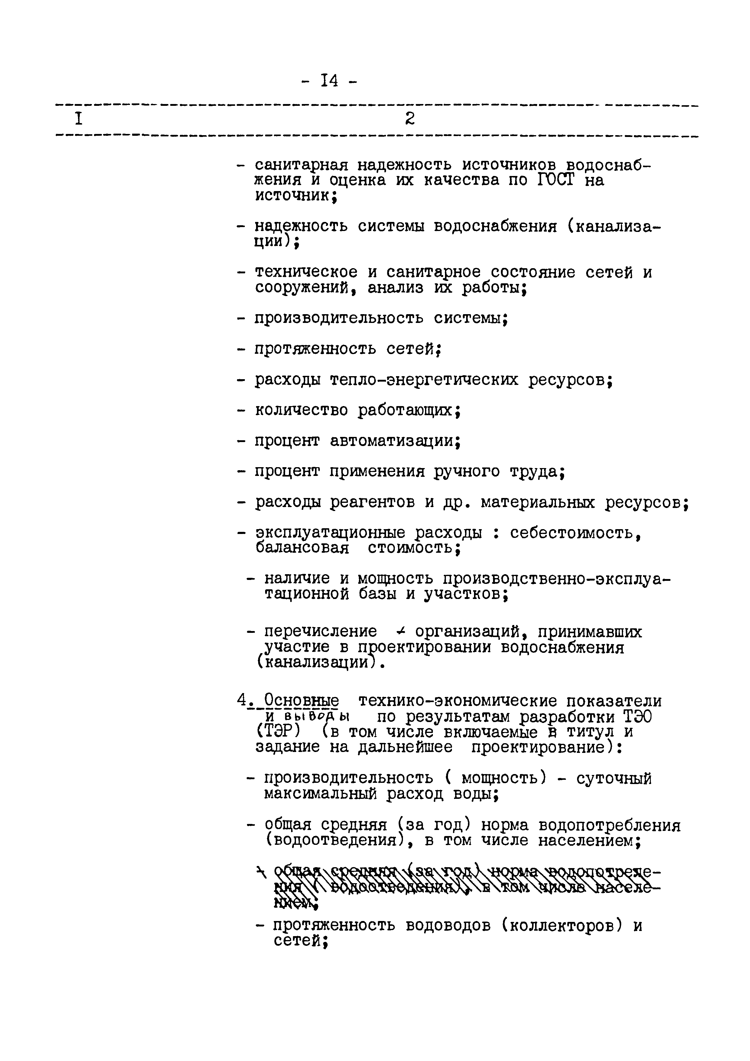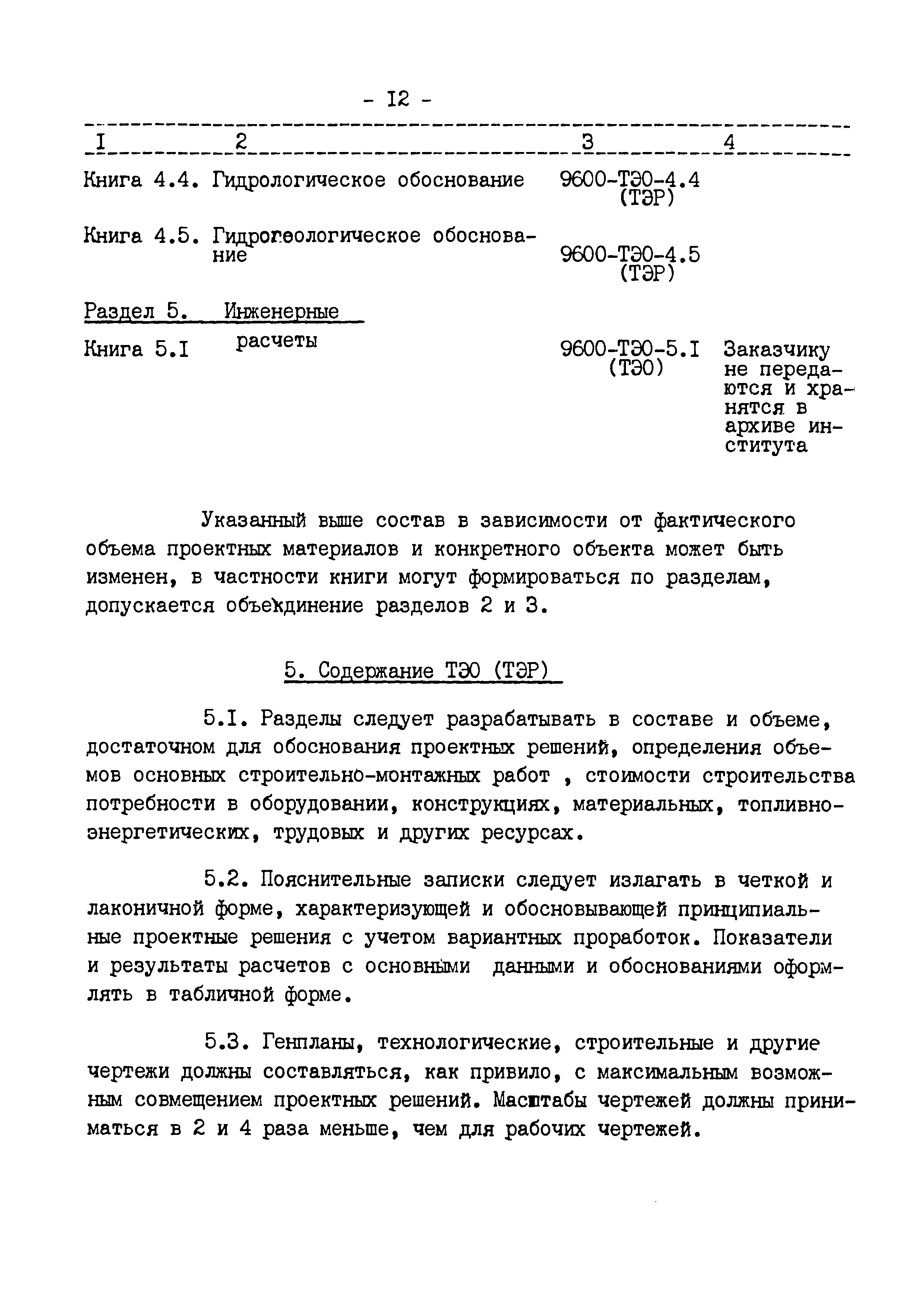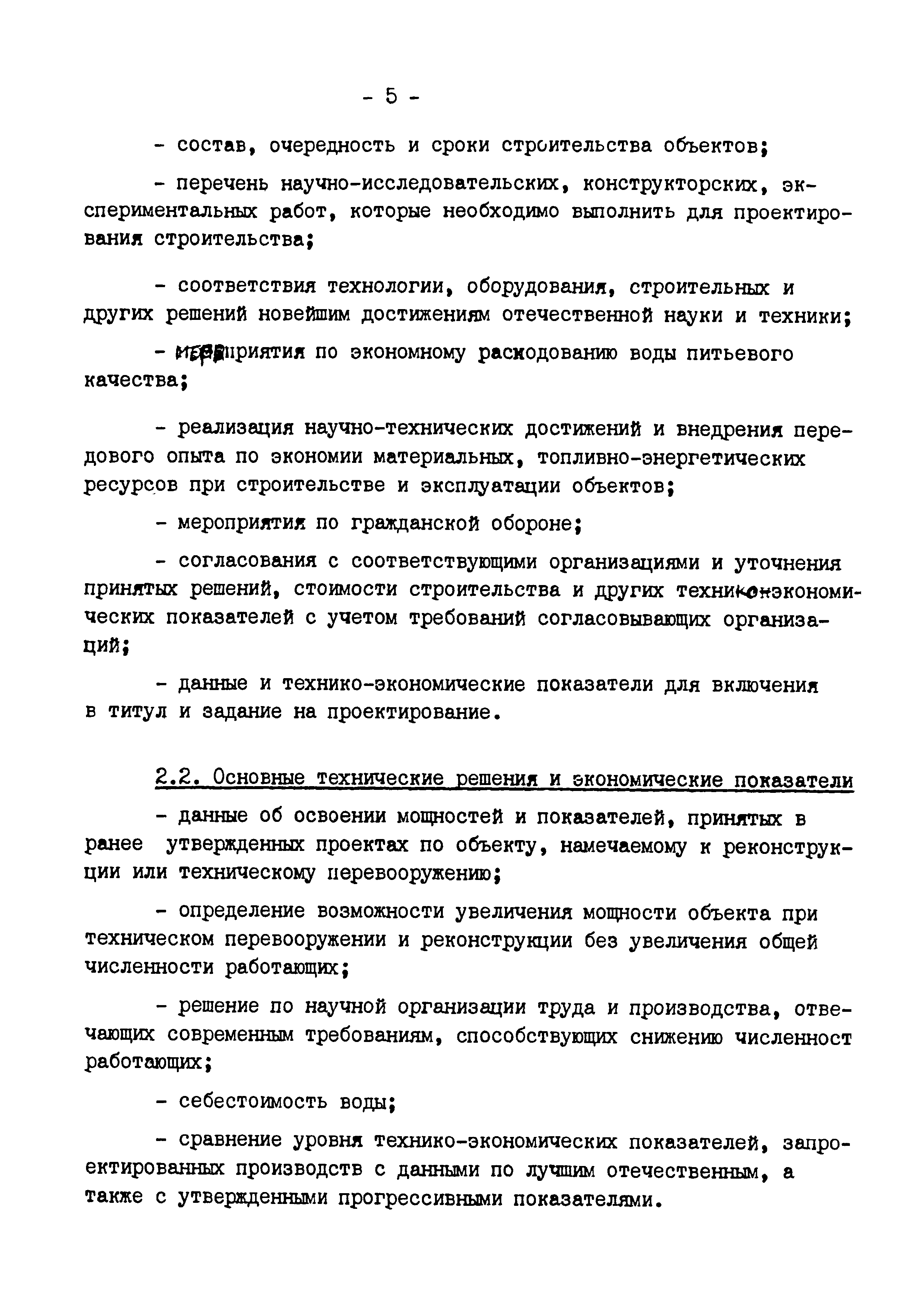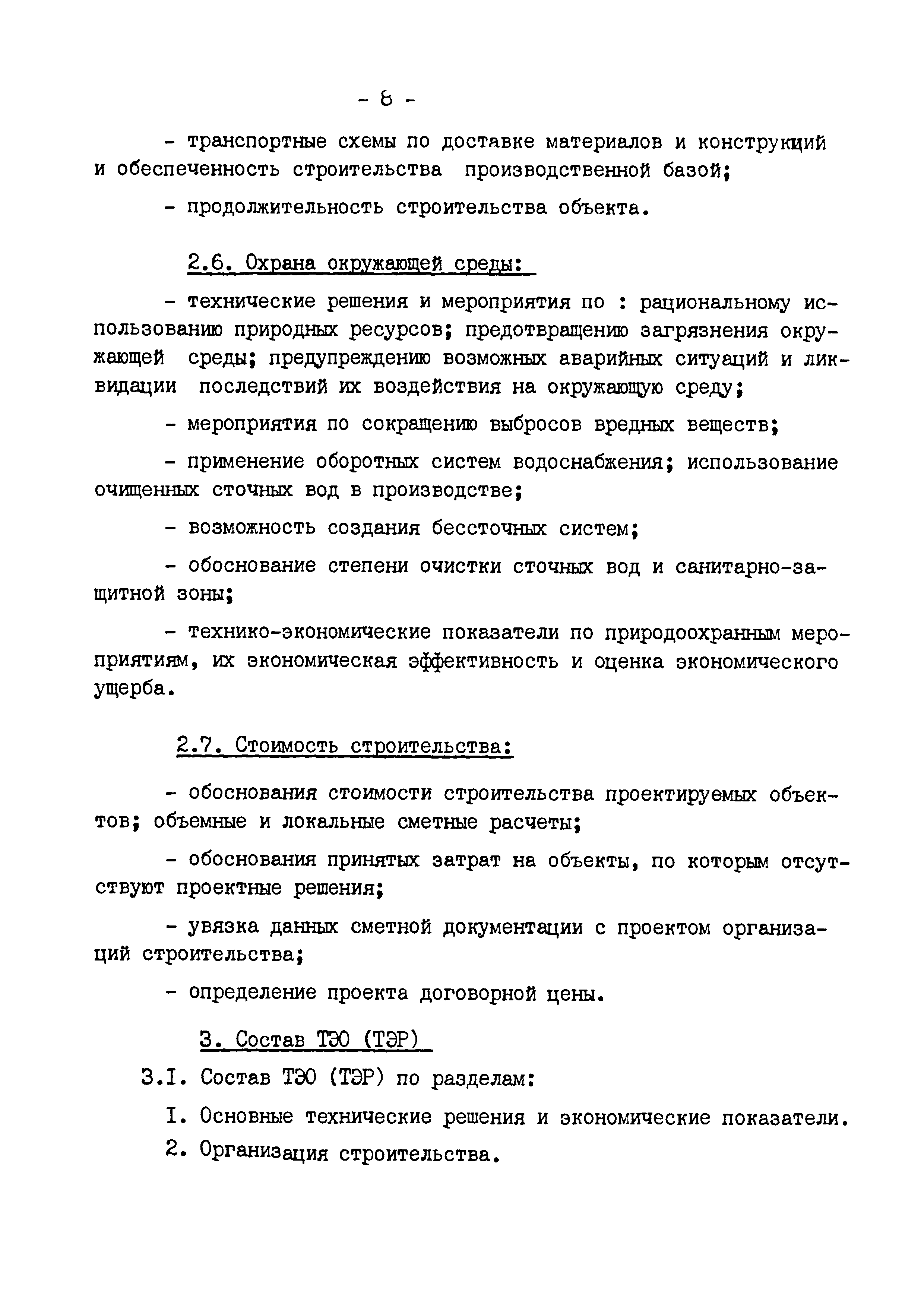 Временные рекомендации по разработке ТЭО (ТЭР) (технико-экономических обоснований, расчетов) строительства объектов коммунальных водопроводов и канализаций городов, населенных пунктов| Статус: | не установлен срок действия | | Название рус.: | Временные рекомендации по разработке ТЭО (ТЭР) (технико-экономических обоснований, расчетов) строительства объектов коммунальных водопроводов и канализаций городов, населенных пунктов | | Дата добавления в базу: | 01.10.2014 | | Дата актуализации: | 01.01.2021 | | Область применения: | Рекомендациями определяется состав, содержание, порядок разработки и оформления ТЭО и ТЭР нового строительства, реконструкции и технического перевооружения коммунальных водопроводов и канализации (ВиК) городов, населенных пунктов РСФСР, а также отдельных зданий и сооружений систем ВиК. | | Оглавление: | 1. Общие положения 2. Основные вопросы. рассматриваемые в ТЭО (ТЭР) 2.1 Общие вопросы 2.2 Основные технические решения и экономические показатели 2.3 Технология производства 2.4 Генеральный план и транспорт 2.5 Архитектурно-строительные решения 2.6 Охрана окружающей среды 2.7 Стоимость строительства 3. Состав ТЭО (ТЭР) 4. Состав и обозначения разделов и книг ТЭО (ТЭР) 5. Содержание ТЭО (ТЭР) | | Разработан: | Институт Гипрокоммунводоканал