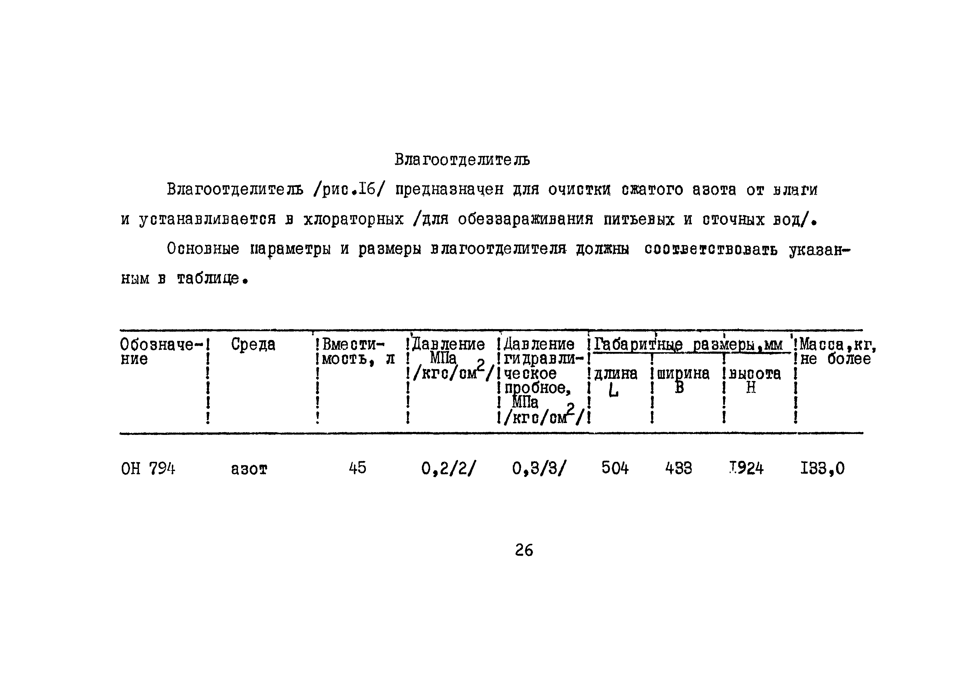 | Оглавление: | Баки аккумуляторные Баки гидроперегрузки Бак циркуляционный Бак раствора реагентов Бак растворный Бак затворный Бак для перемешивателя Бункер-питатель Вакуум-бункер Вакуум-котел Влагоотделитель Вставки монтажные Гаситель гидравлического удара автоматический Грязевики для хлора Гидропульт Гидравлический классификатор Дозаторы известкового молока Затворы гидравлические Захваты Испарители хлора Испарители аммиака Колпаки вентиляционные Колпаки воздушные Клапан донный с электроприводом Клапаны Клапан-захлопка Клапан-хлопушка Клапан поплавковый Клапан впуска и выпуска воздуха Колонка адсорбционная Контейнер для отходов известегашения Колено с направляющими лопатками Люк герметический Масловодоотделитель Мешалка кремниевой кислоты Мешалка с электроприводом Нейтрализатор Оголовок скважины Подвески Полимердозатор Подставка для хранения баллонов Подставка под рабочие баллоны Питатель Рыбозаградитель конический секционный Смеситель вихревой Сифон-затвор Сатуратор Тележка для перевозки баллонов Тележка для отходов извести Установка путевого переключателя Футляр для поврежденных баллонов Фильтры Фильтр для обезжелезивания питьевой воды Фильтр обезжелезивающий безнапорный усовершенствованный с крупнозернистой загрузкой Холодильник для воздуха Шибер реечный Эжектор |
