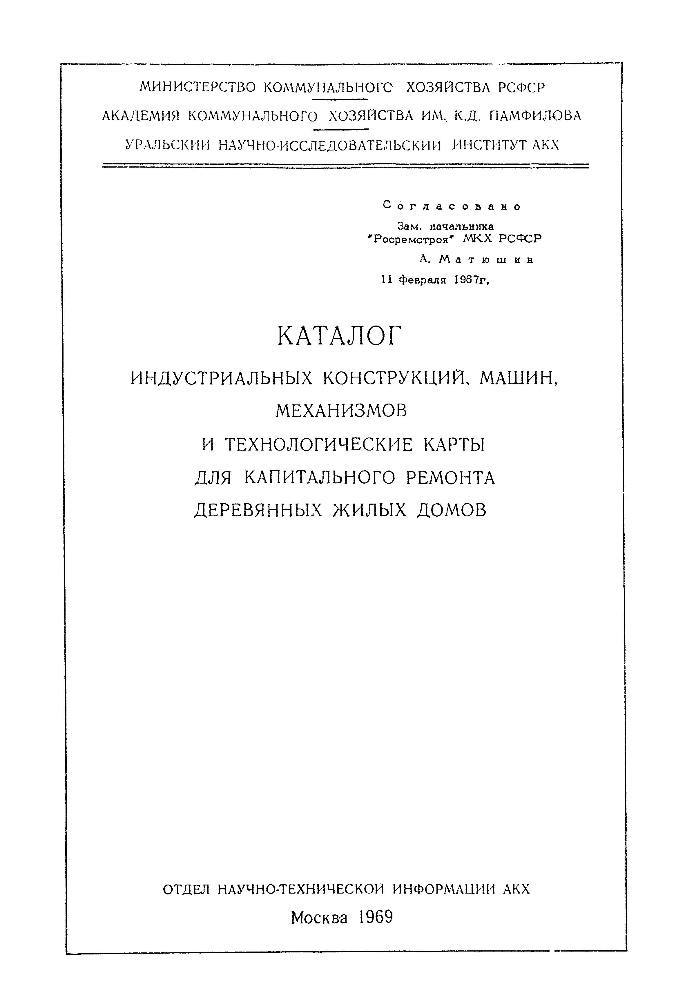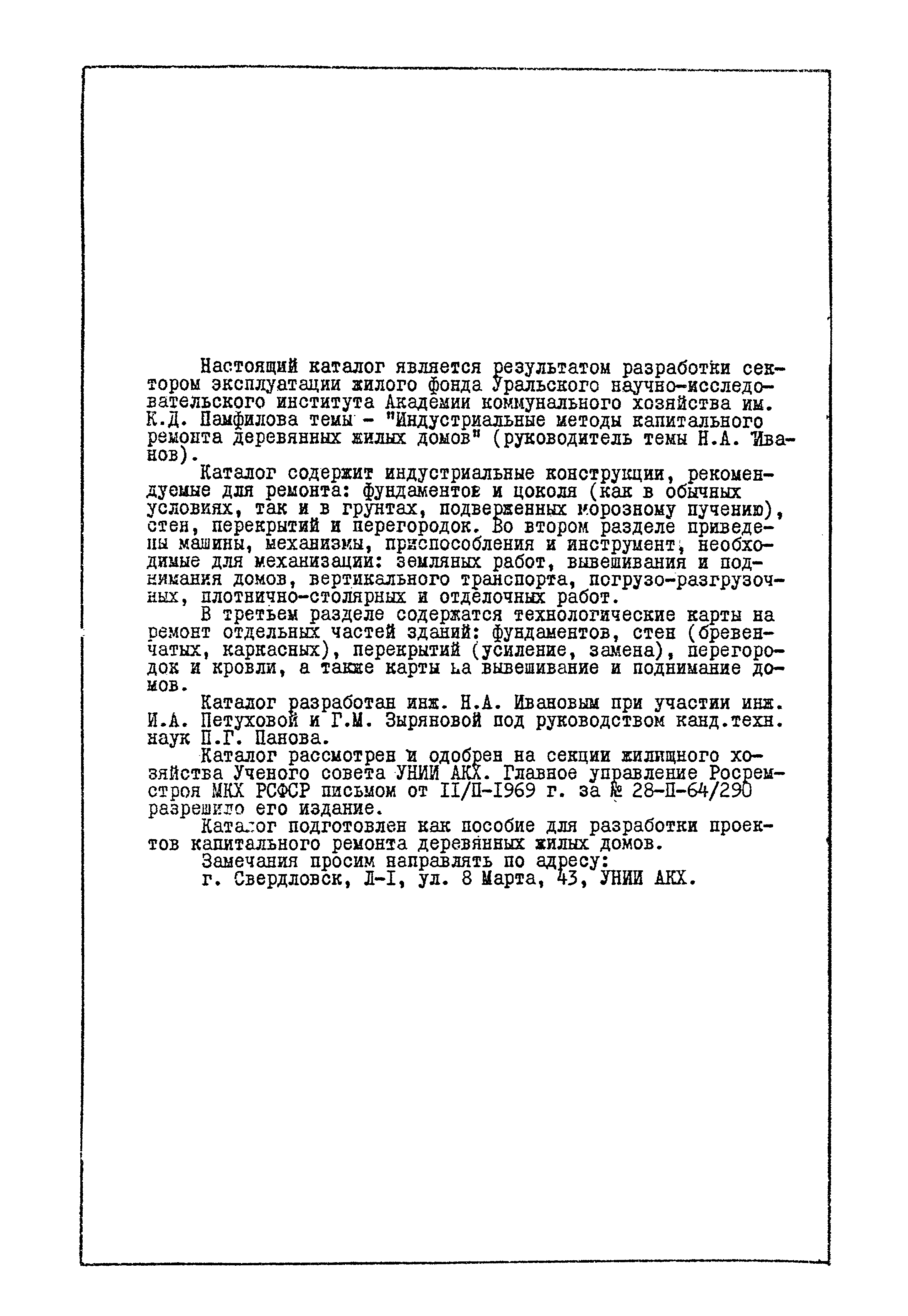 | | Утверждён: | 11.11.1969 Росремстрой МКХ РСФСР (28-11-64/290)