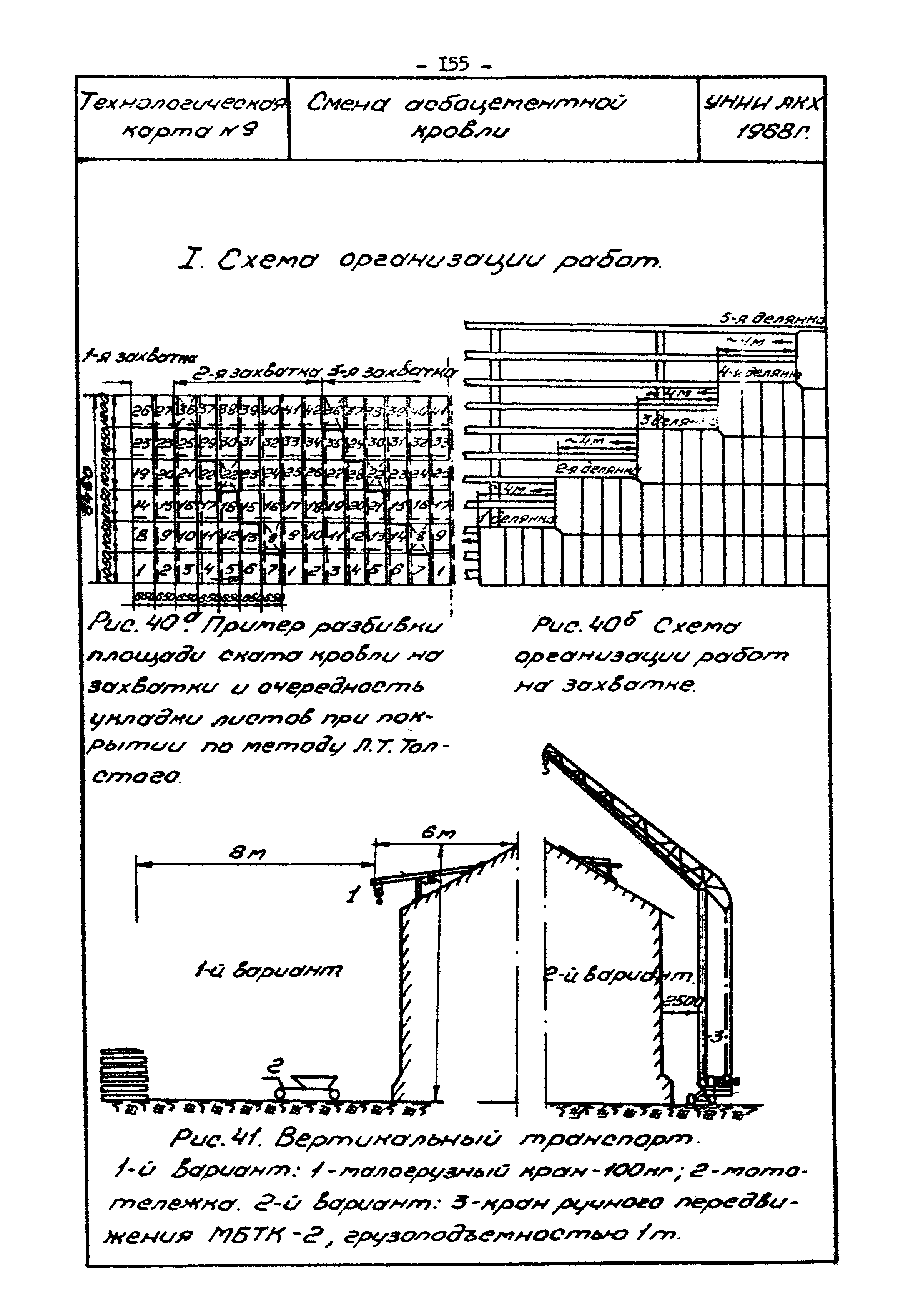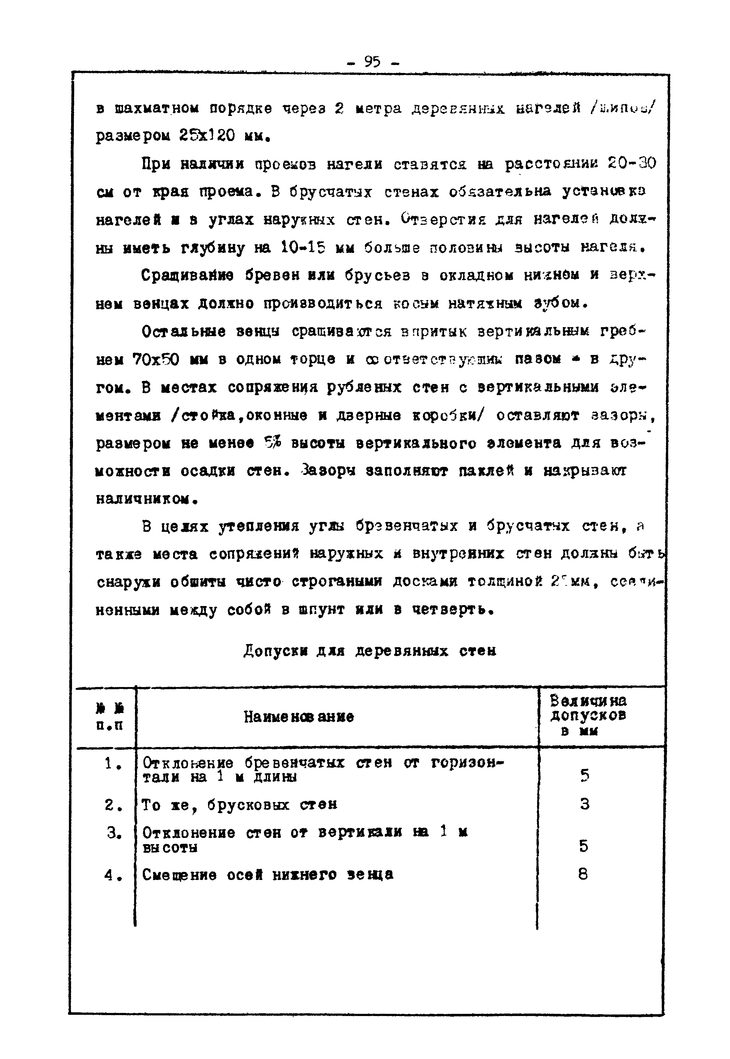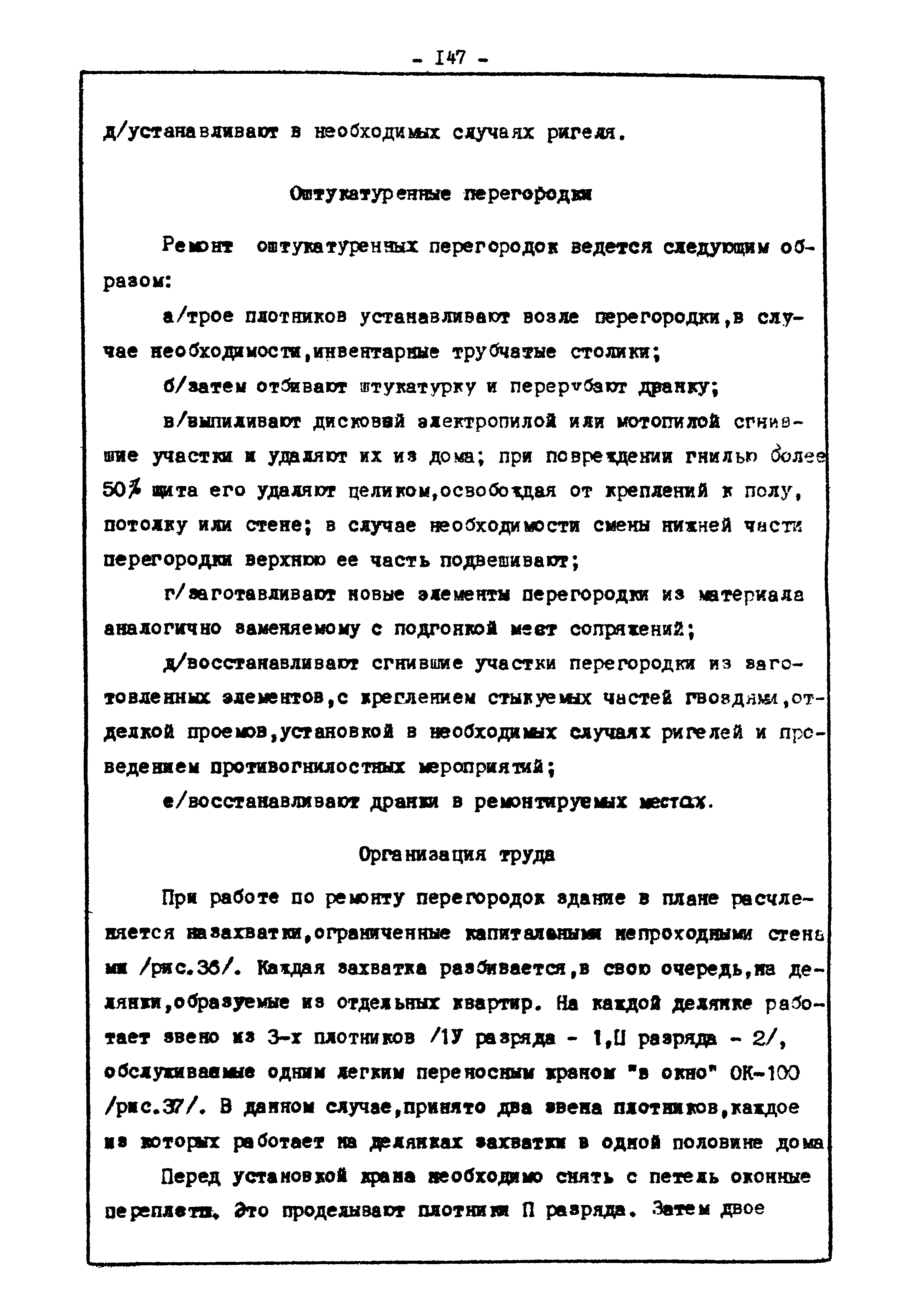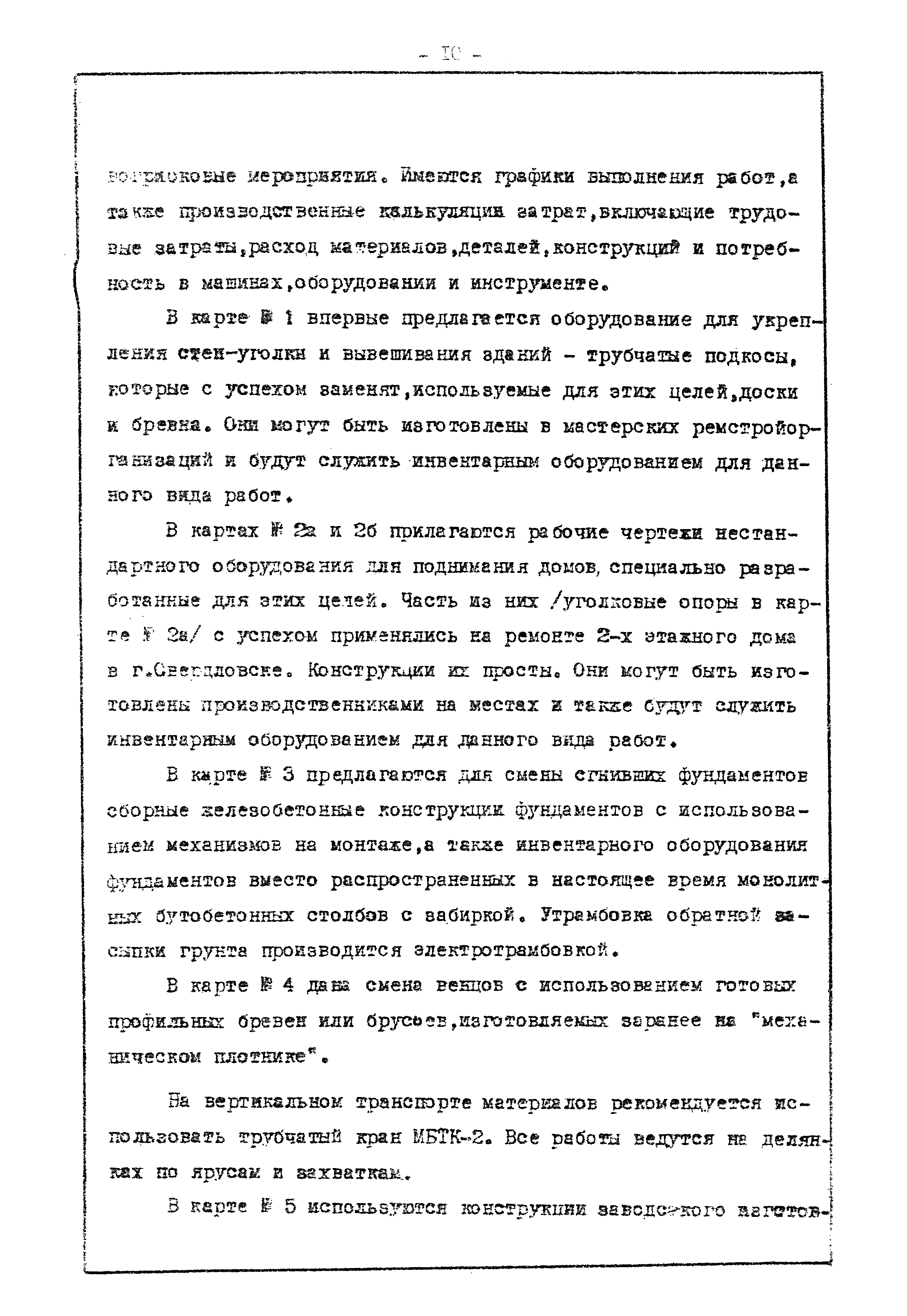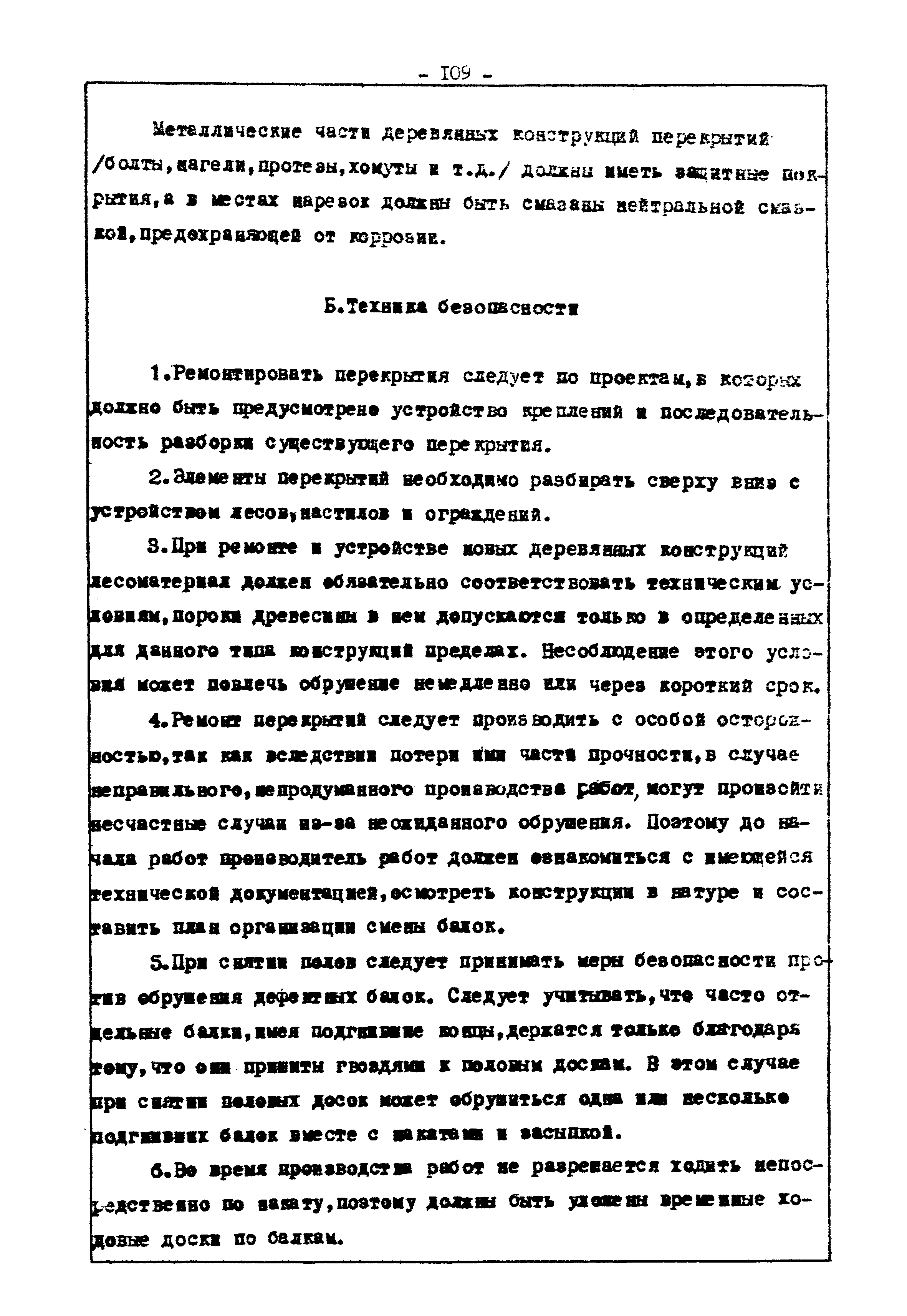 Каталог индустриальных конструкций, машин, механизмов и технологические карты для капитального ремонта деревянных жилых домов| Статус: | справочные материалы, мп, тпр | | Название рус.: | Каталог индустриальных конструкций, машин, механизмов и технологические карты для капитального ремонта деревянных жилых домов | | Дата добавления в базу: | 01.10.2014 | | Дата актуализации: | 01.01.2021 | | Область применения: | Каталог содержит индустриальные конструкции, рекомендуемые для ремонта: фундаментов и цоколя (как в обычных условиях, так и в грунтах, подверженных морозному пучению), стен, перекрытий и перегородок. Во втором разделе приведены машины, механизмы, приспособления и инструмент необходимые для механизации: земляных работ, вывешивания и поднимания домов, вертикального транспорта, погрузо-разгрузочных, плотнично-столярных и отделочных работ. | | Оглавление: | Пояснительная записка 1. Индустриальные конструкции и детали 1.1 Фундаменты и цоколь 1.2 Стены 1.3 Перекрытия 1.4 Перегородки 2. Машины, механизмы, приспособления и инструмент 2.1 Машины для земляных работ. 2.2 Приспособления для вывешивания и поднимания домов 2.3 Машины и механизмы для вертикального транспорта 2.4 Погрузочно-разгрузочная и транспортная машина 2.5 Станки и инструмент для плотнично-столярных работ 2.6 Механизмы и инструмент для отделочных работ 2.7 Леса и подмости . 3. Технологические карты 3.1 Вывешивание углов и участков стен дома домкратами 3.2а Поднятие 2х этажного дома домкратами на кронштейнах 3.2б Поднятие 2х этажного дома лебедками на мачтах или шеврах 3.3 Замена деревянных стульев и цоколя сборными железобетонными элементами 3.4 Ремонт простенков, и замена отдельных венцов стен 3.5 Усиление и ремонт перекрытий 3.6 Ремонт каркасных стен 3.7 Замена перекрытий балками со щитовым канатом 3.8 Ремонт перегородок 3.9 Смена асбестоцементной кровли Приложение 1. Расчет конструкций Приложение 2. Требования к древесине Приложение 3. Антисептики, антипирены, инсектициды Приложение 4. Пример диспетчеризации связи на ремонте деревянных домов в Свердловском РСТ Литература | | Разработан: | Академия коммунального хозяйства им. К.Д. Памфилова Минжилкомхоза РСФСР Уральский научно-исследовательский институт АКХ